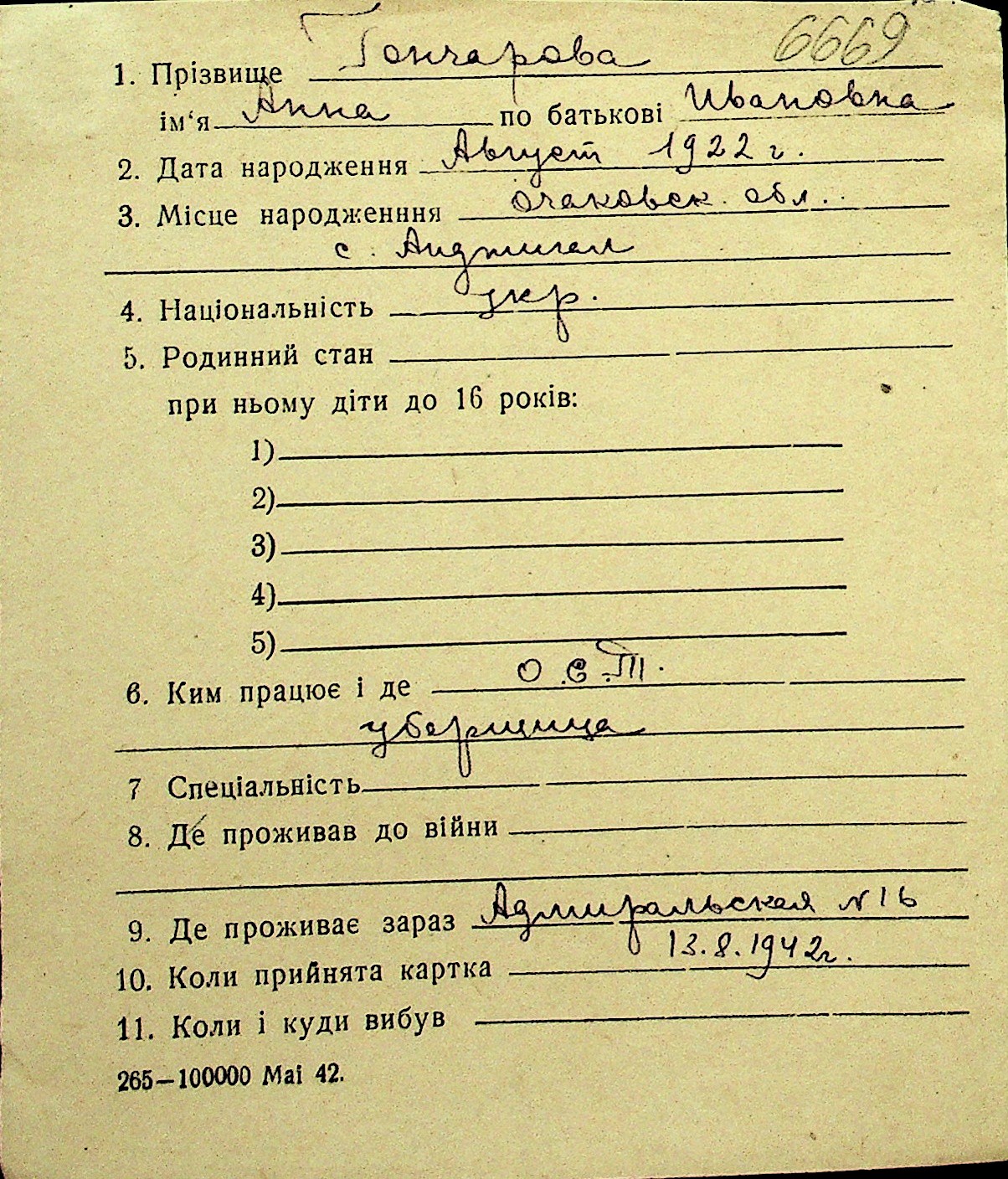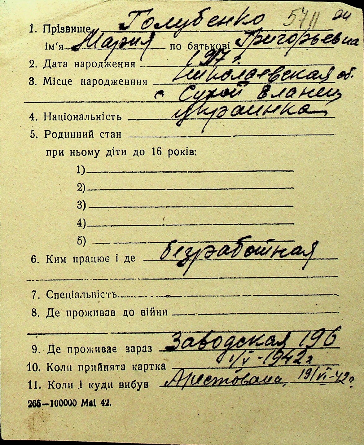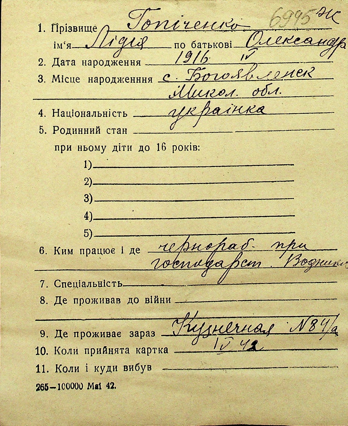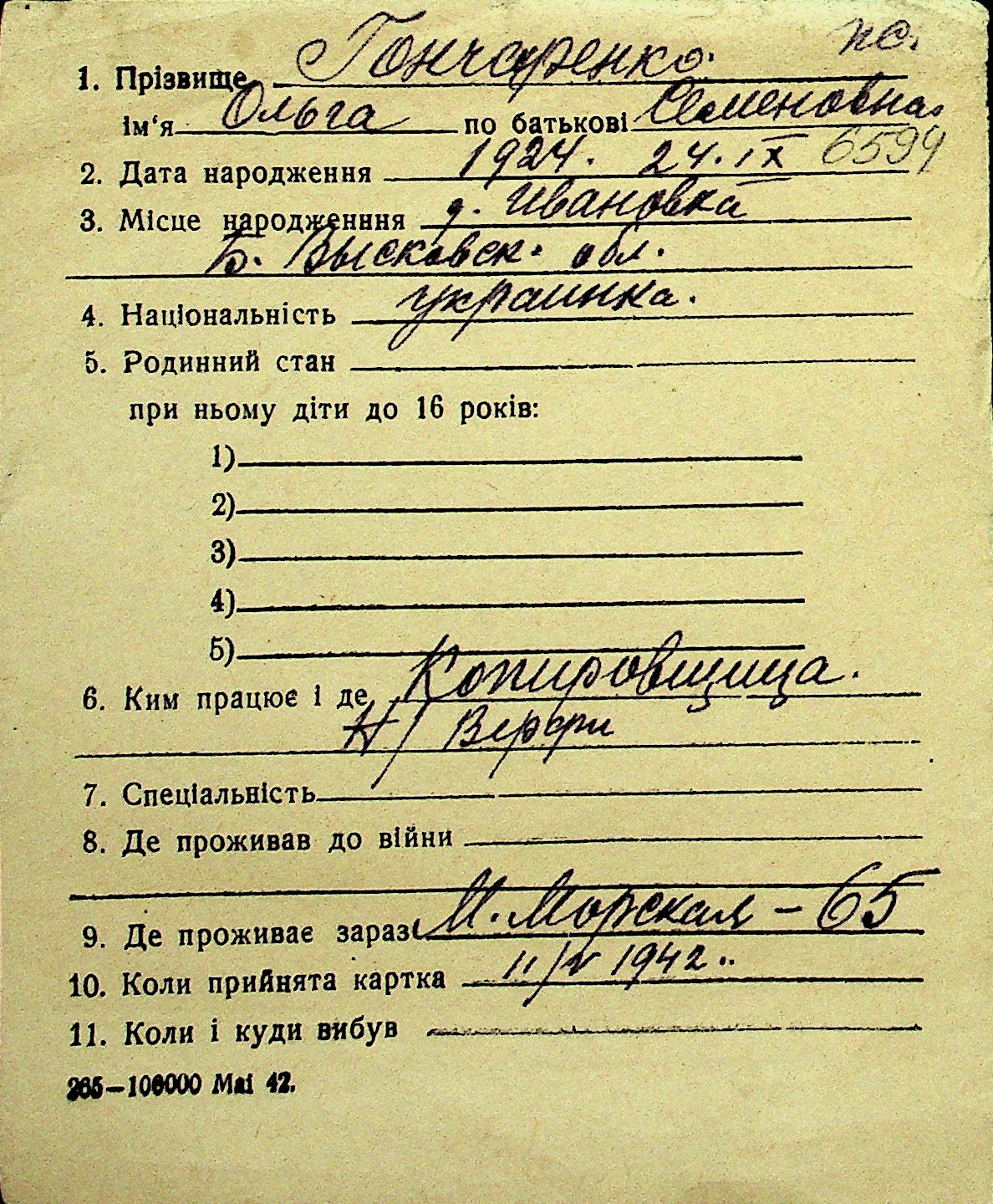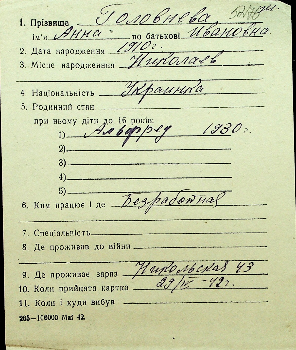 • • Перелік карток до фонду № Н-1016