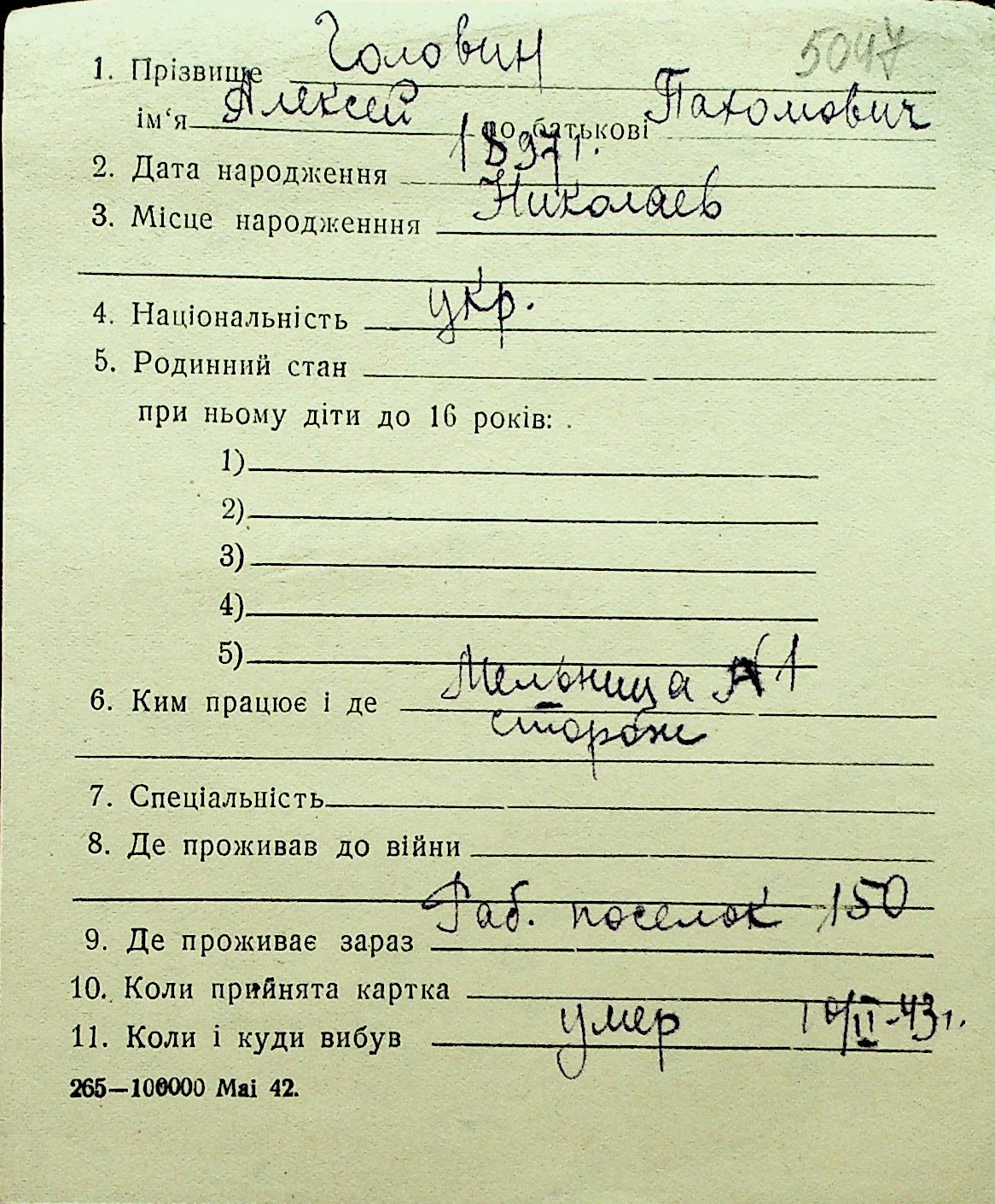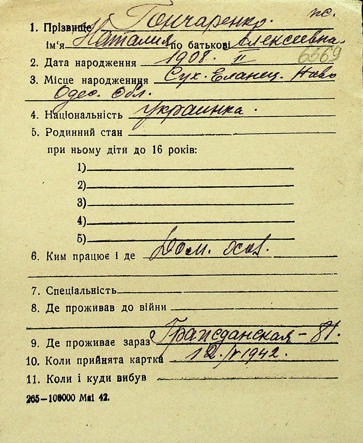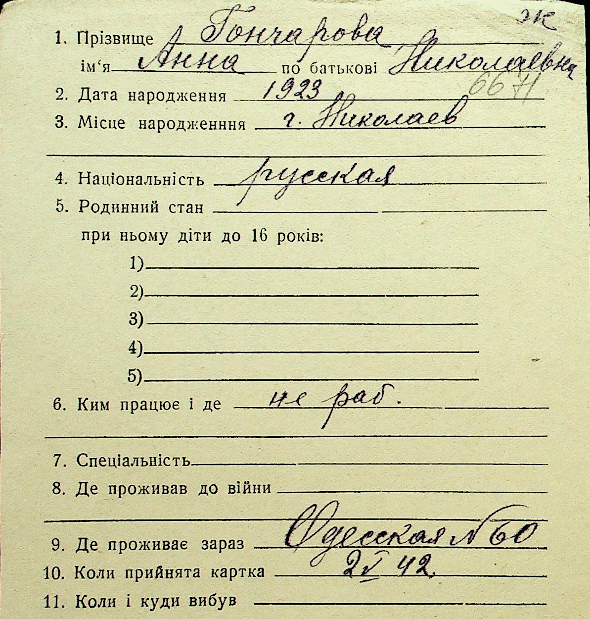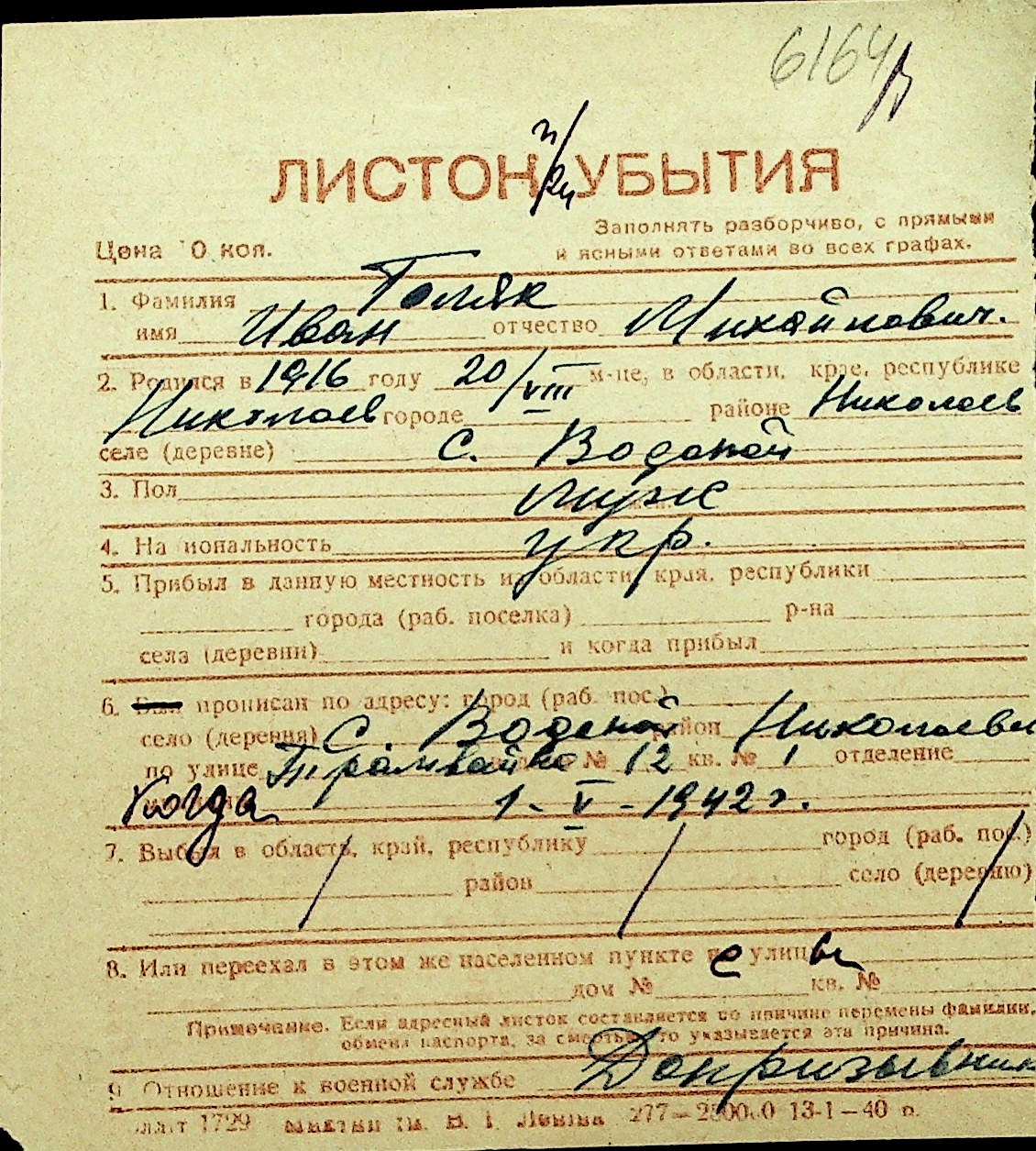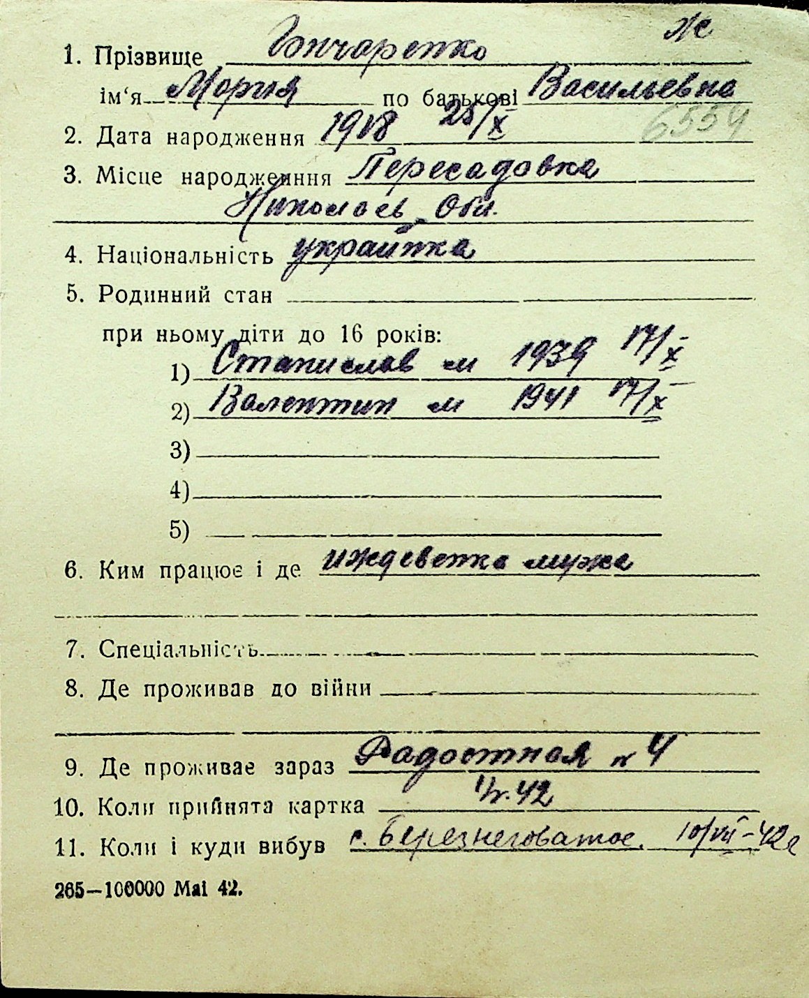 • • Перелік карток до фонду № Н-1016