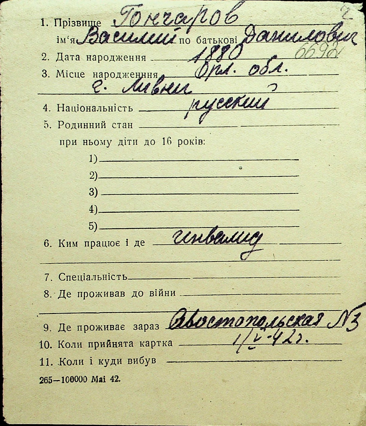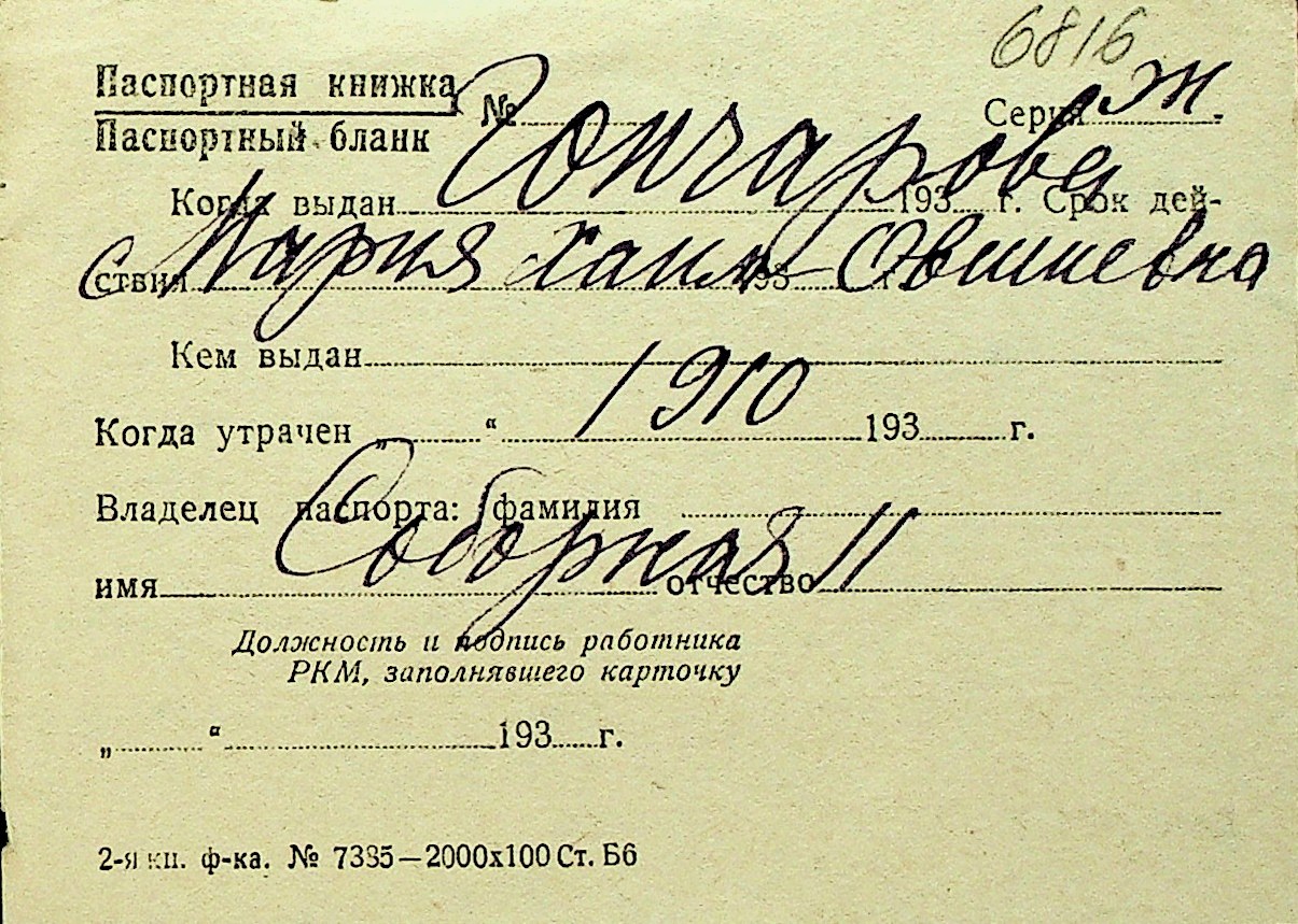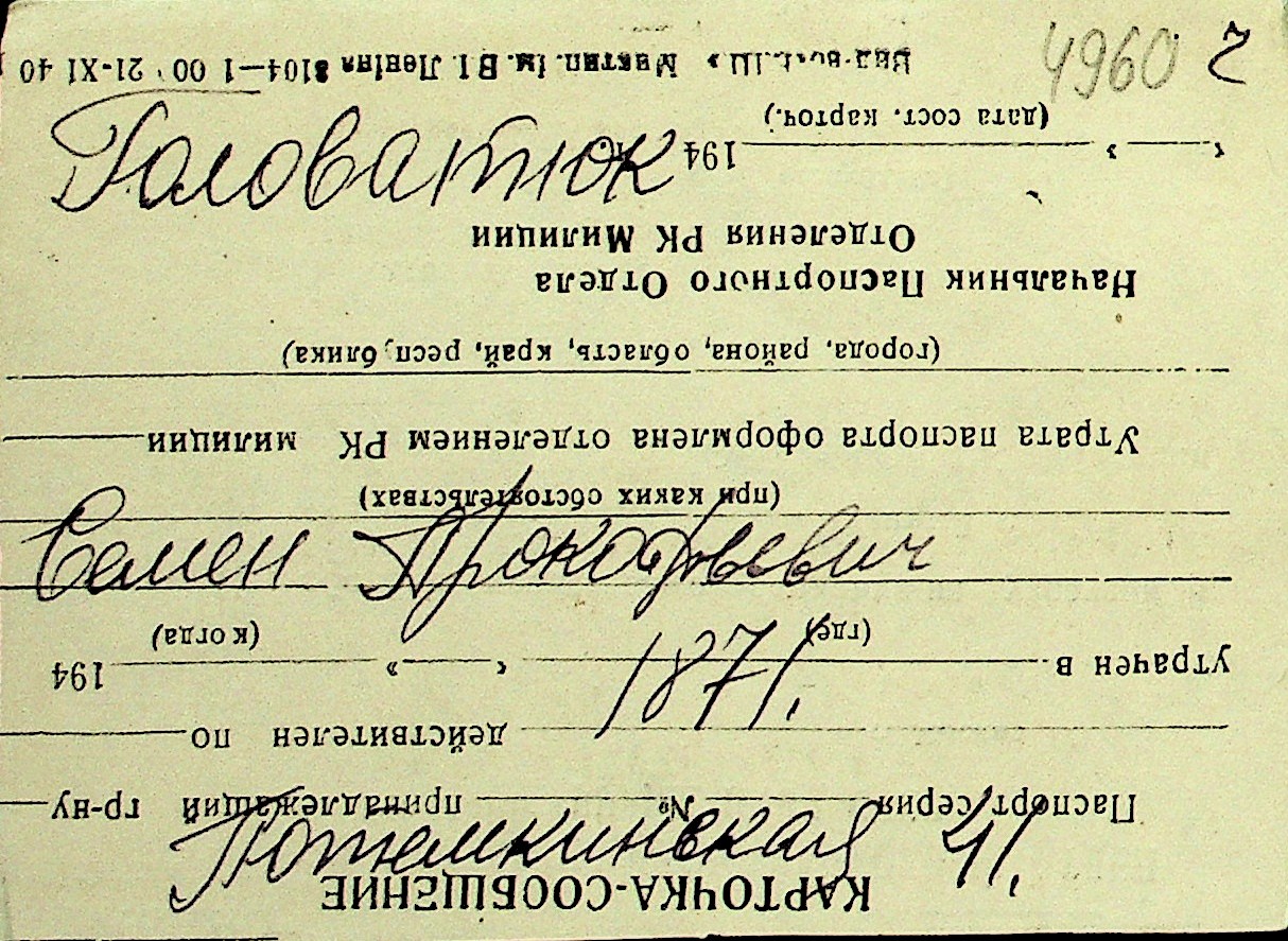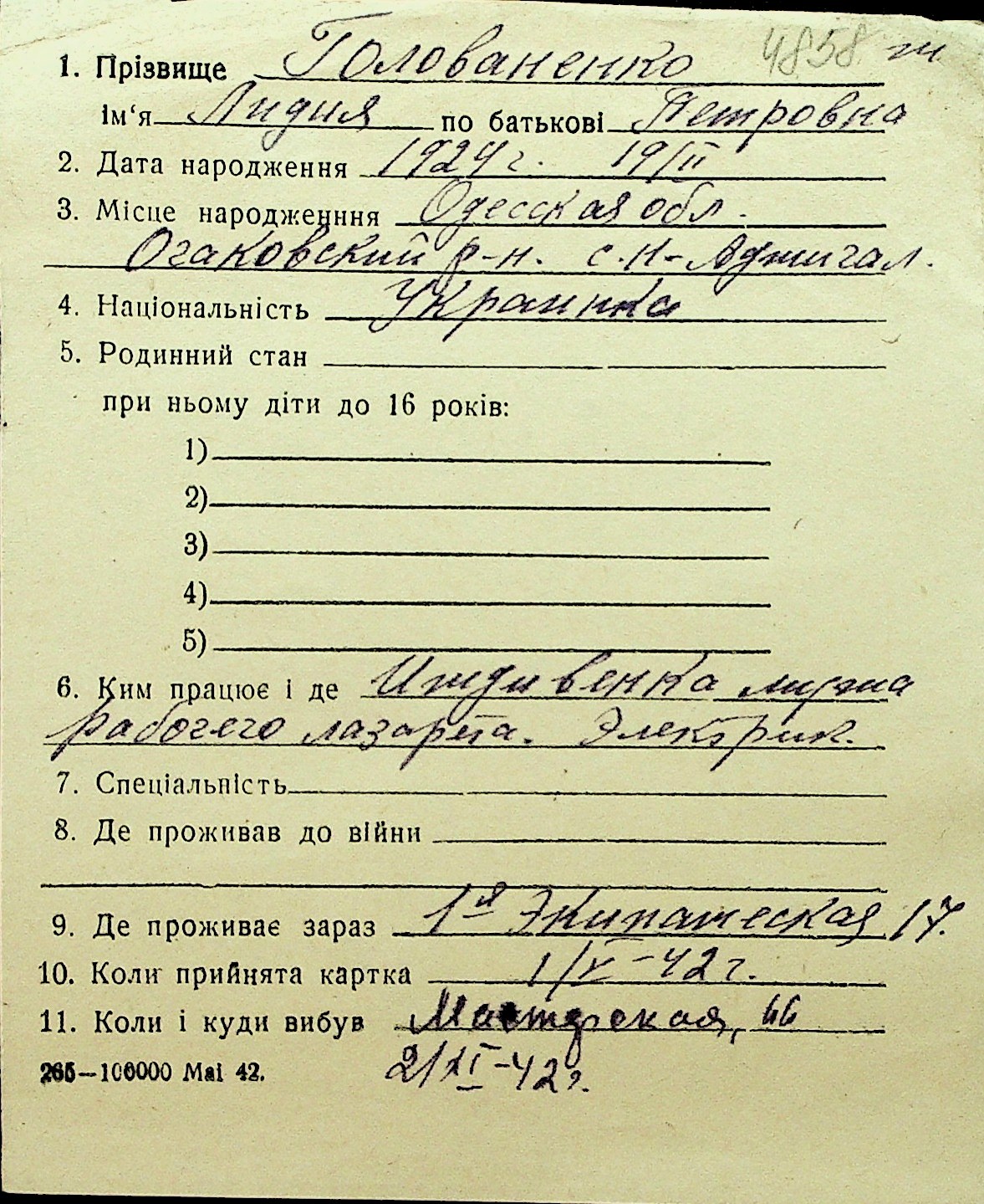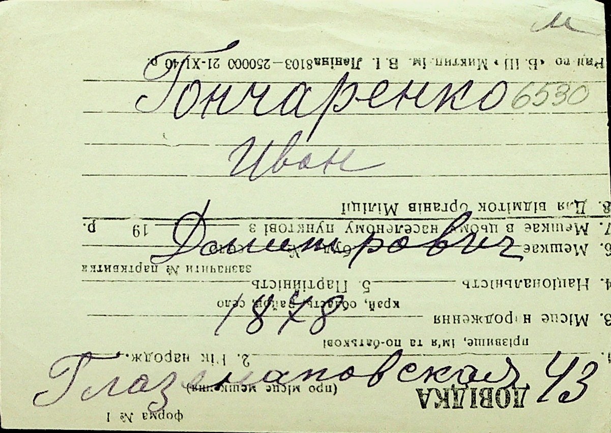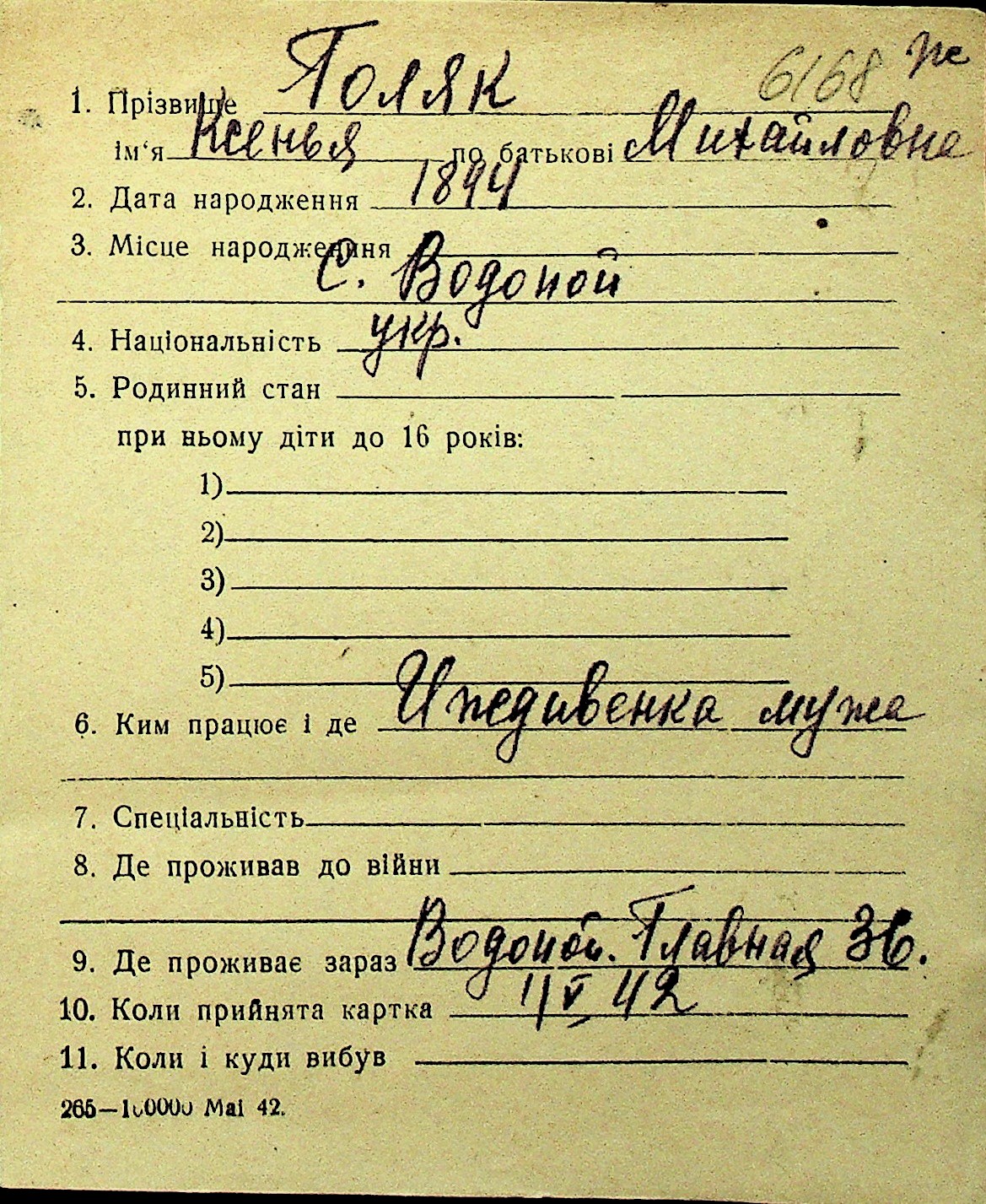 • • Перелік карток до фонду № Н-1016