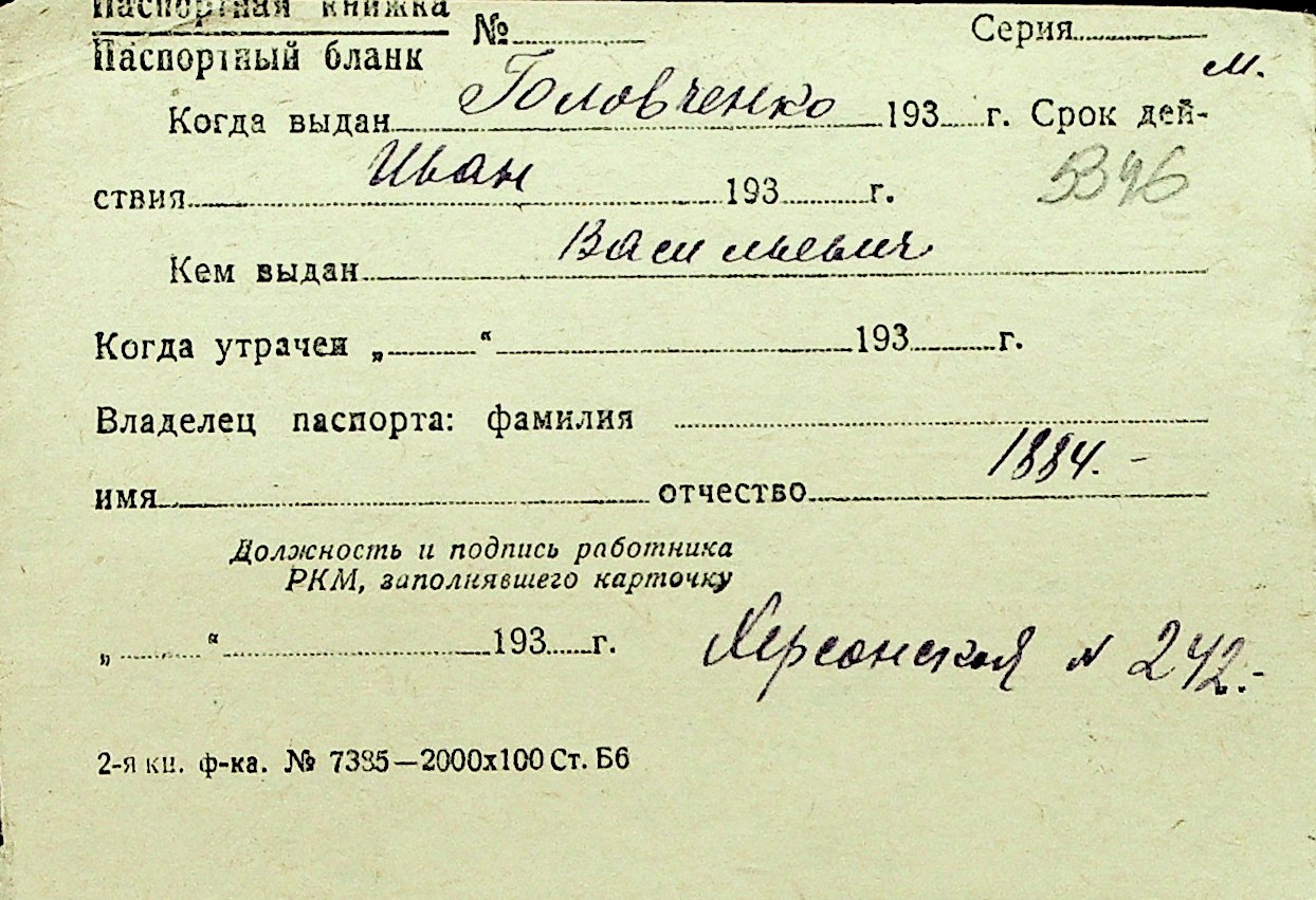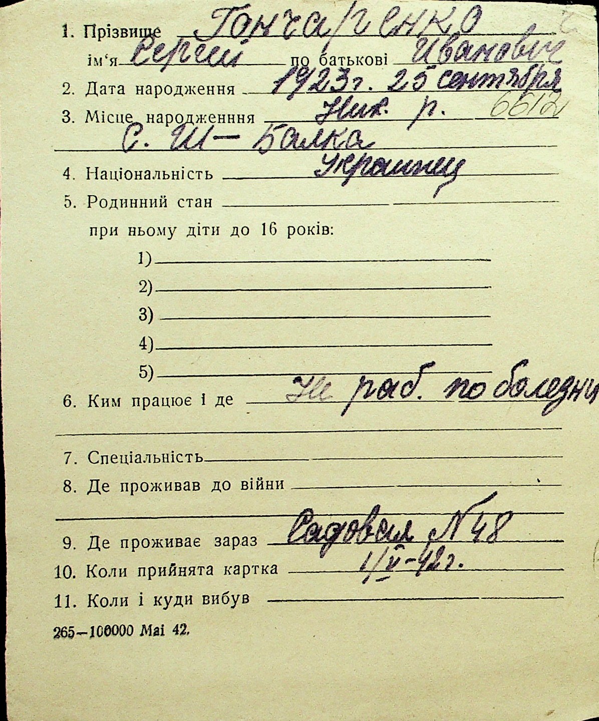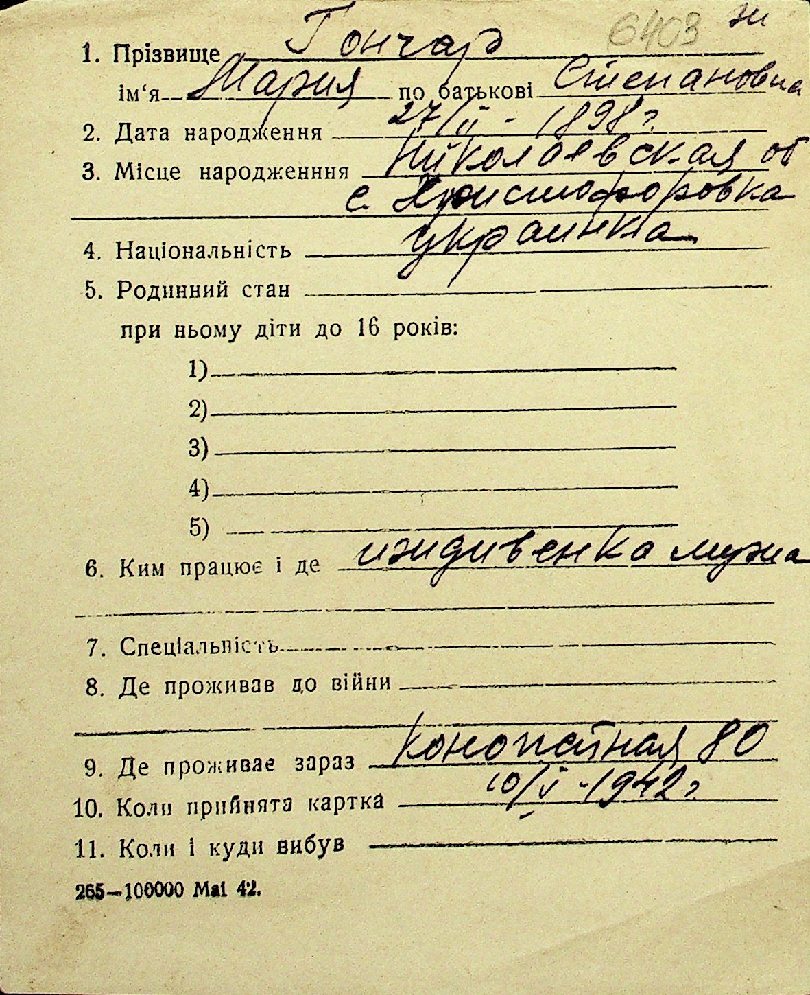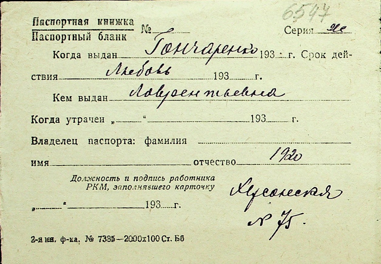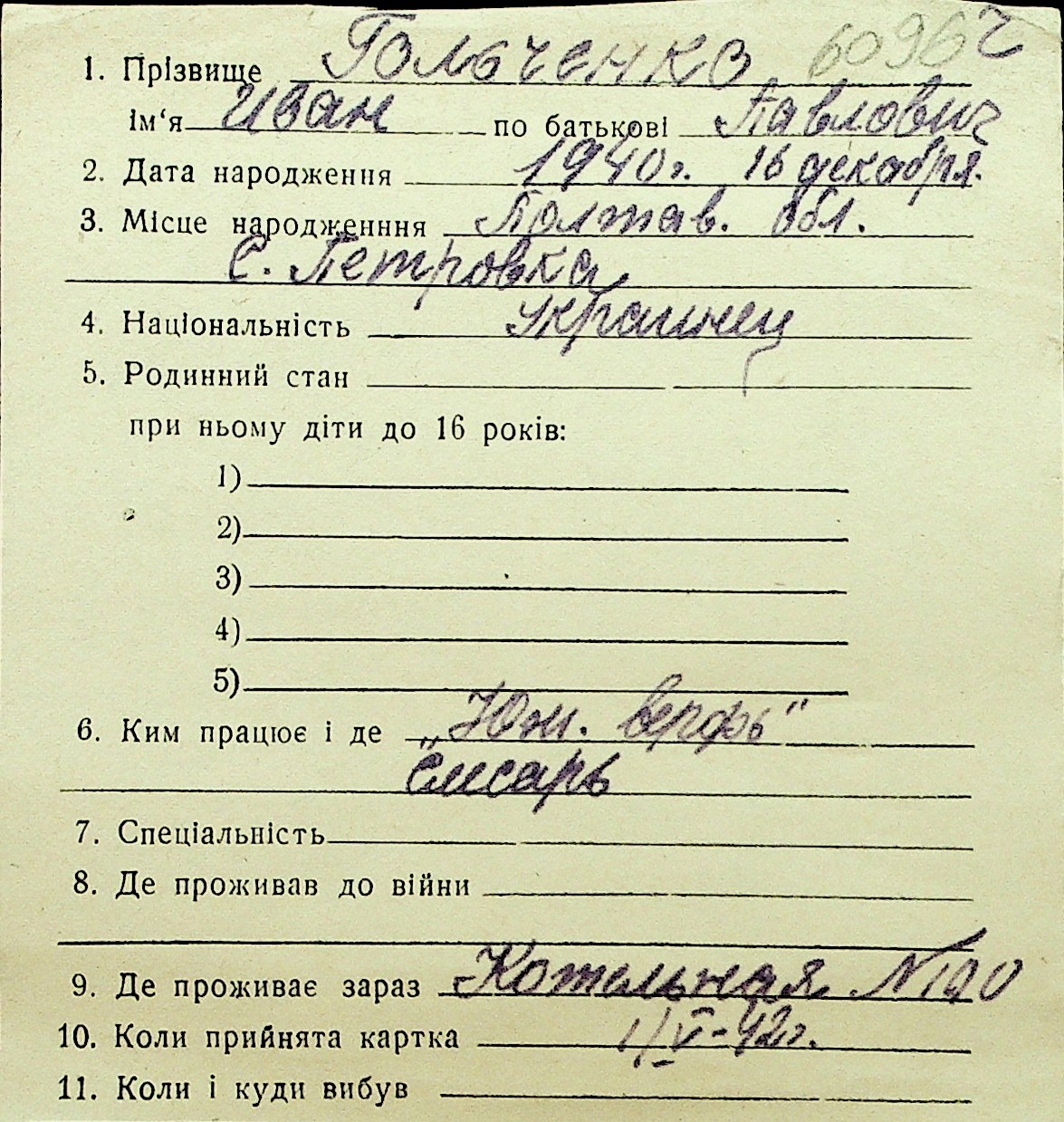 • • Перелік карток до фонду № Н-1016