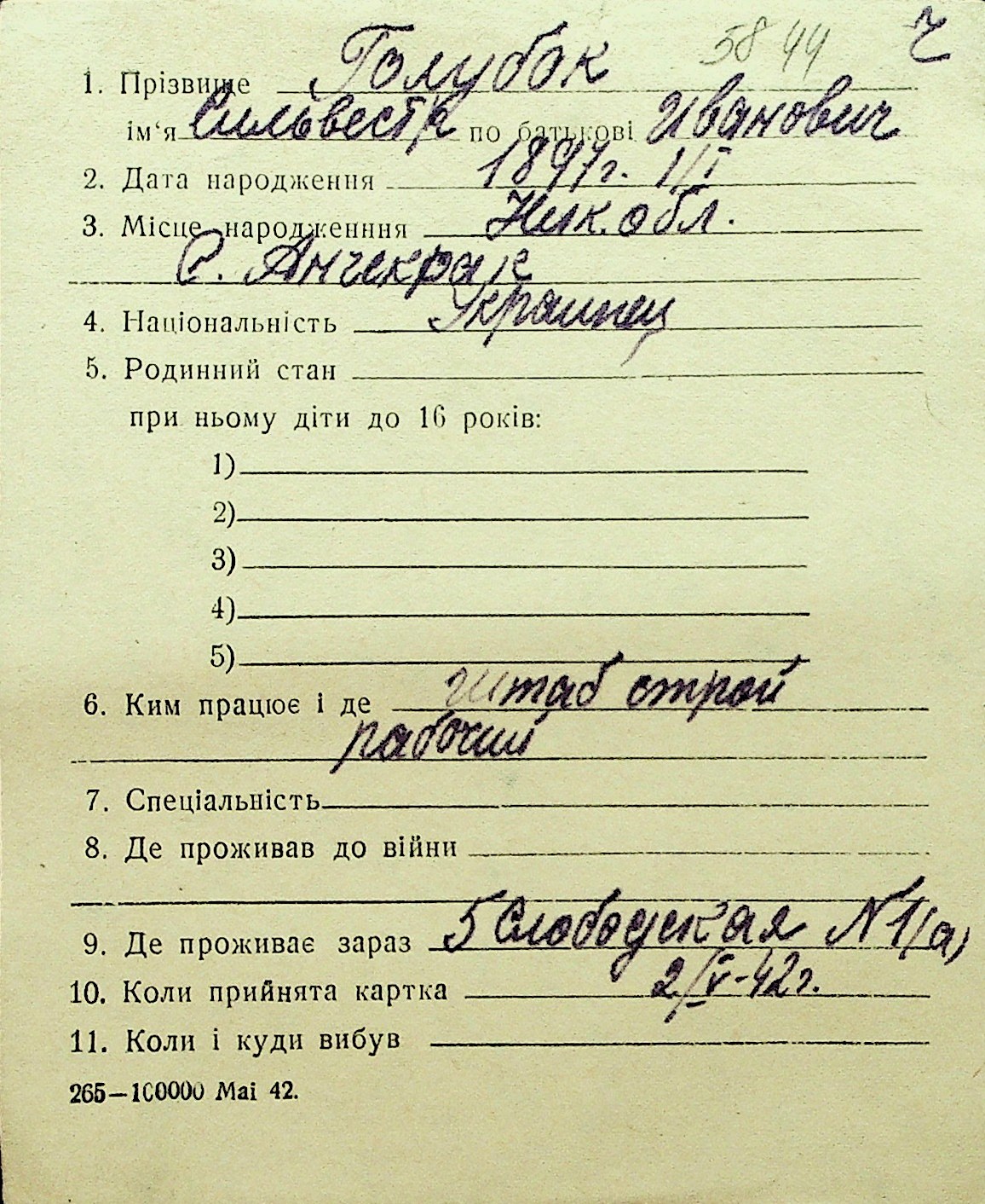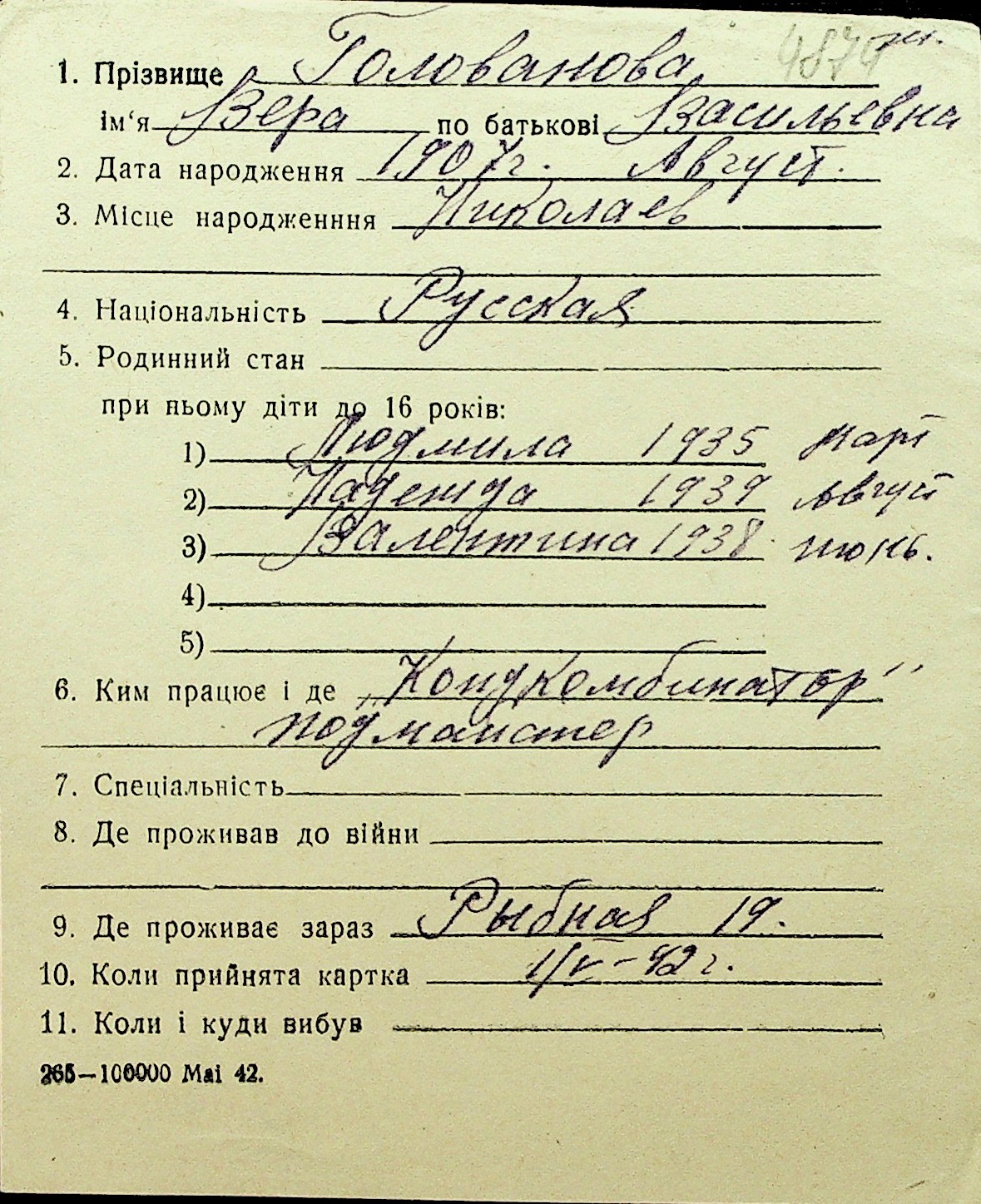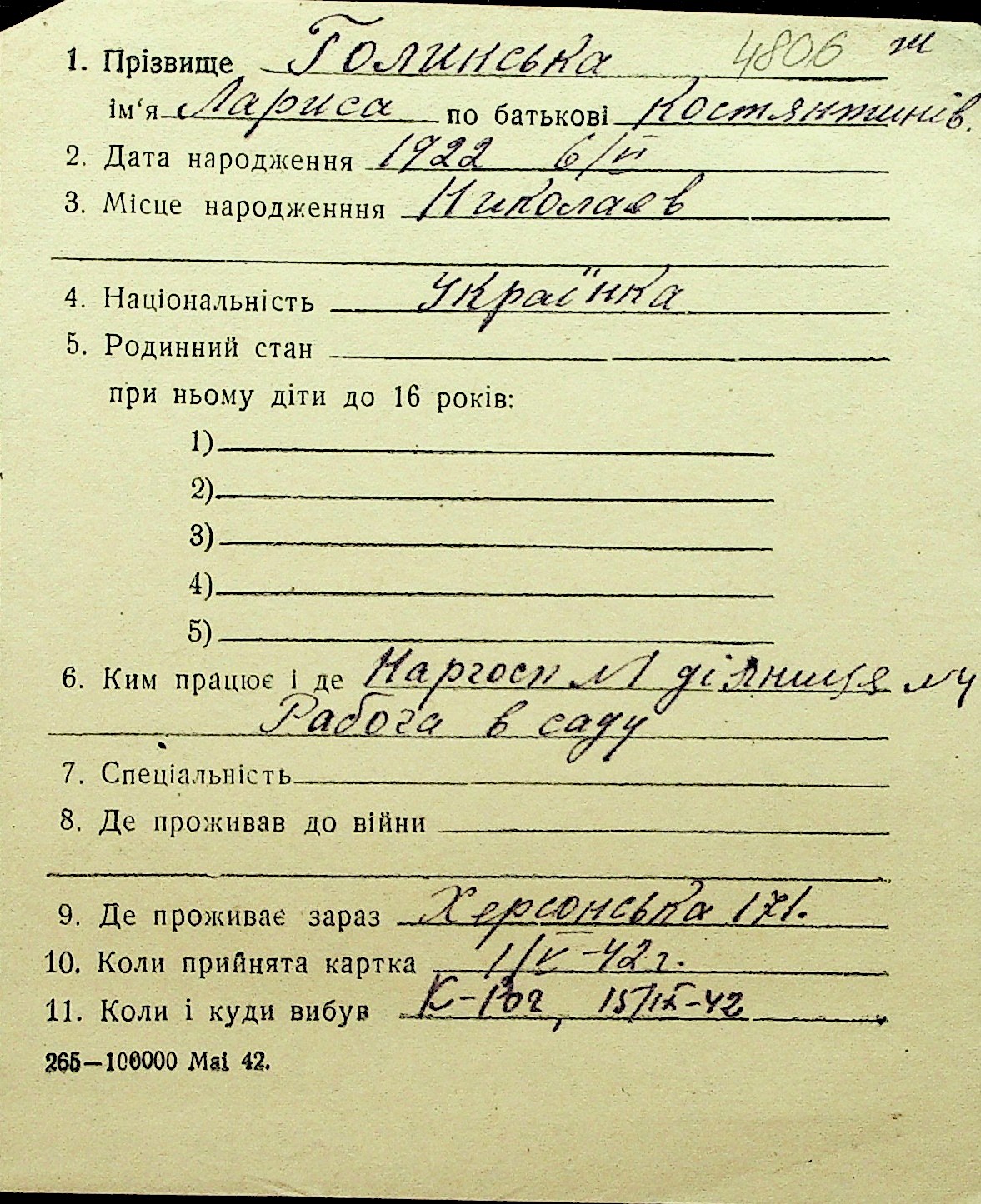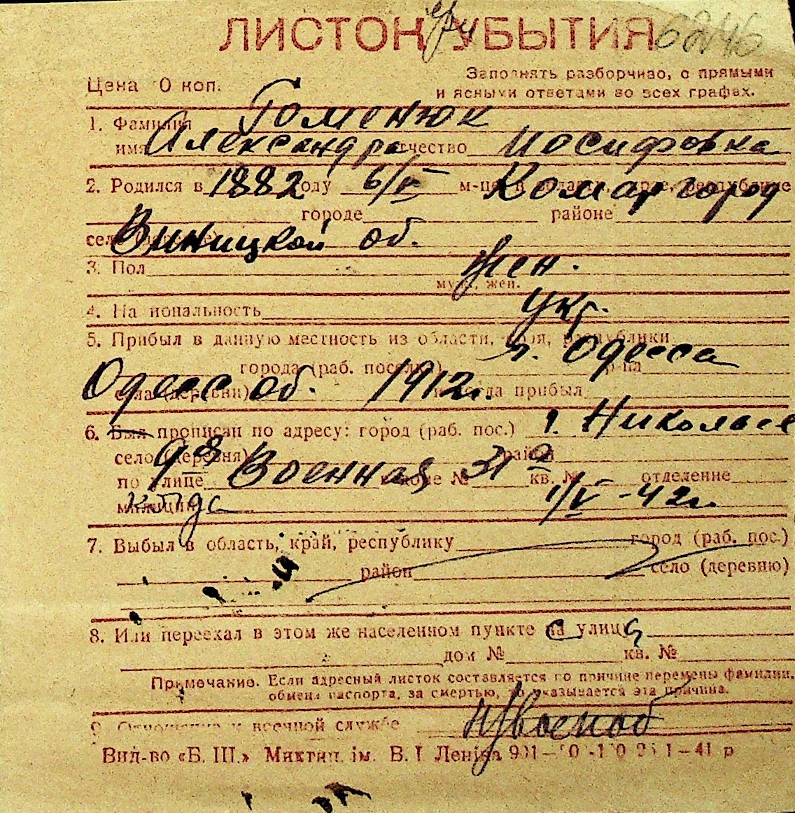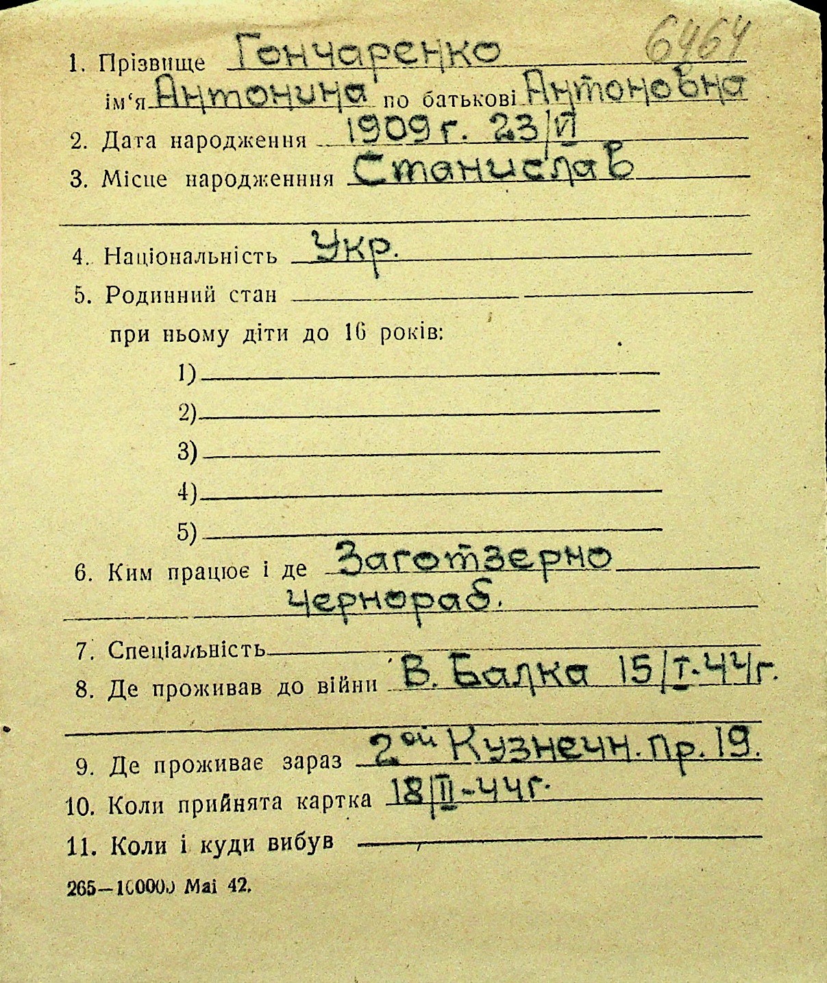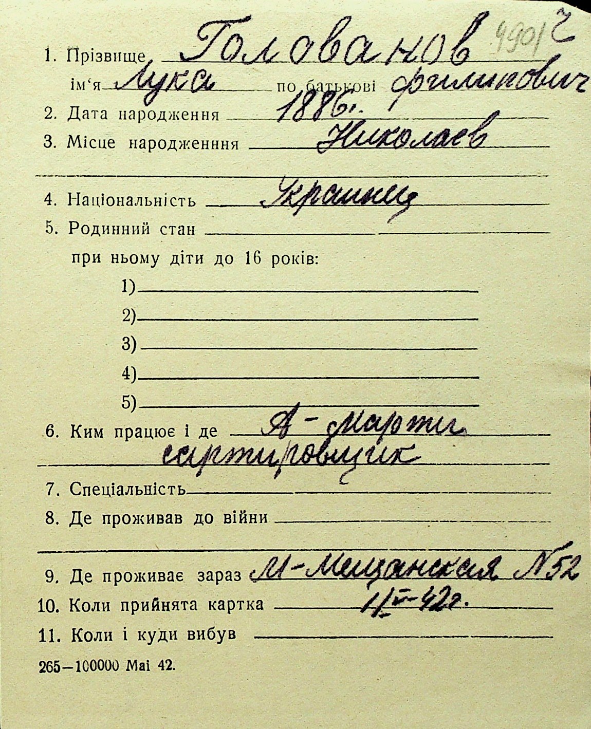 • • Перелік карток до фонду № Н-1016