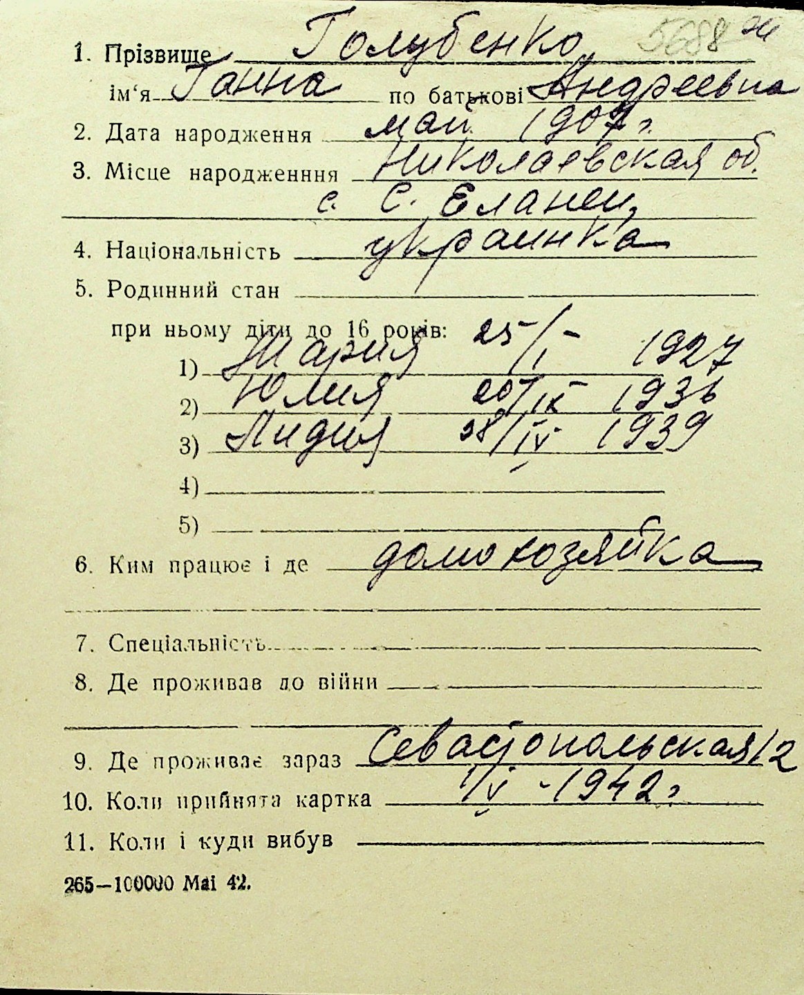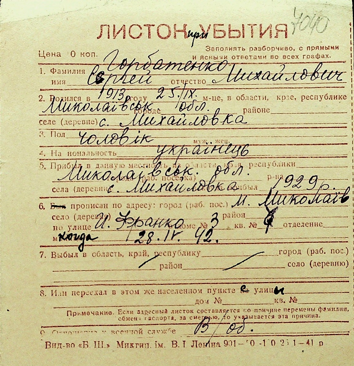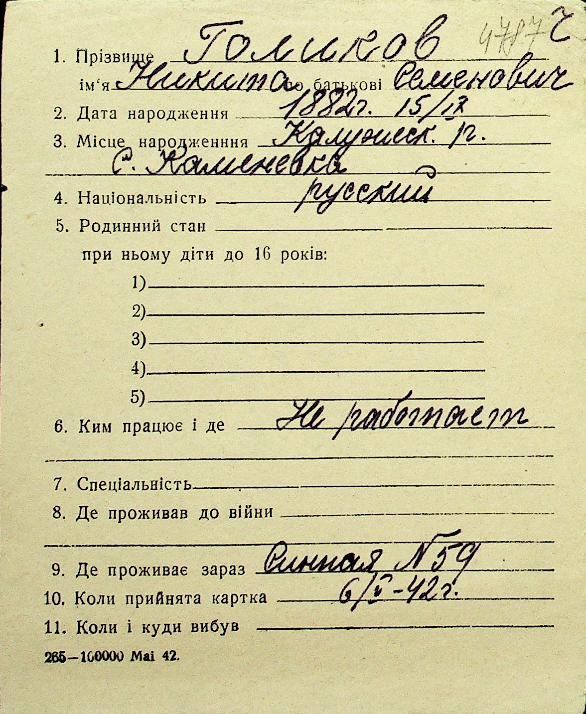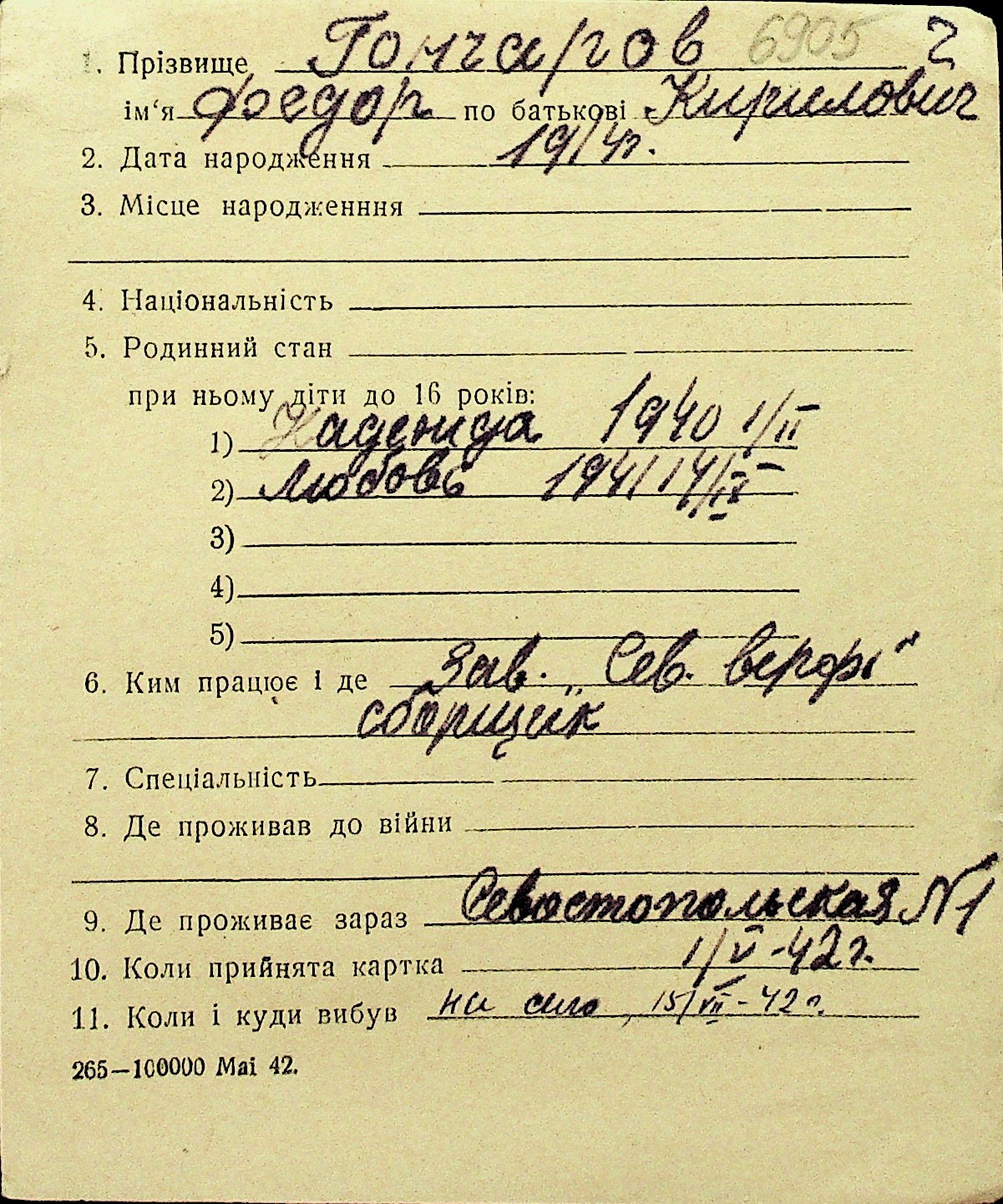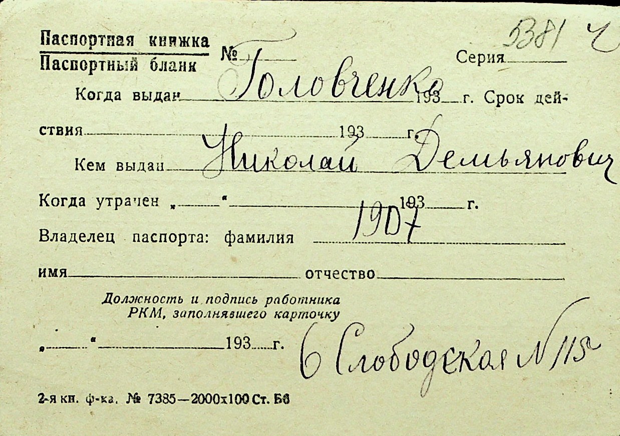• • Перелік карток до фонду № Н-1016