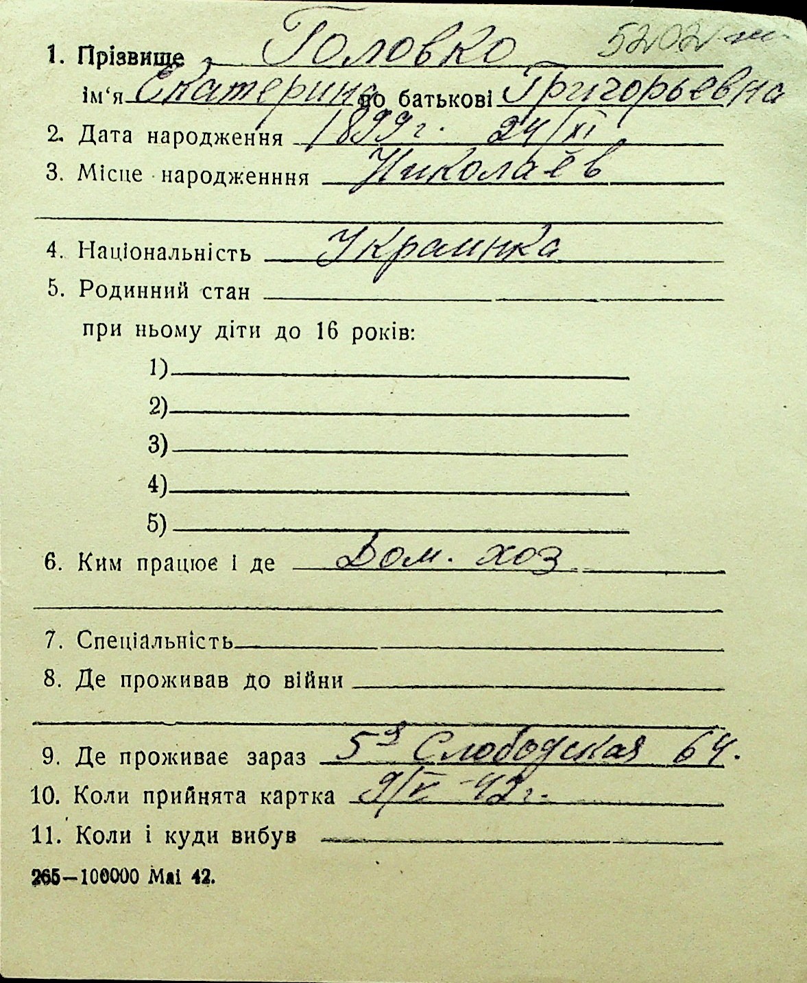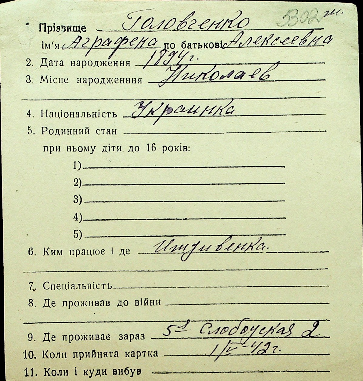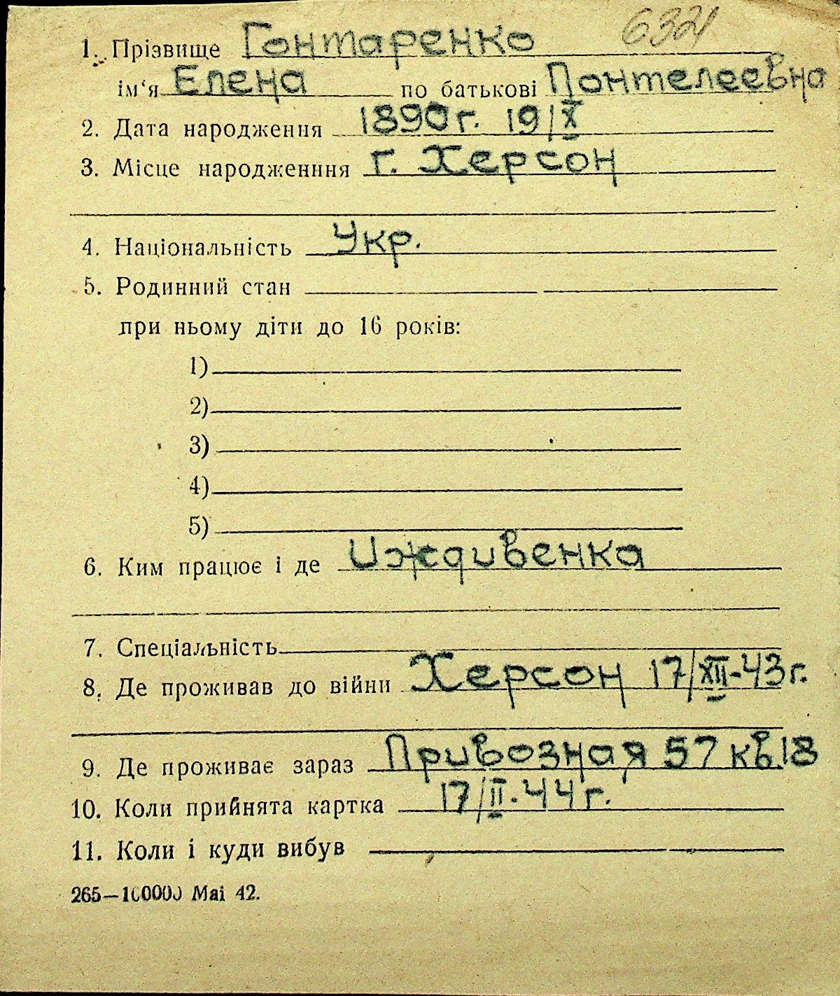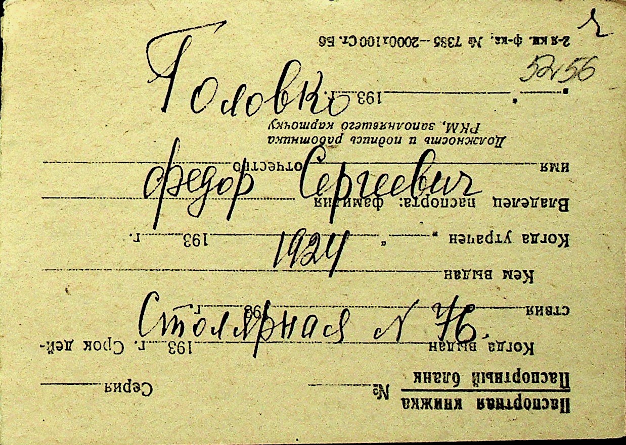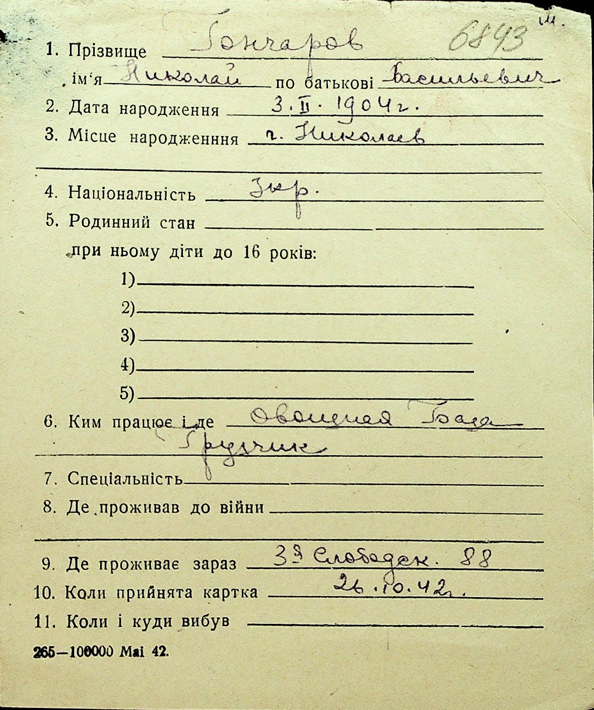 • • Перелік карток до фонду № Н-1016