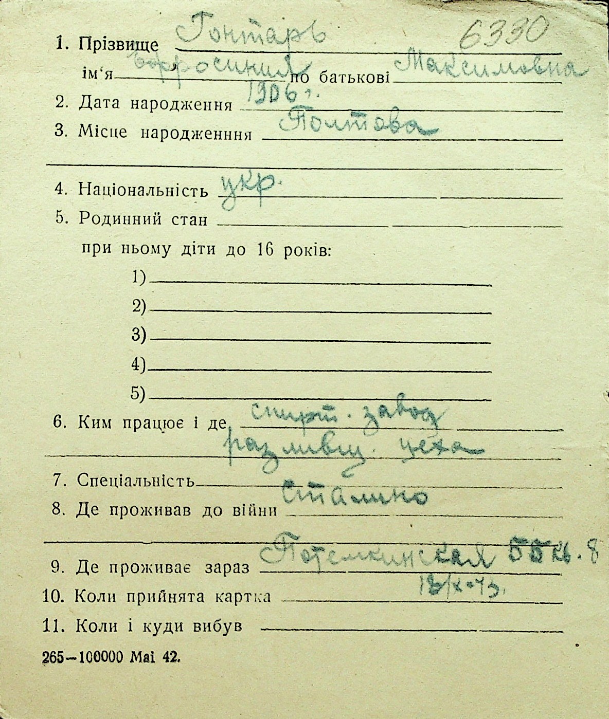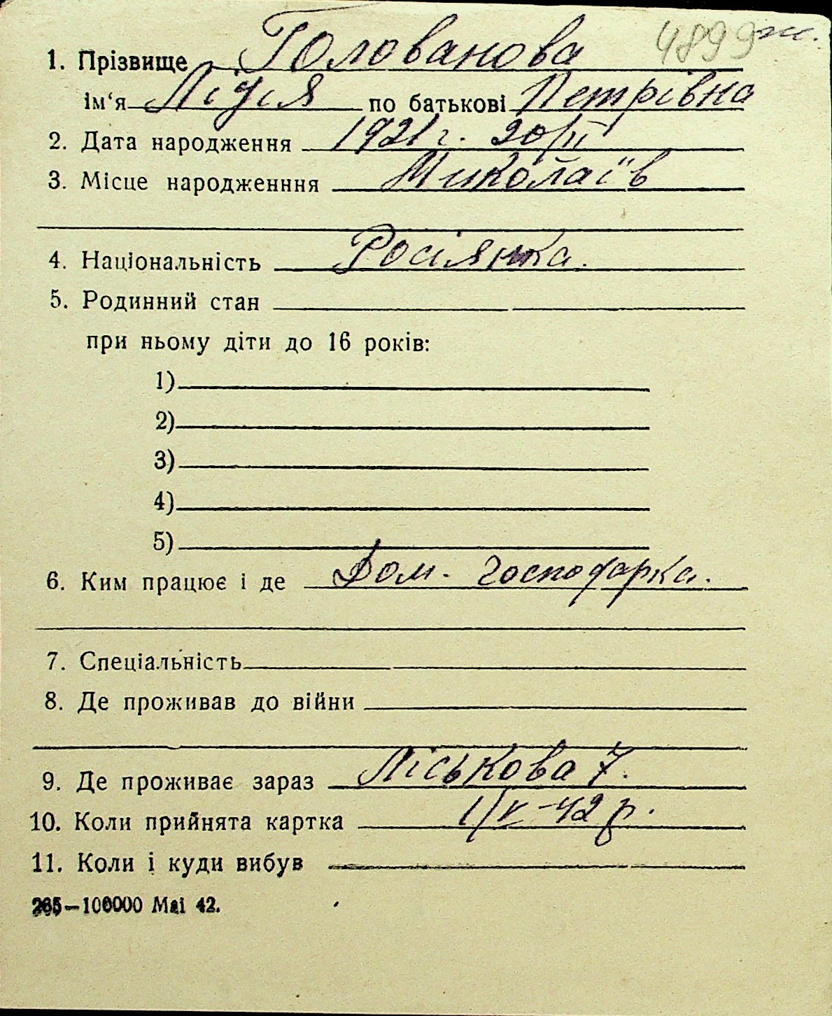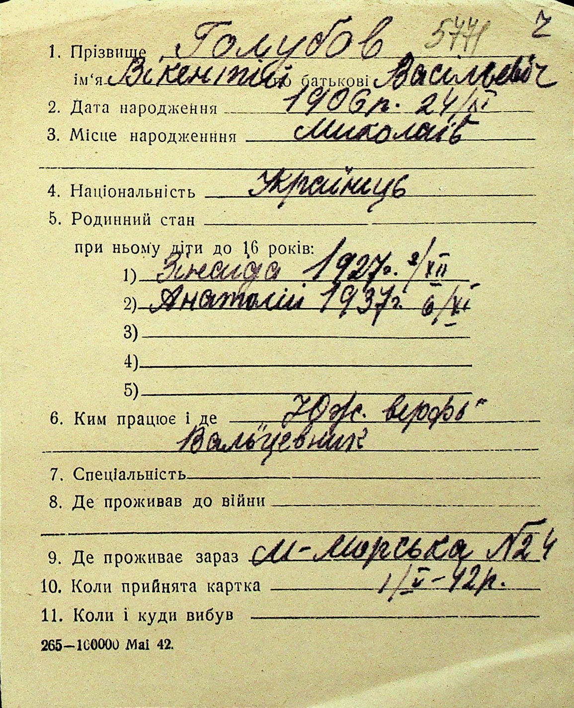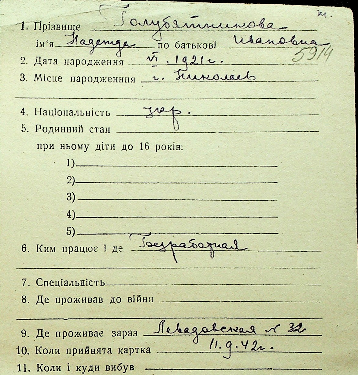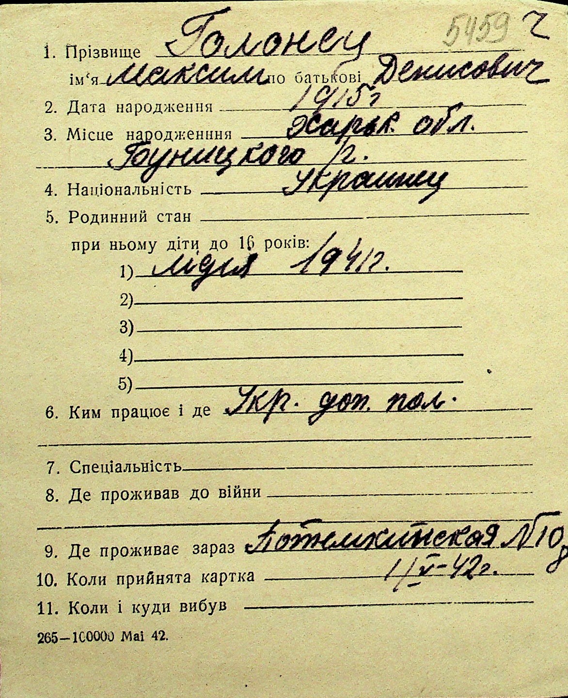 • • Перелік карток до фонду № Н-1016