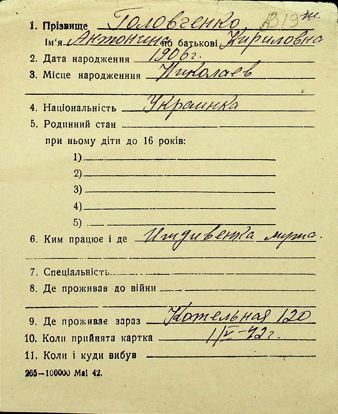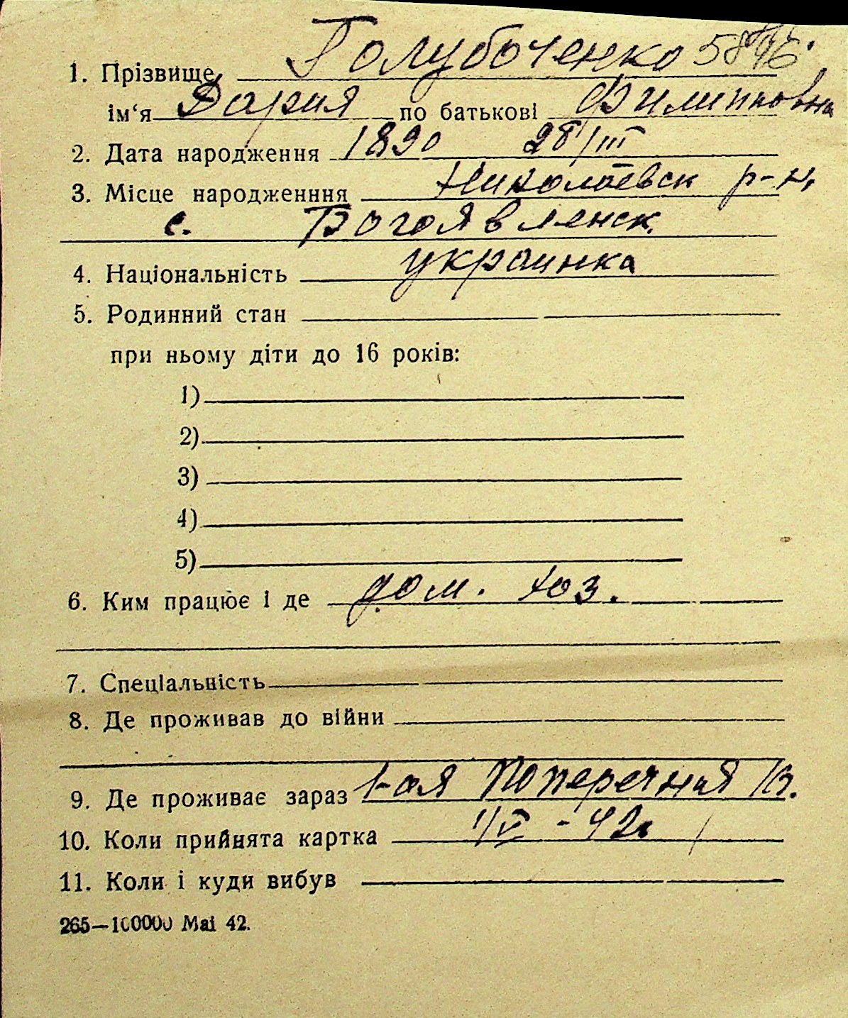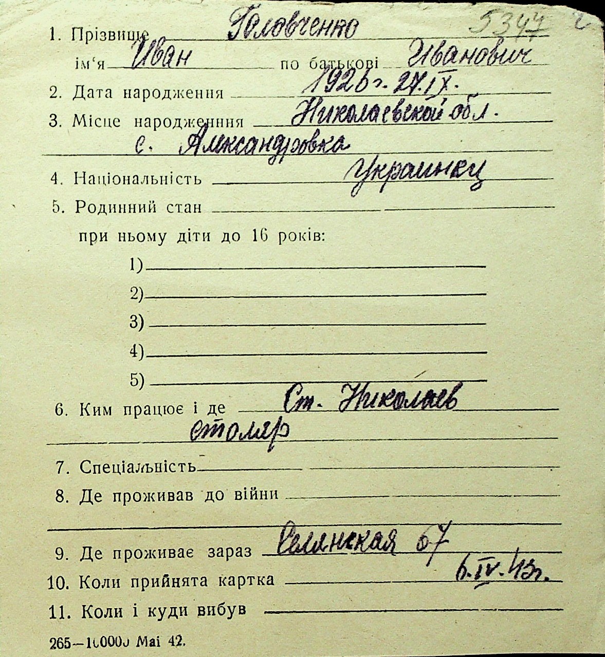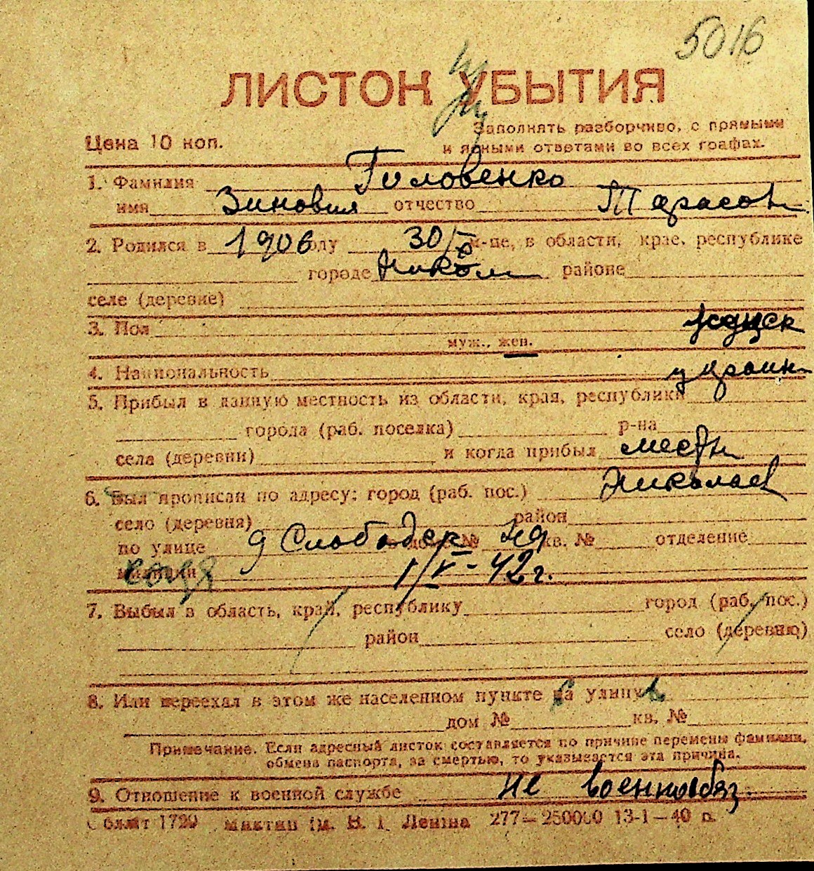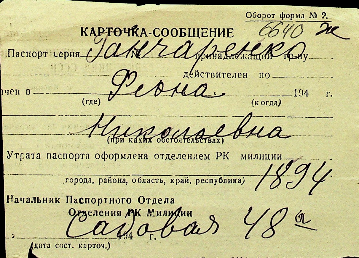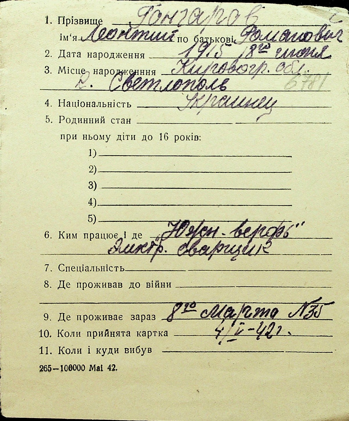• • Перелік карток до фонду № Н-1016