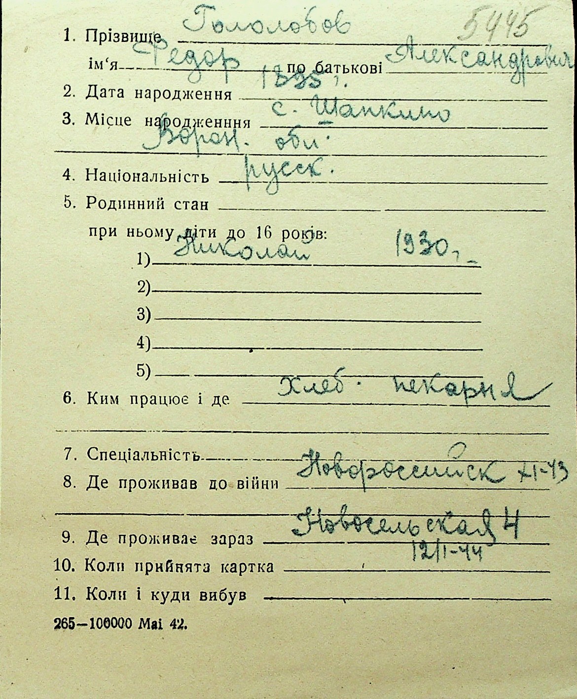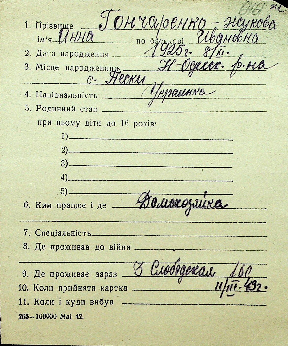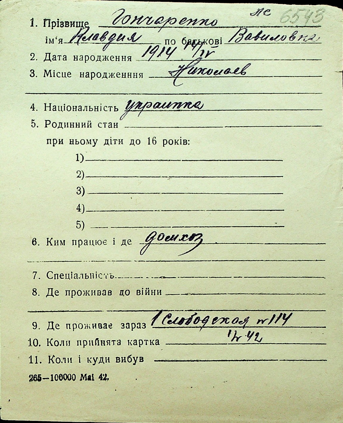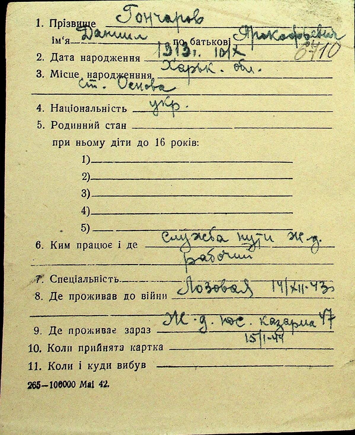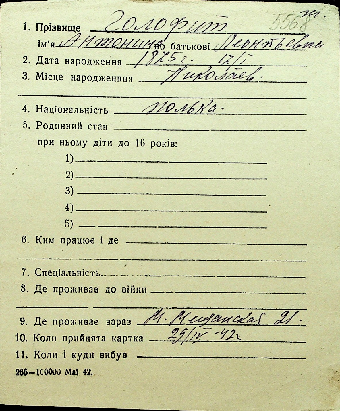 • • Перелік карток до фонду № Н-1016