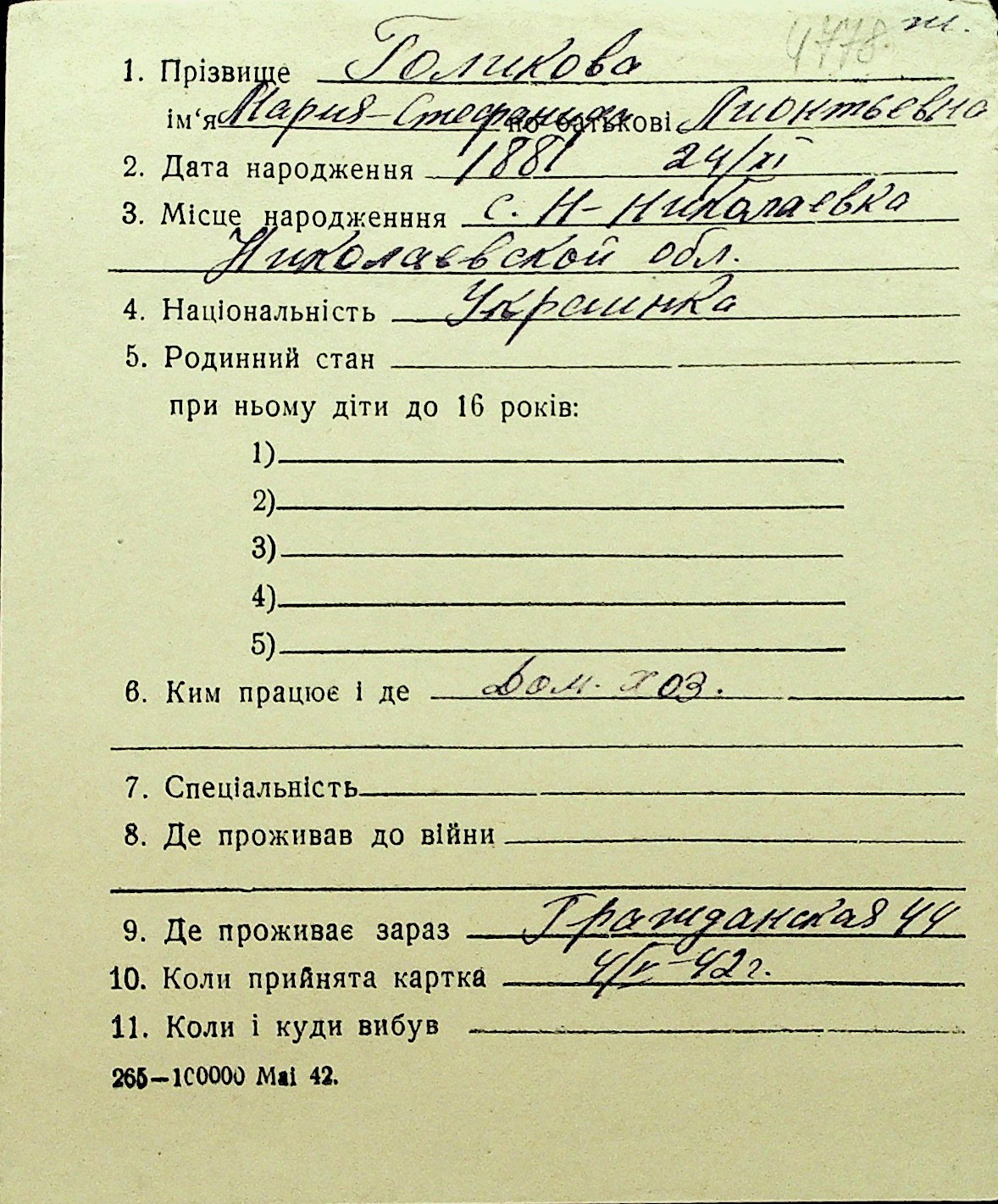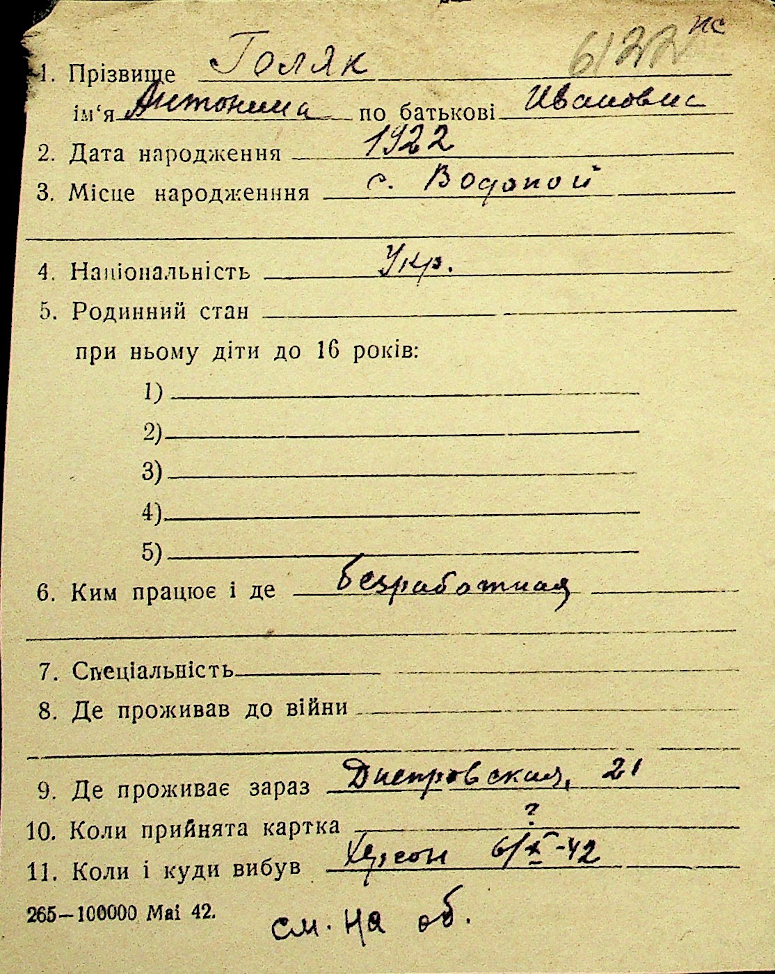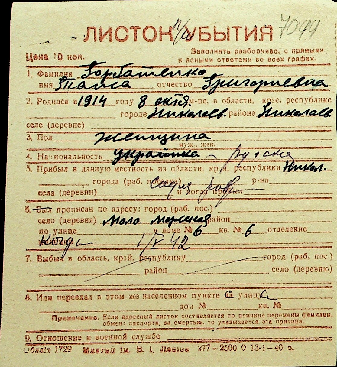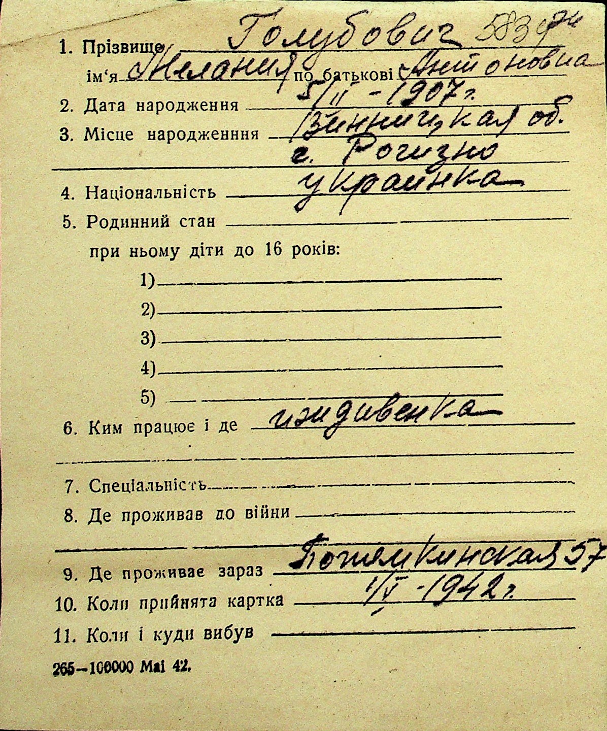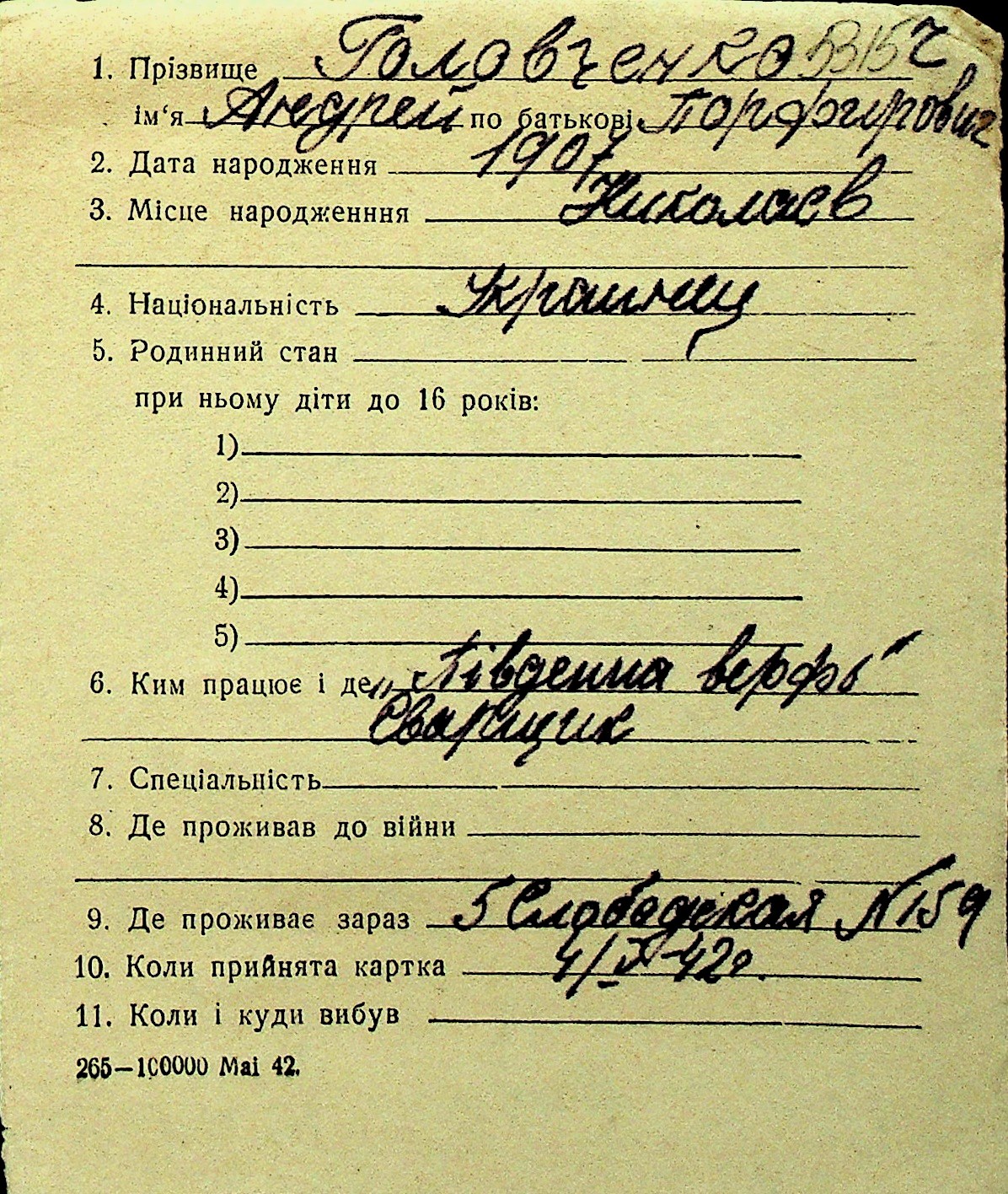 • • Перелік карток до фонду № Н-1016