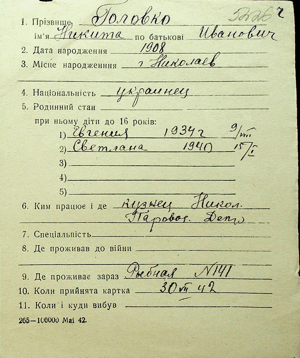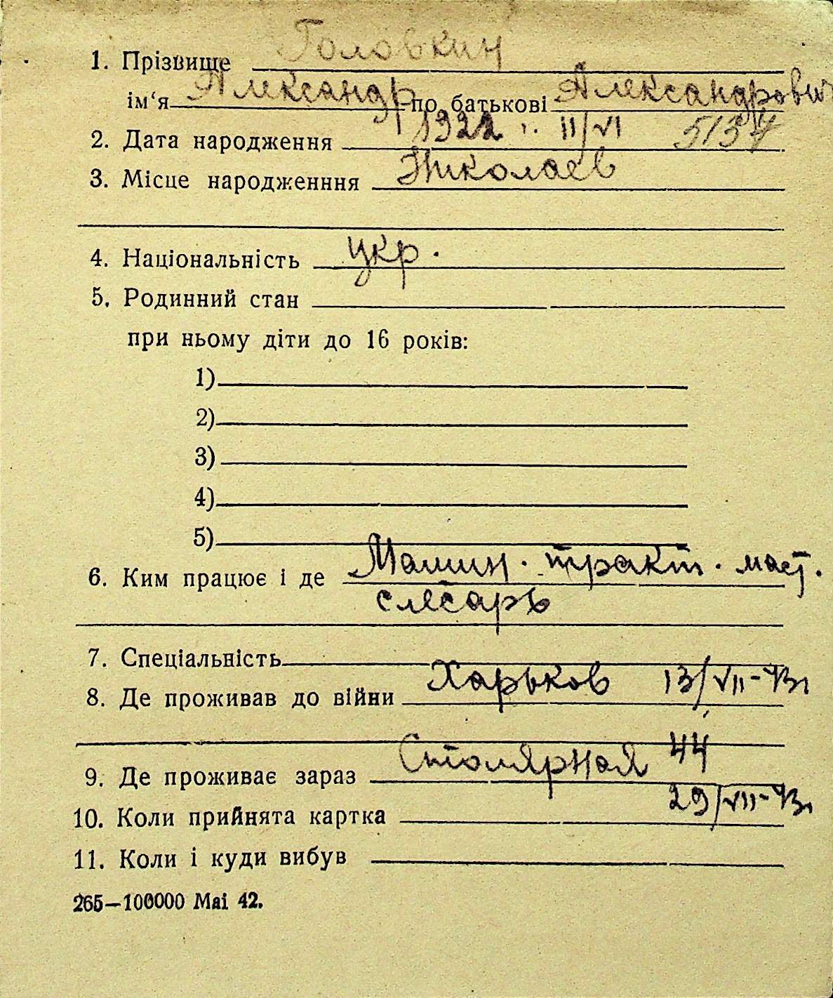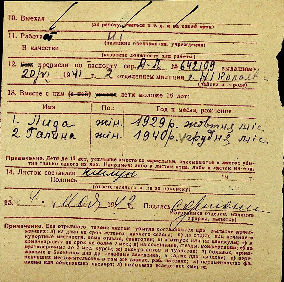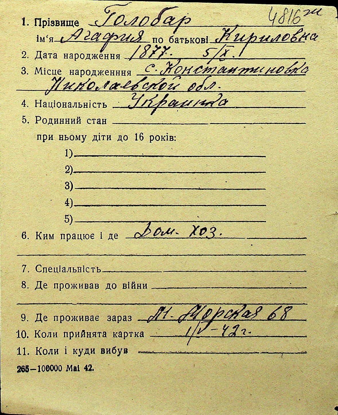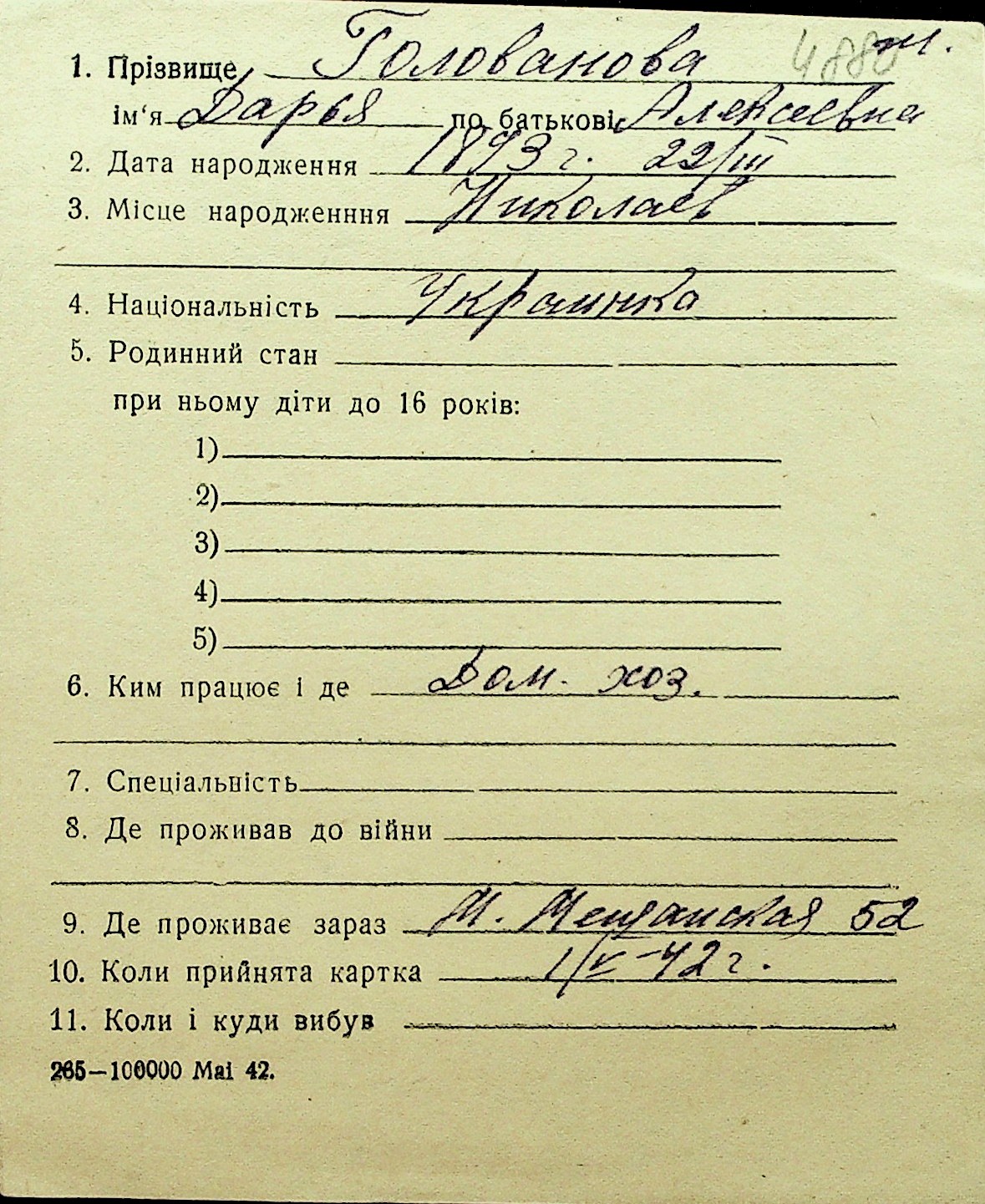 • • Перелік карток до фонду № Н-1016