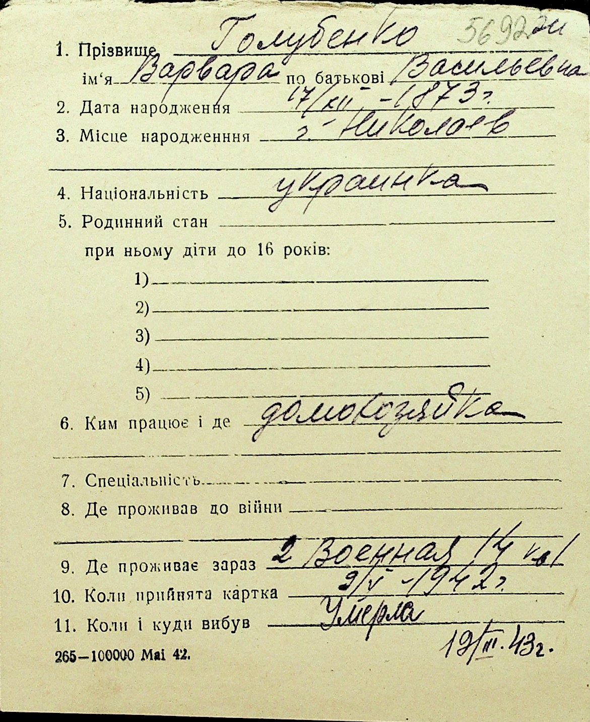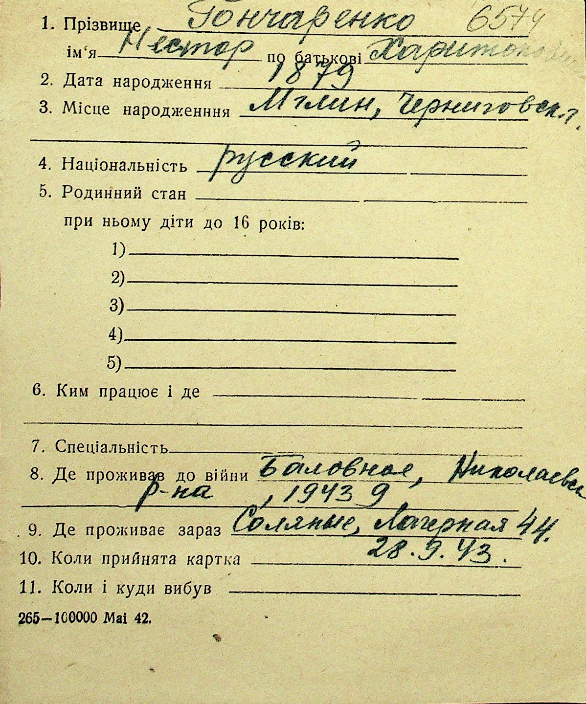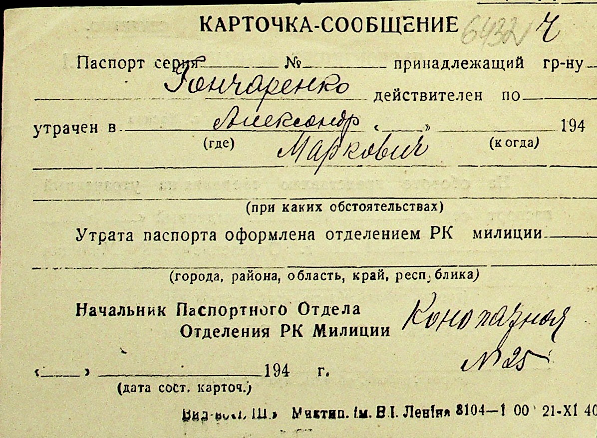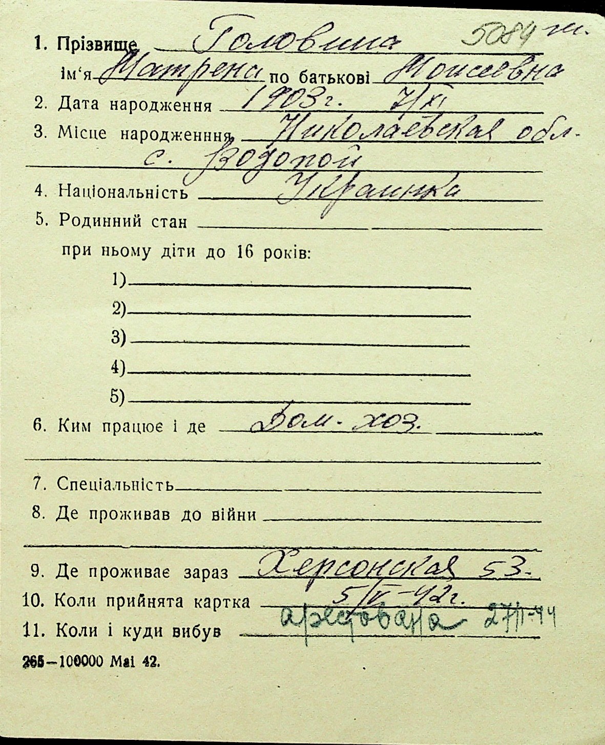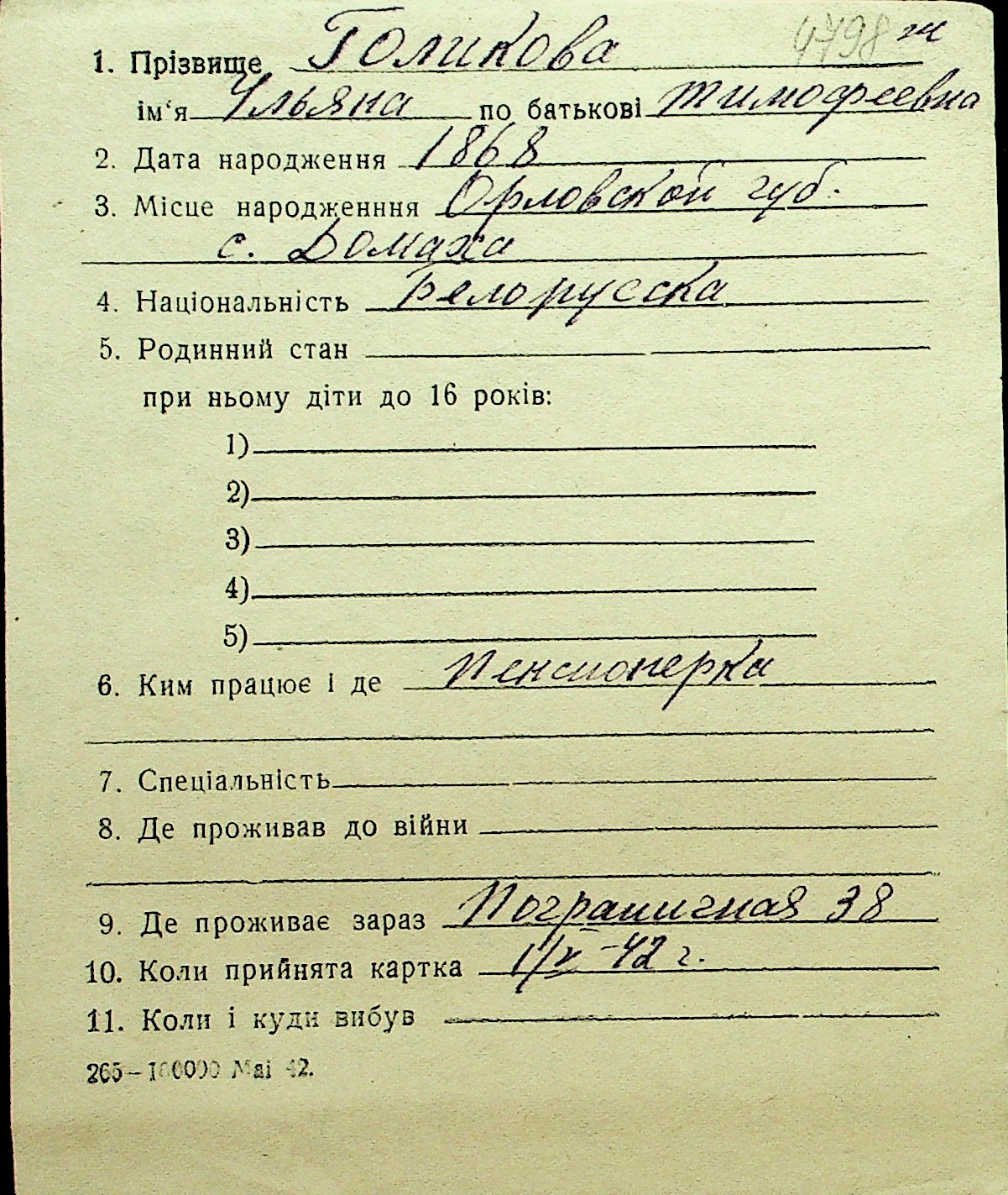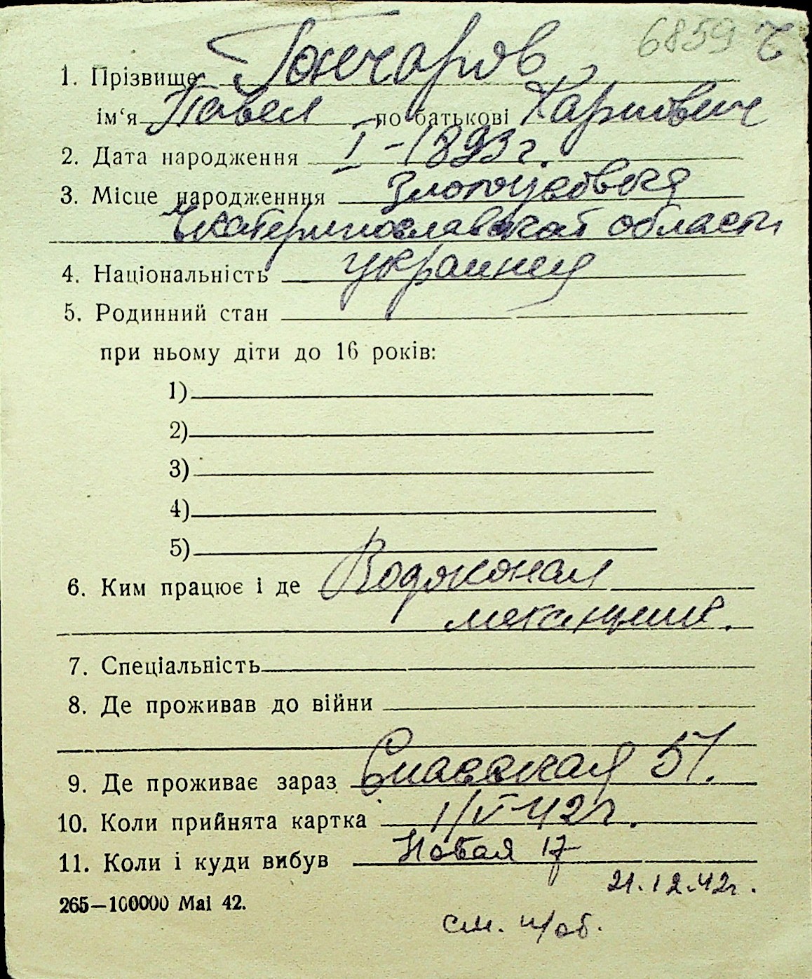 • • Перелік карток до фонду № Н-1016