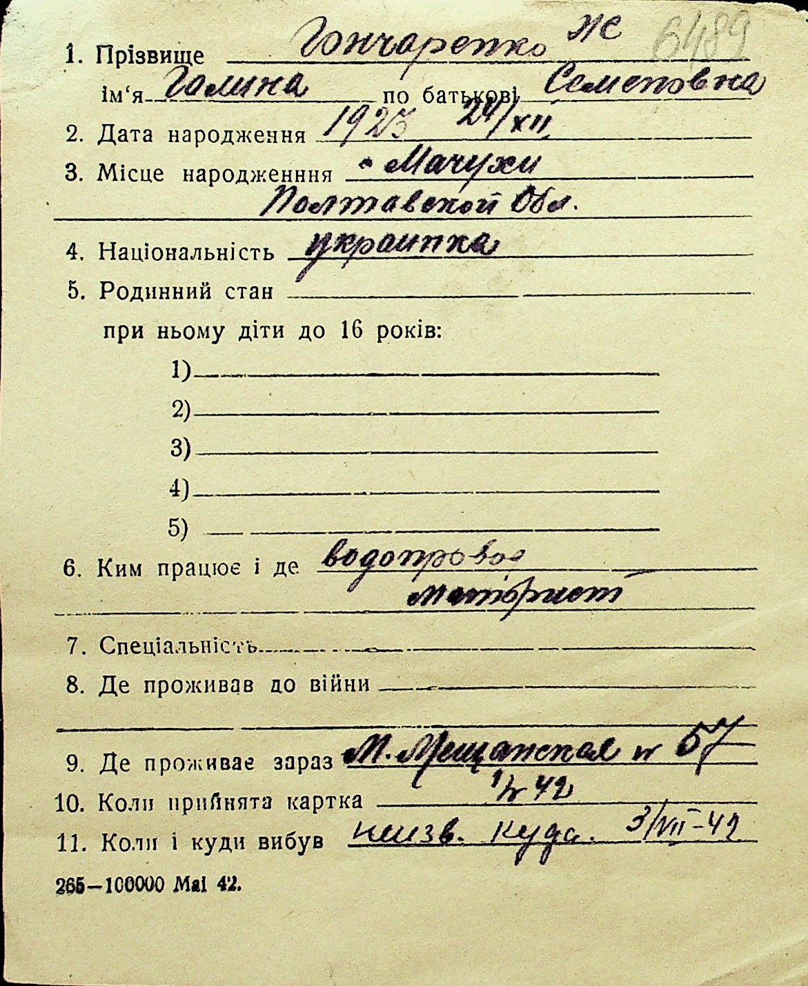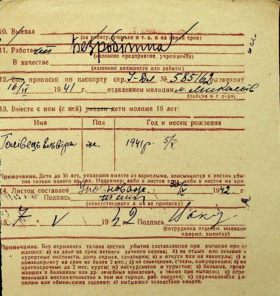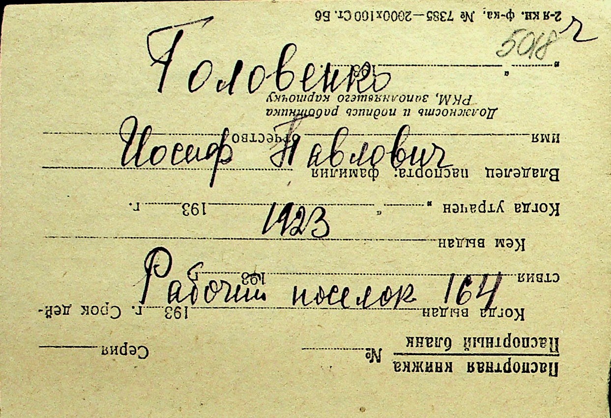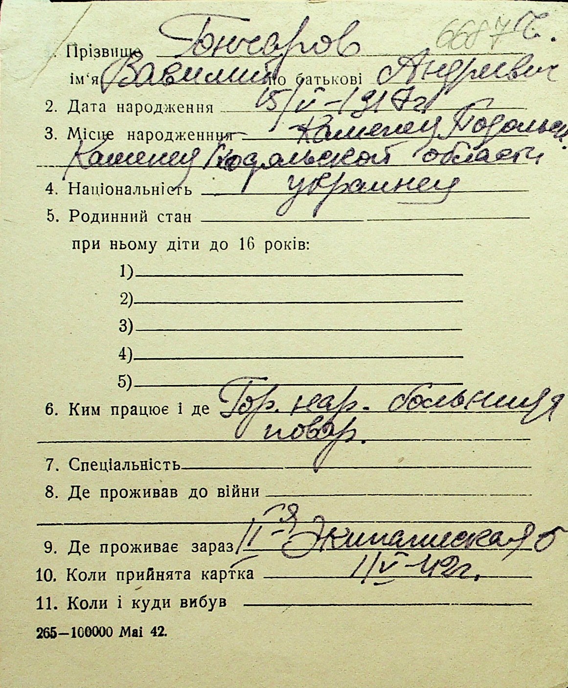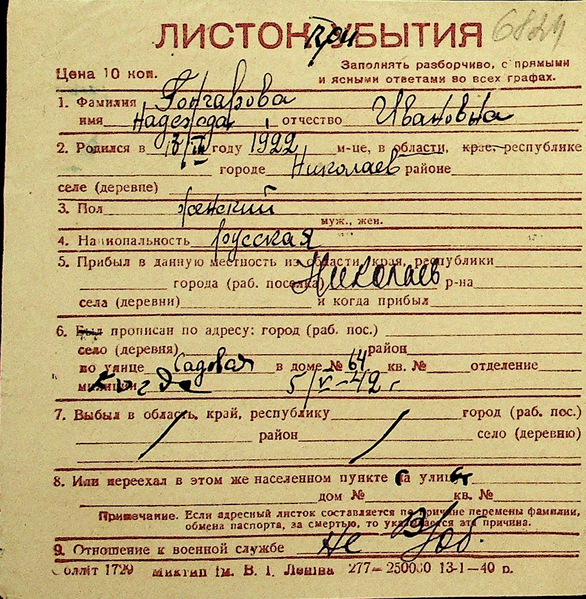 • • Перелік карток до фонду № Н-1016