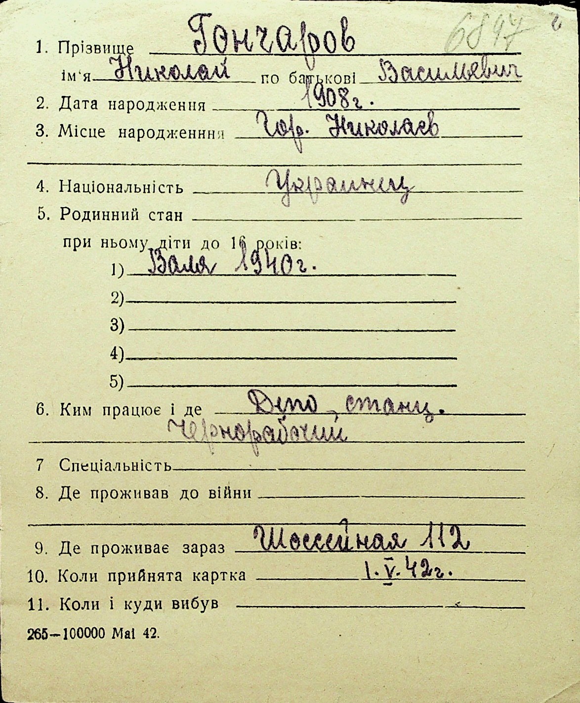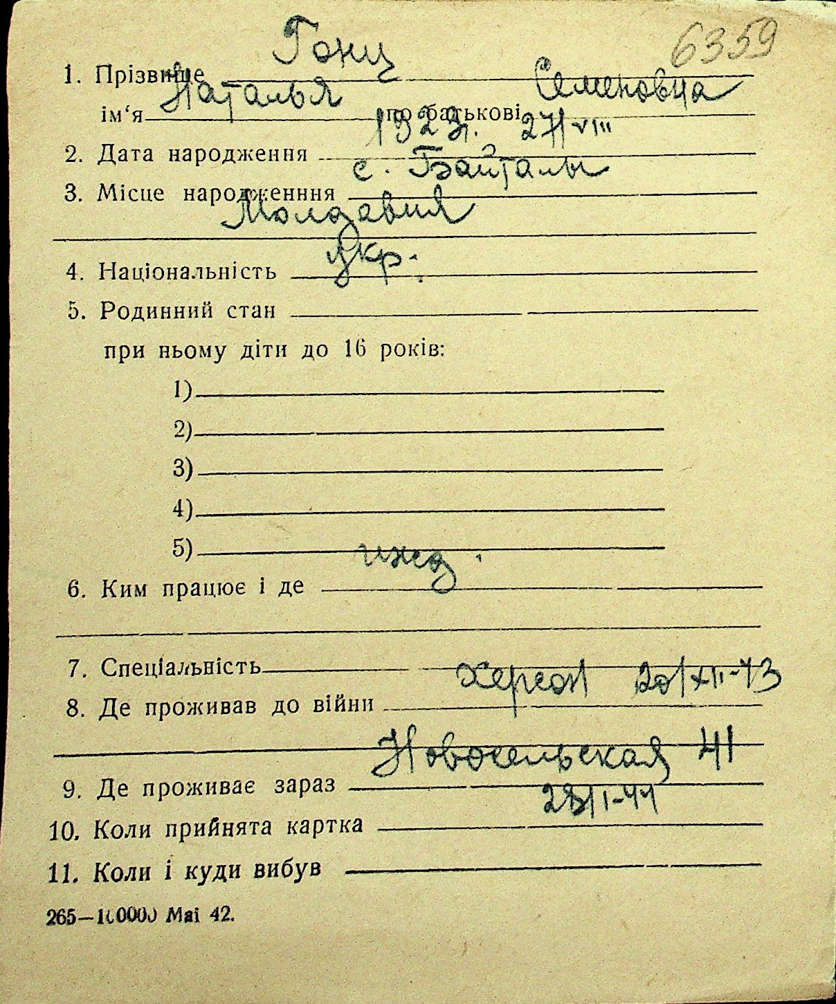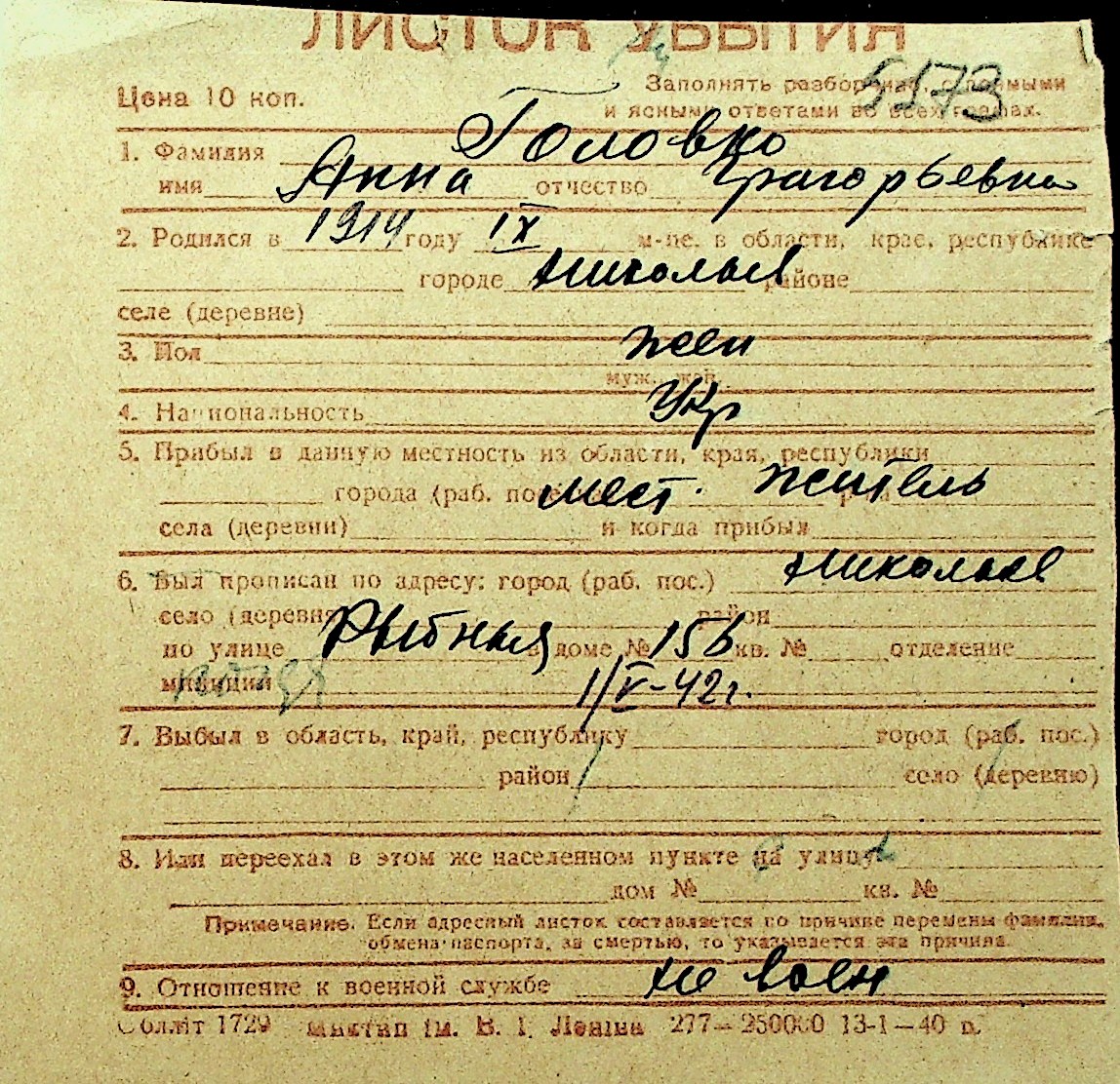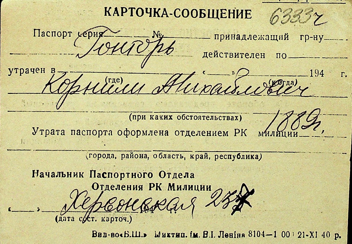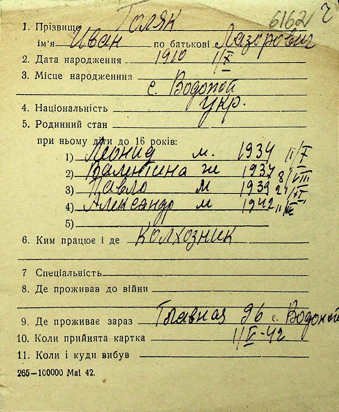 • • Перелік карток до фонду № Н-1016