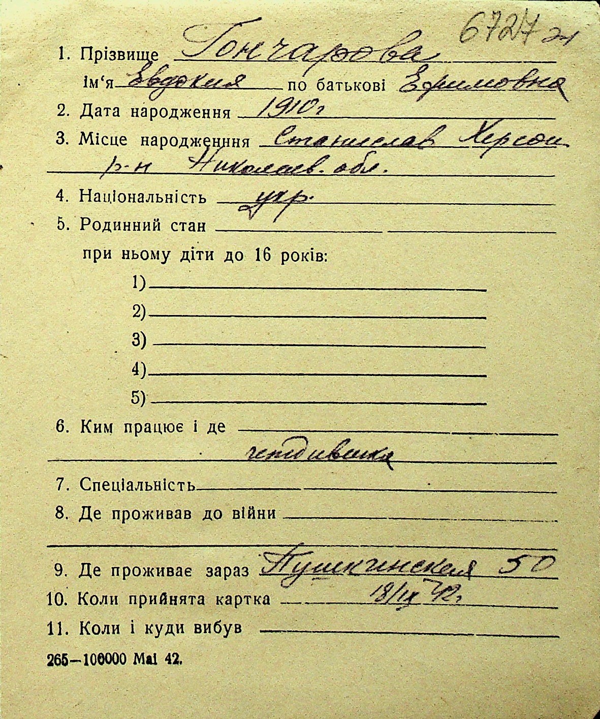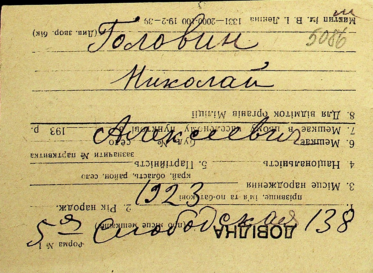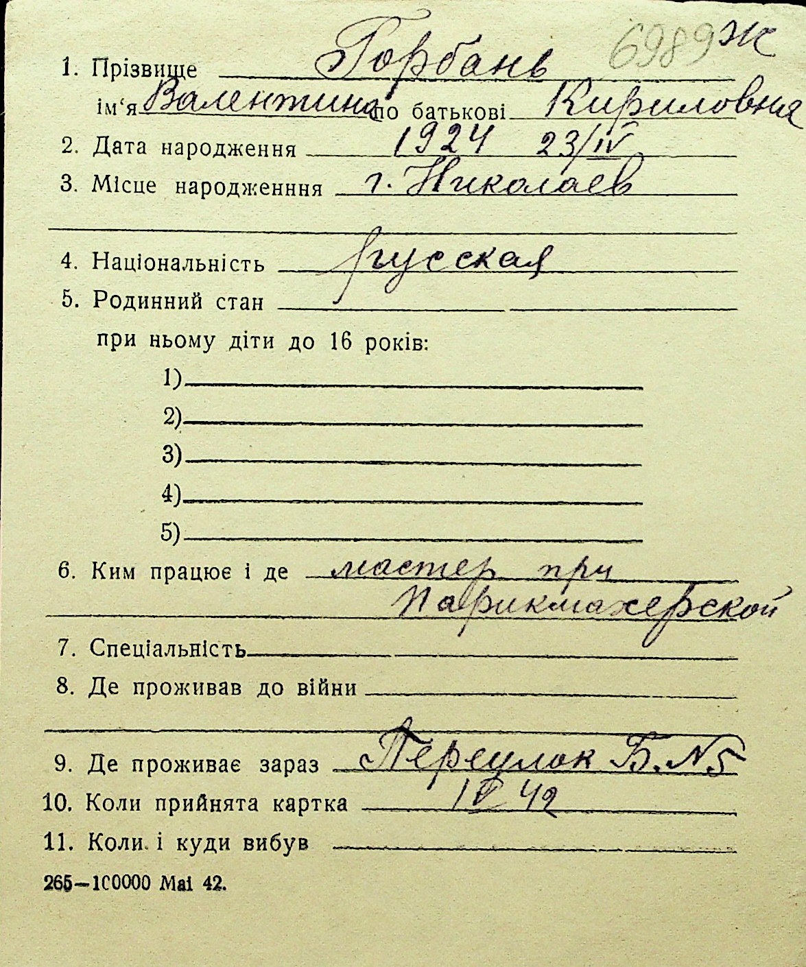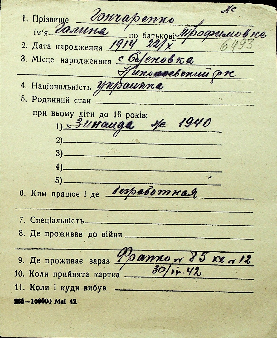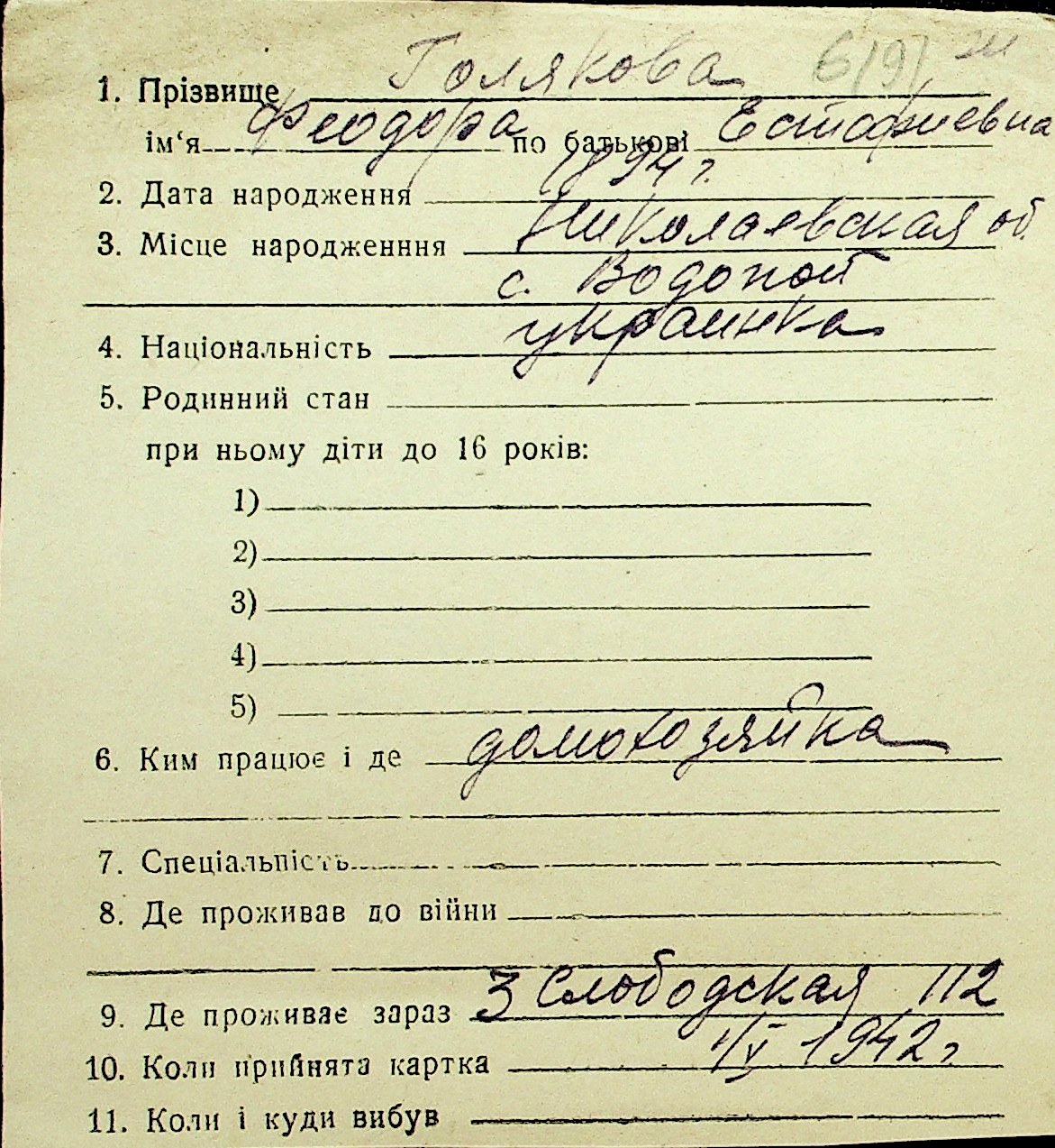 • • Перелік карток до фонду № Н-1016