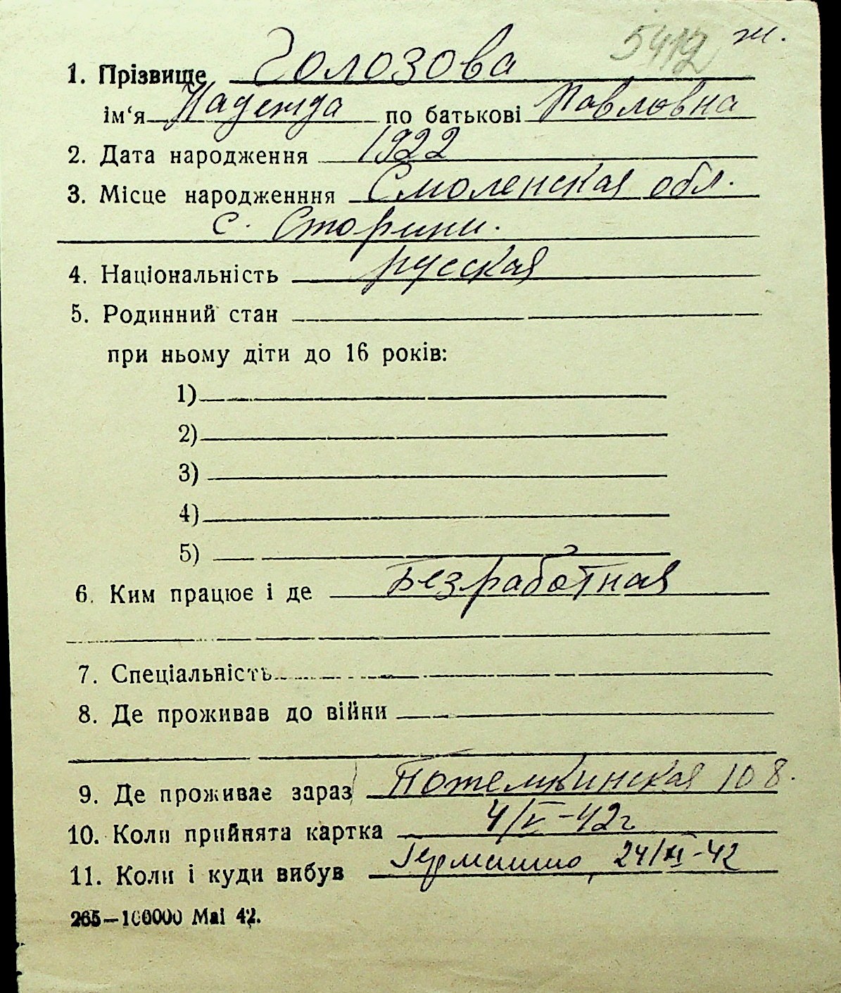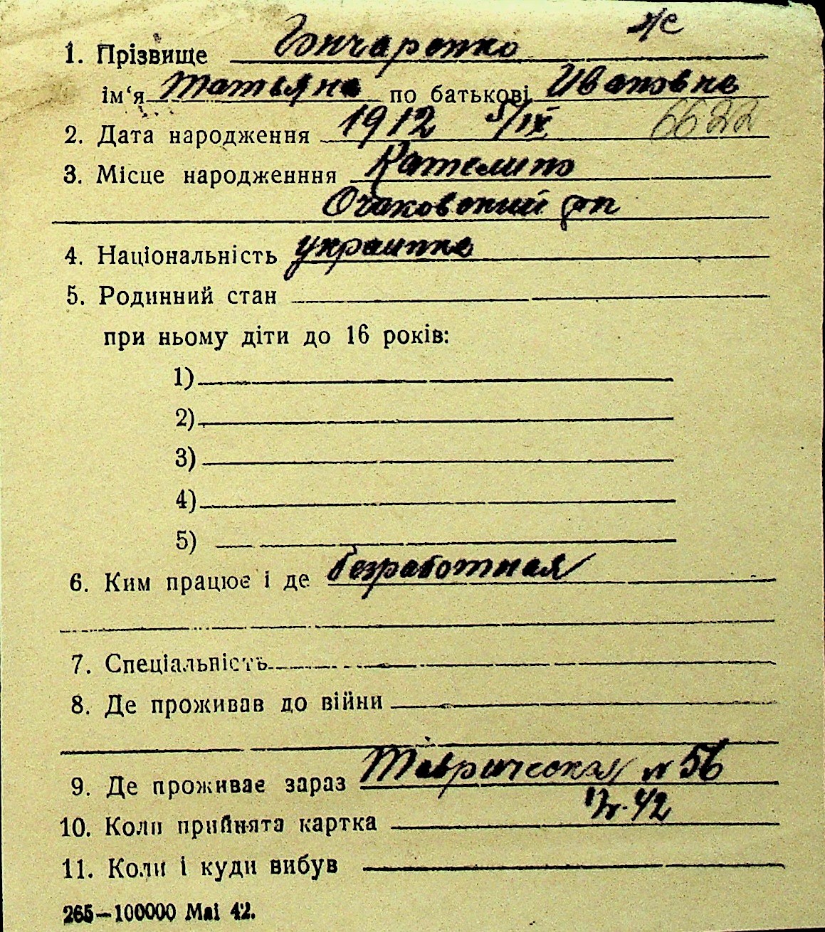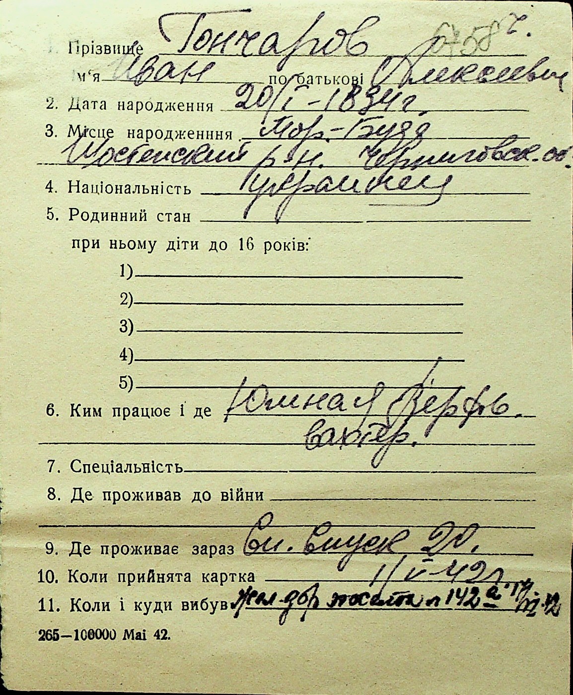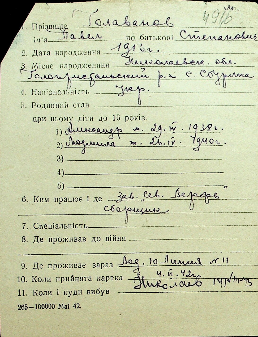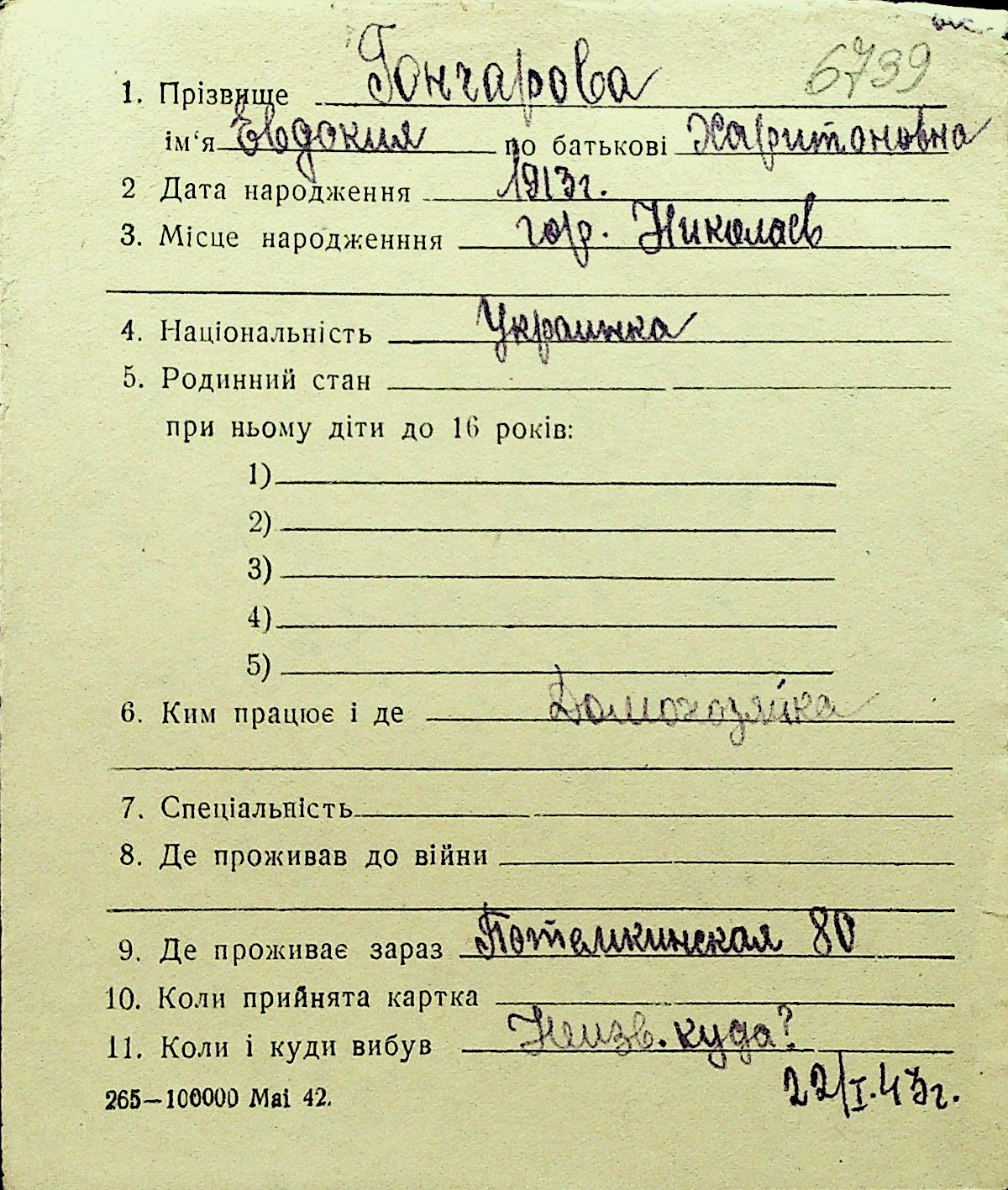 • • Перелік карток до фонду № Н-1016