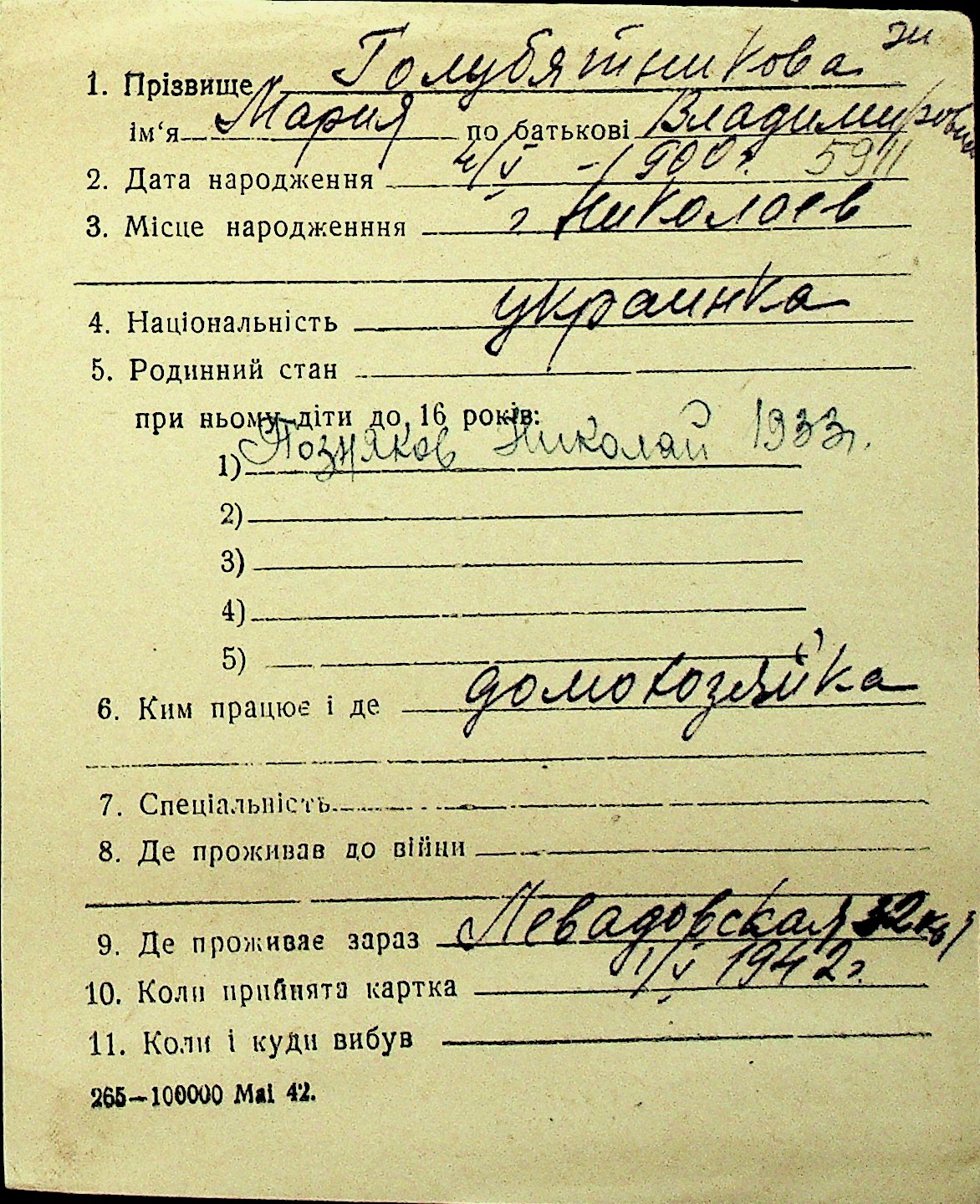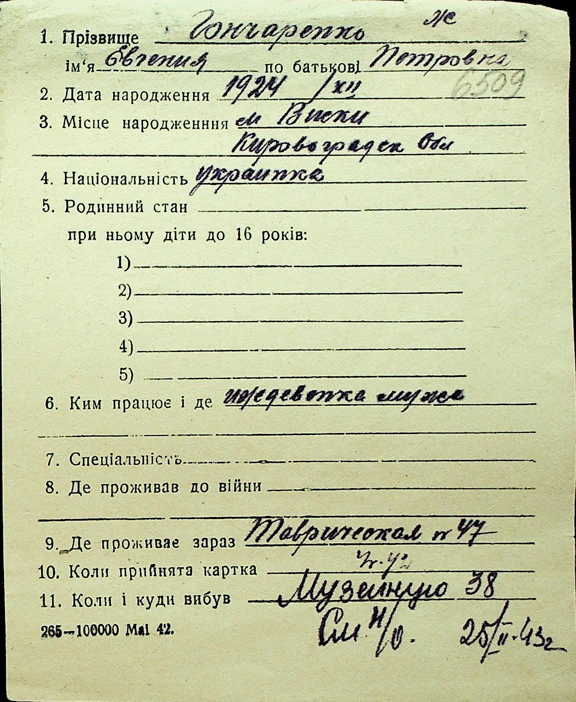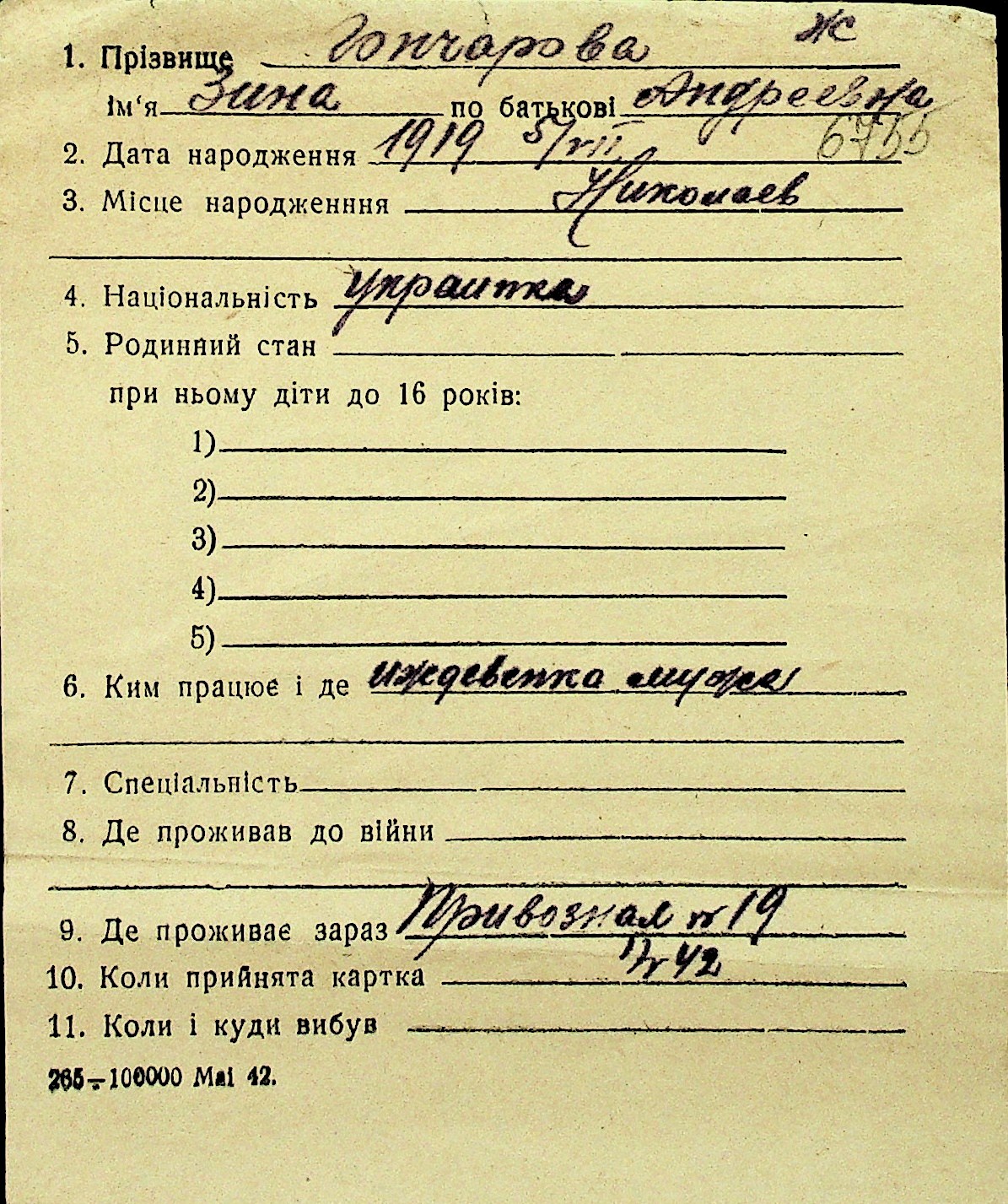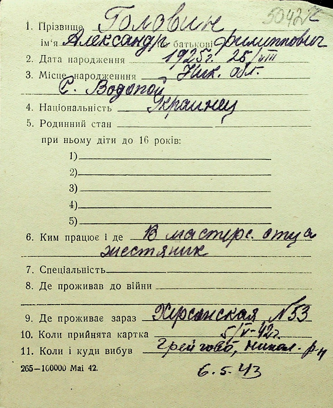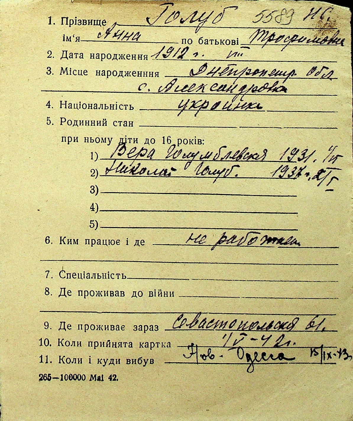 • • Перелік карток до фонду № Н-1016
