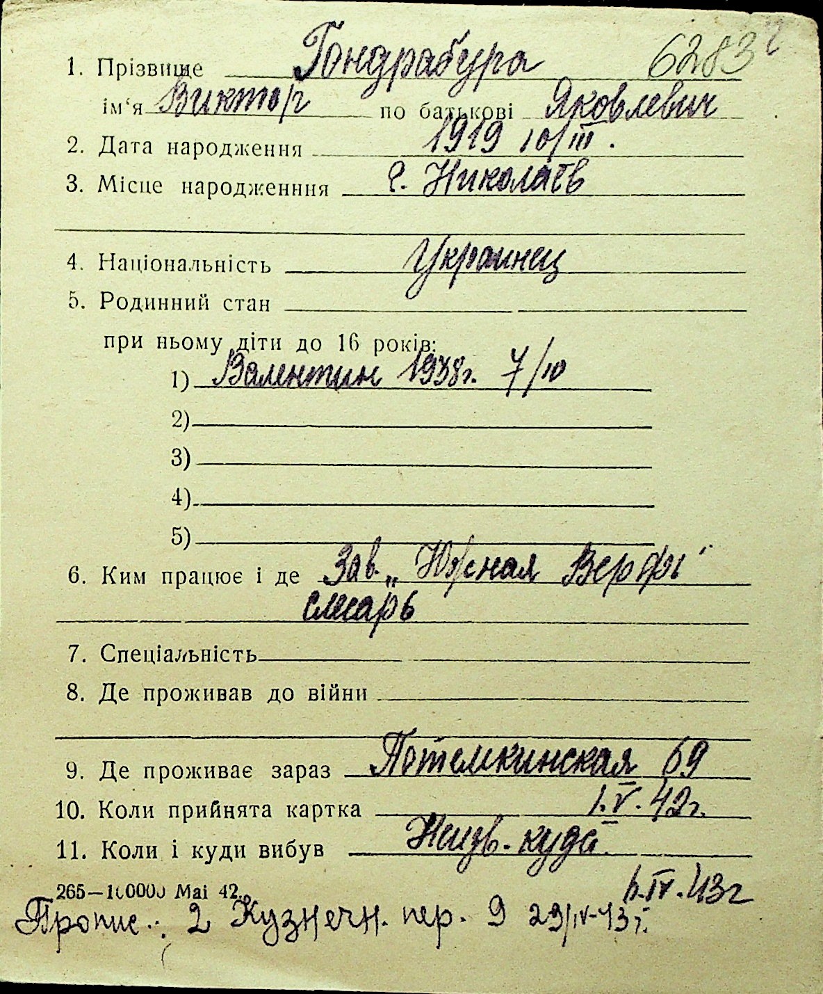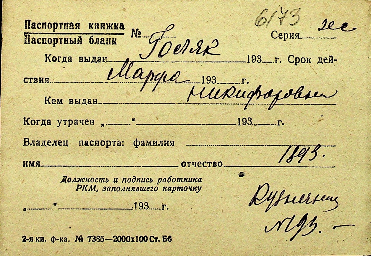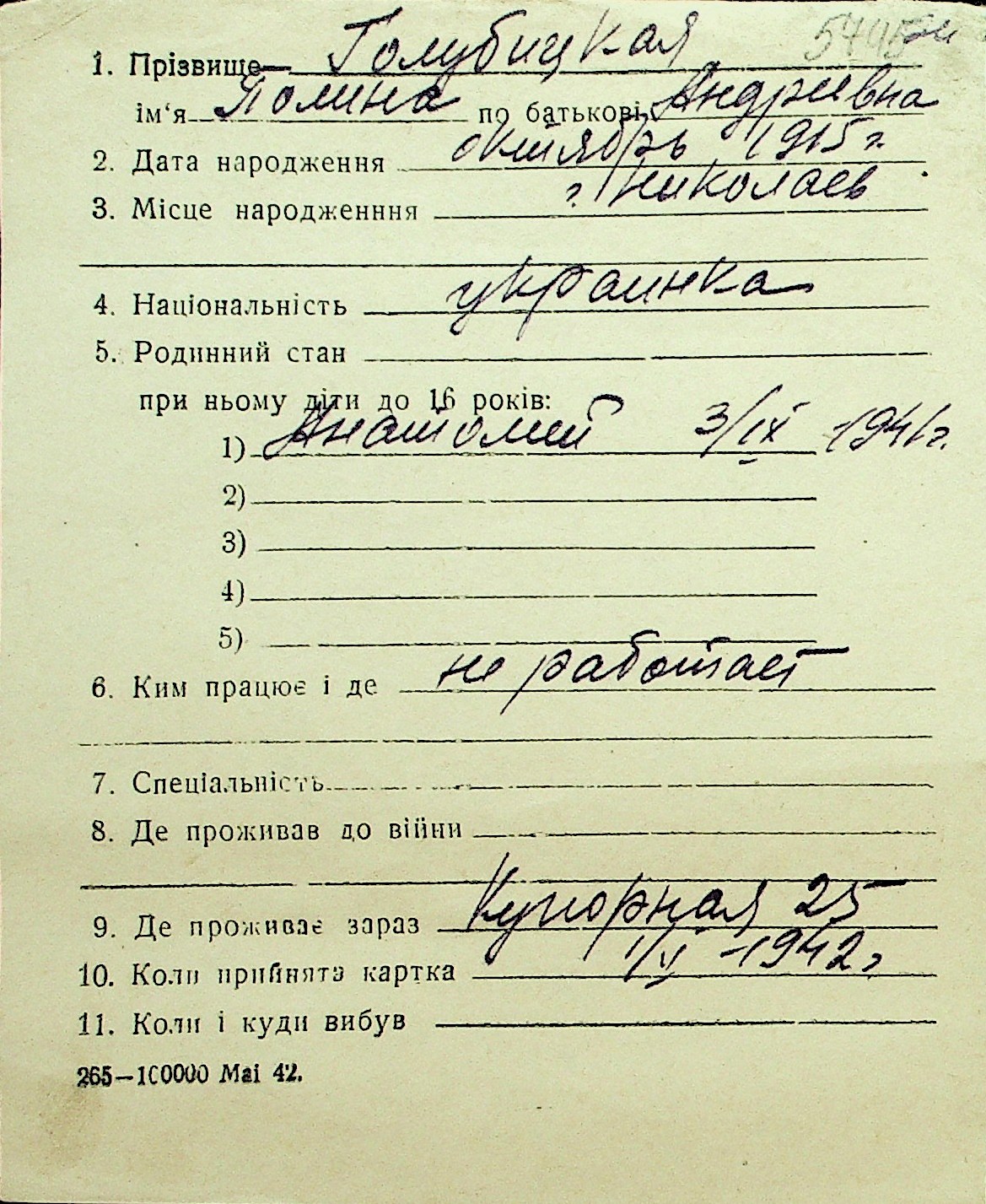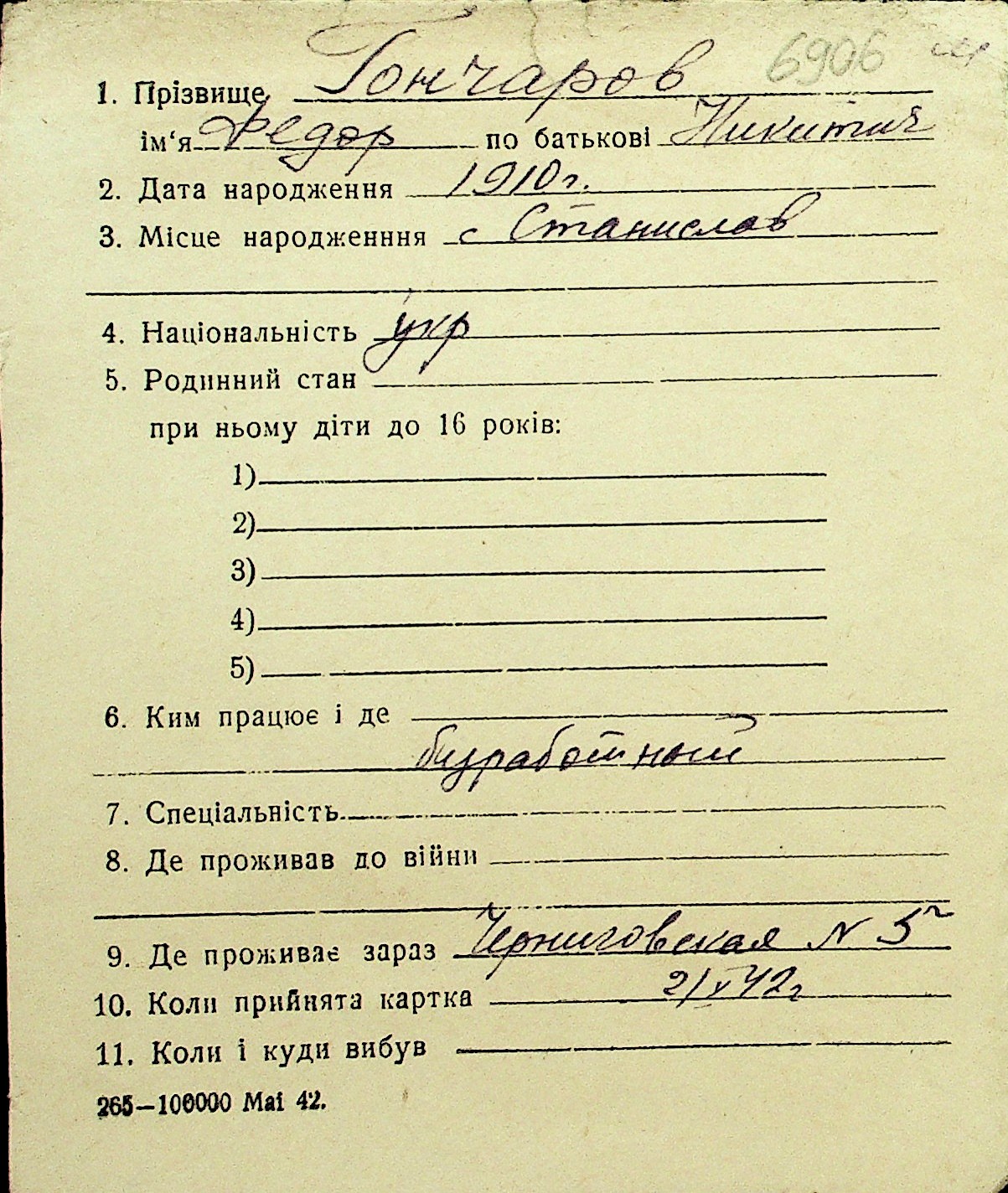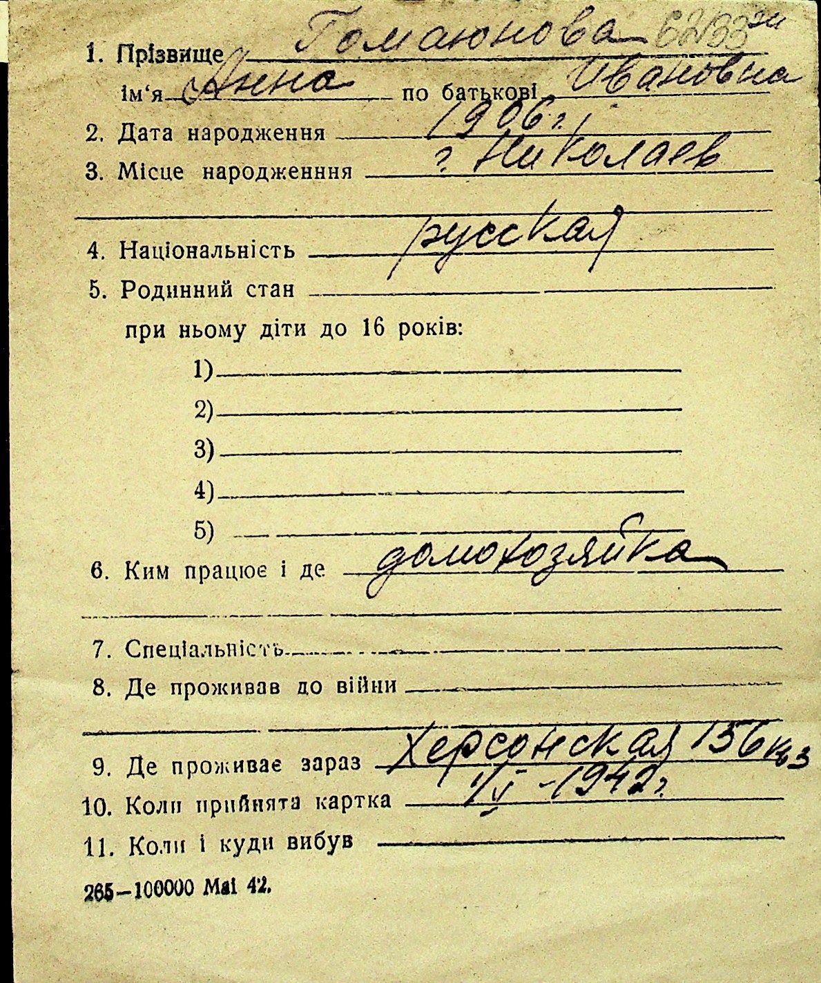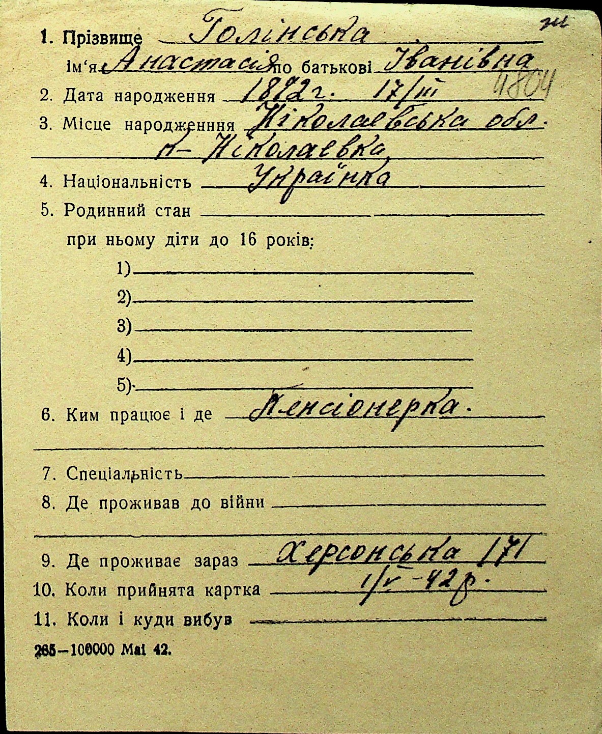 • • Перелік карток до фонду № Н-1016