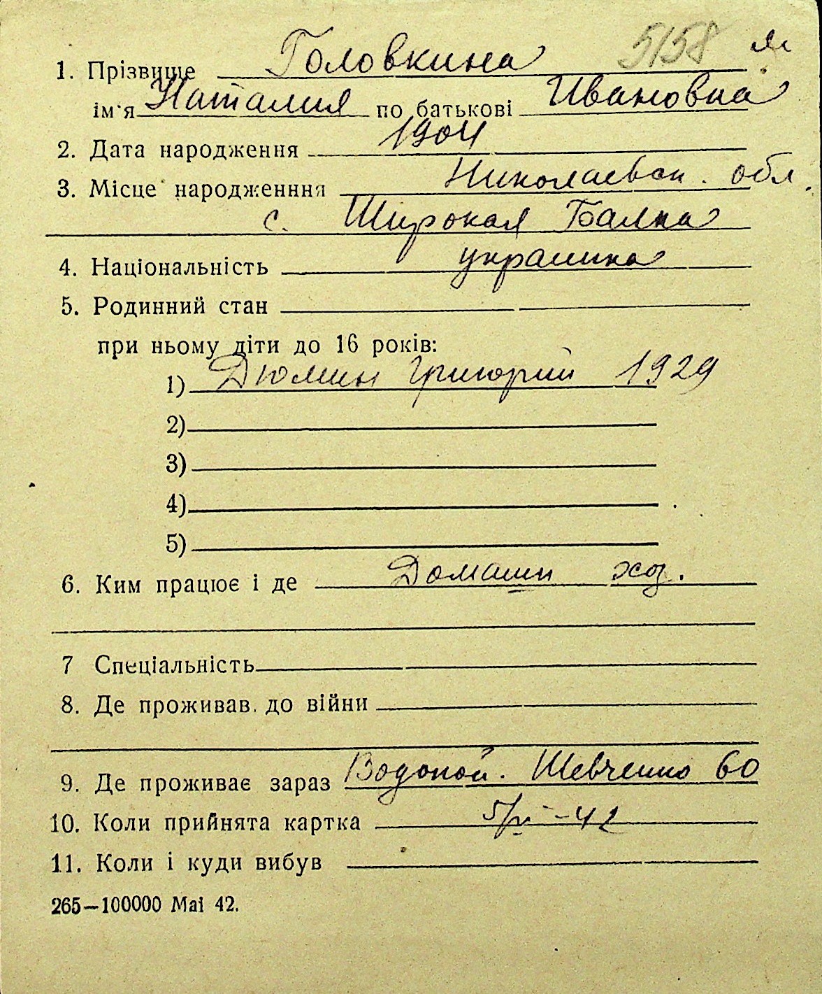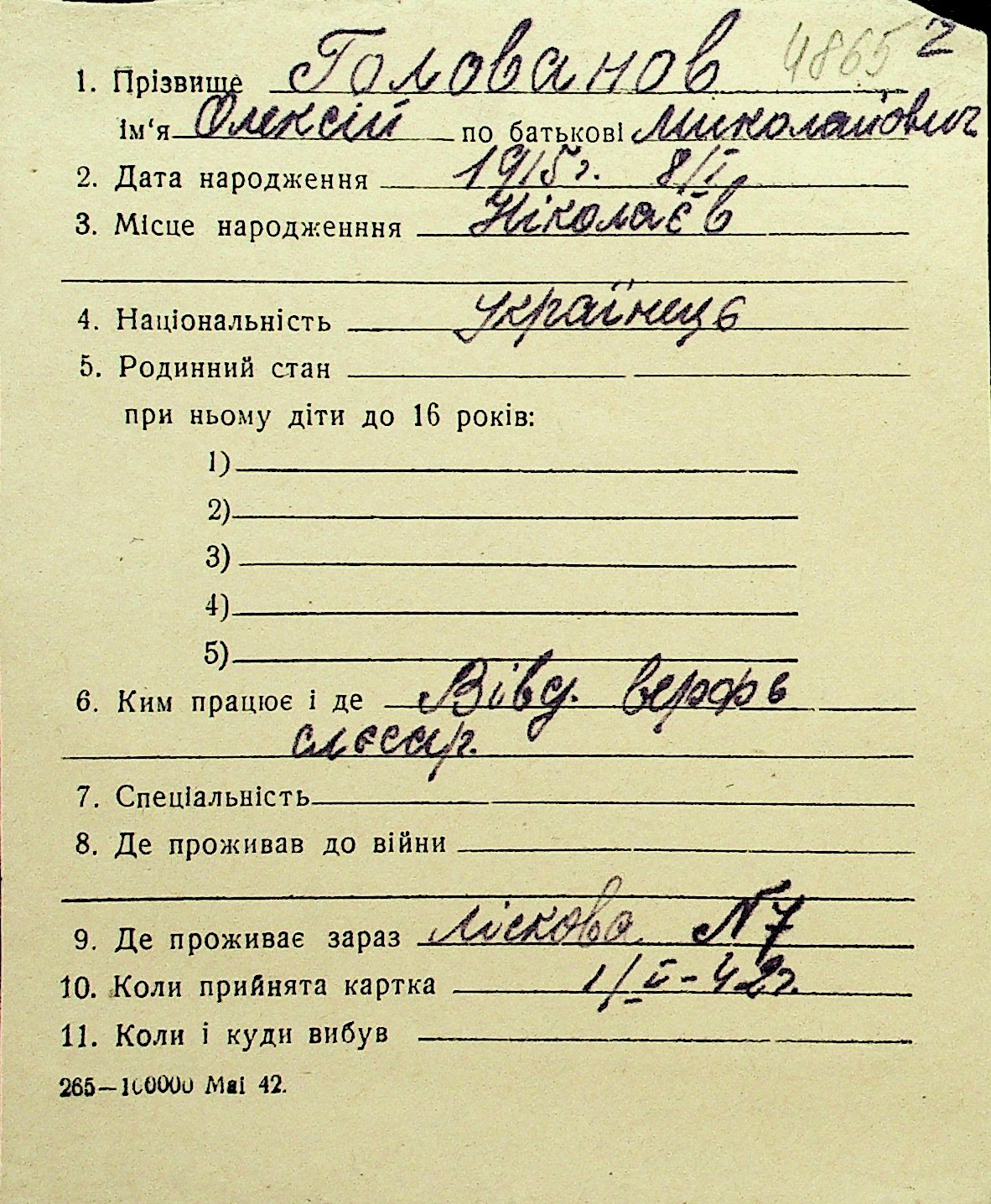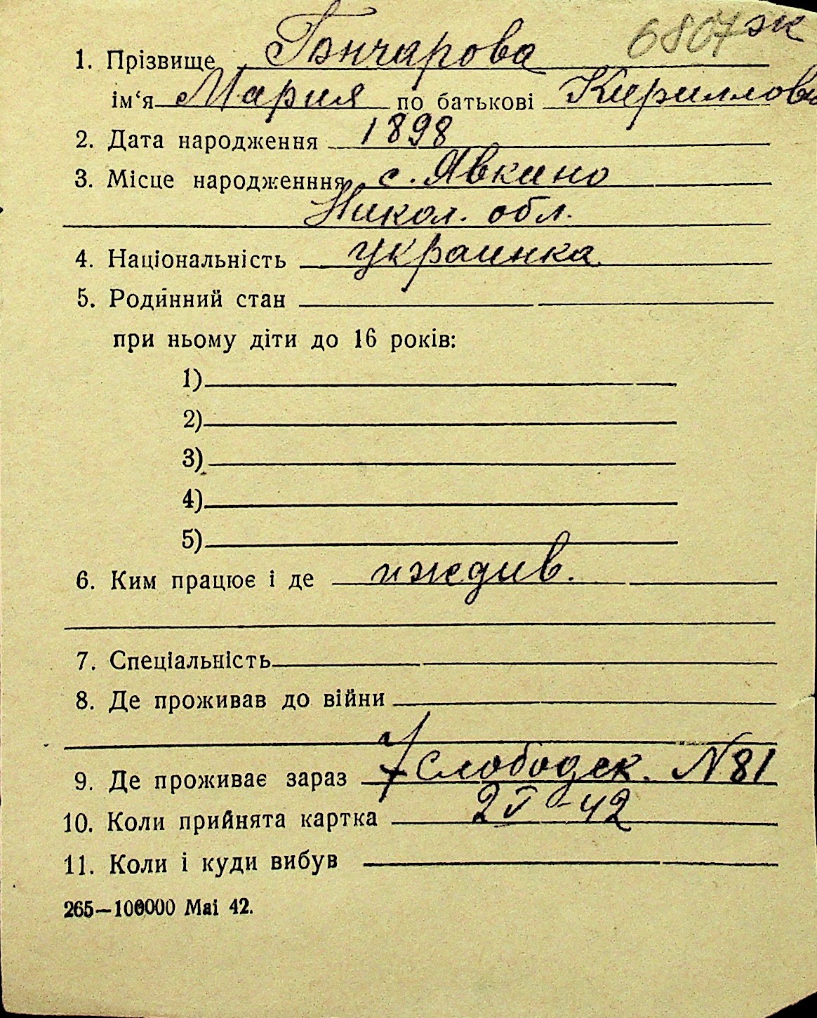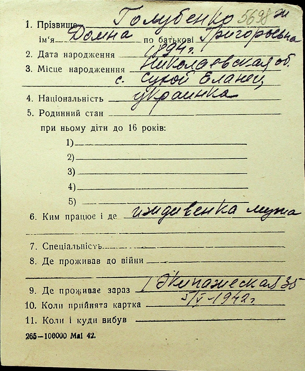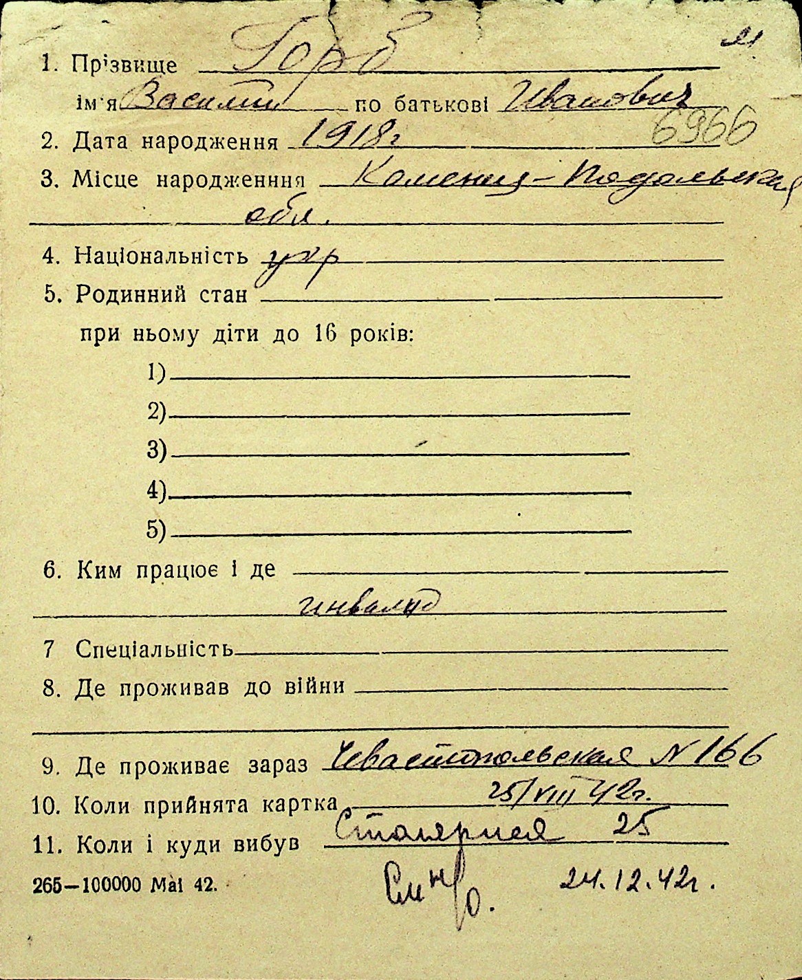 • • Перелік карток до фонду № Н-1016