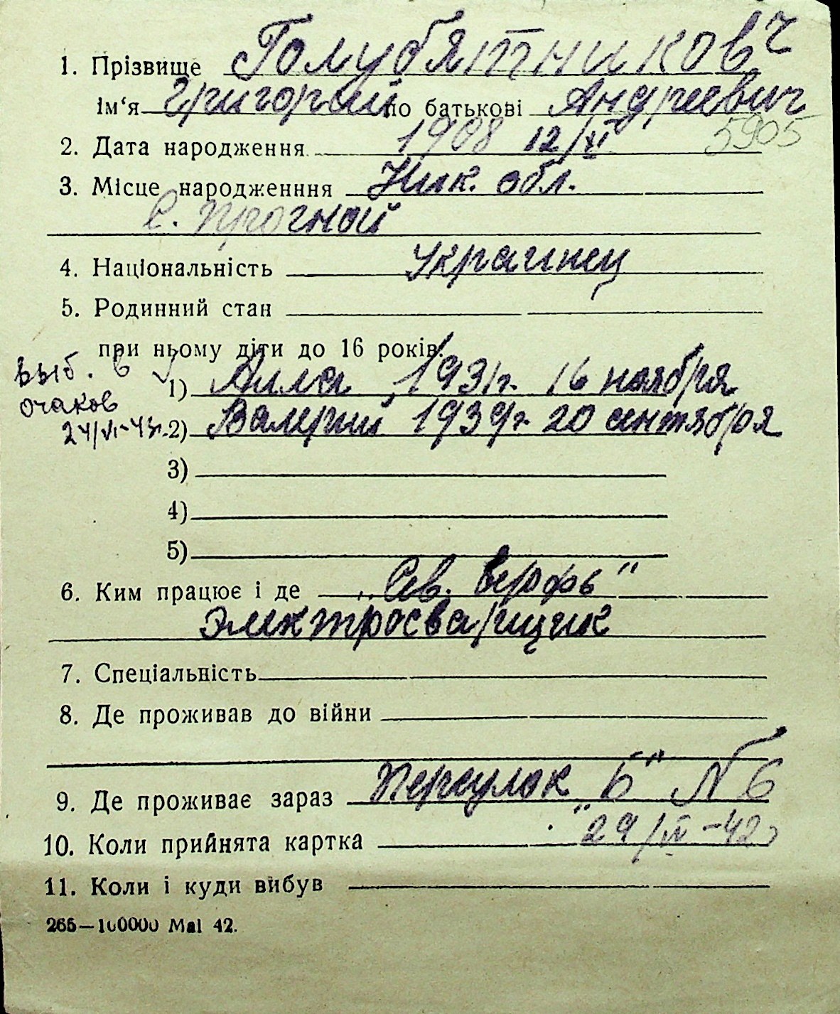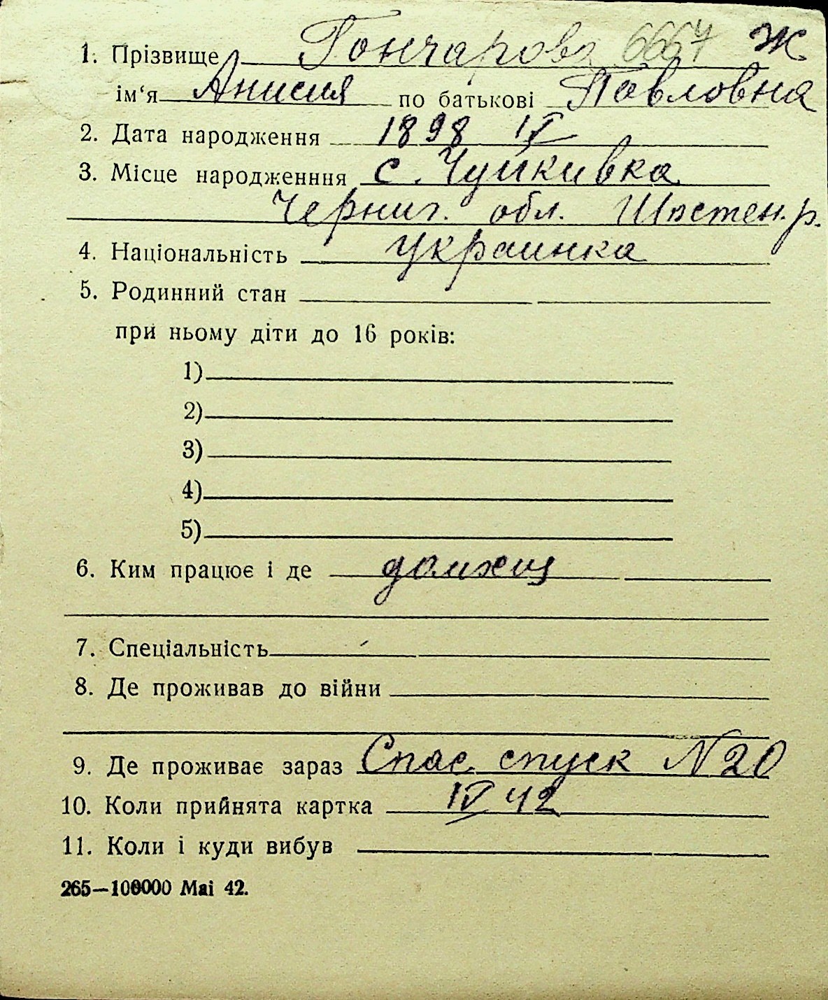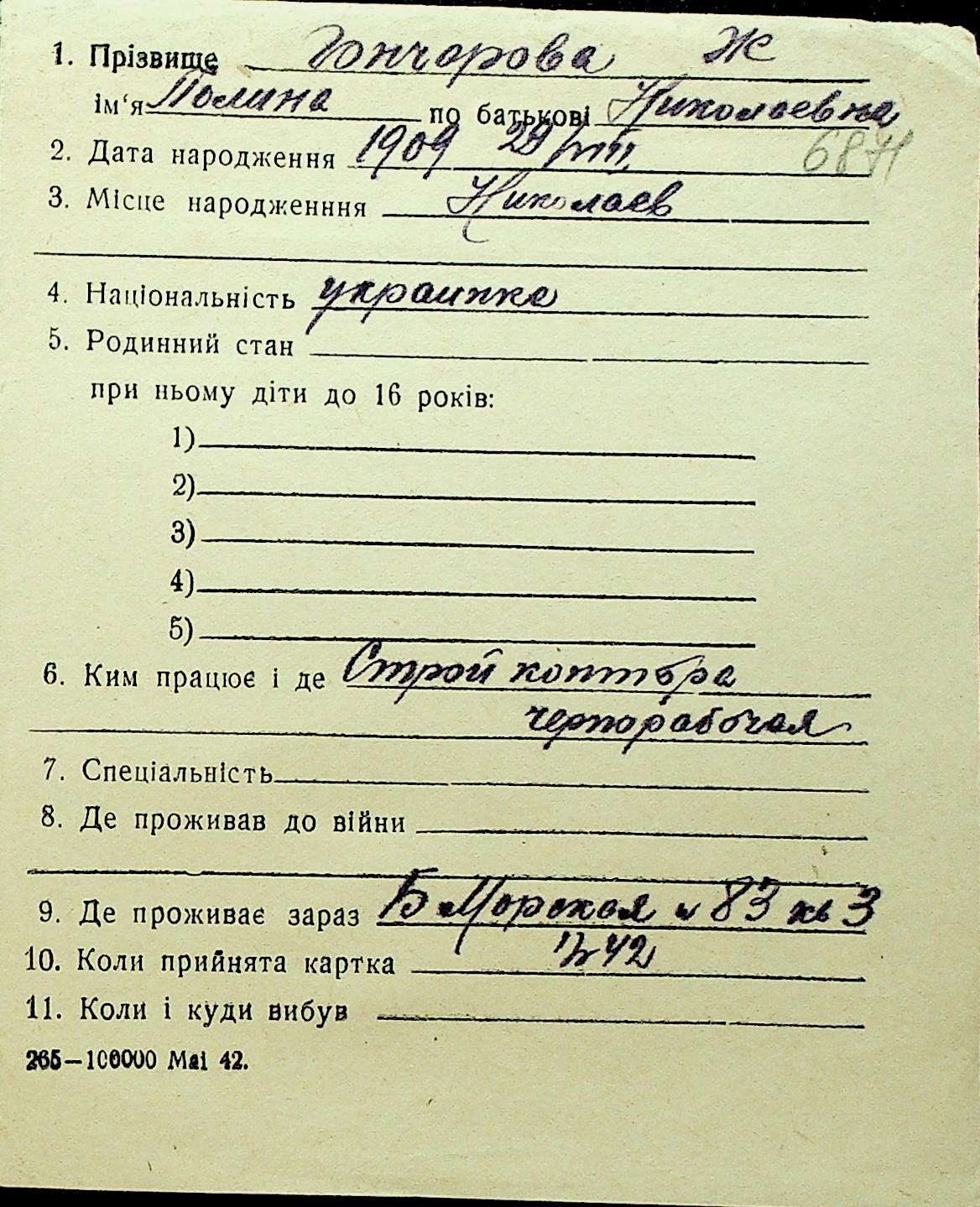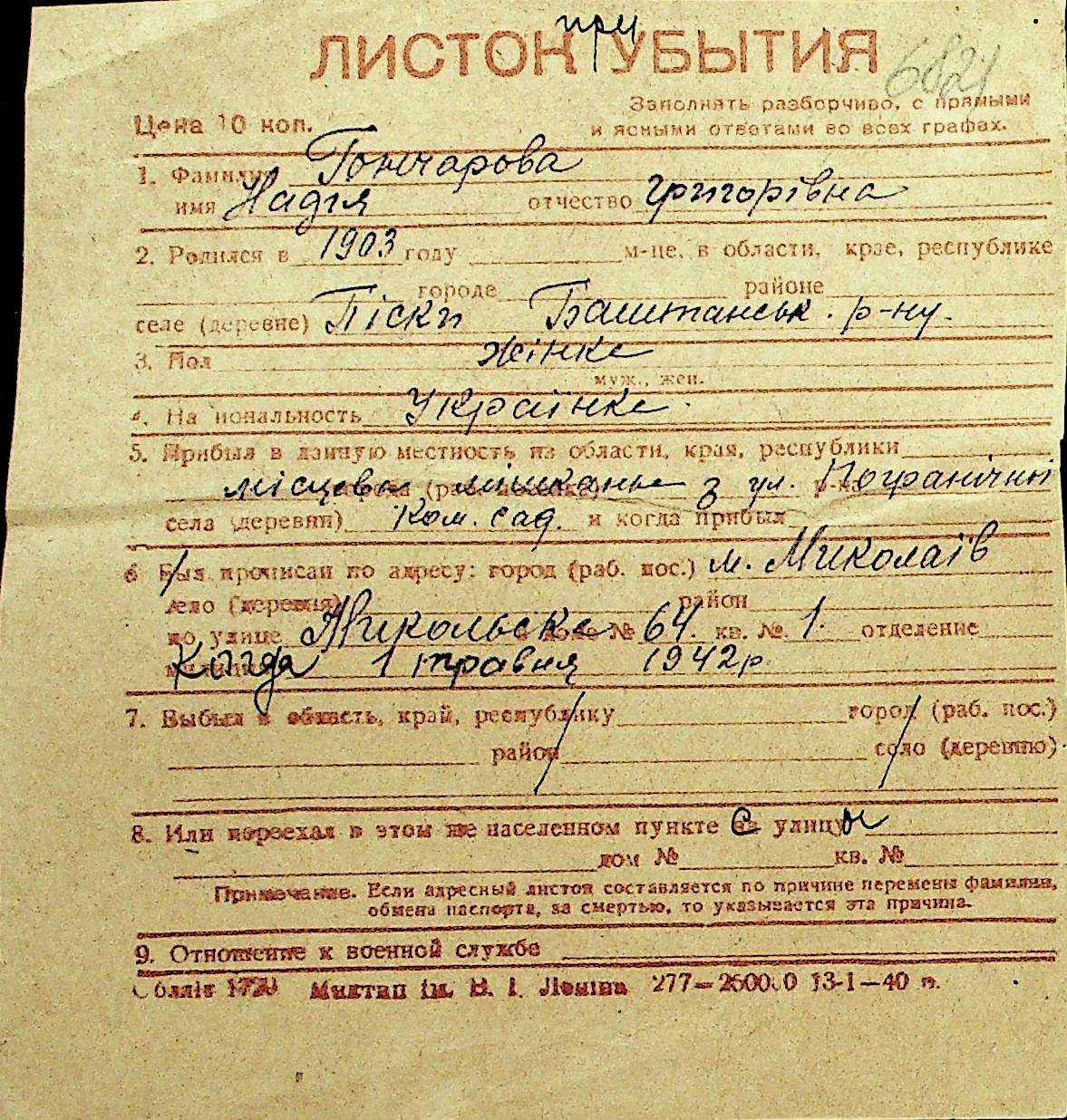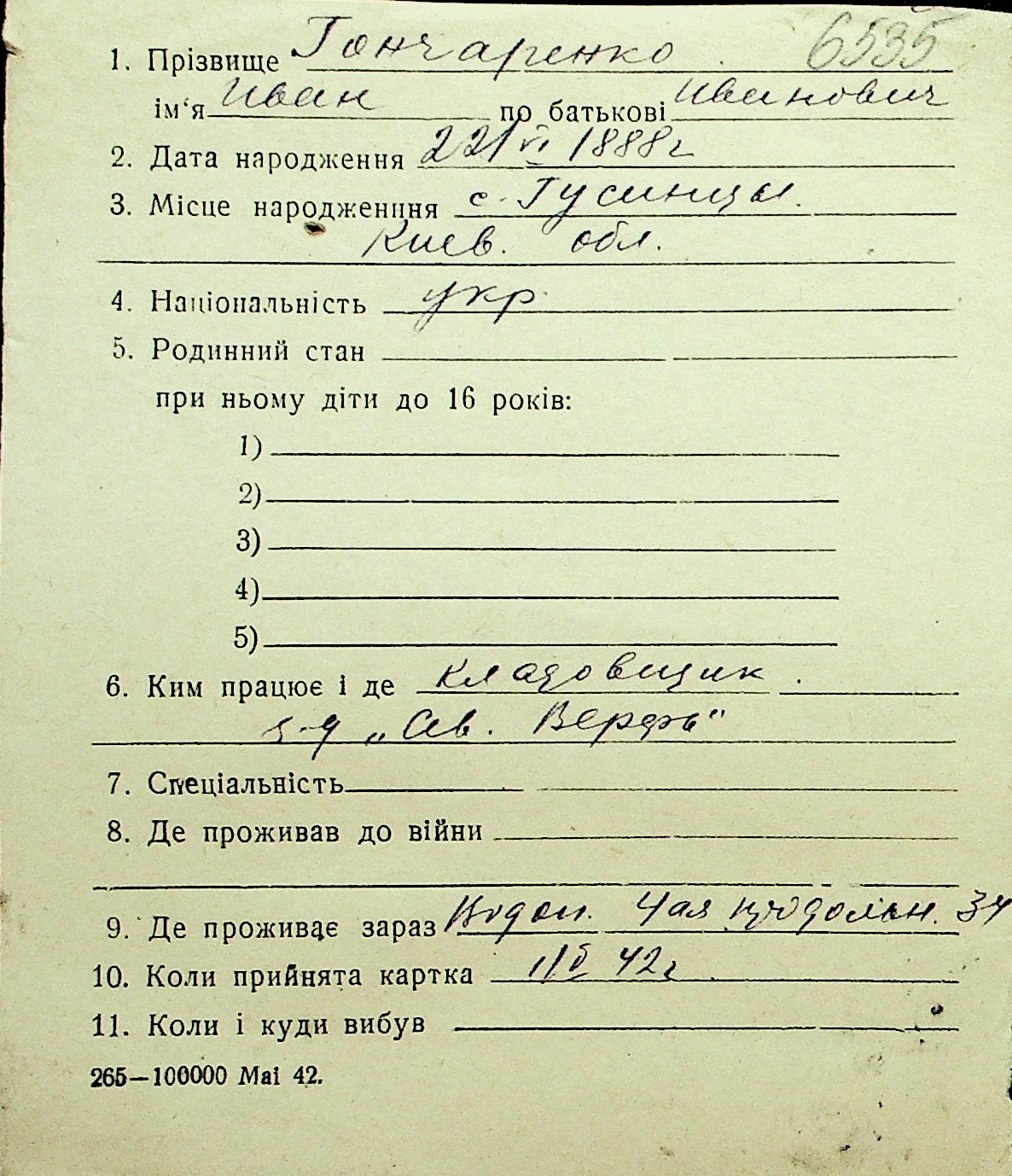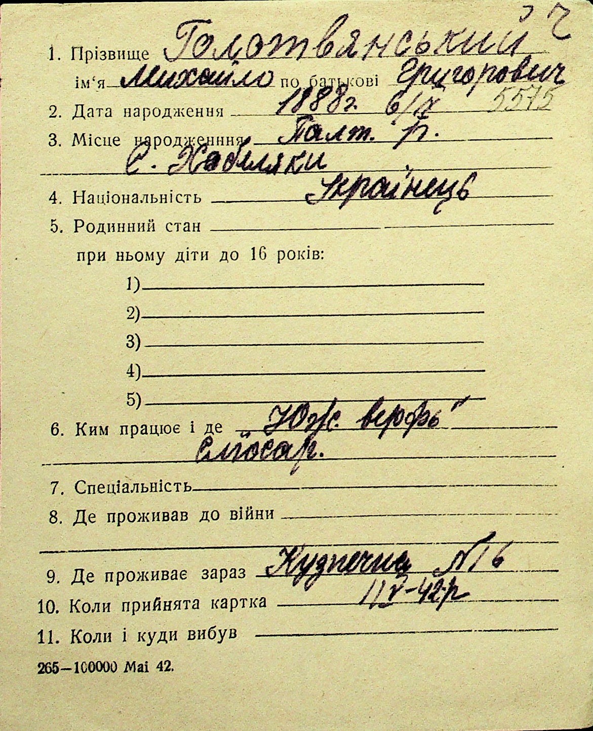 • • Перелік карток до фонду № Н-1016