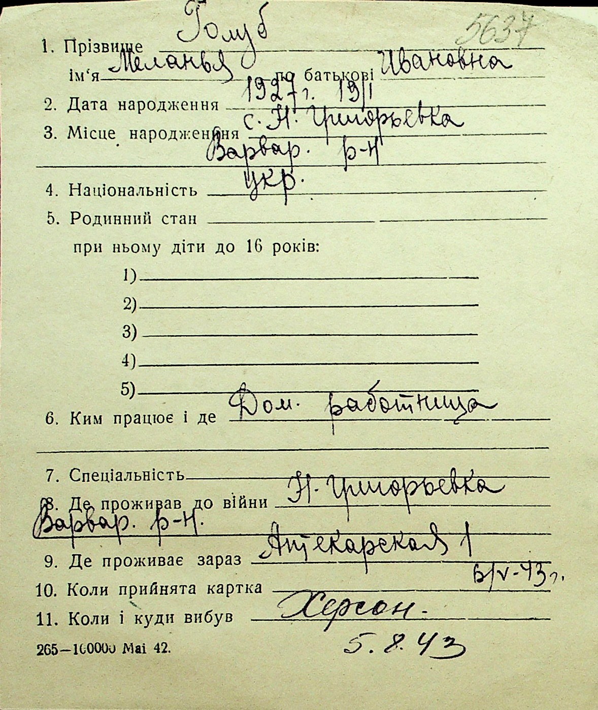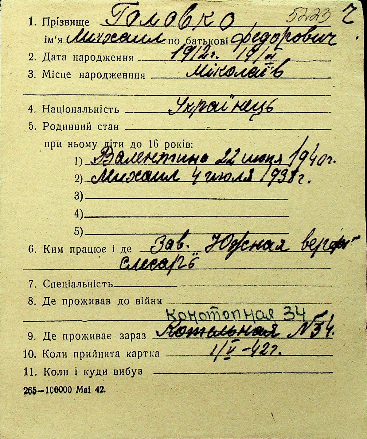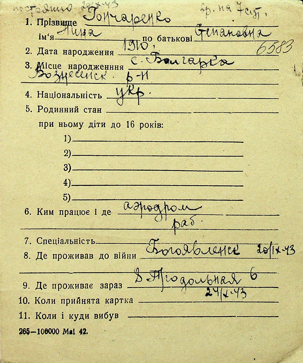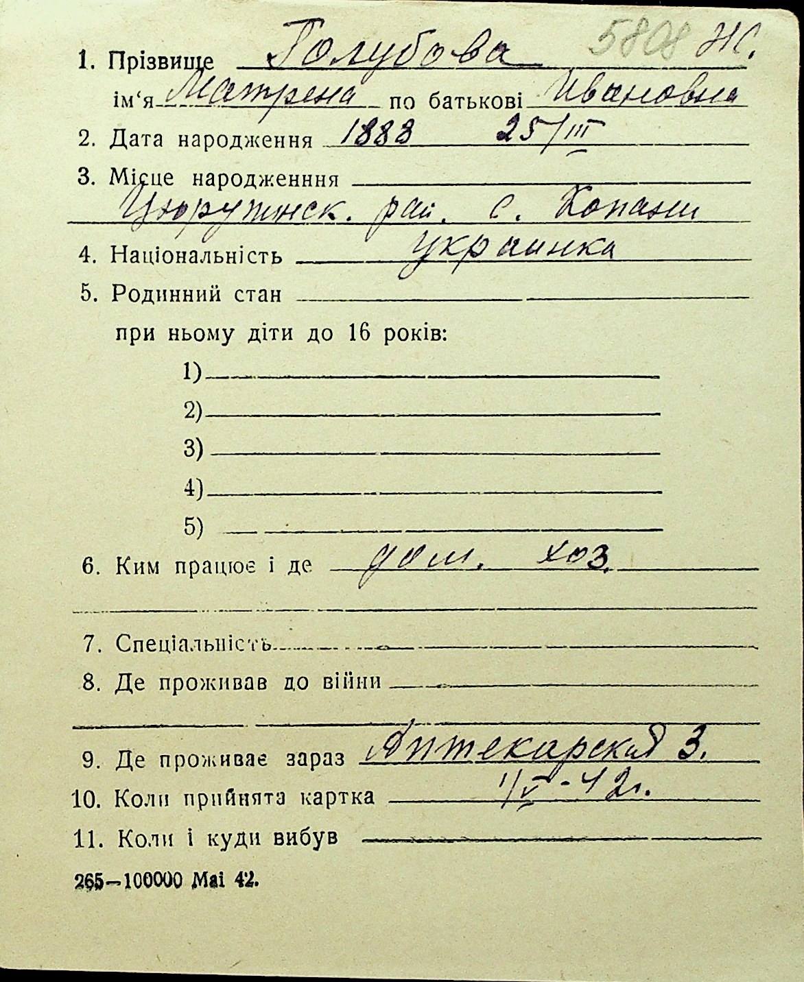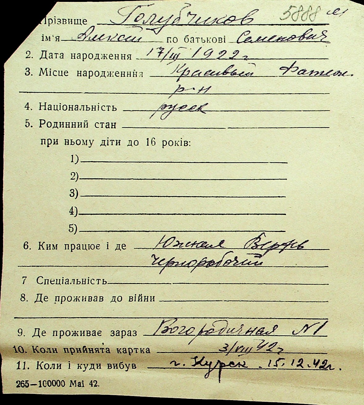 • • Перелік карток до фонду № Н-1016