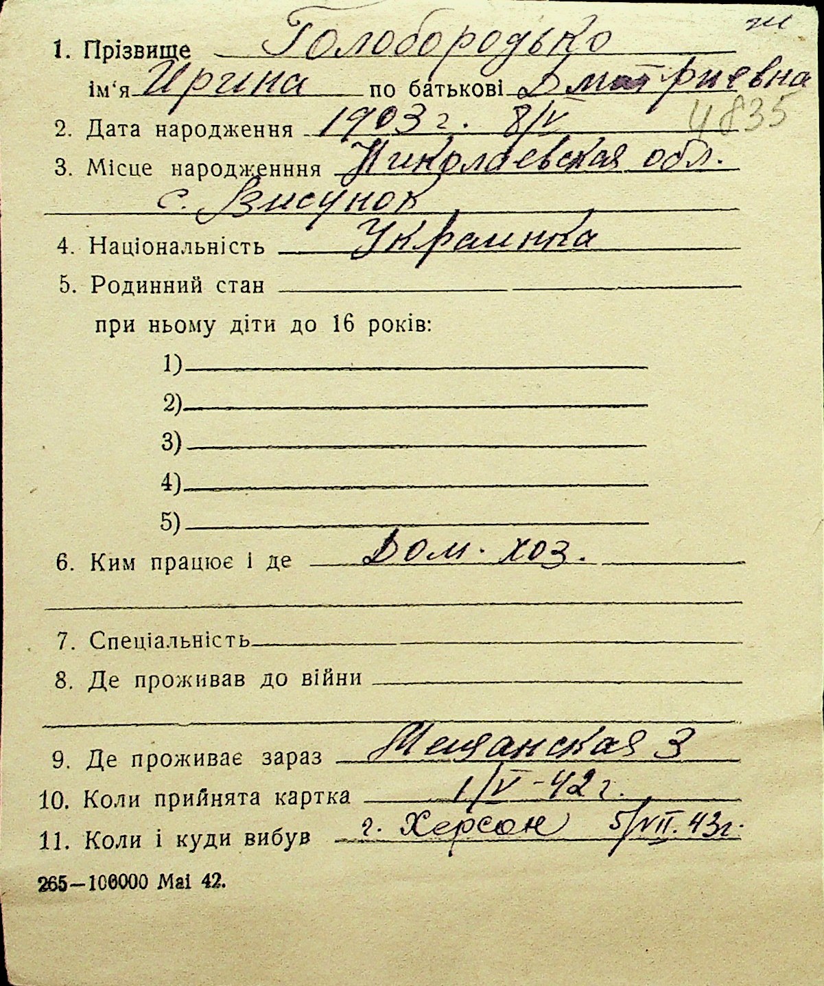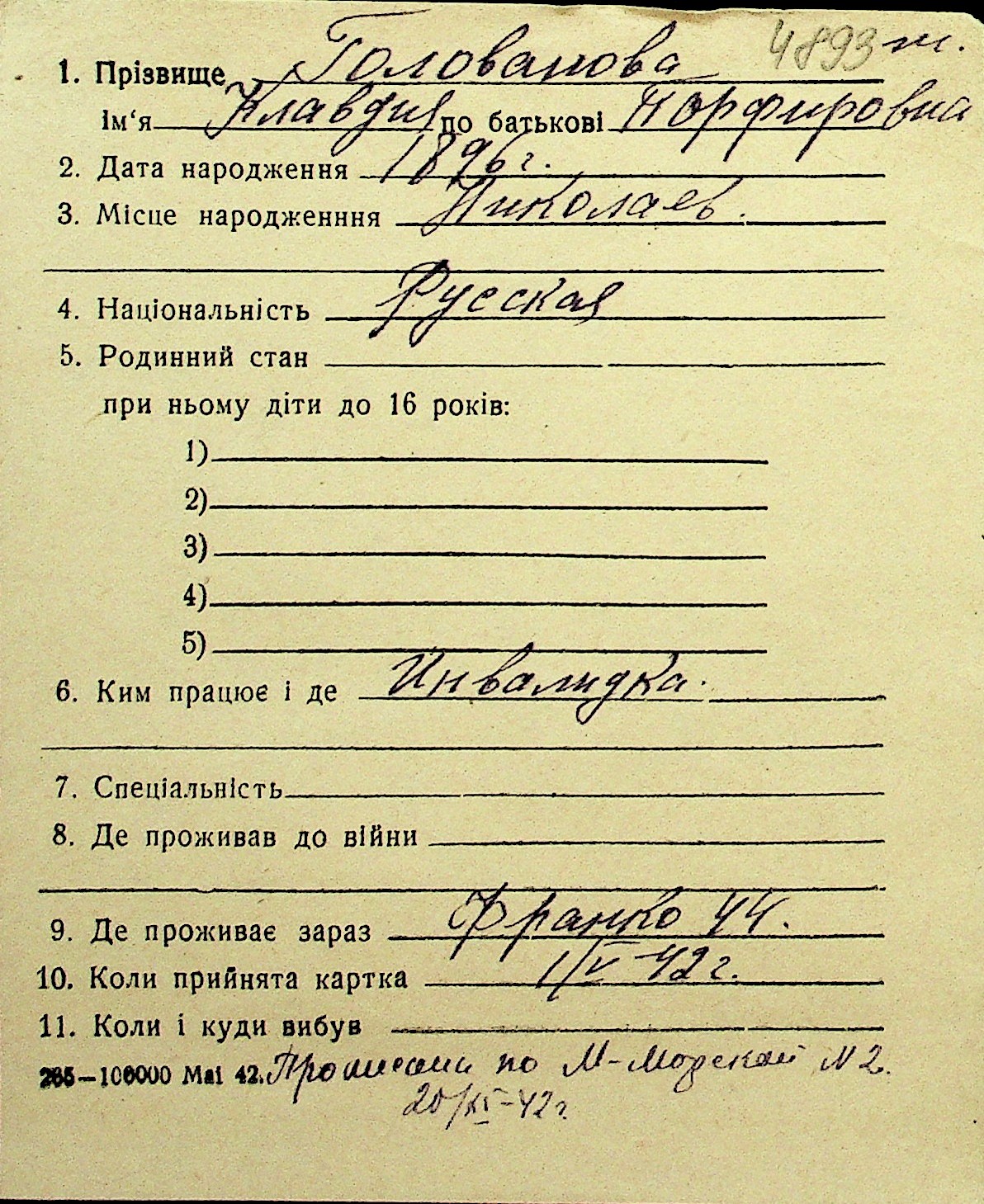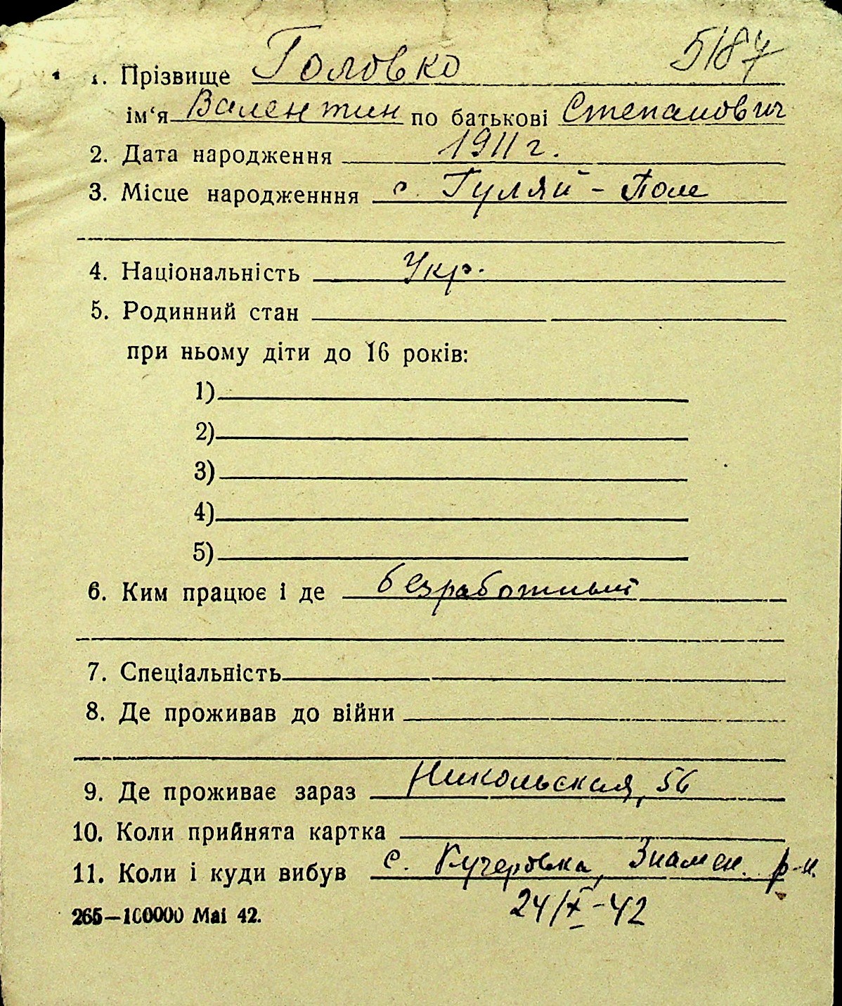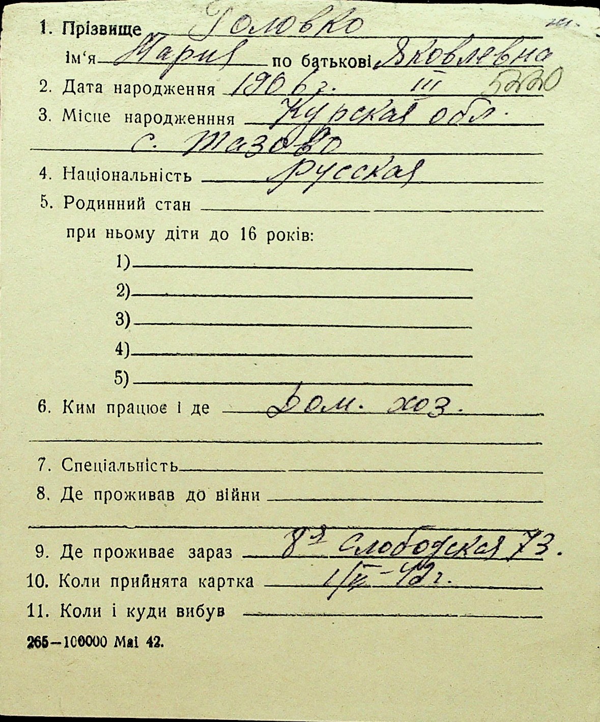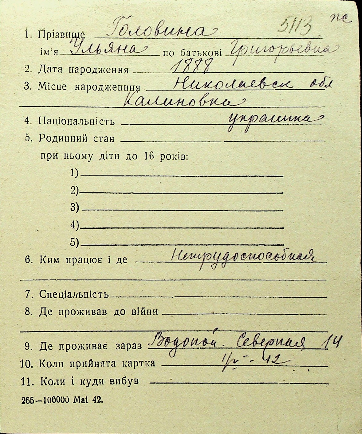 • • Перелік карток до фонду № Н-1016