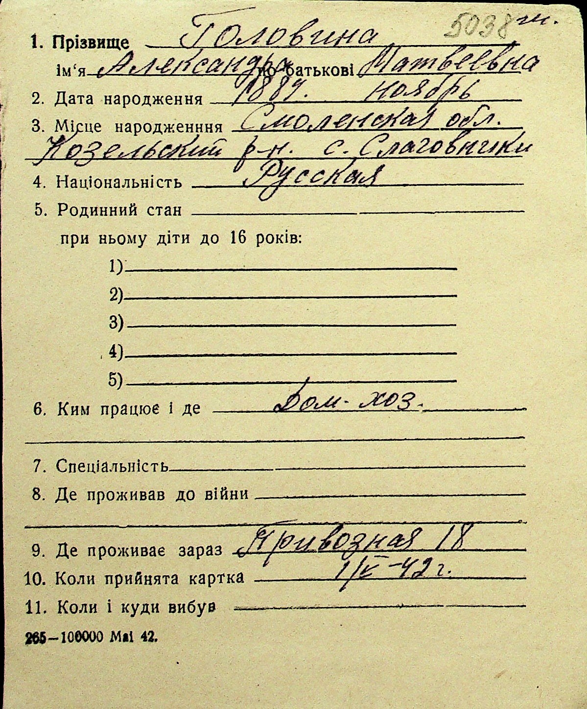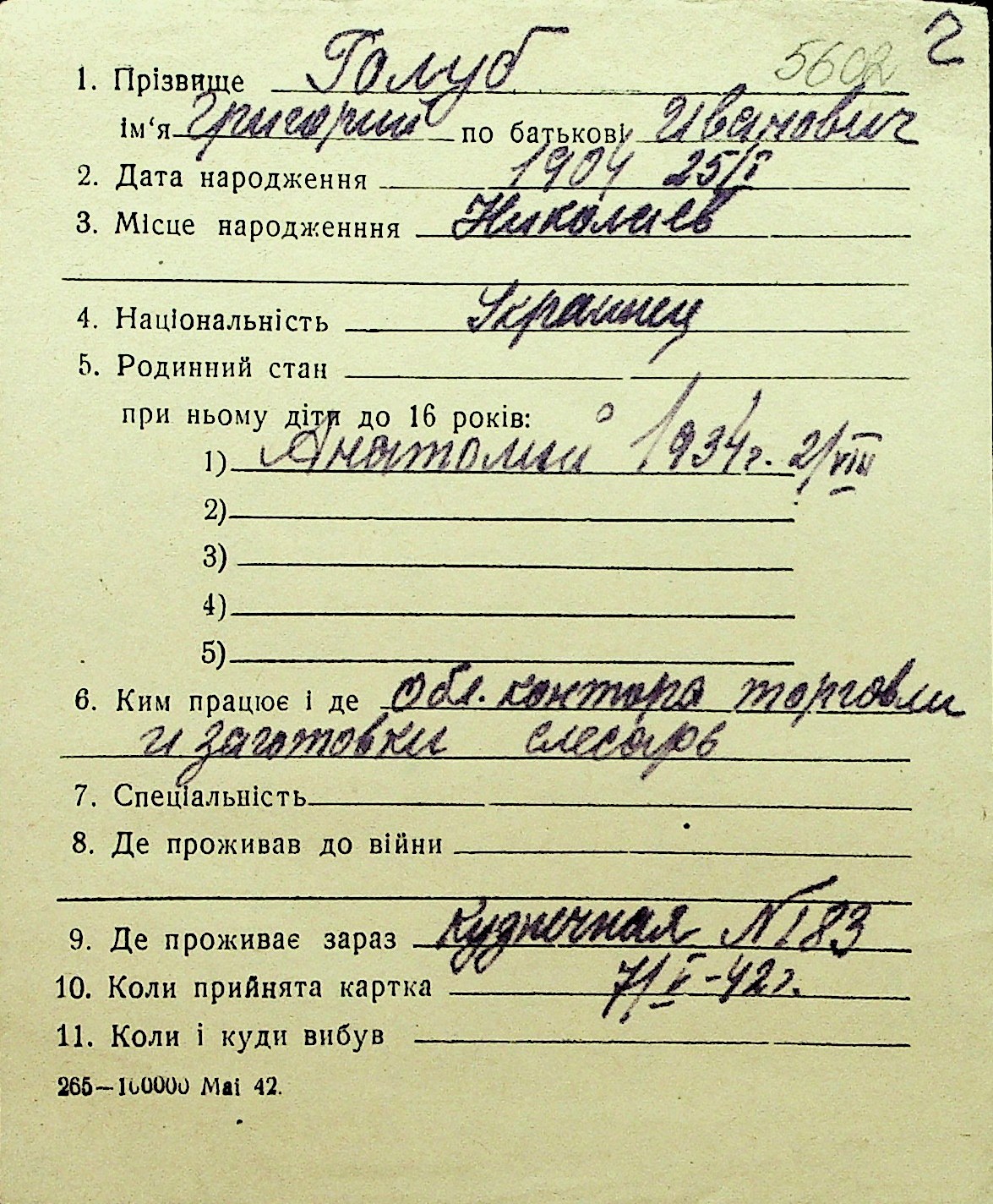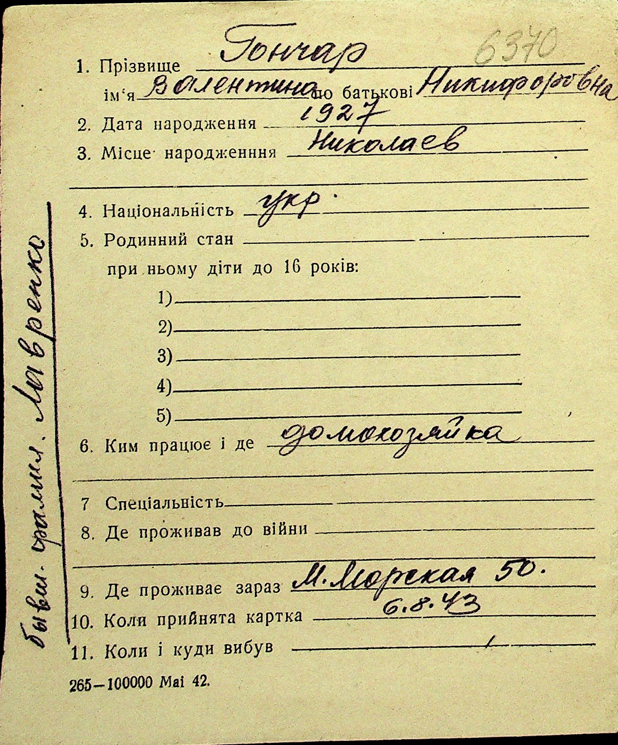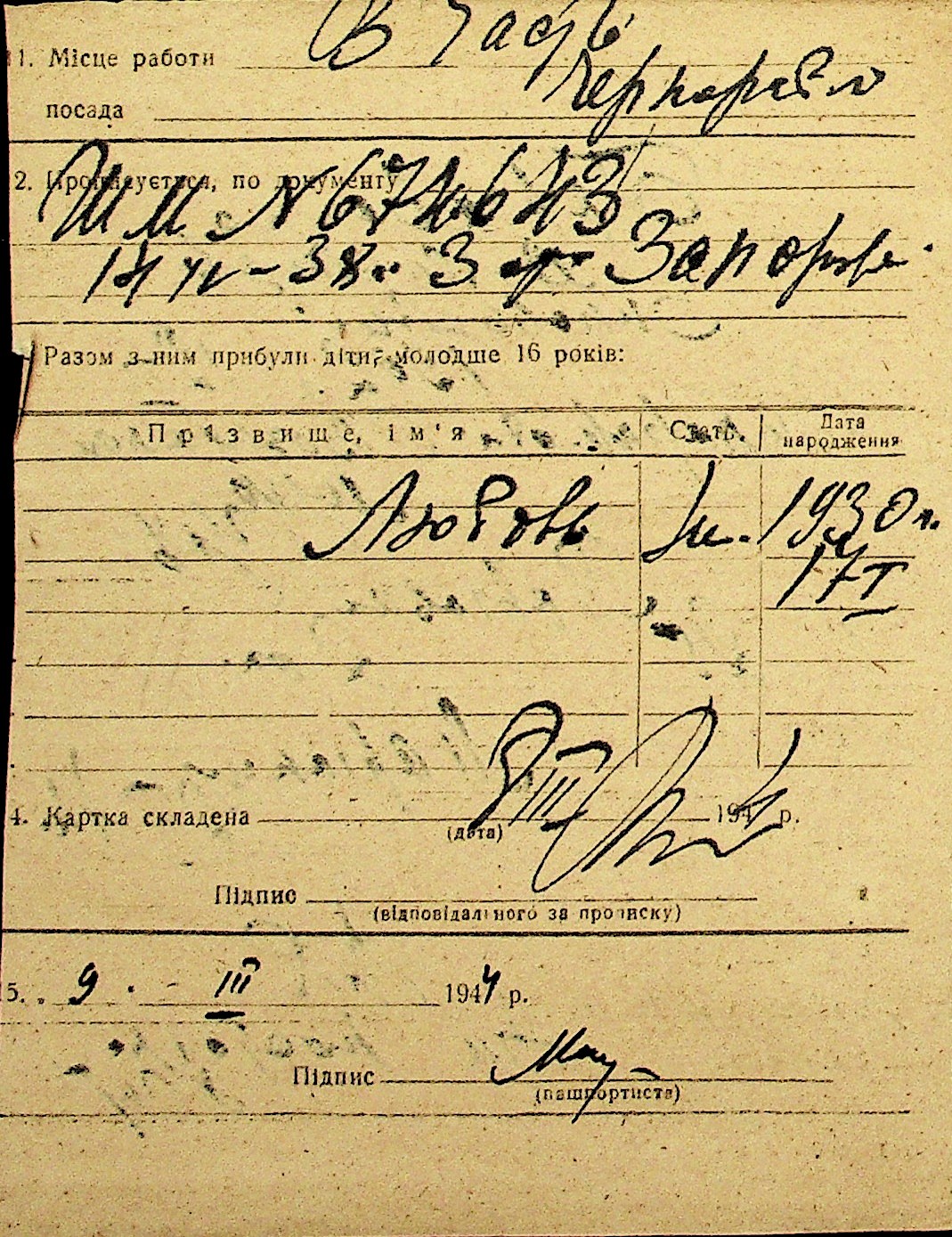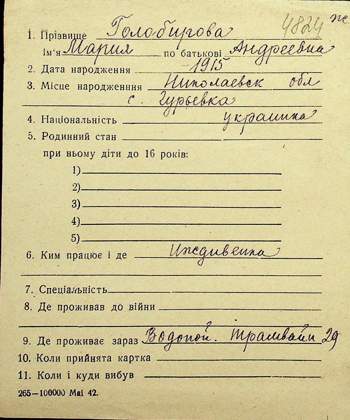 • • Перелік карток до фонду № Н-1016