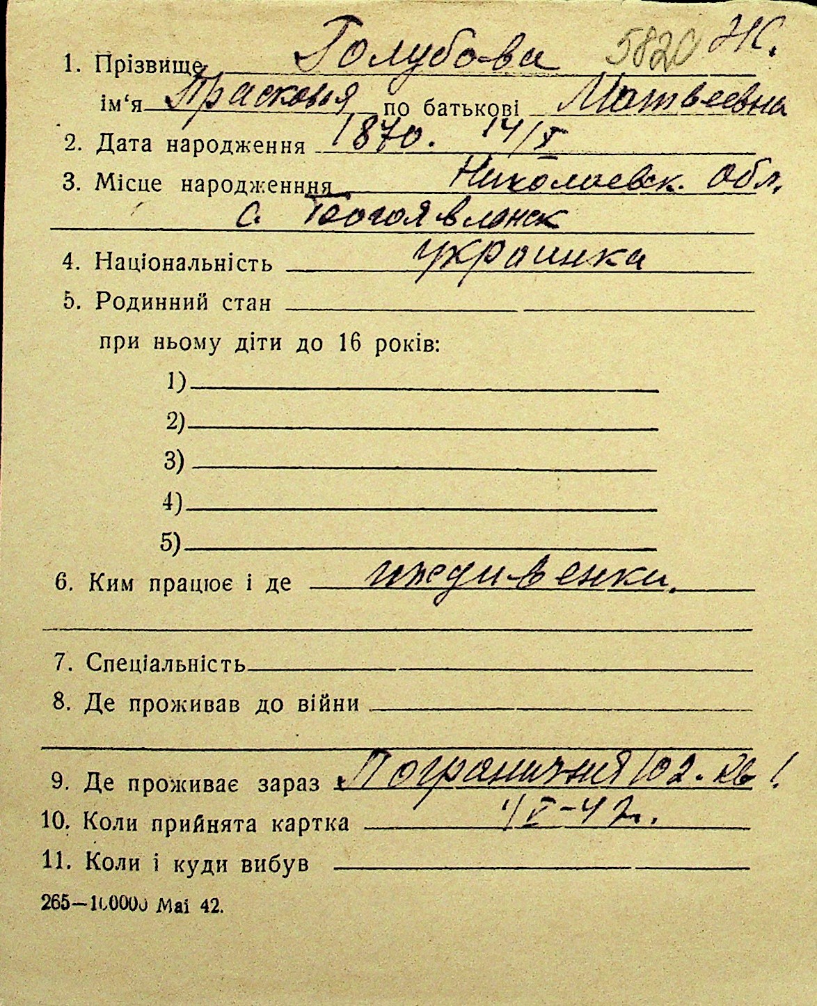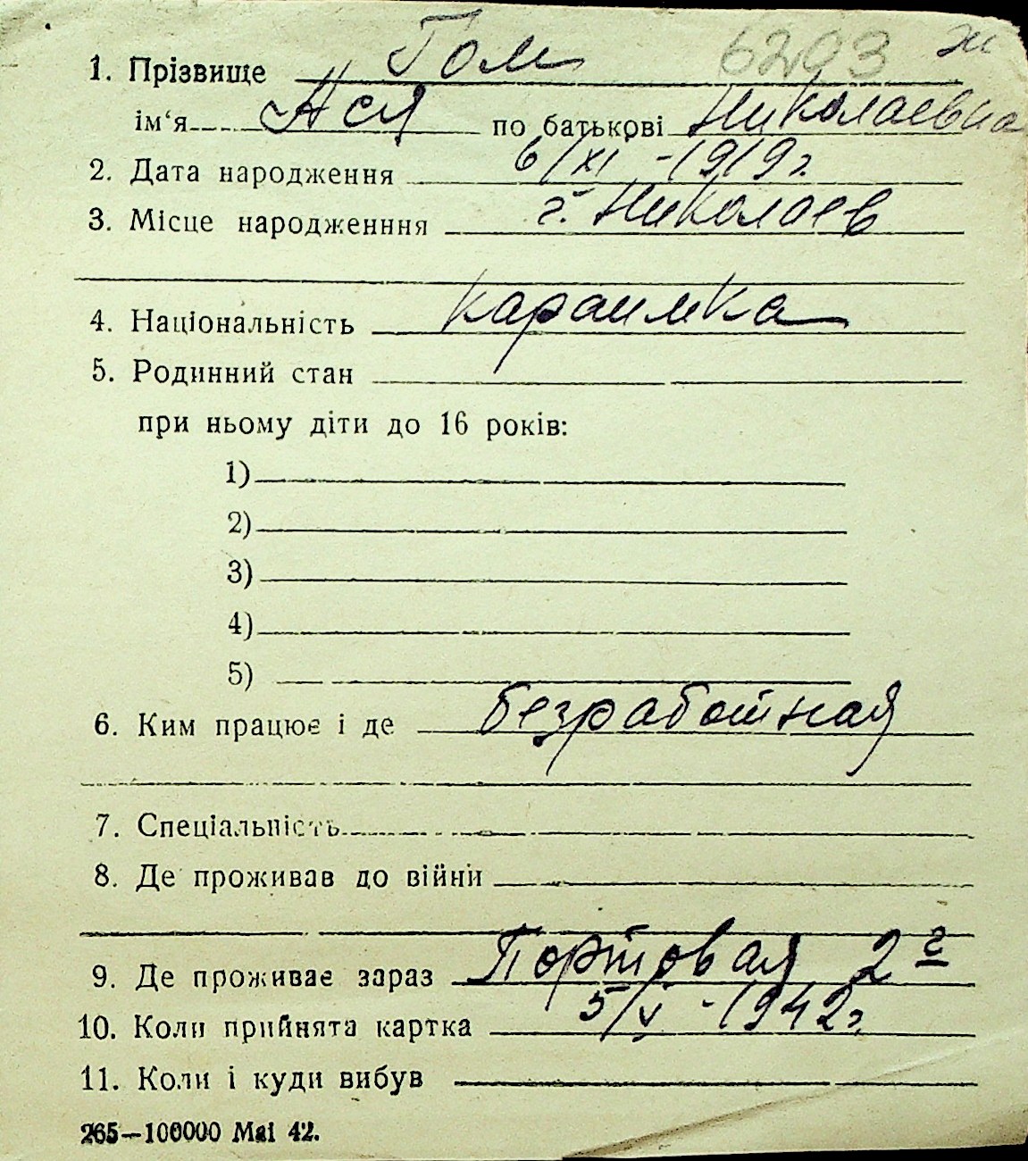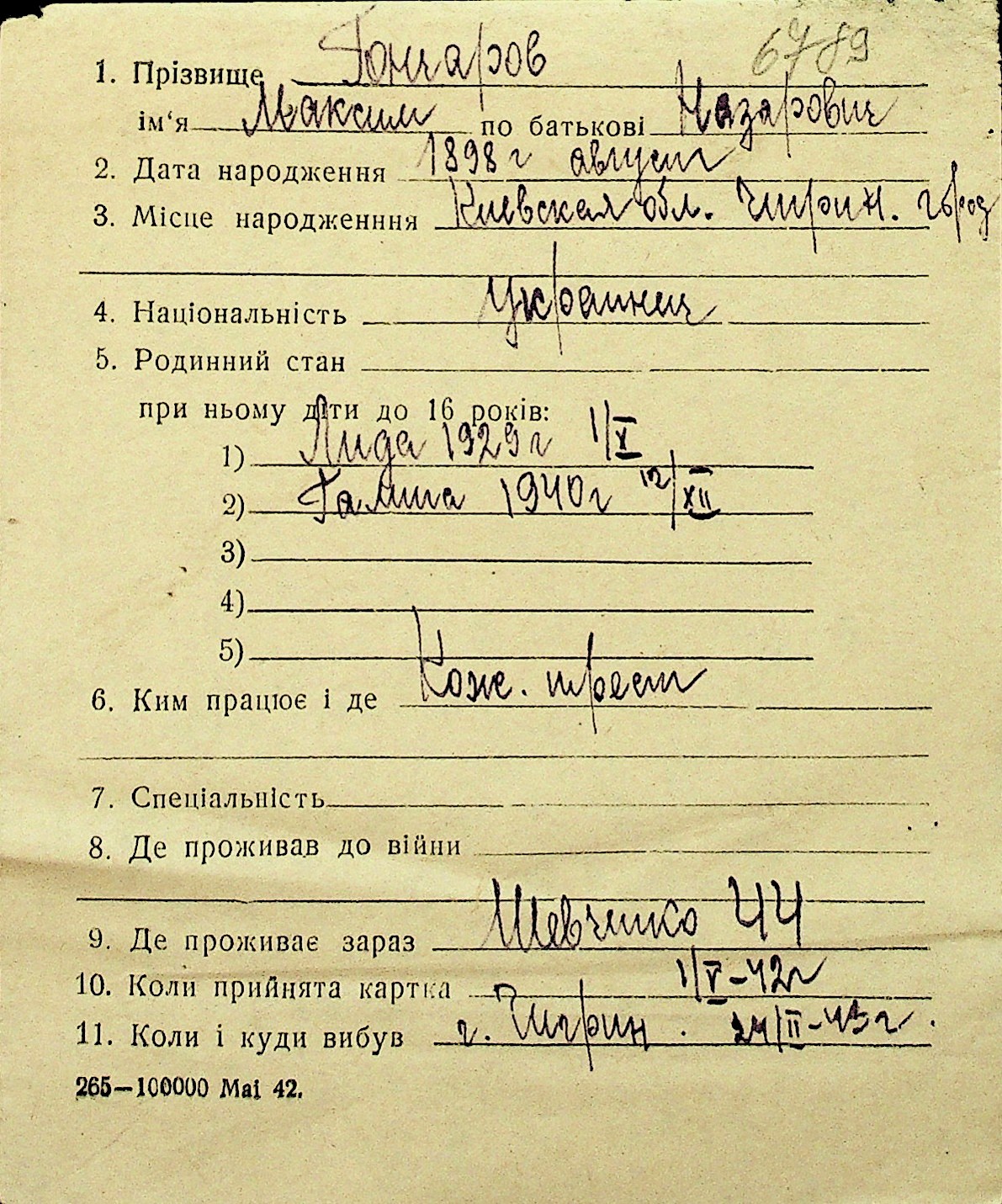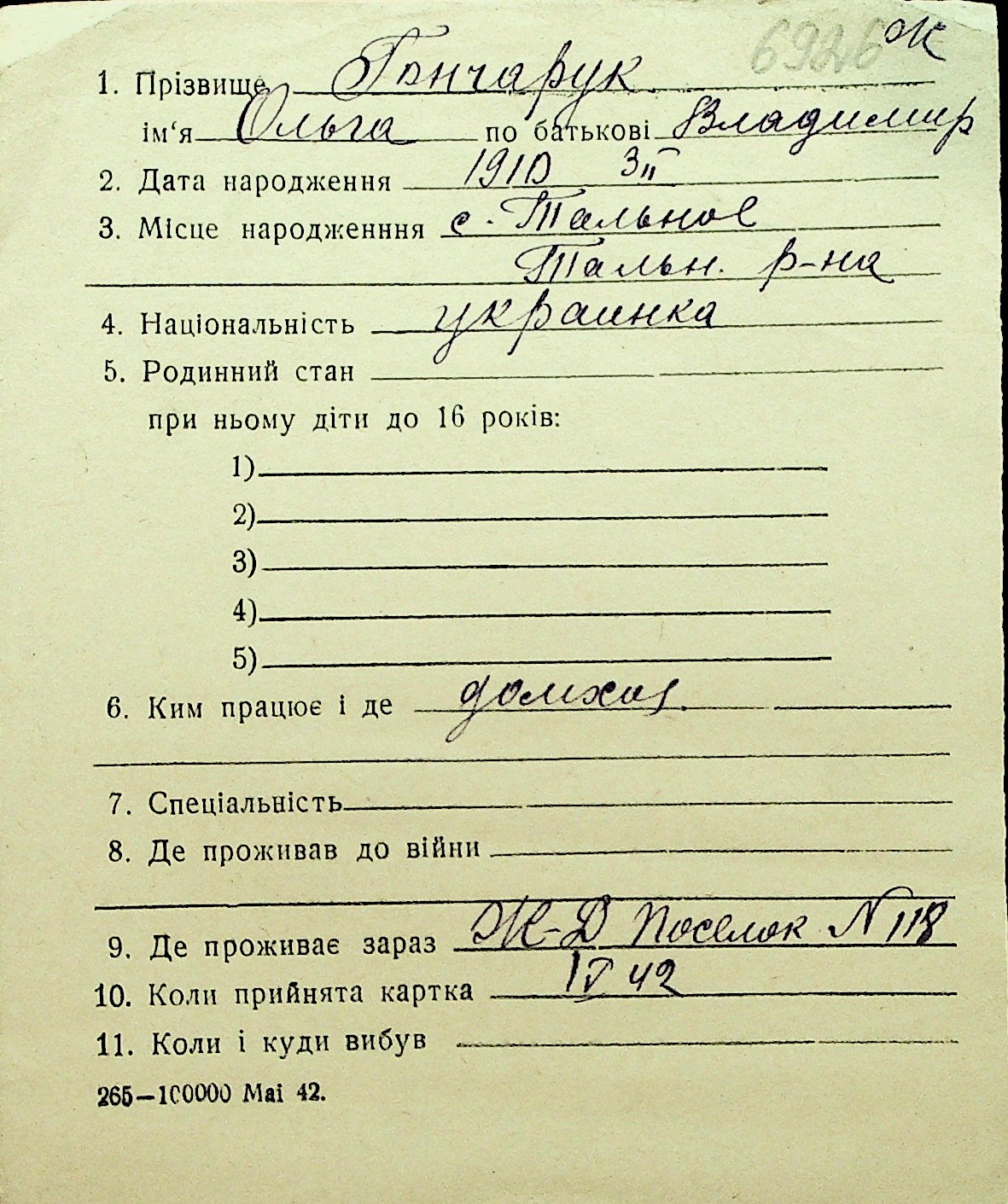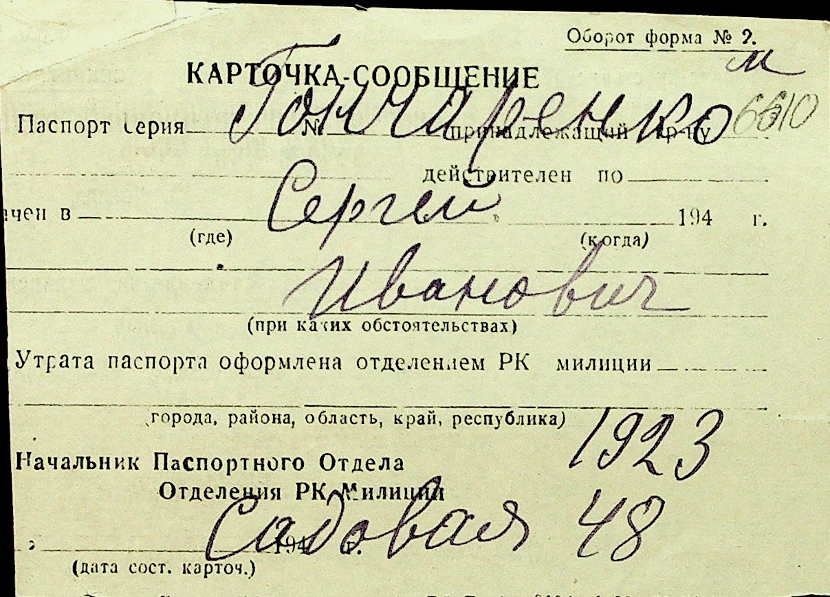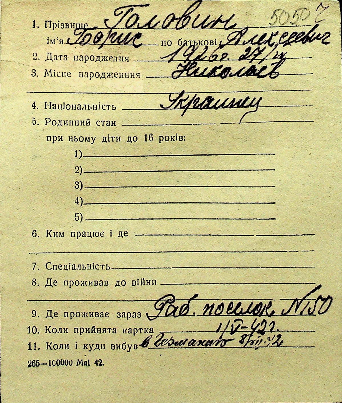 • • Перелік карток до фонду № Н-1016