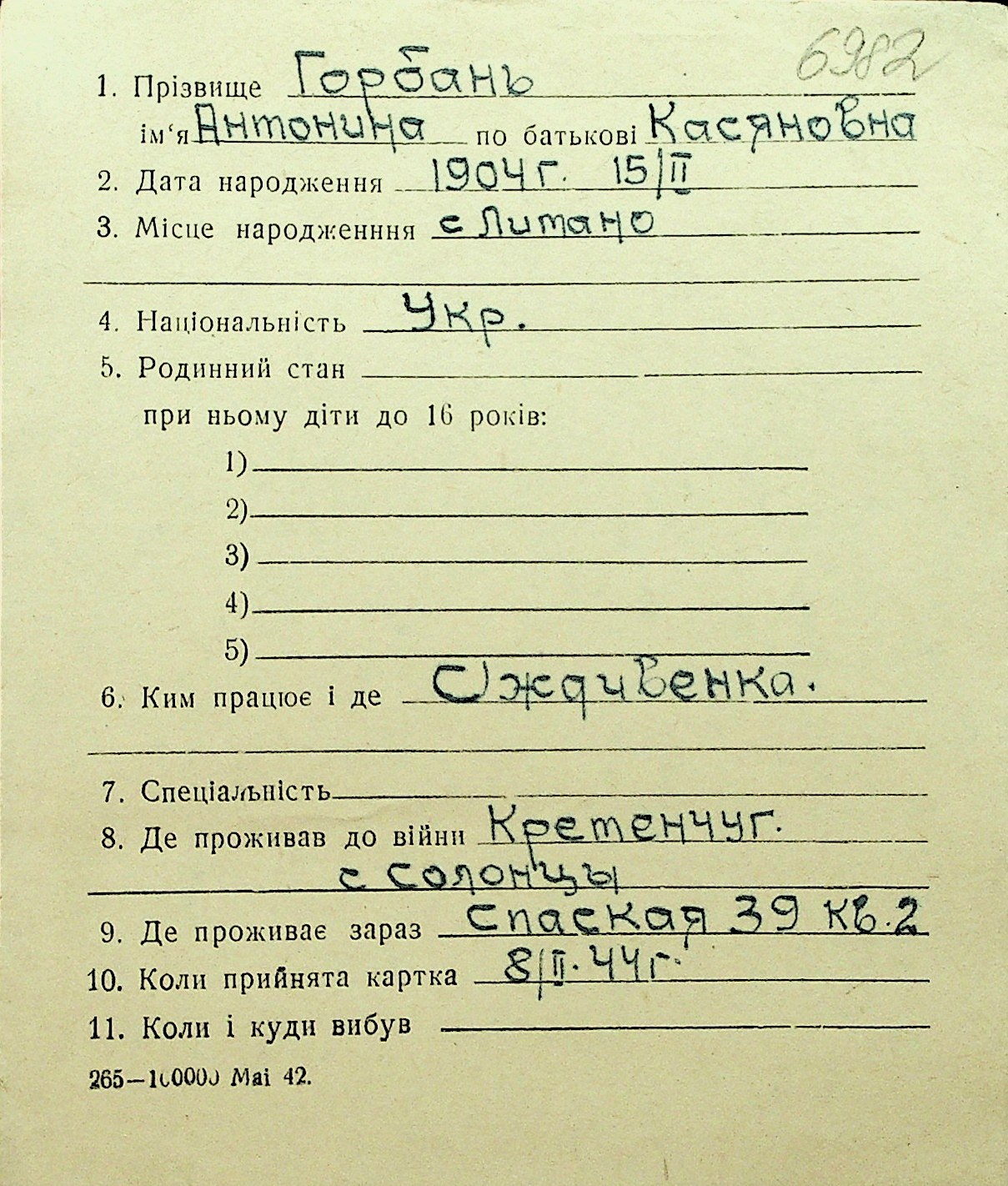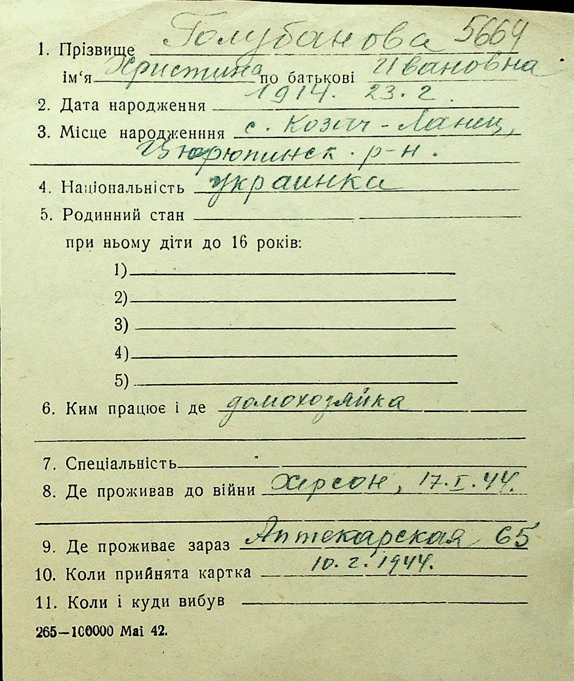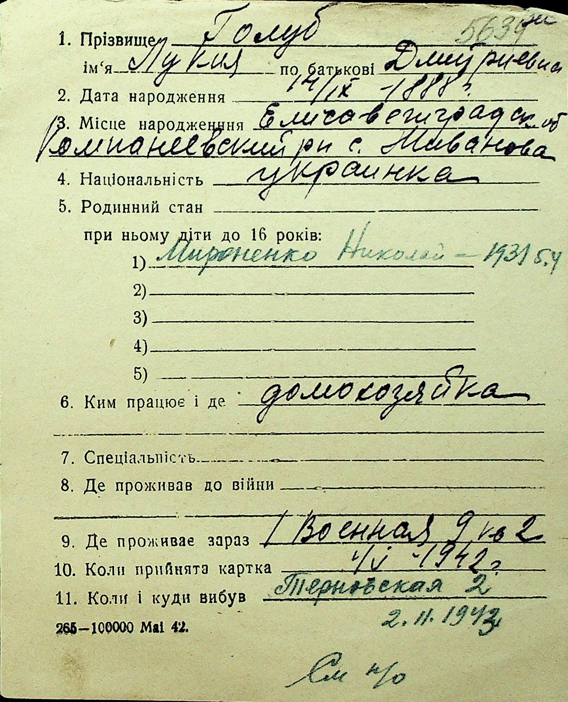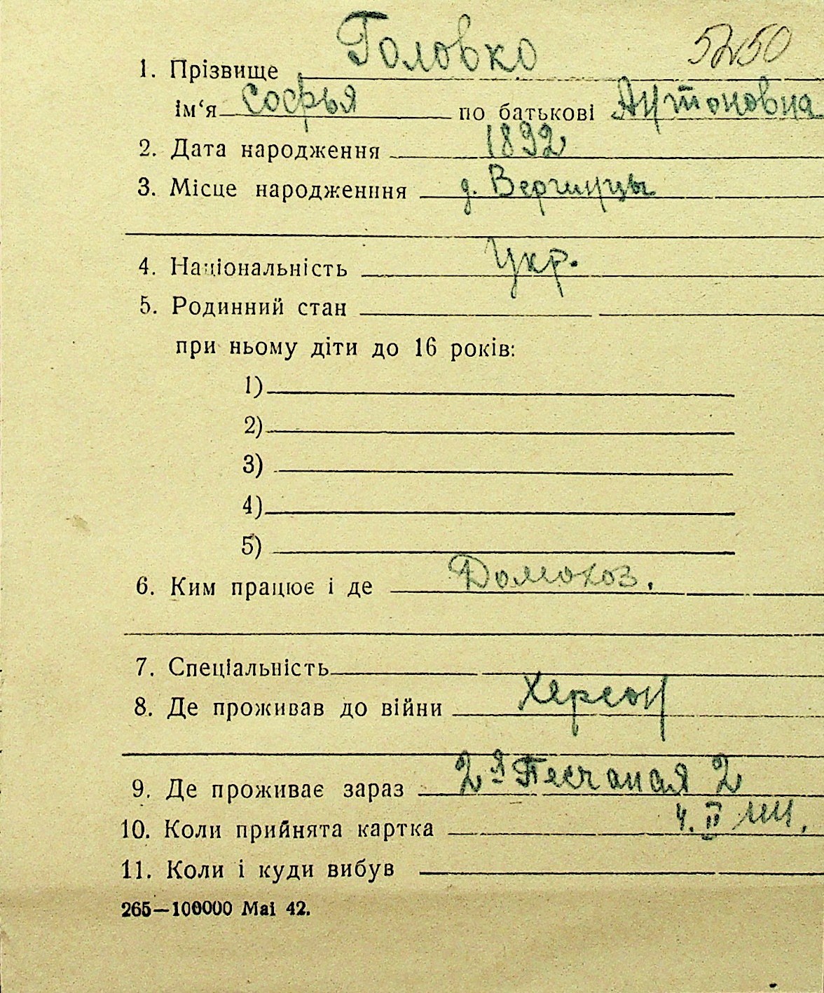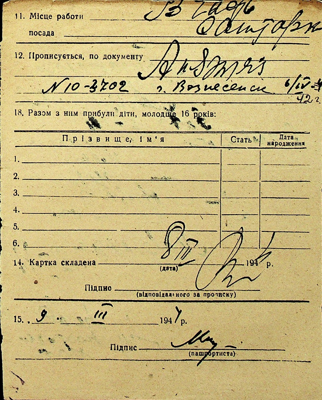 • • Перелік карток до фонду № Н-1016
