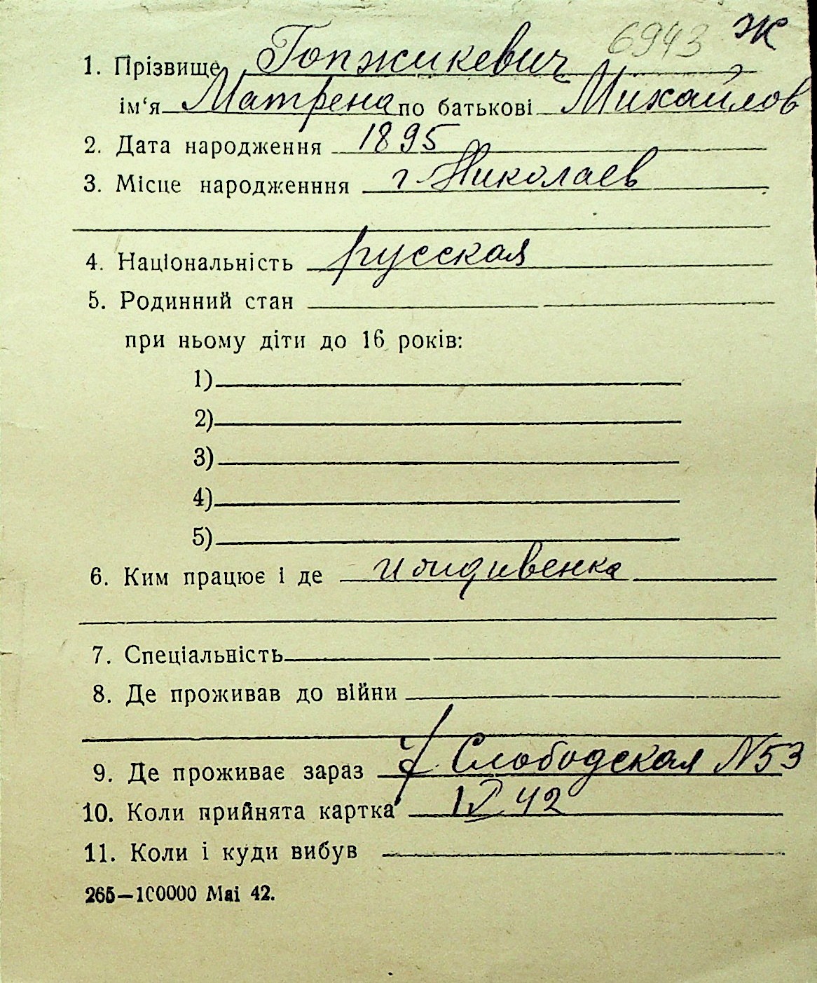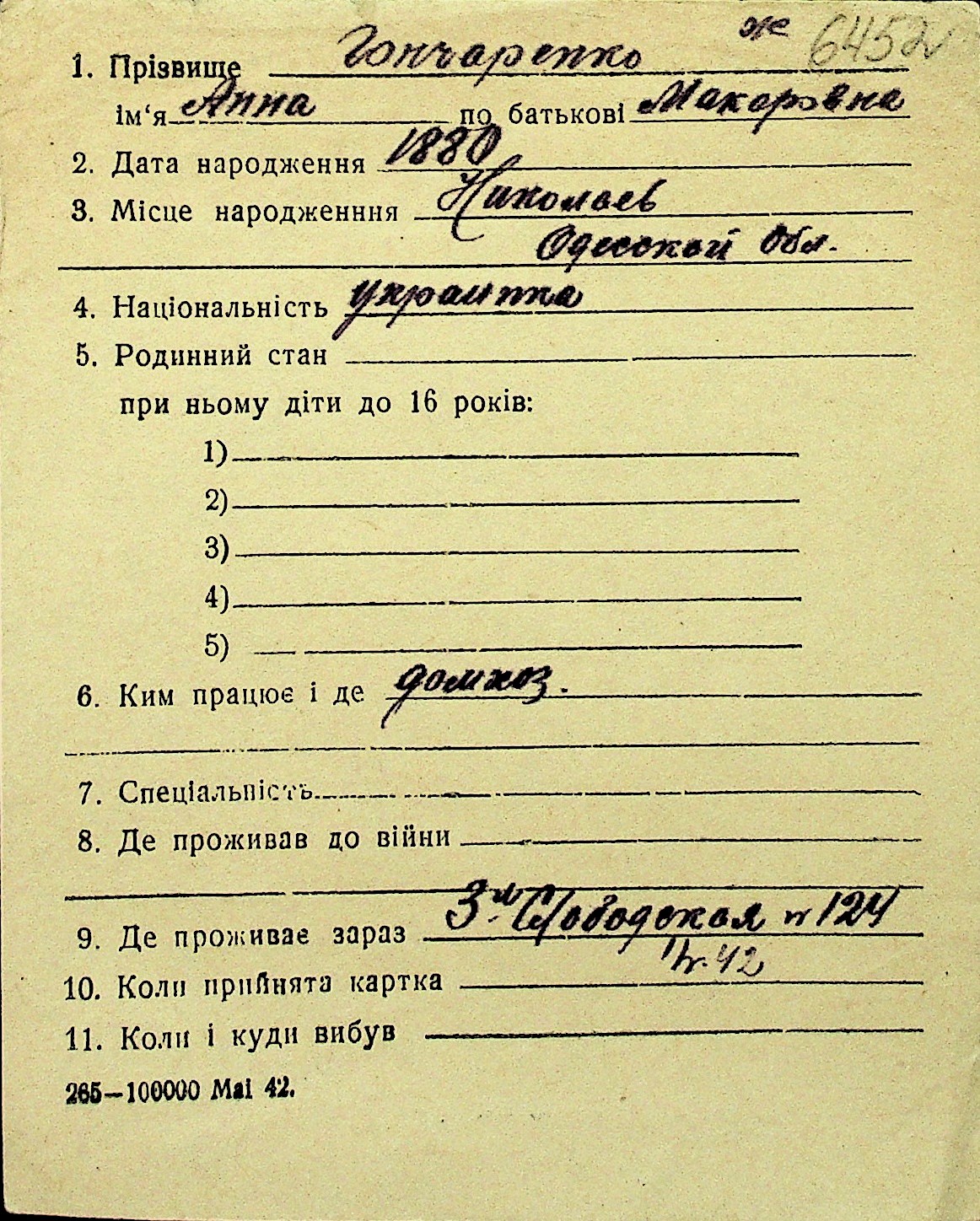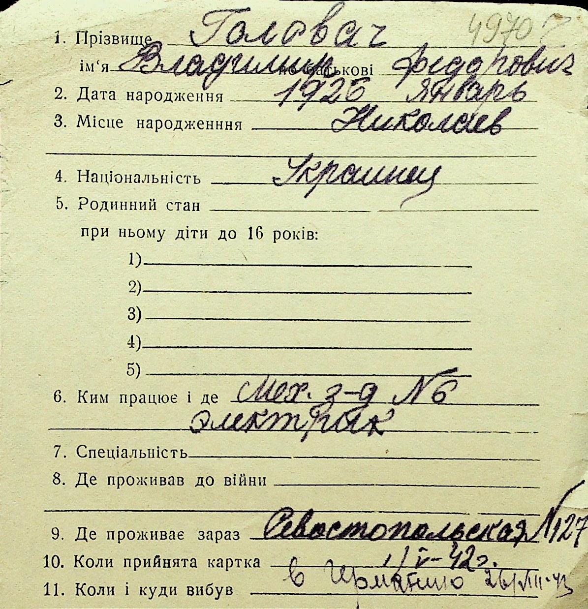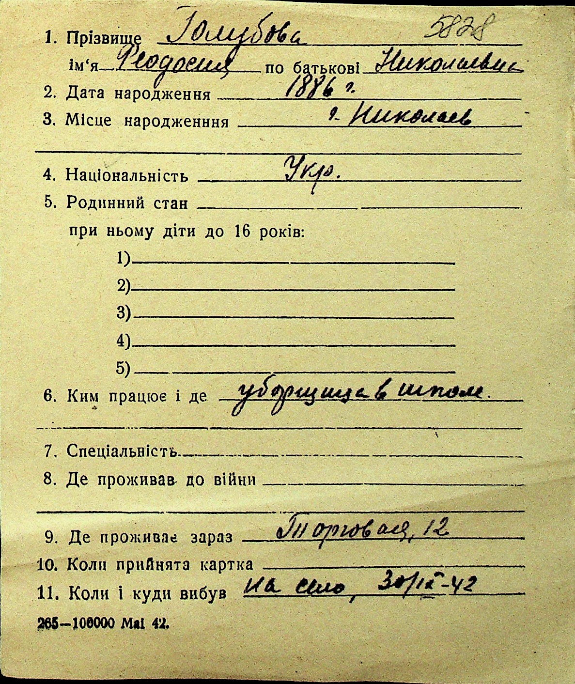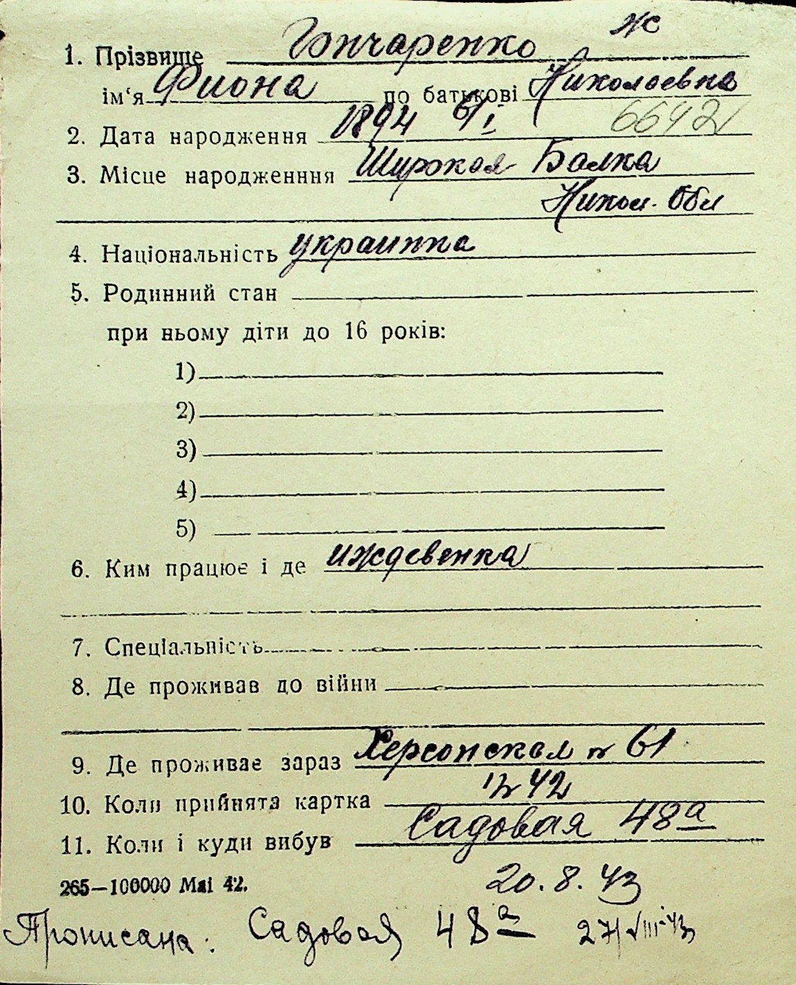 • • Перелік карток до фонду № Н-1016