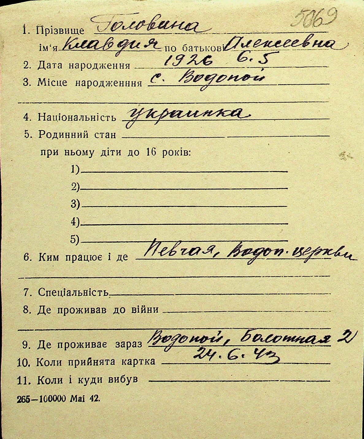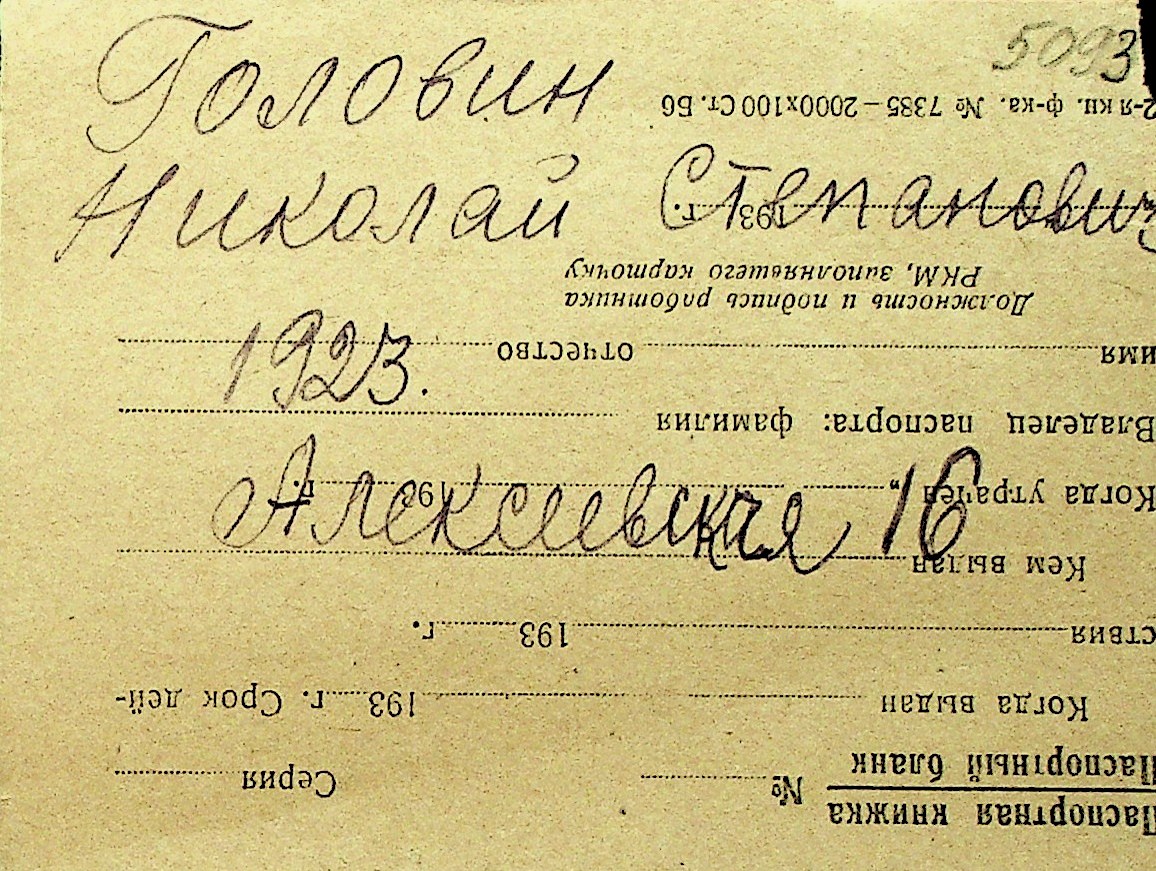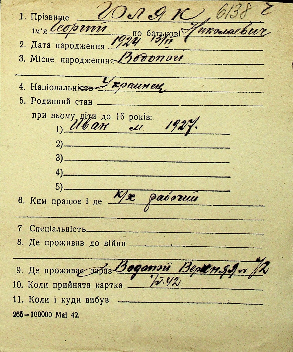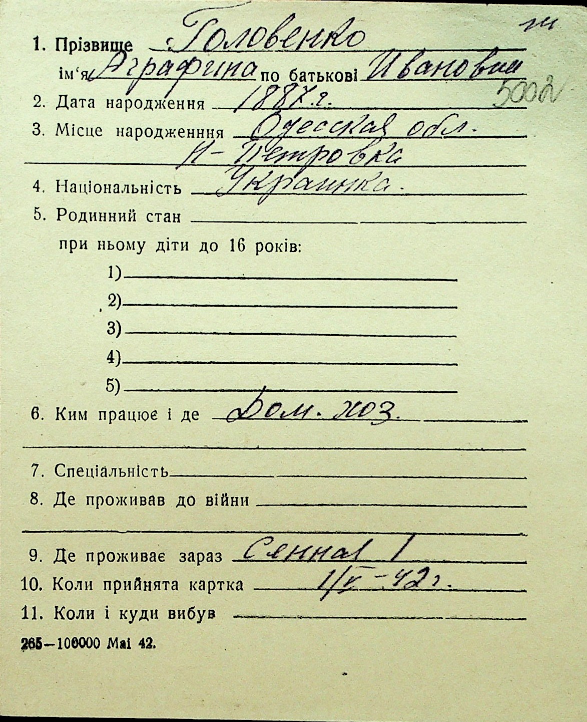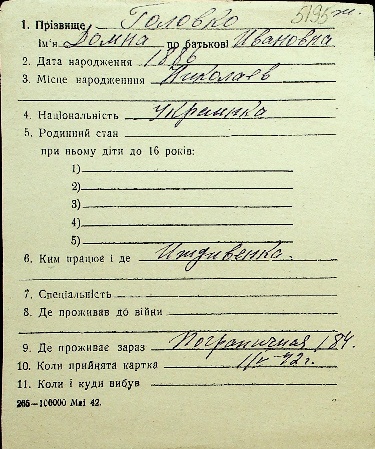 • • Перелік карток до фонду № Н-1016