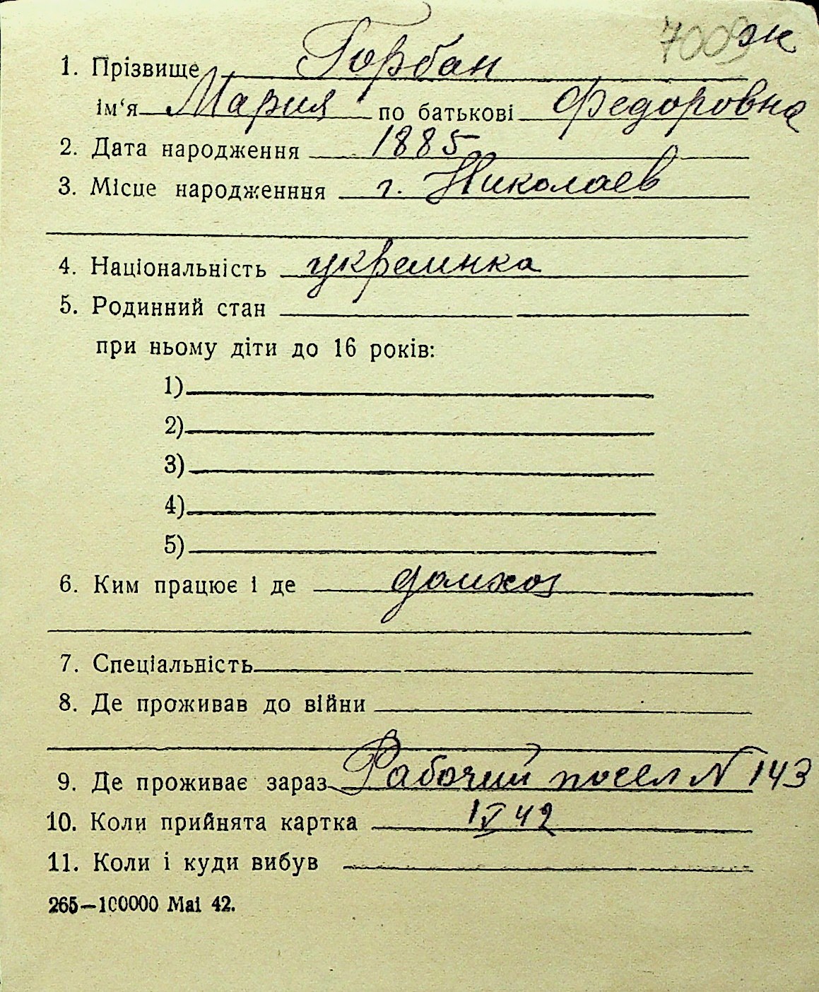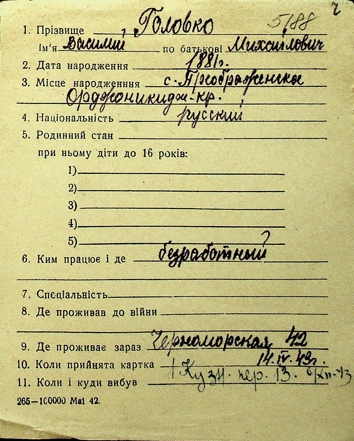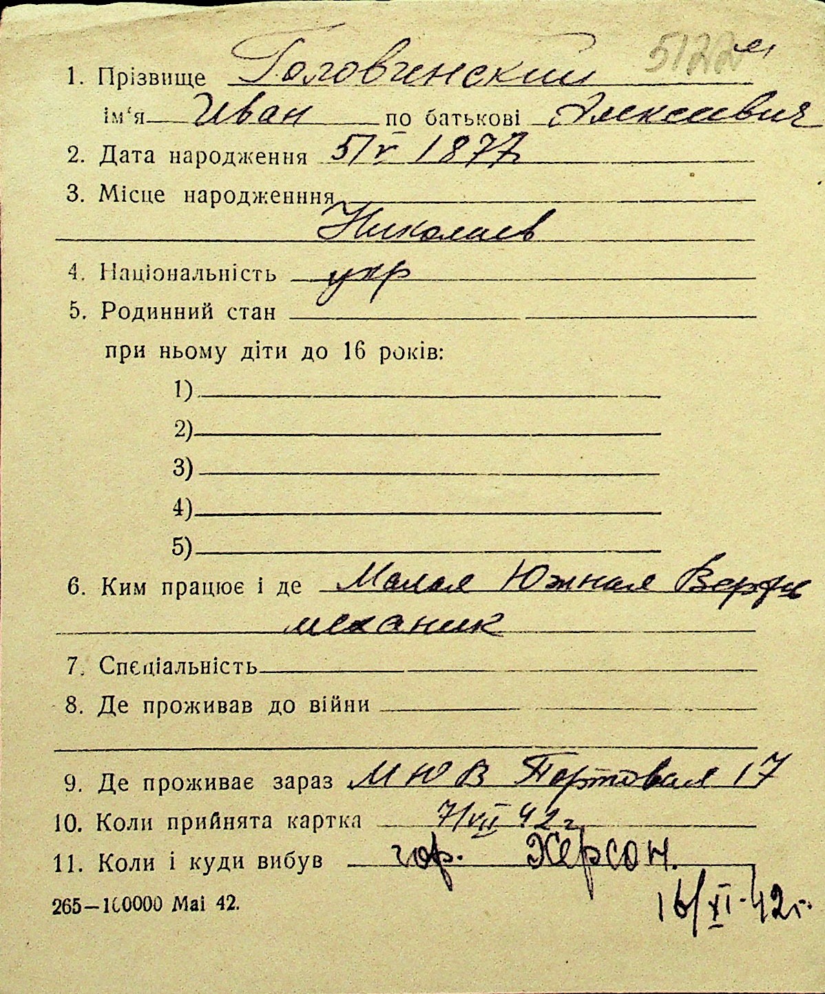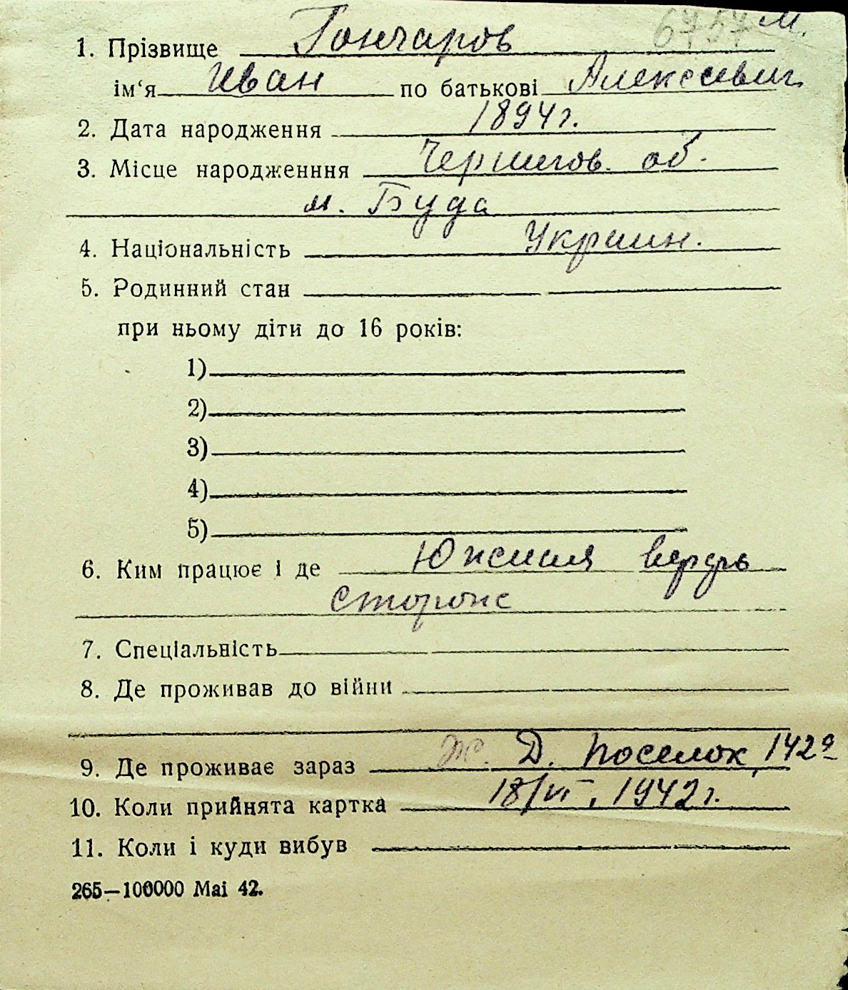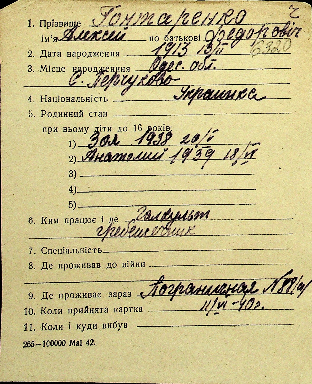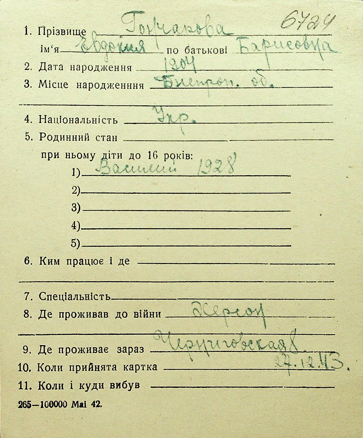 • • Перелік карток до фонду № Н-1016