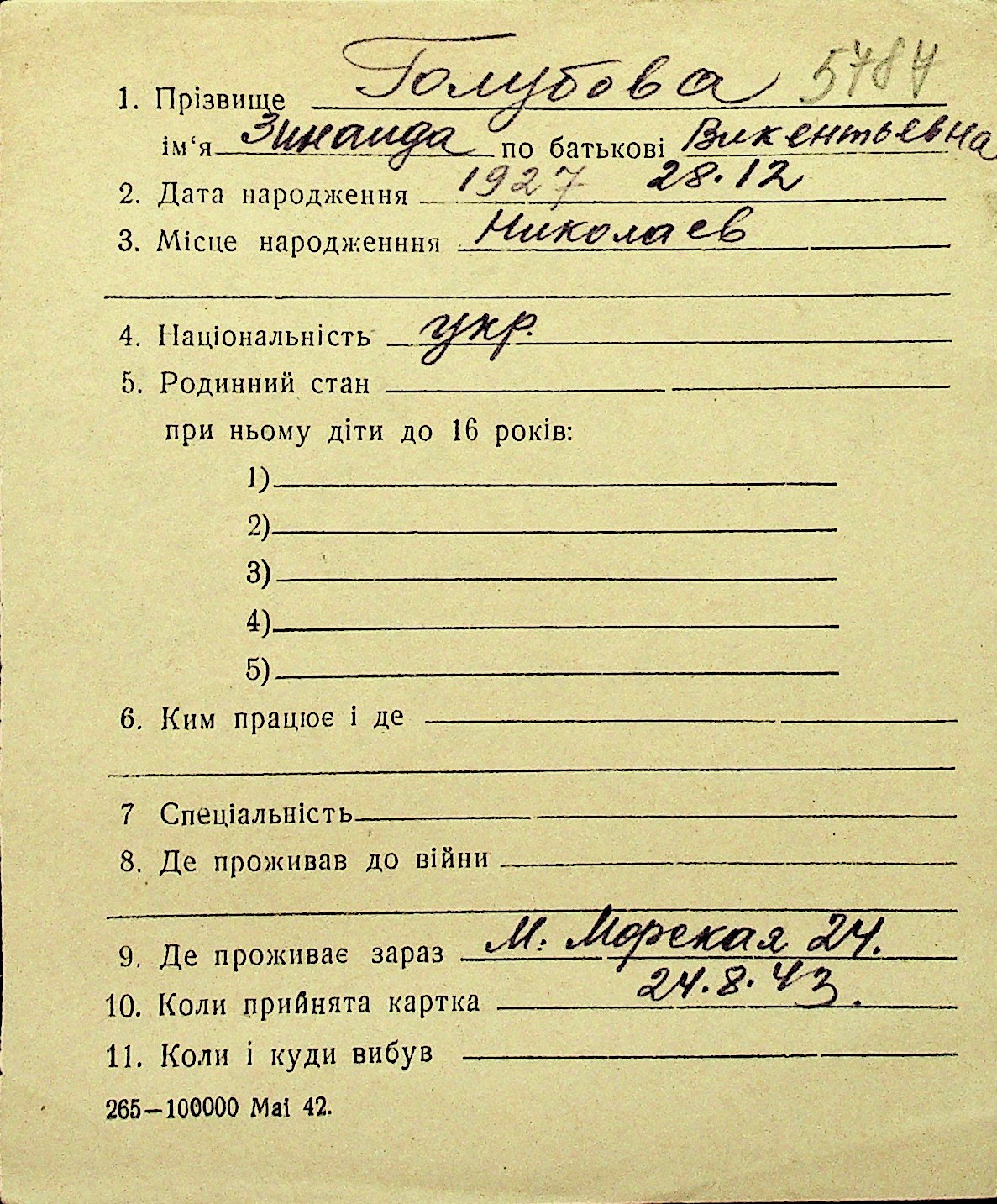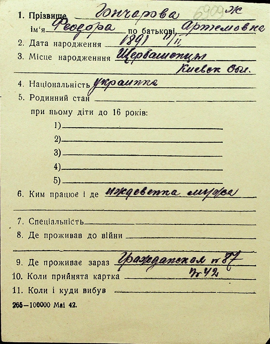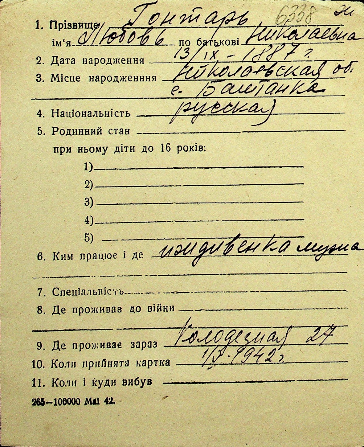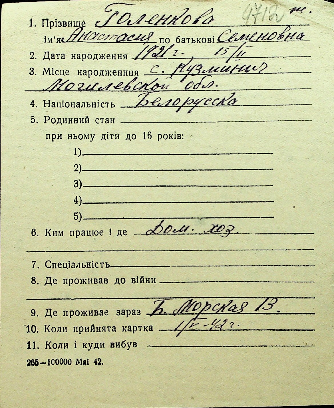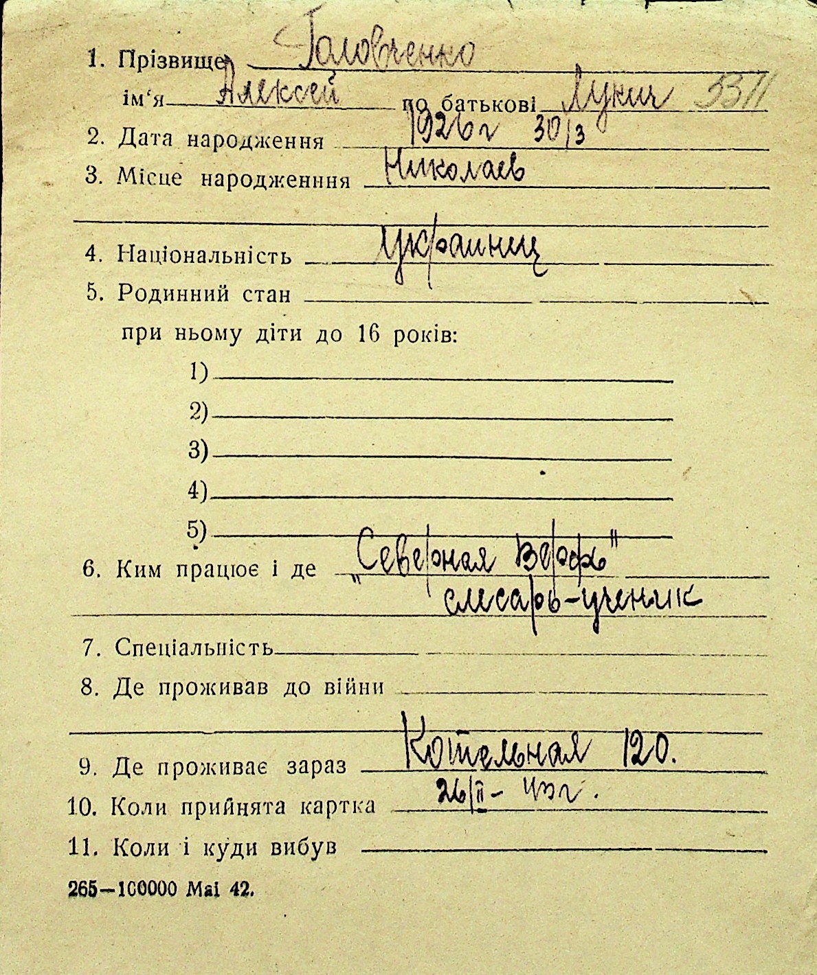 • • Перелік карток до фонду № Н-1016