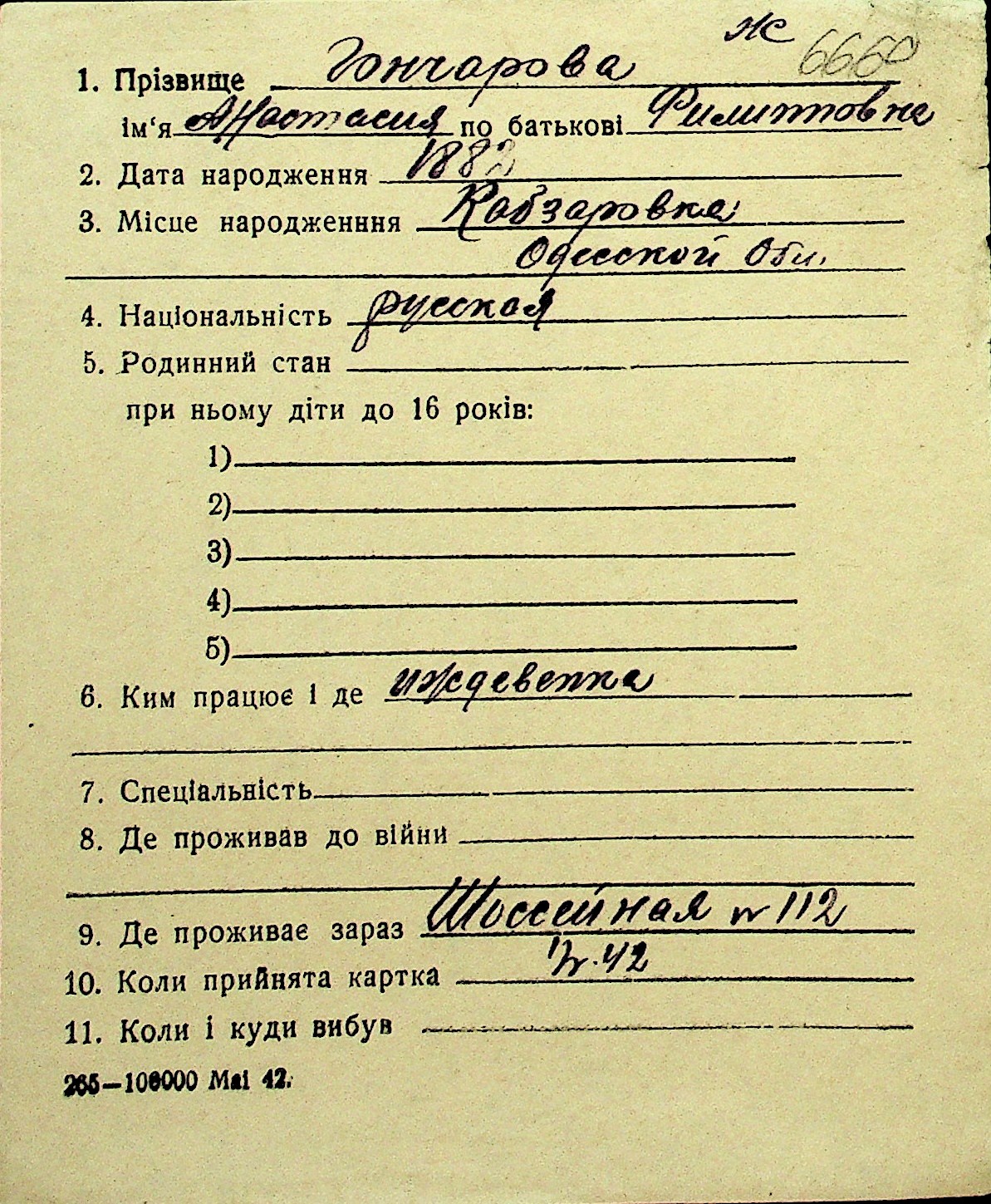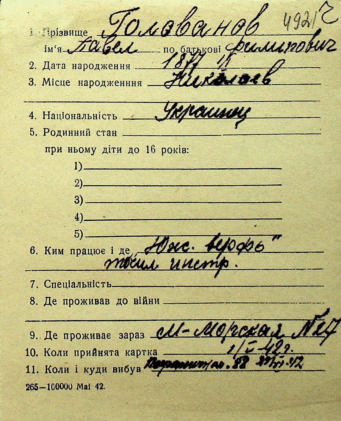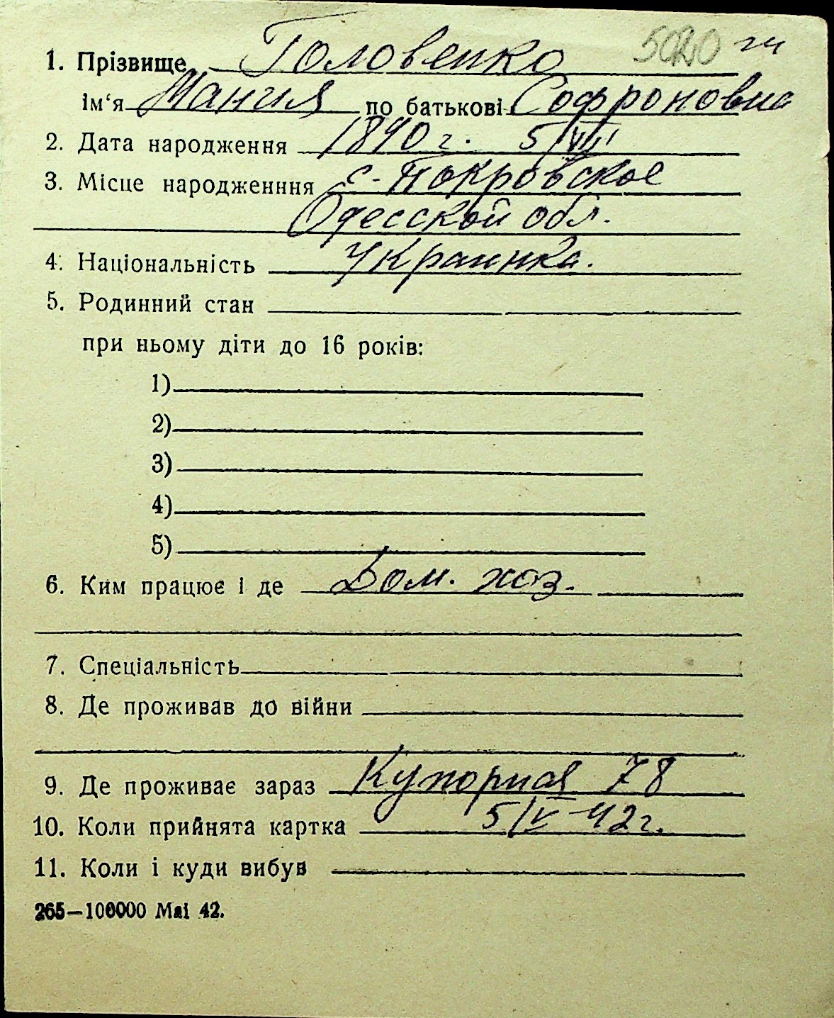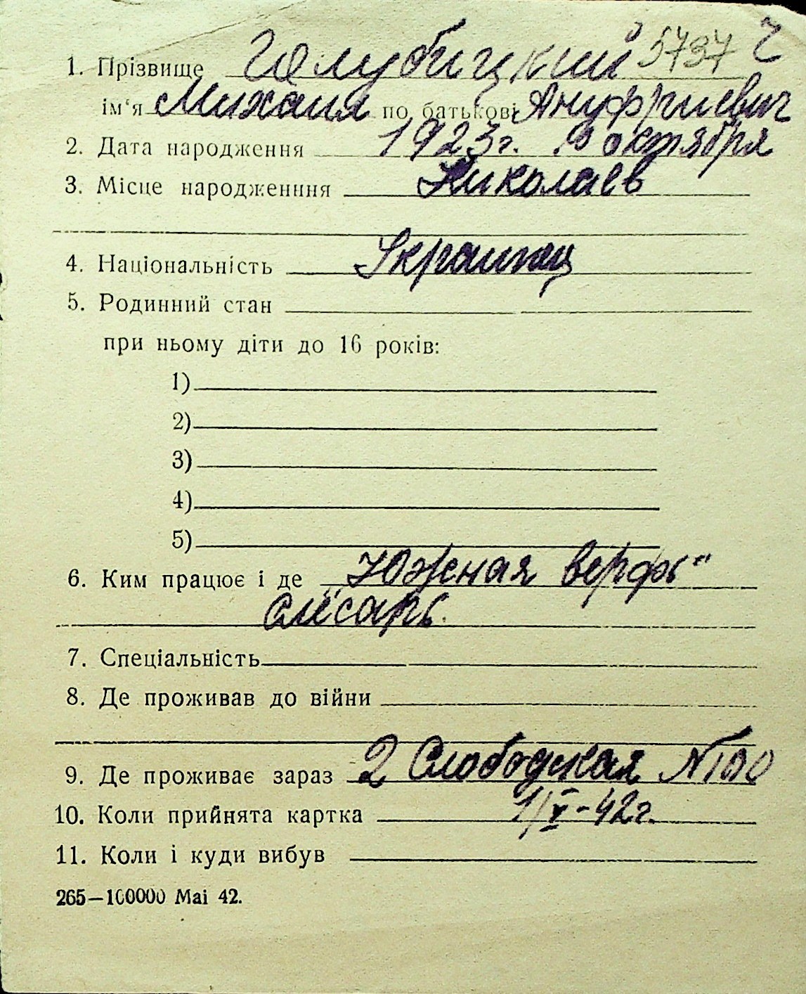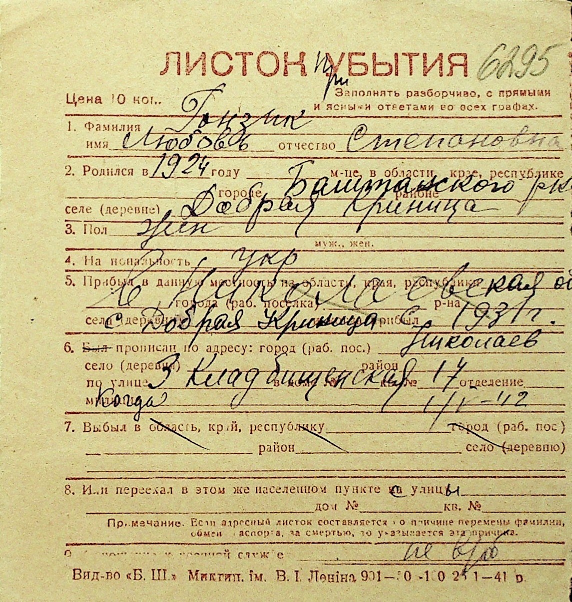 • • Перелік карток до фонду № Н-1016