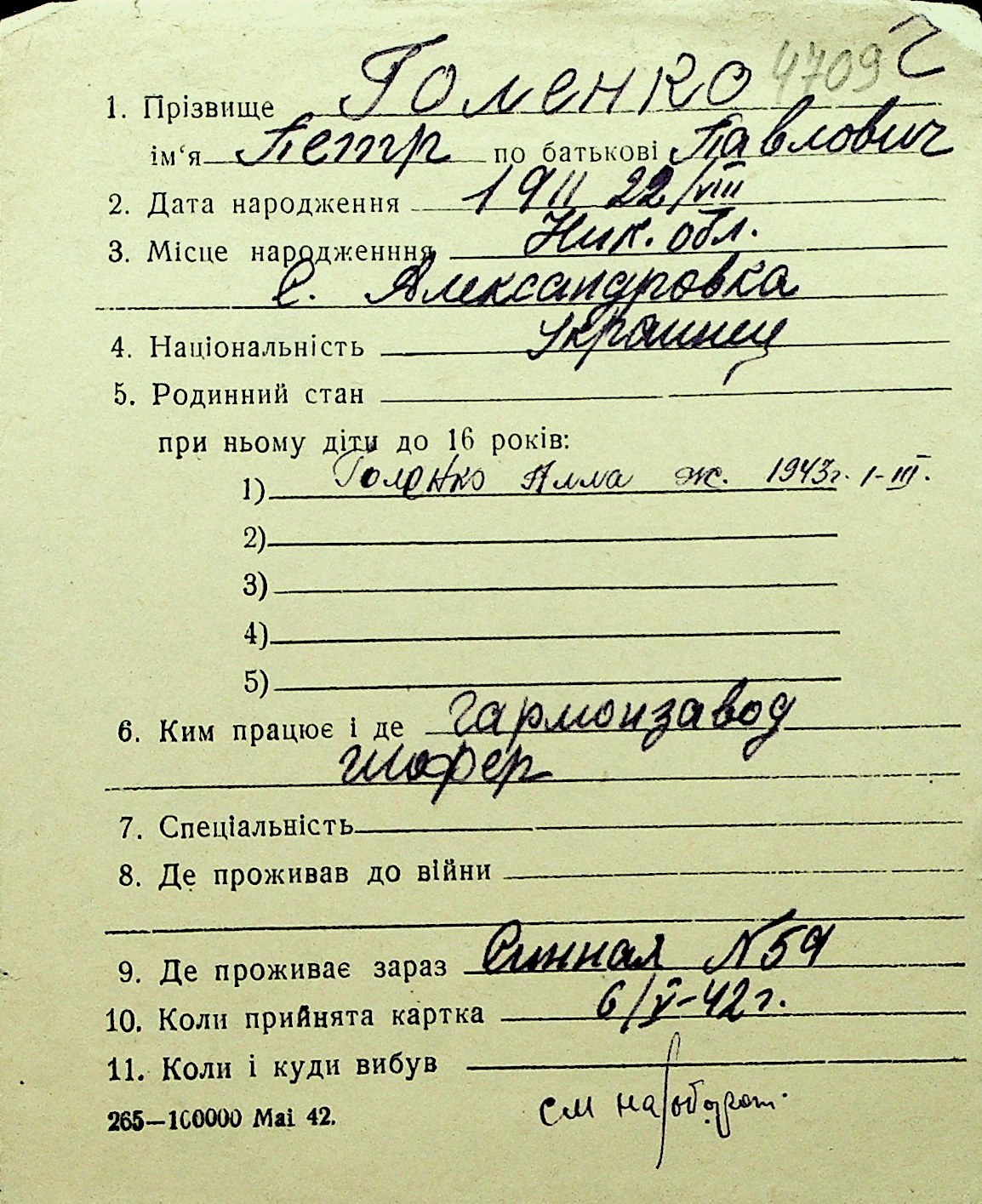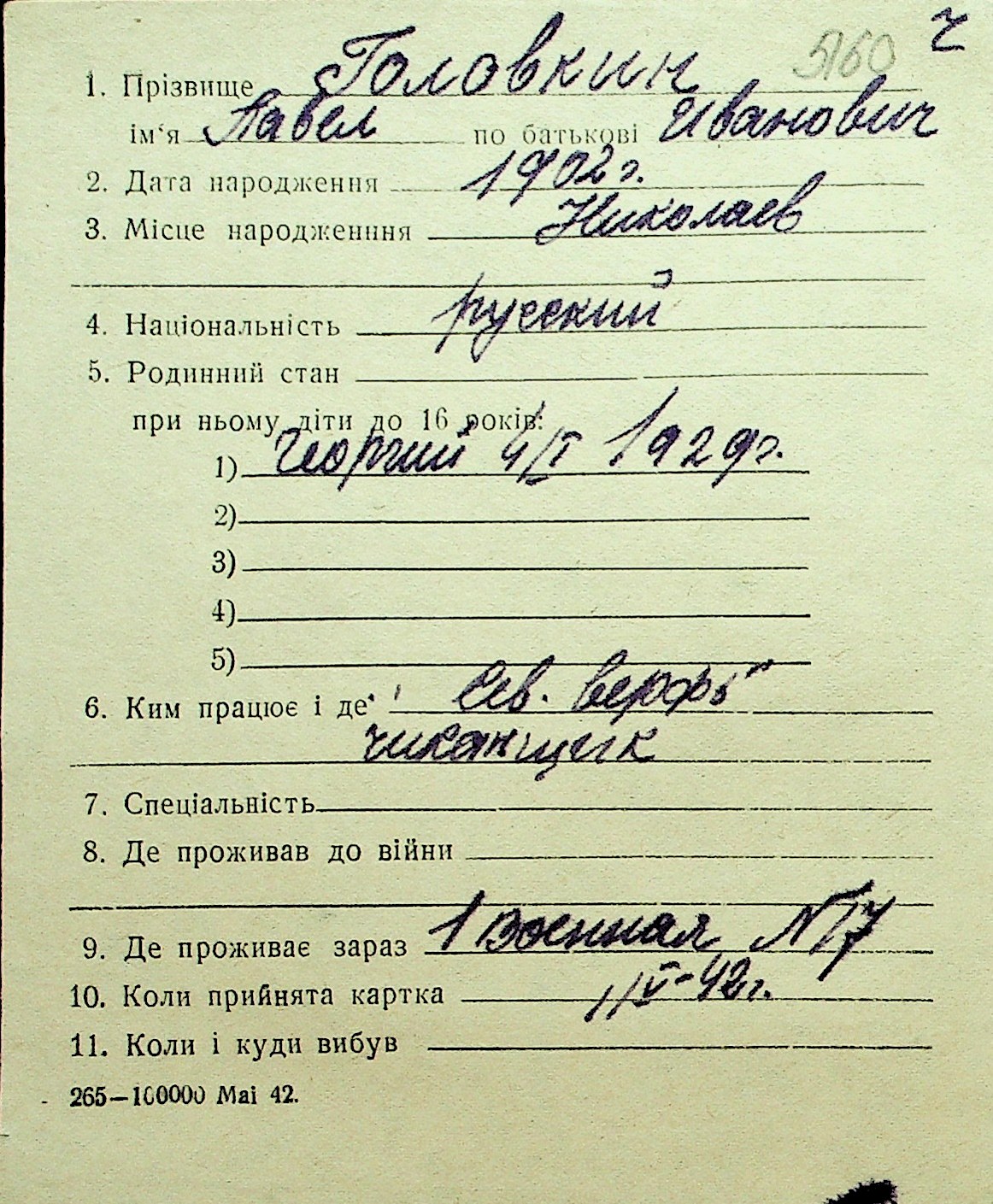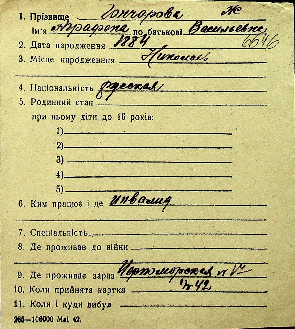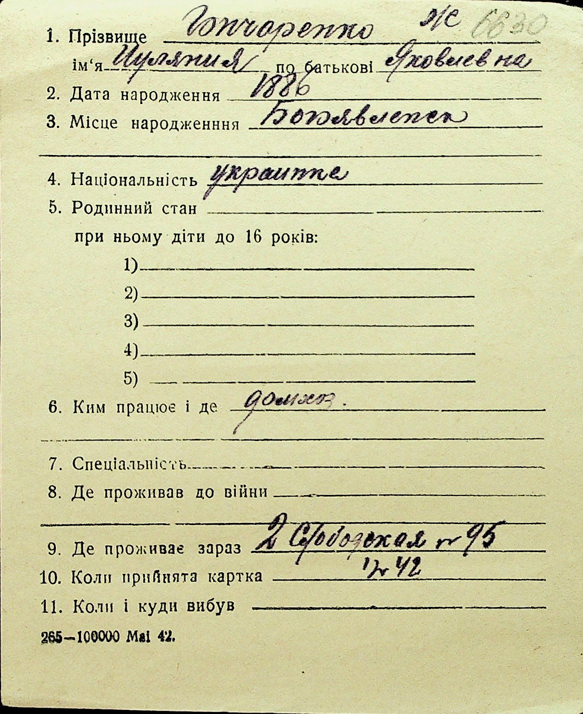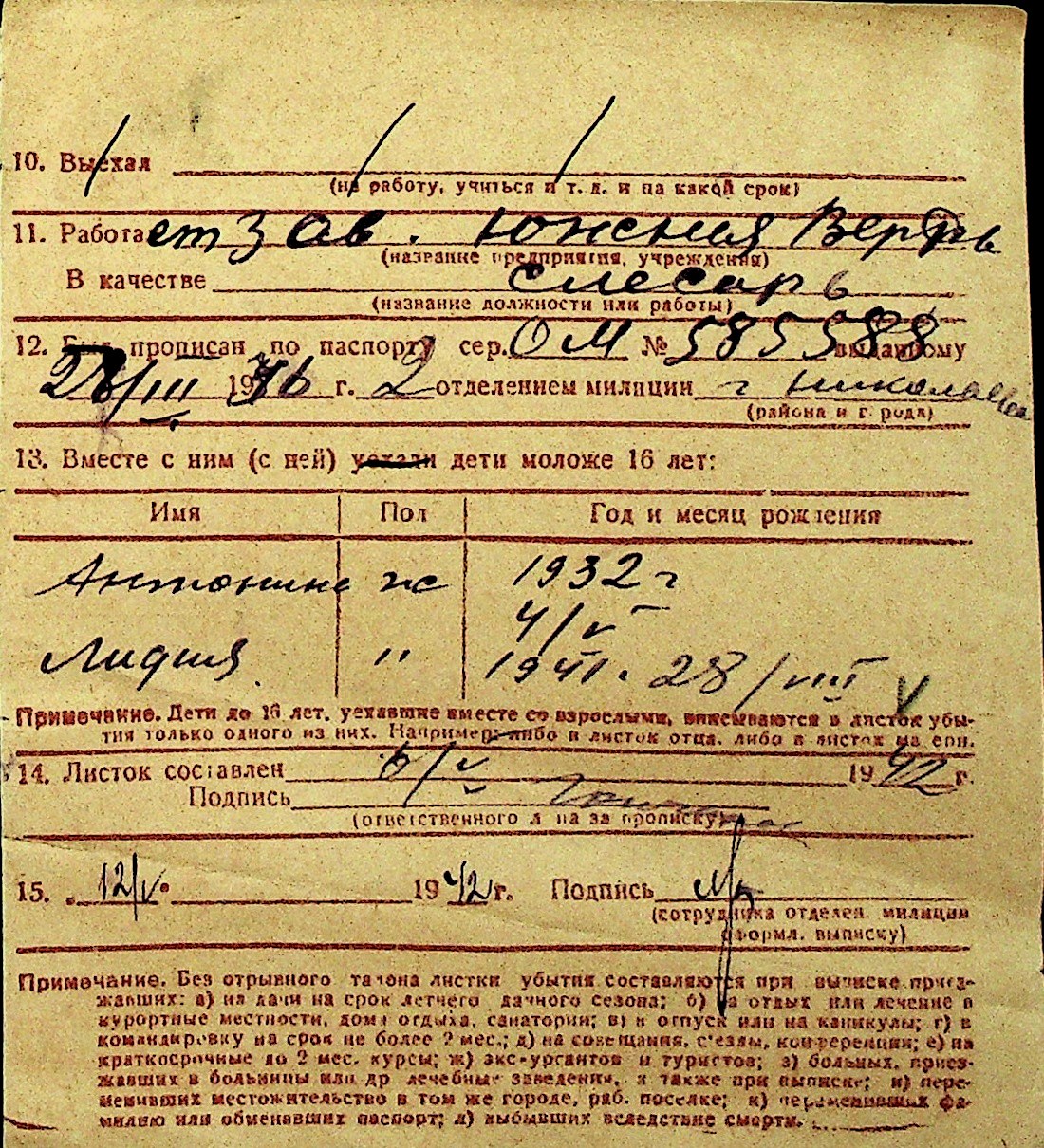 • • Перелік карток до фонду № Н-1016
