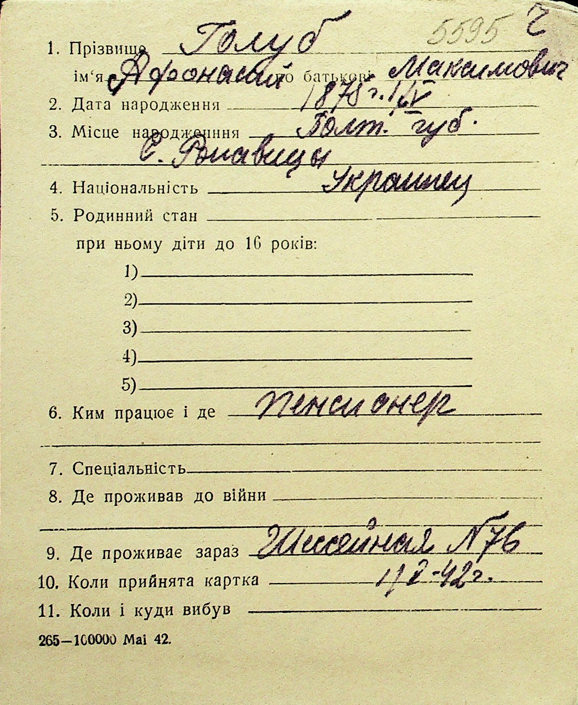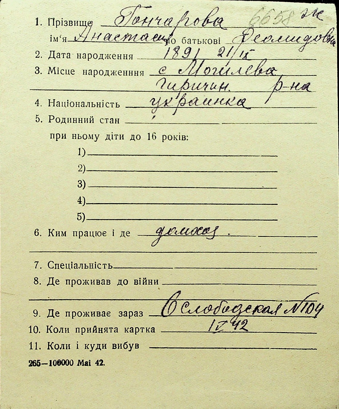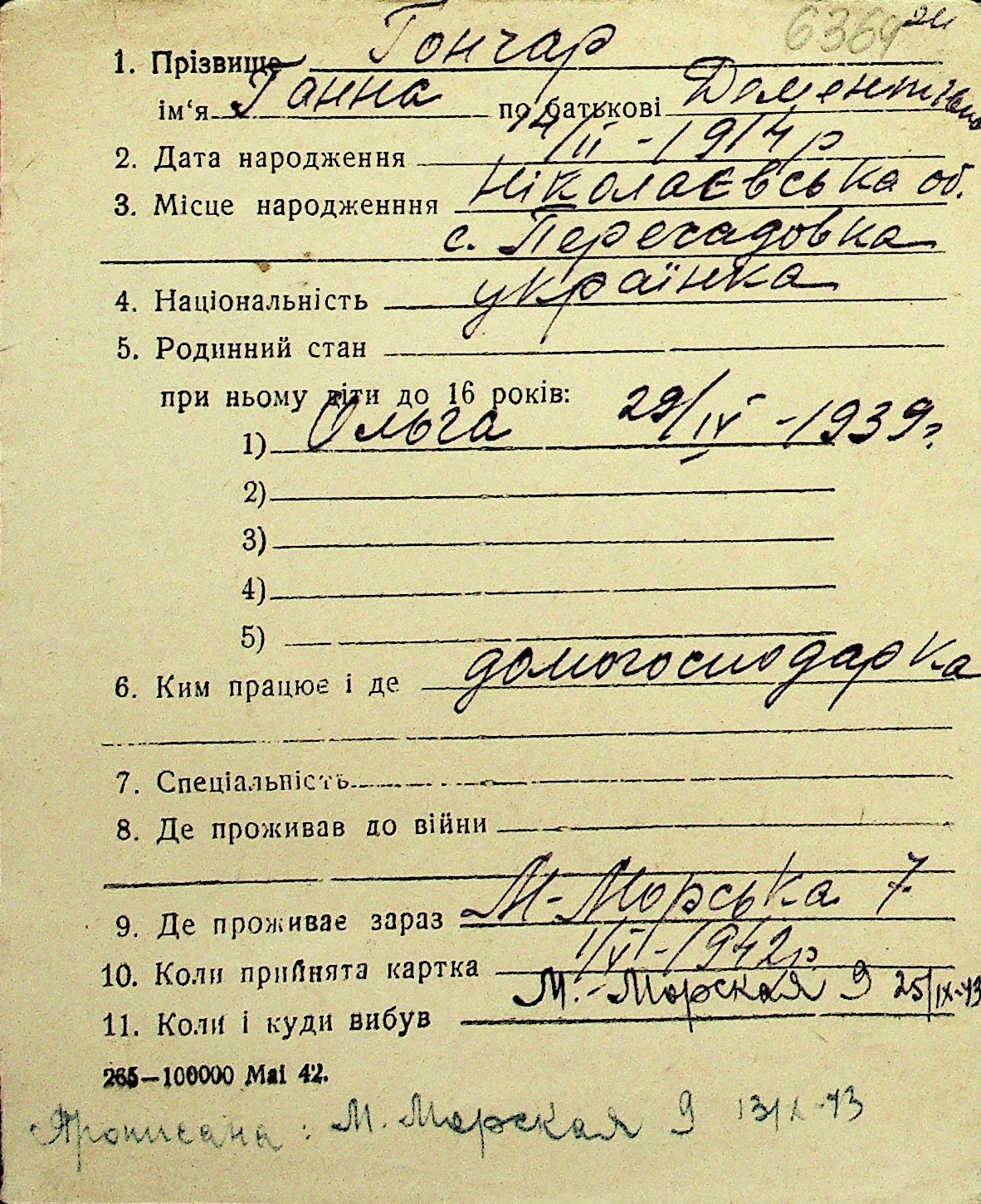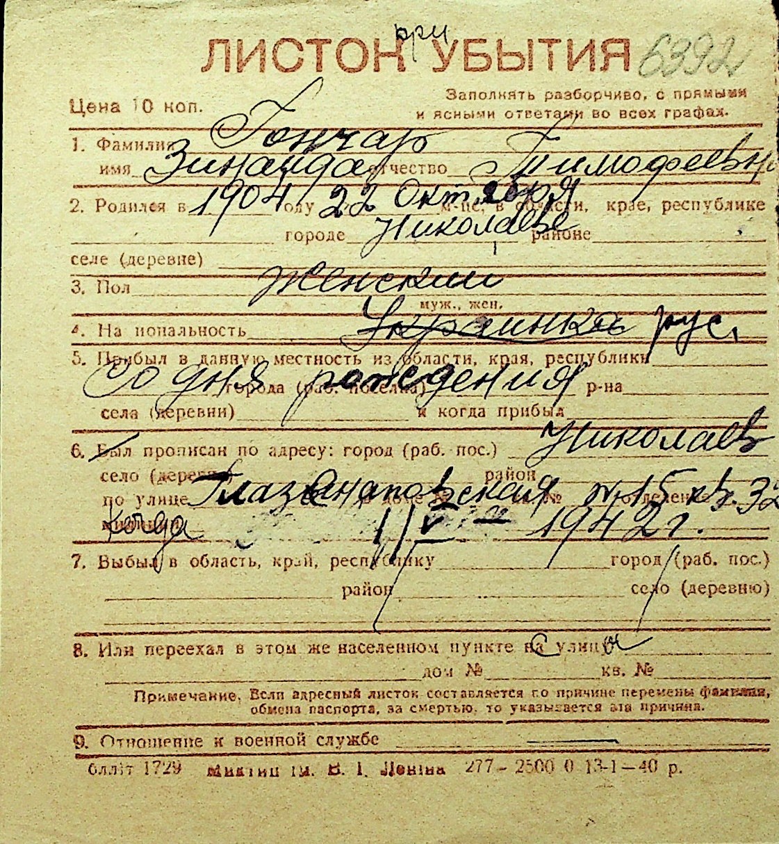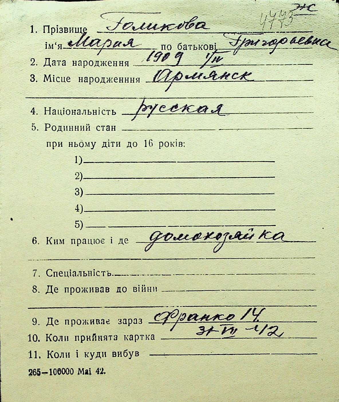 • • Перелік карток до фонду № Н-1016