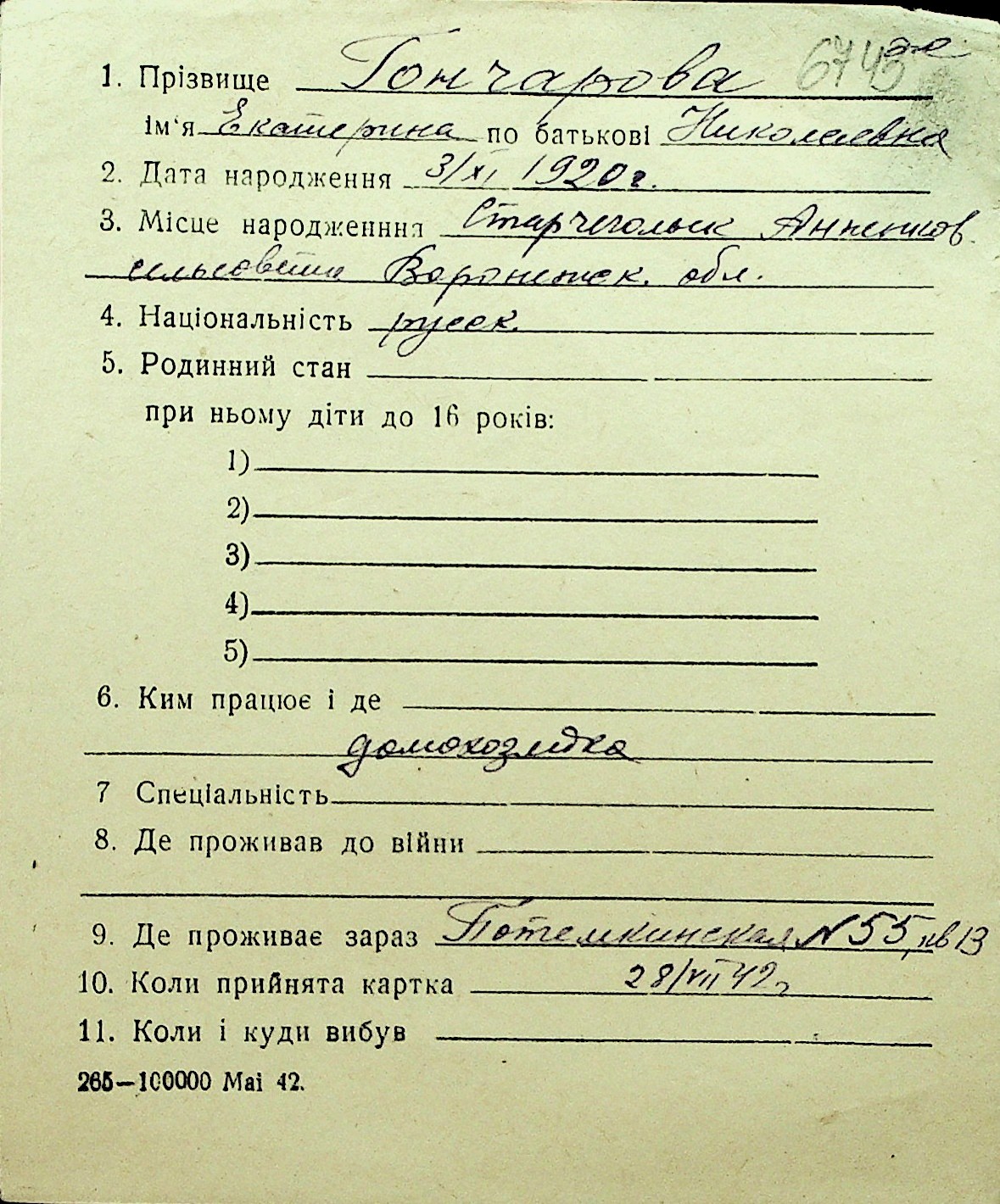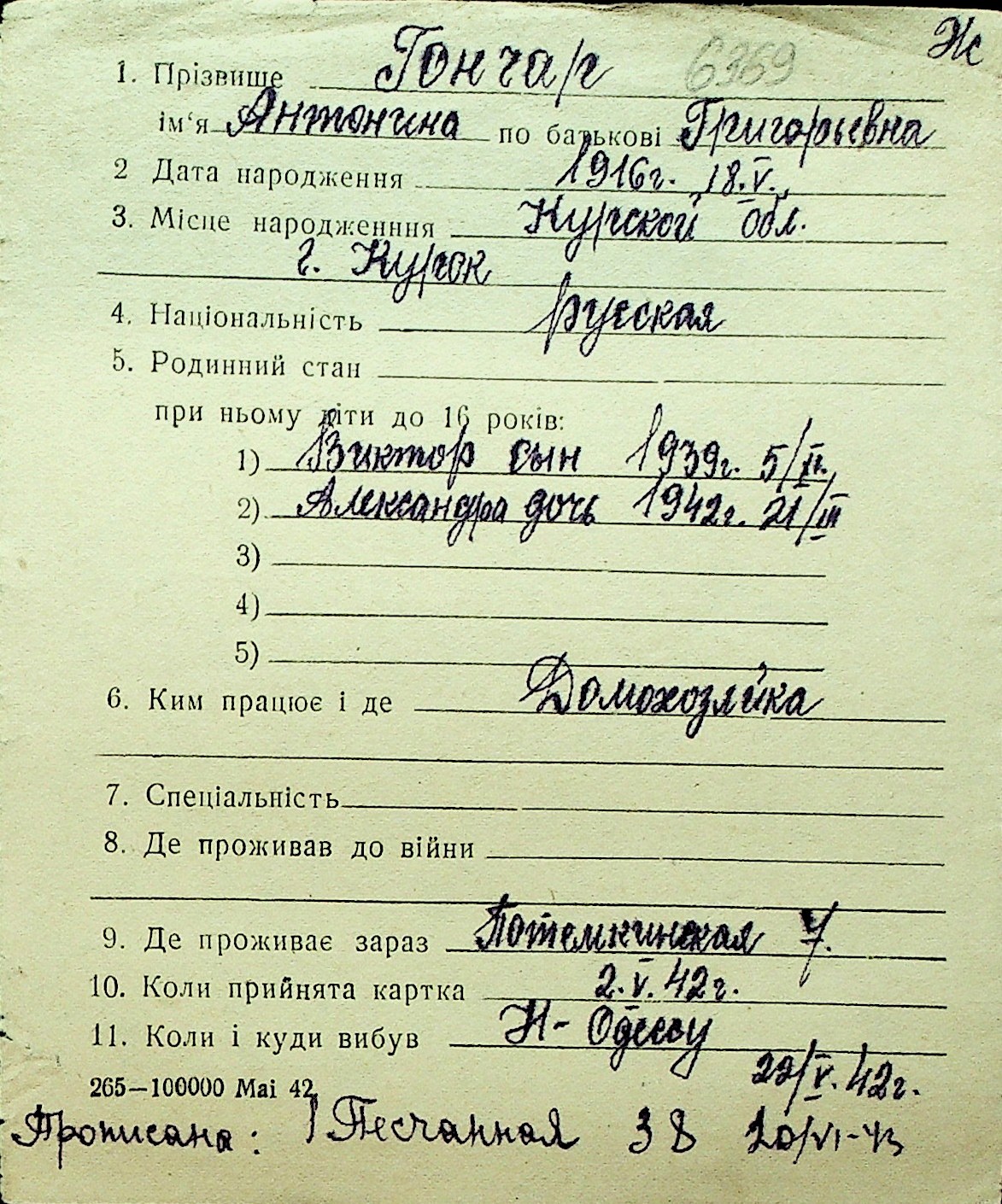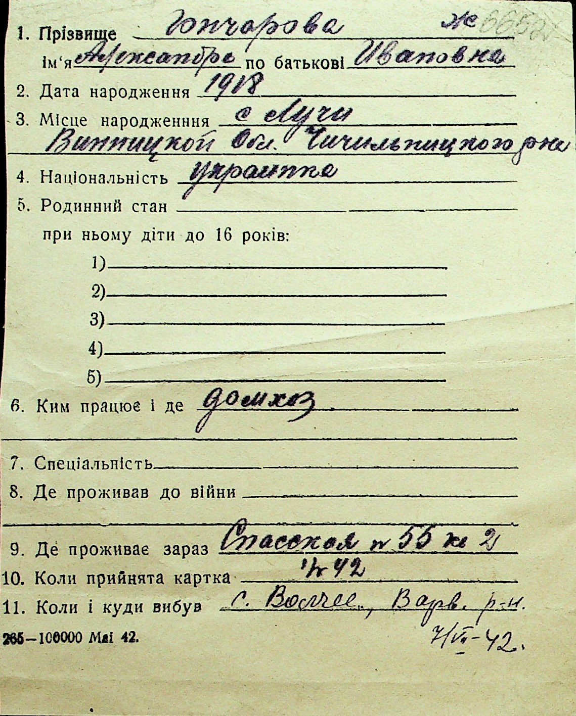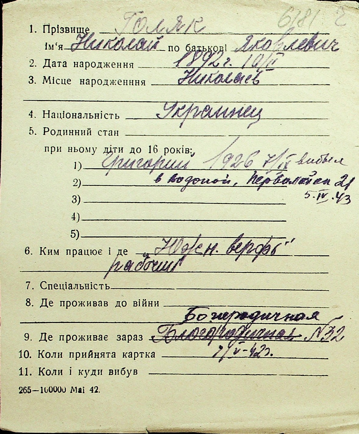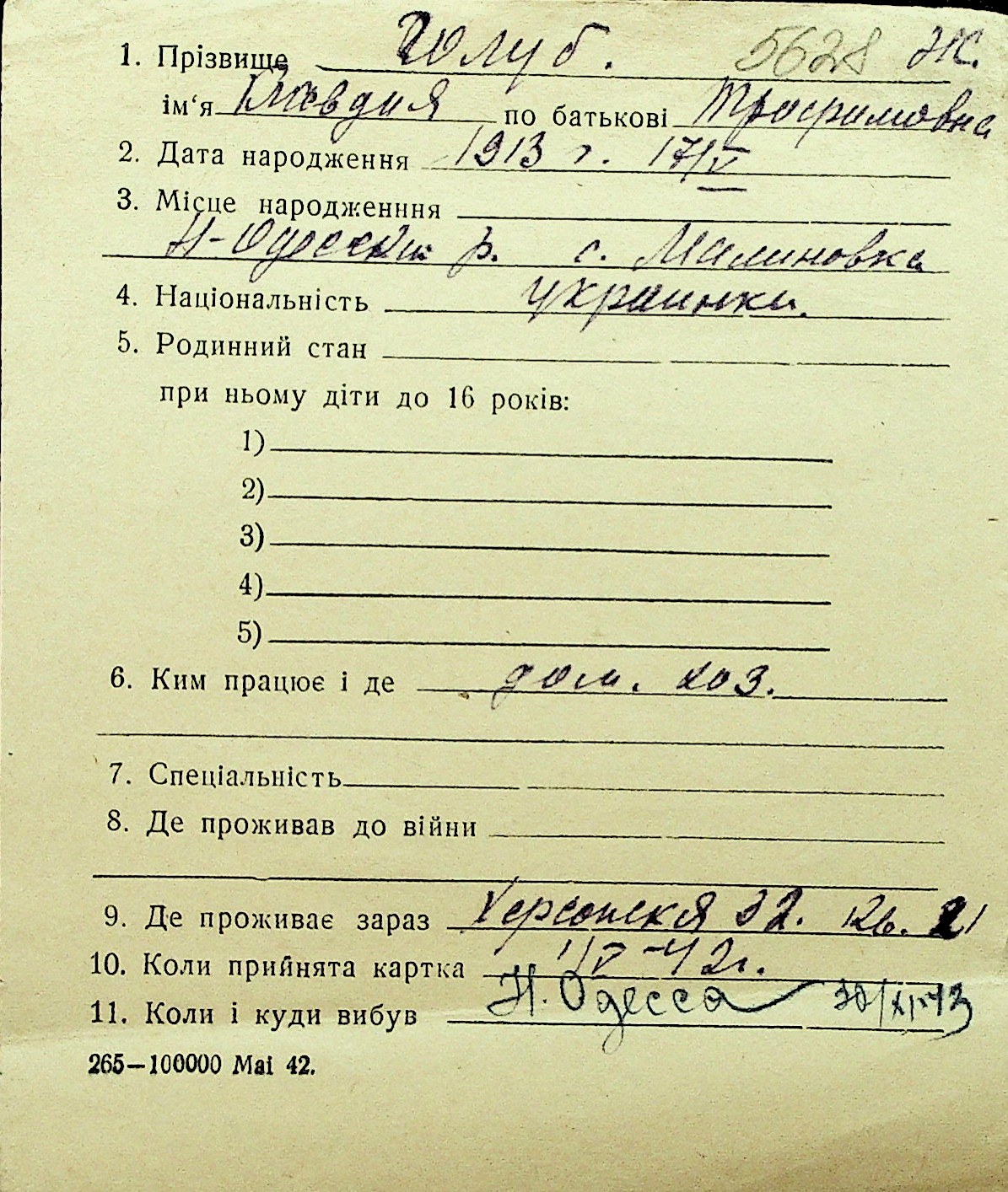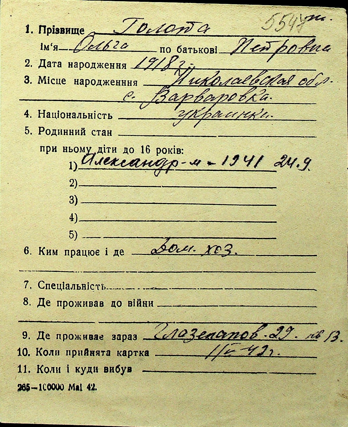 • • Перелік карток до фонду № Н-1016