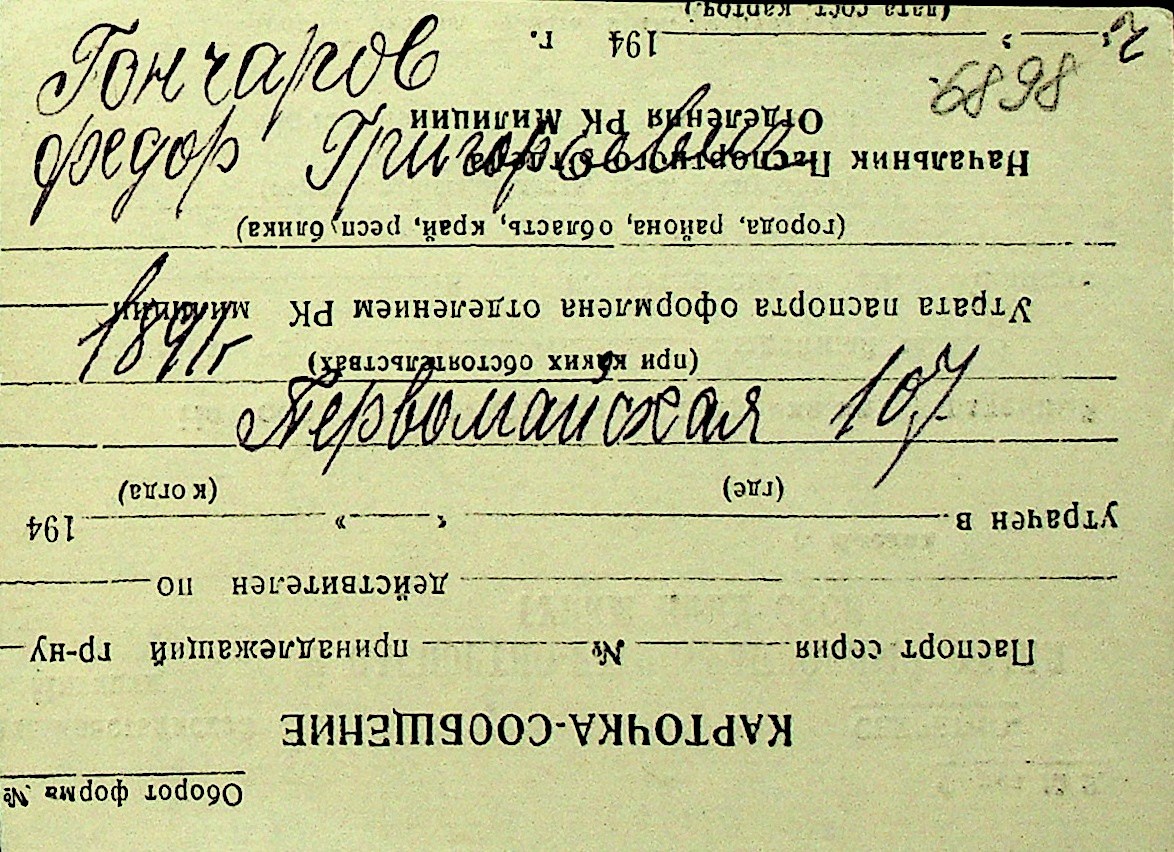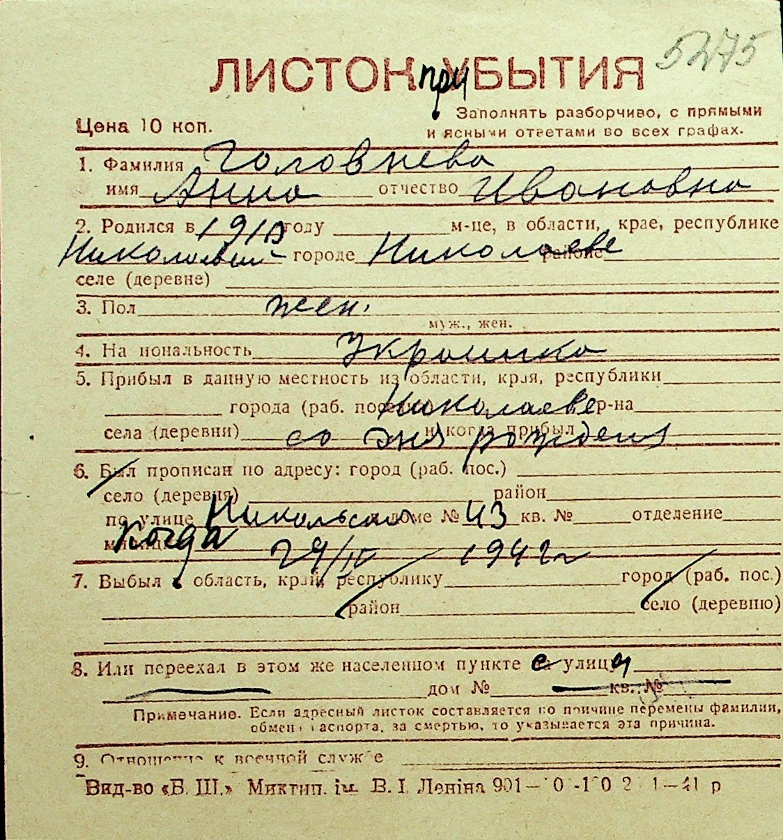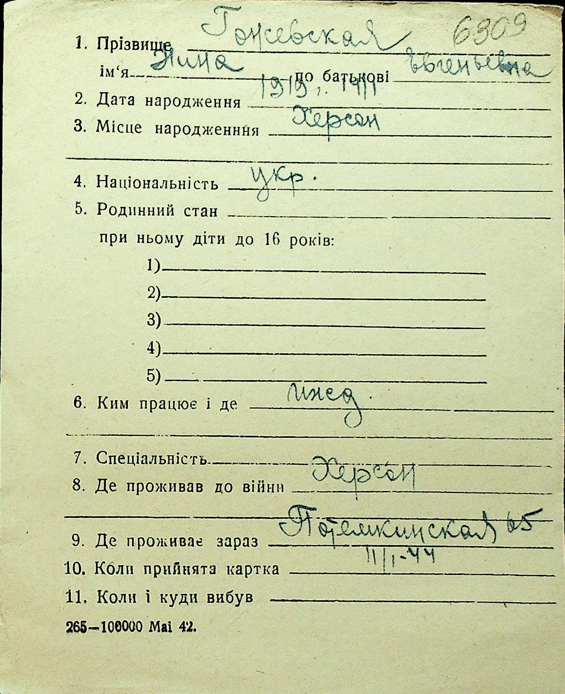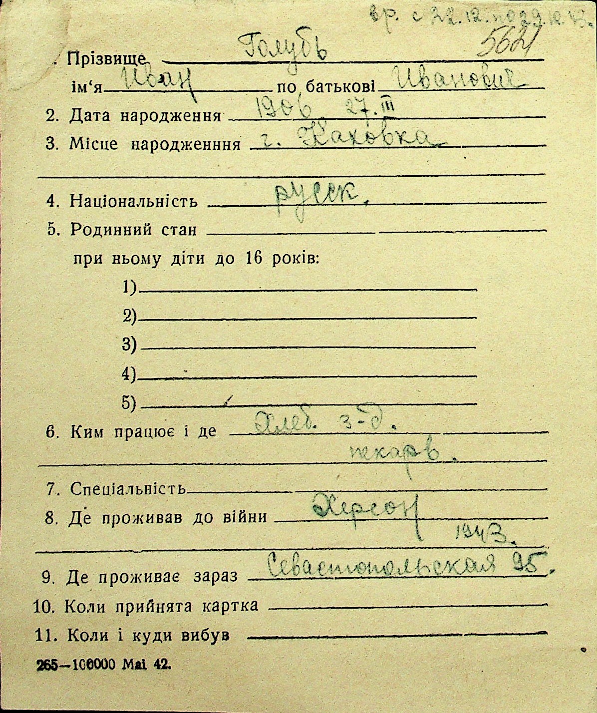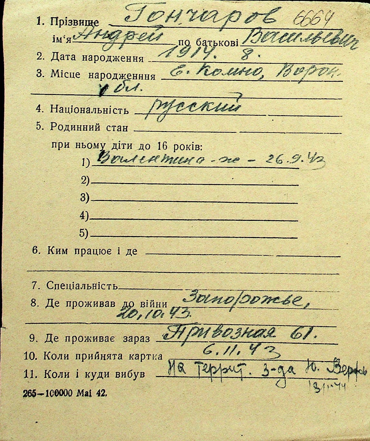 • • Перелік карток до фонду № Н-1016