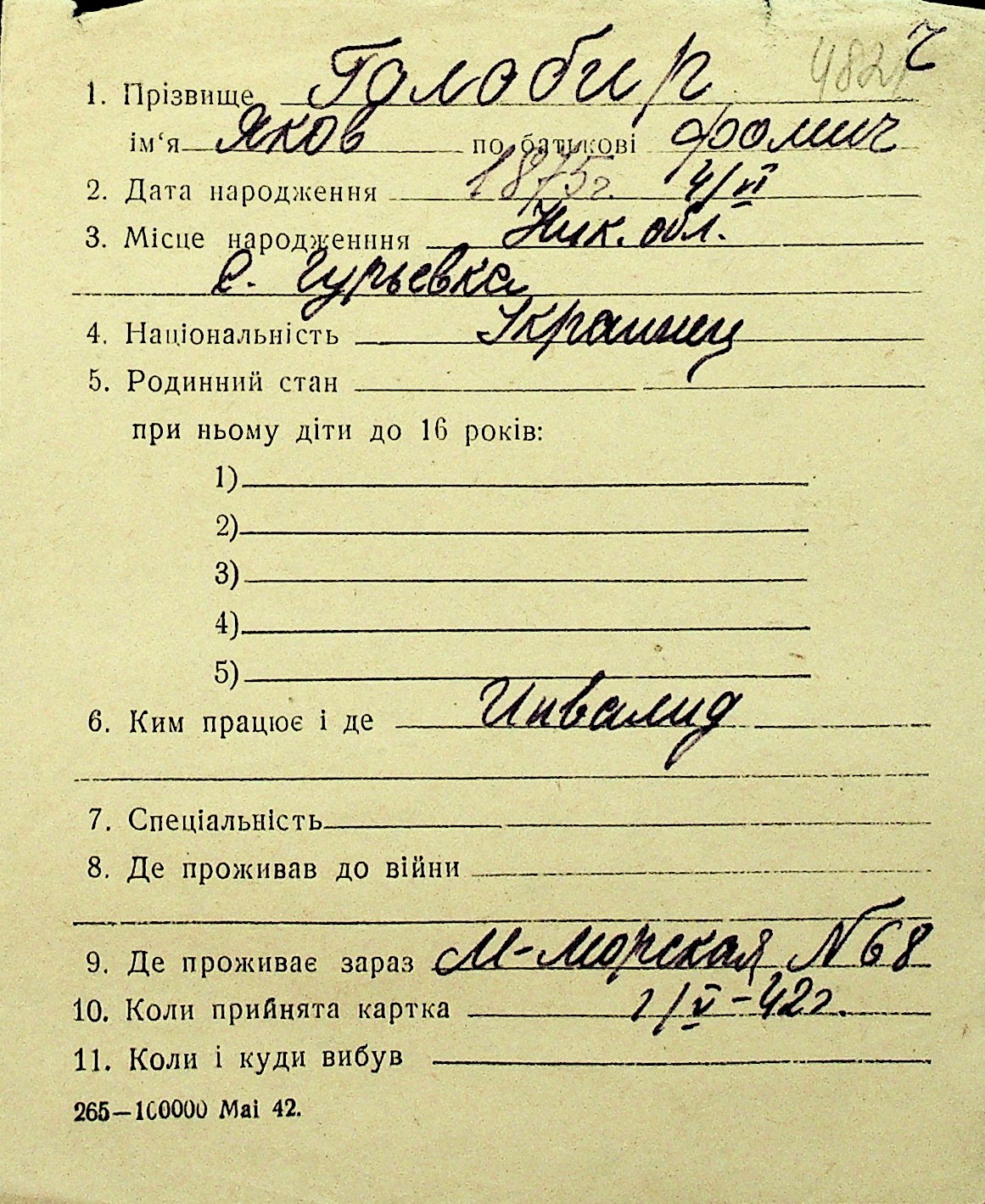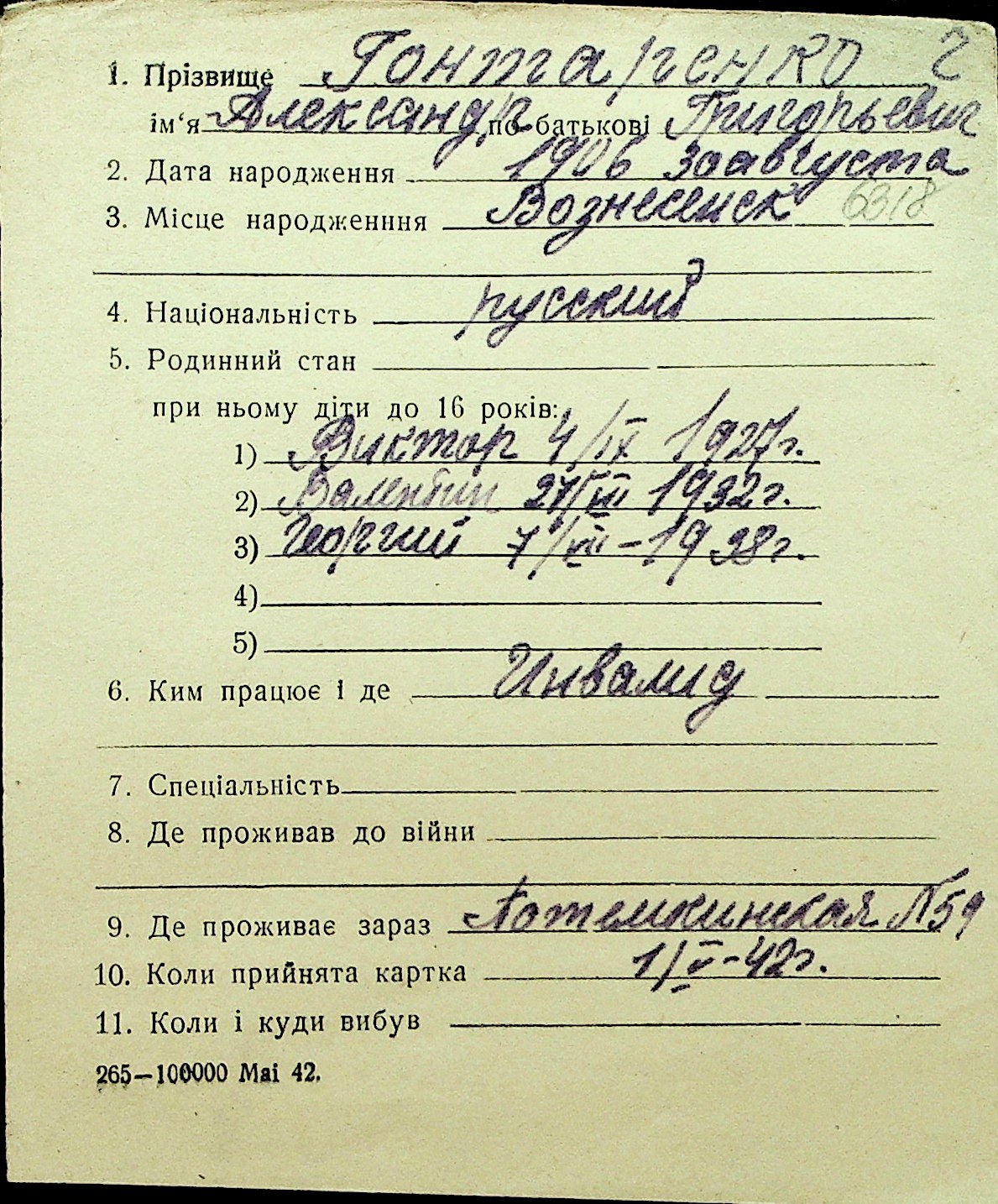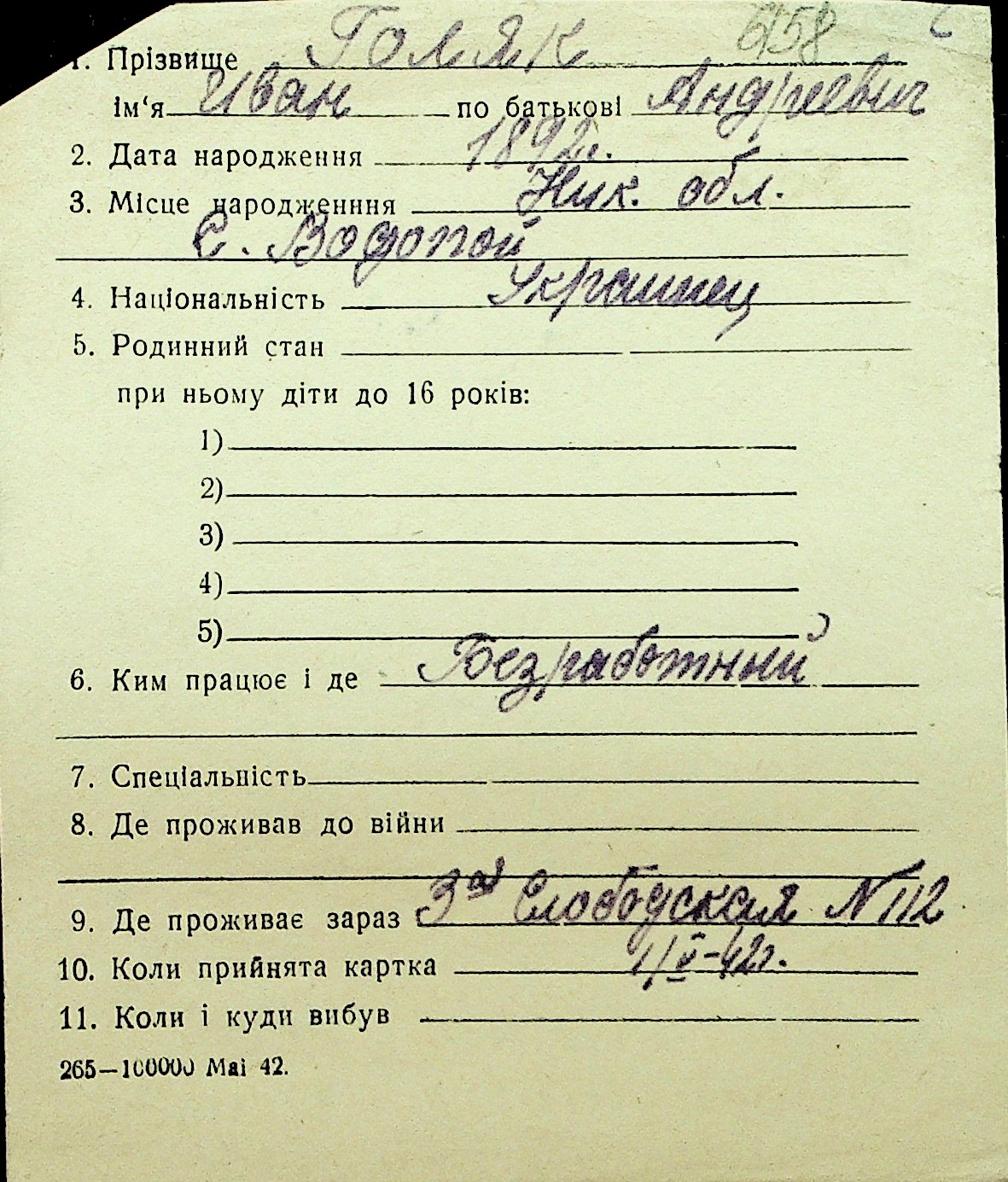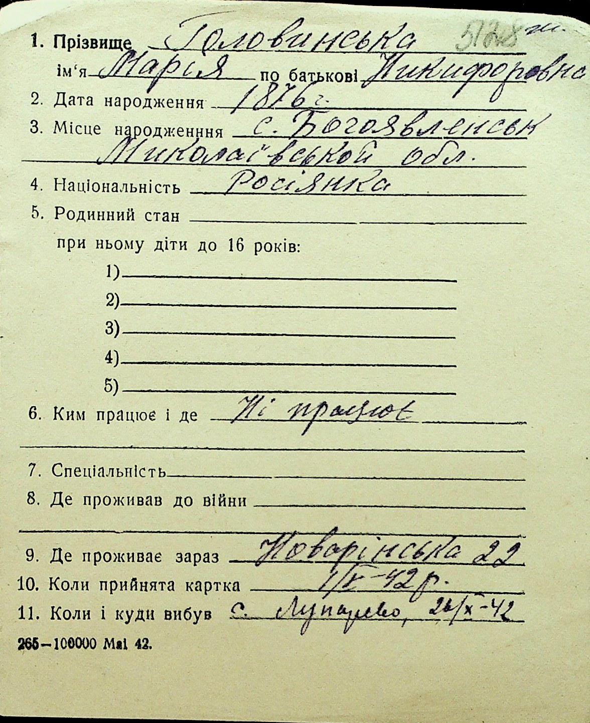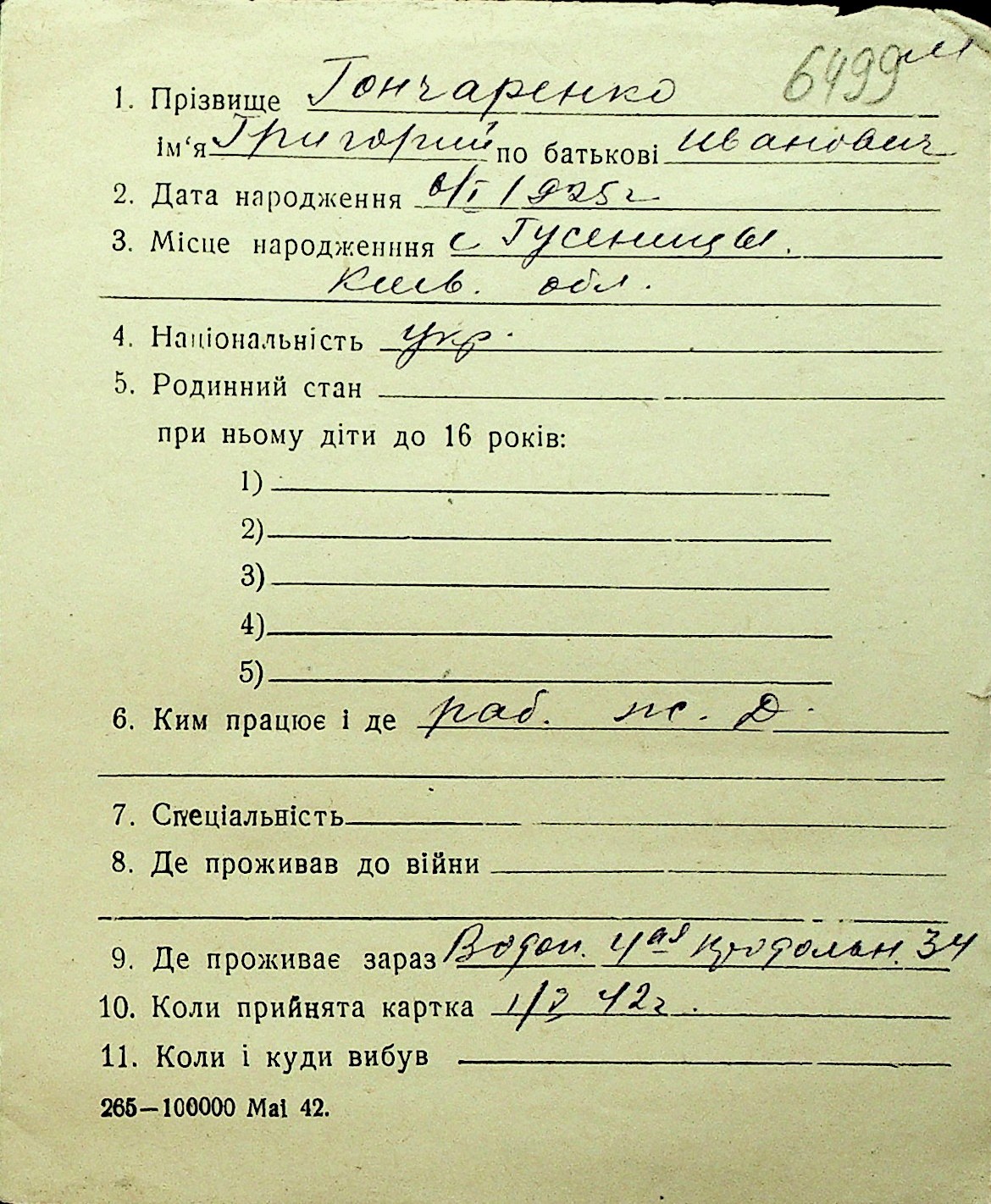 • • Перелік карток до фонду № Н-1016