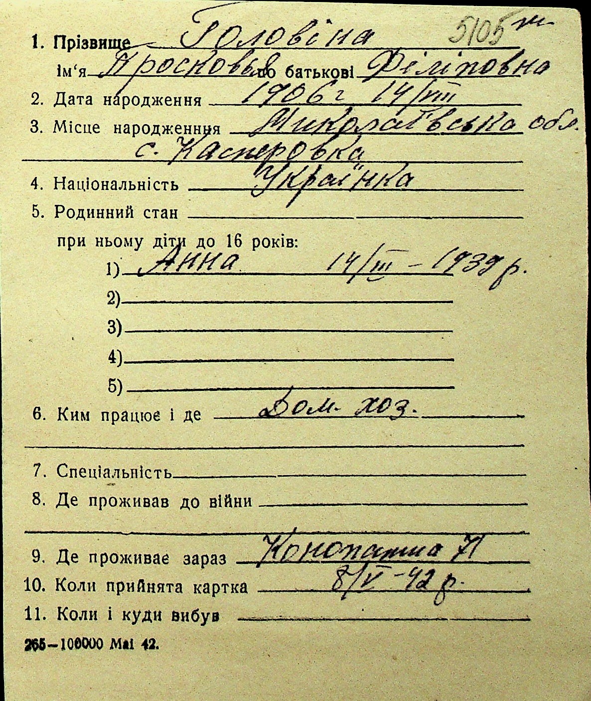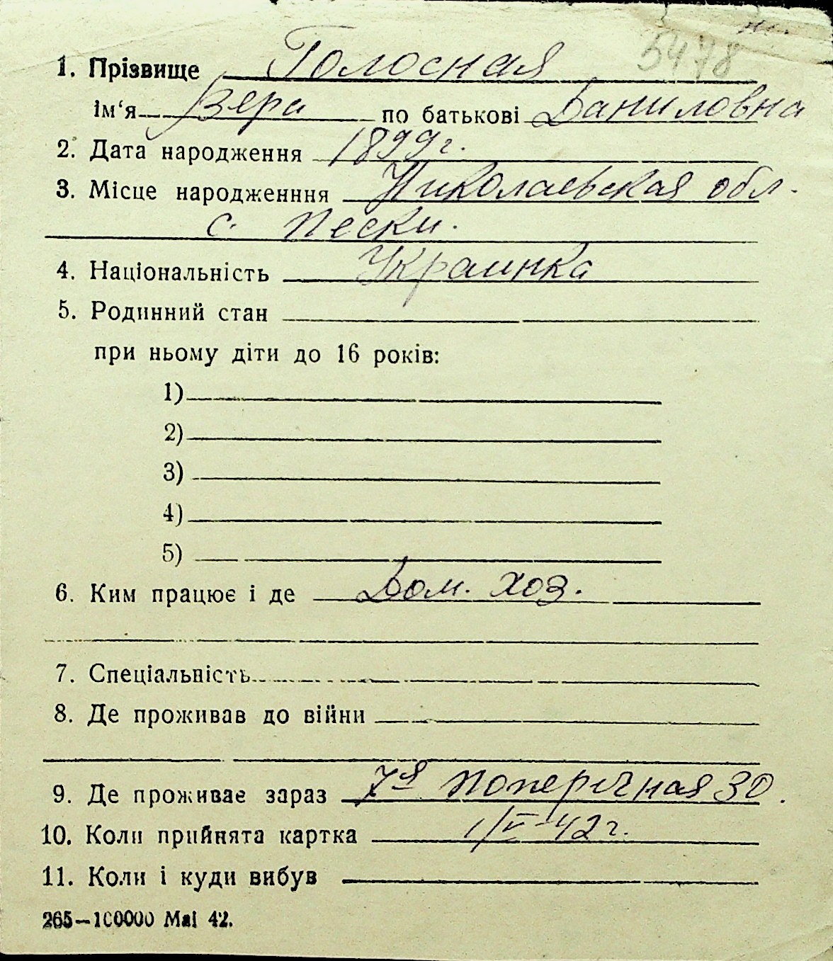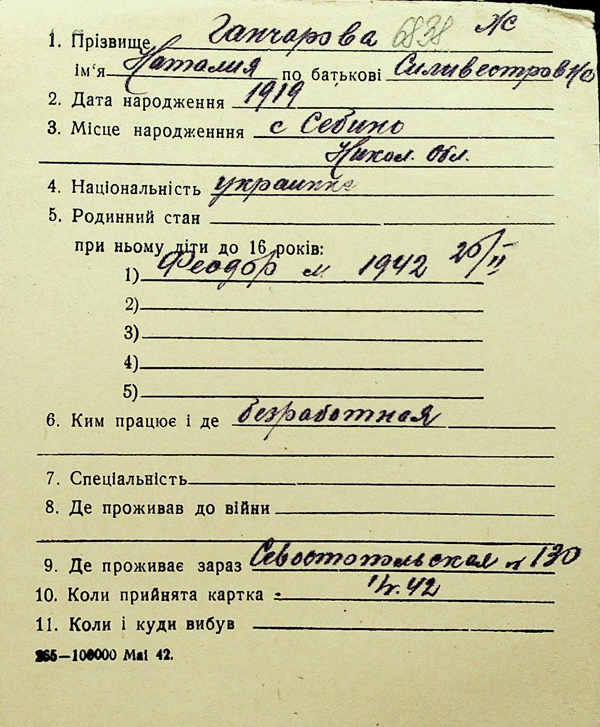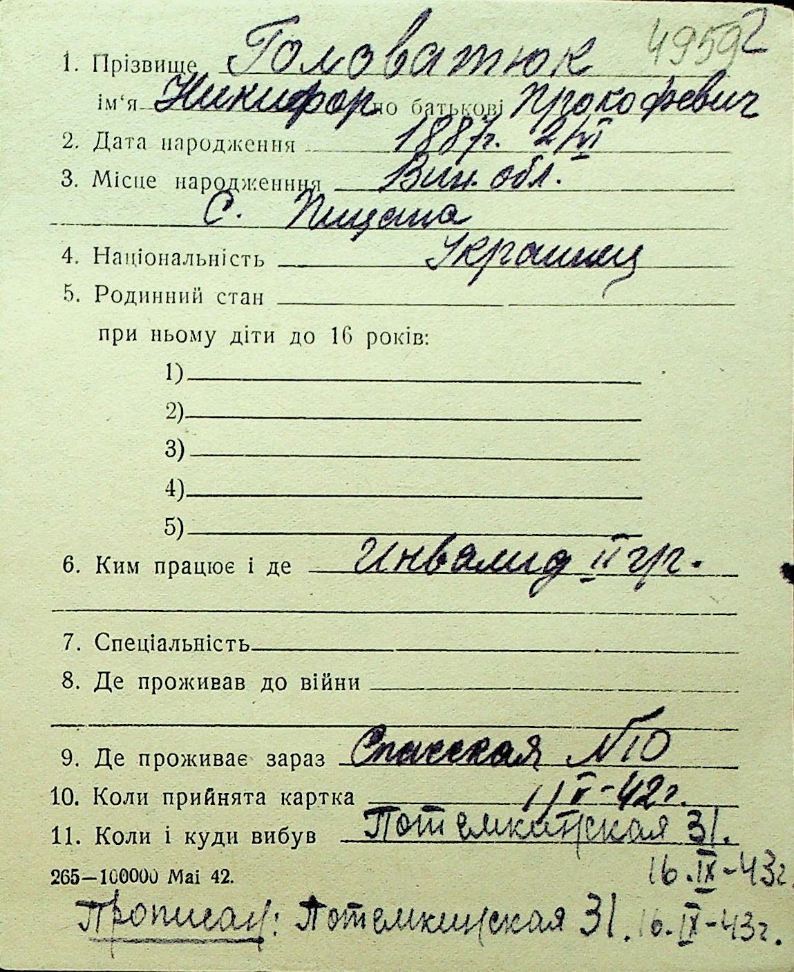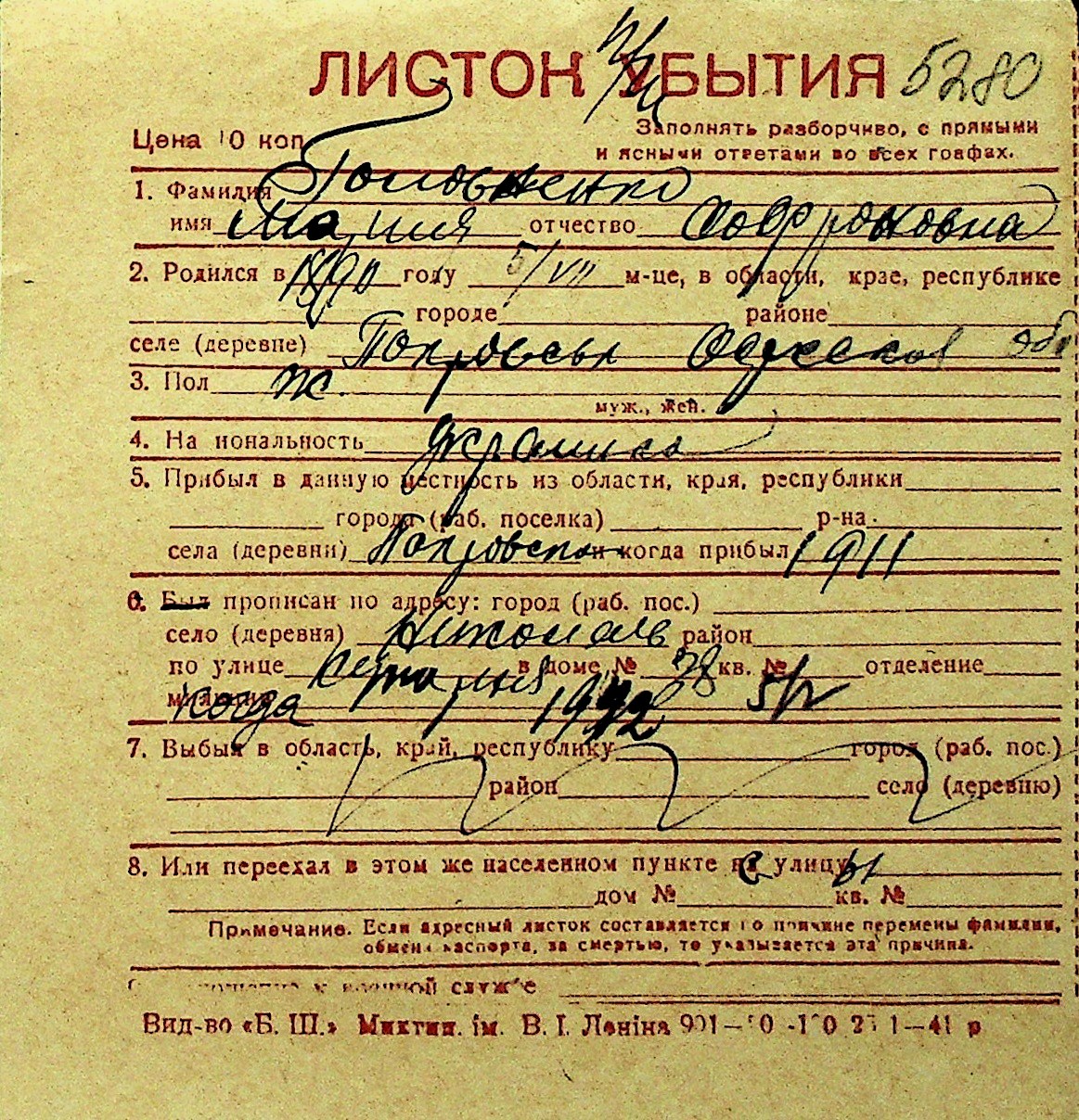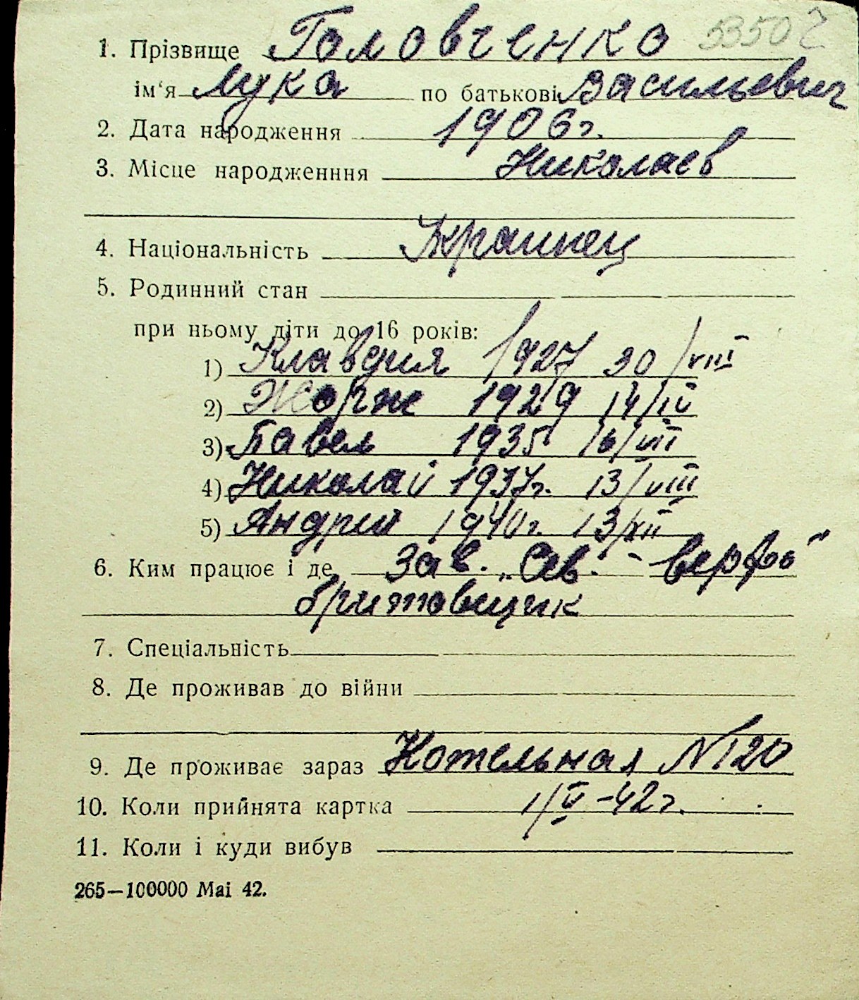 • • Перелік карток до фонду № Н-1016