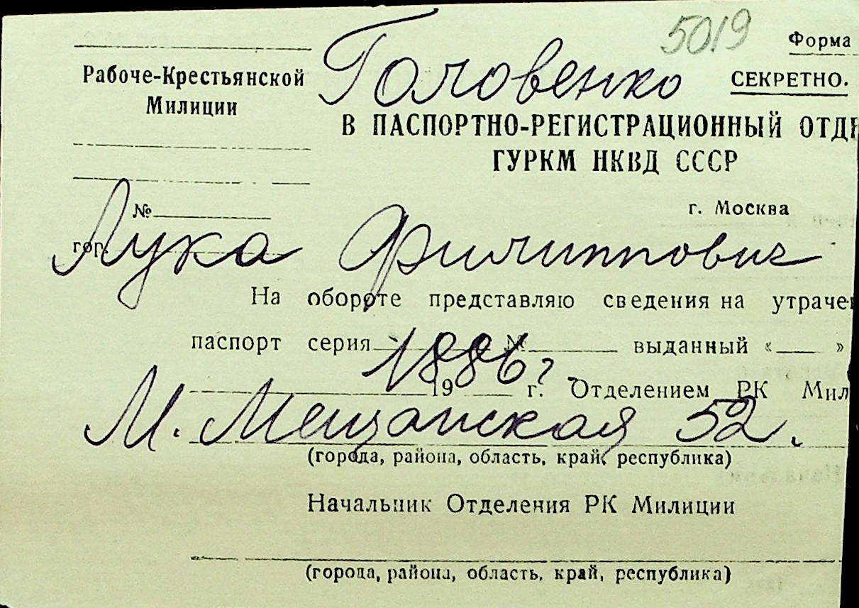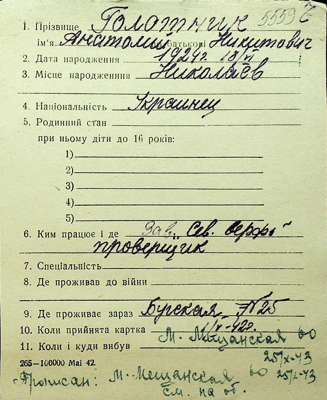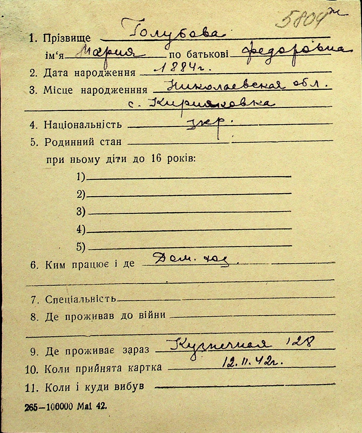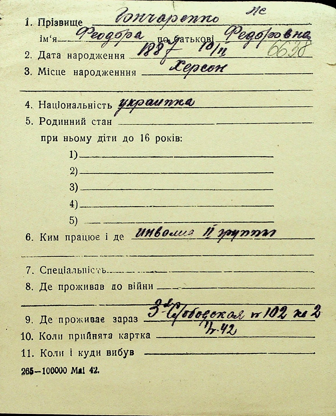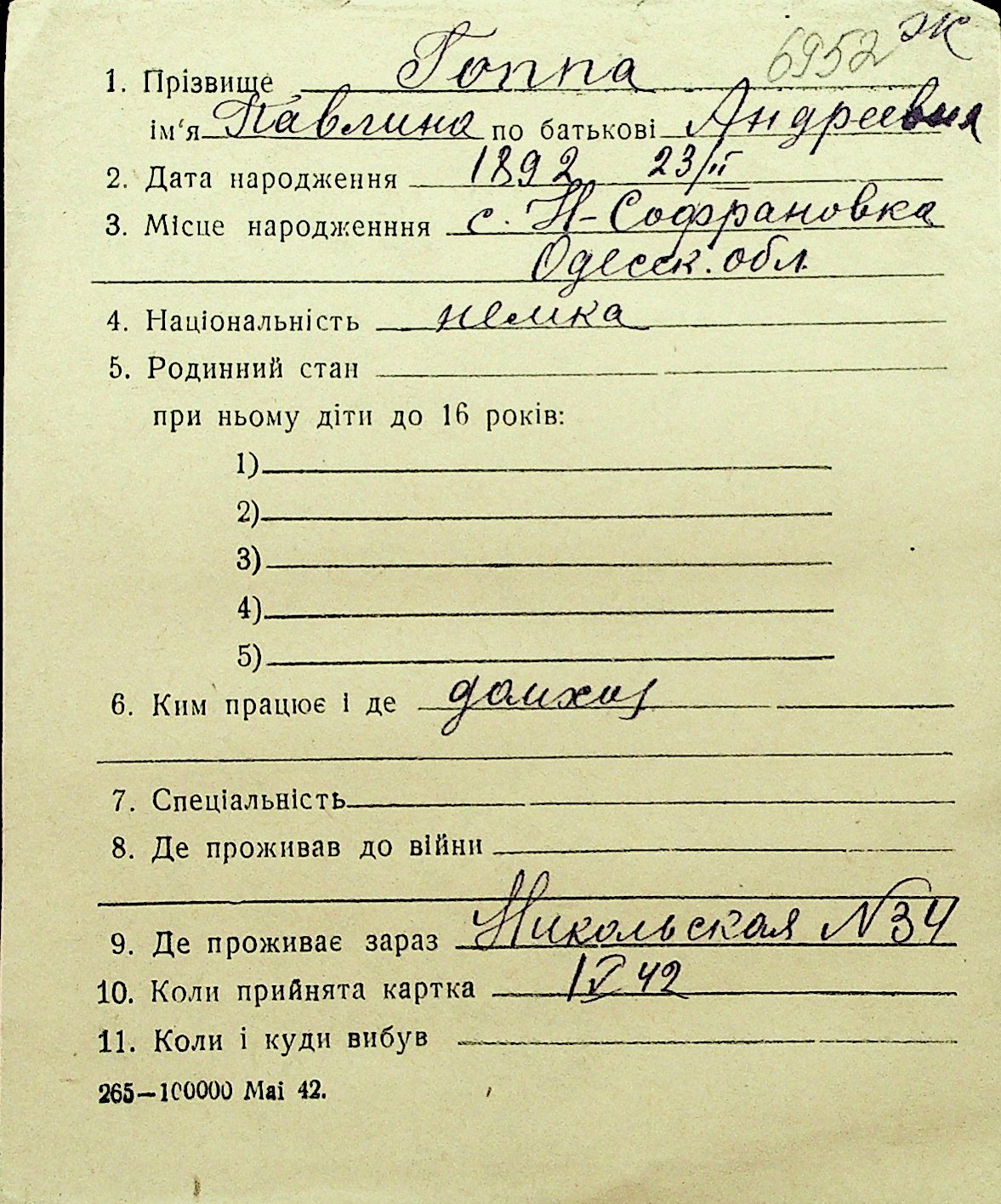• • Перелік карток до фонду № Н-1016