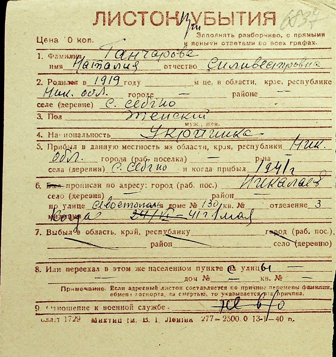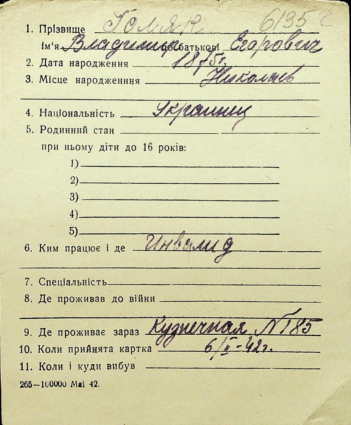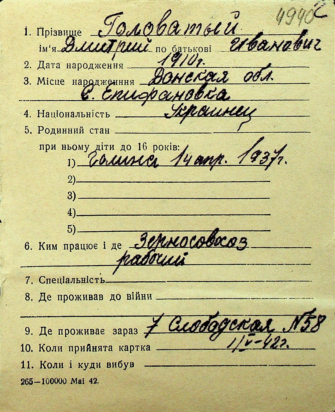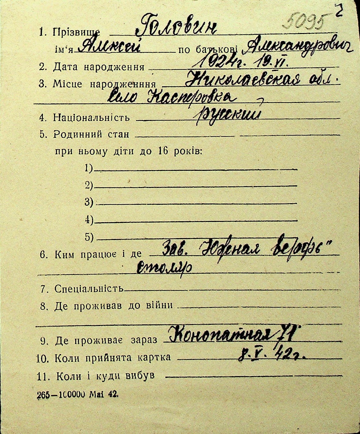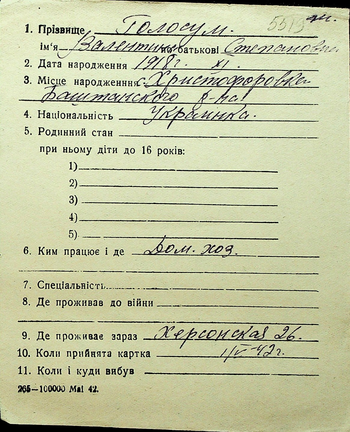 • • Перелік карток до фонду № Н-1016