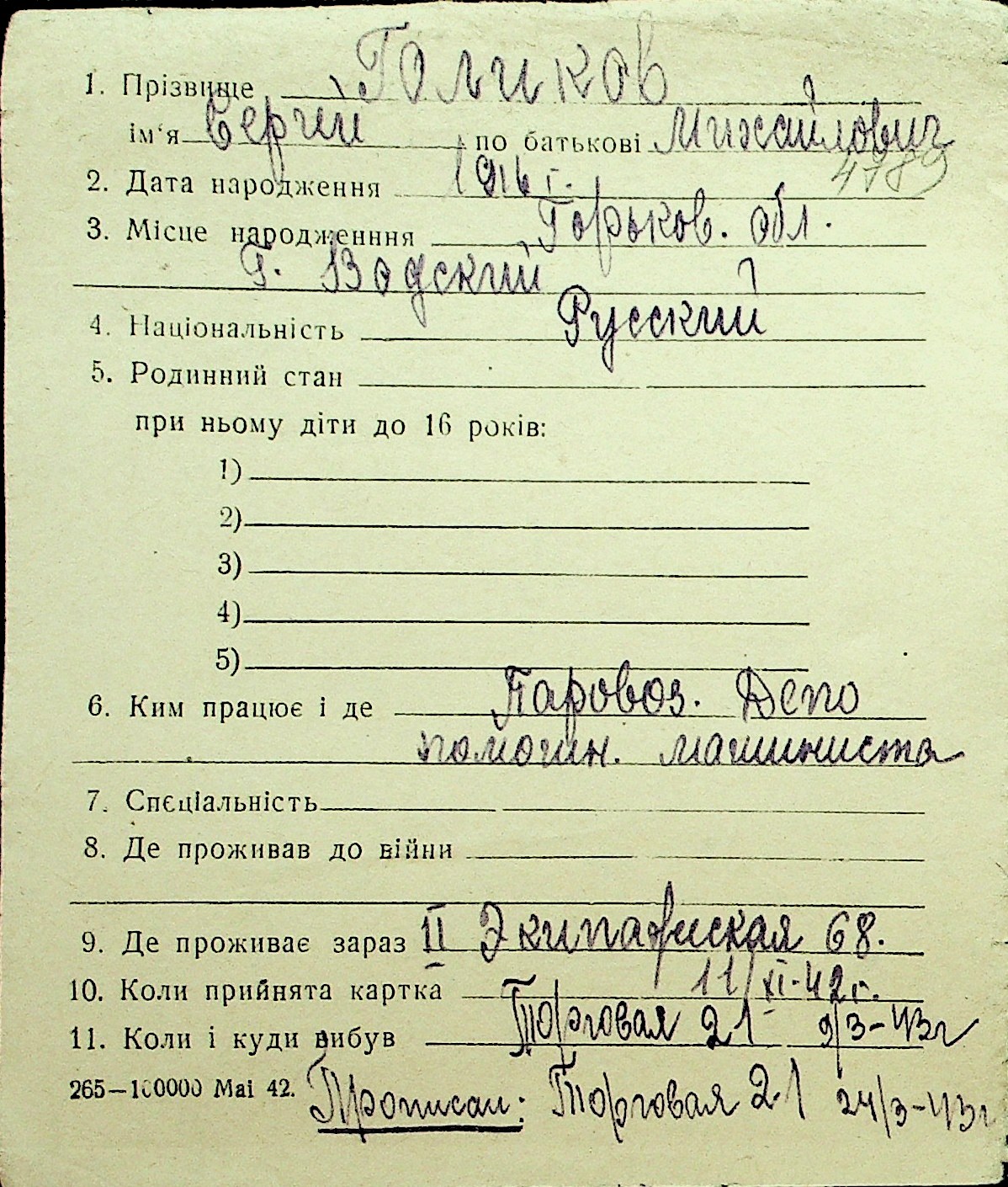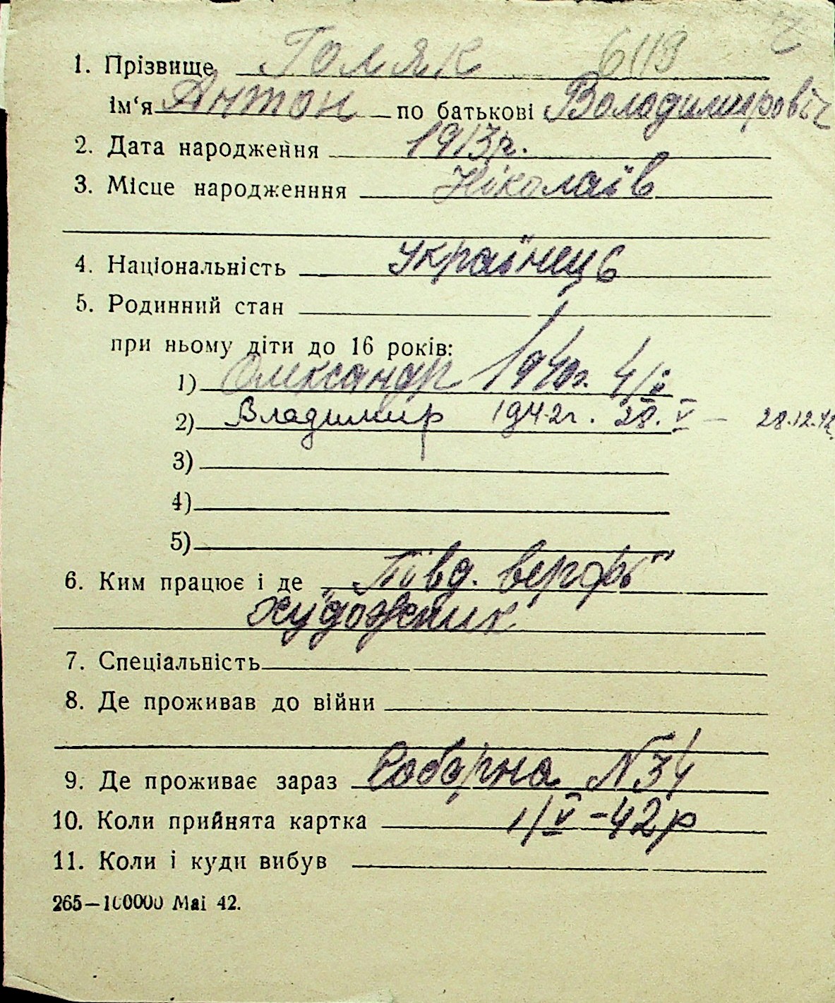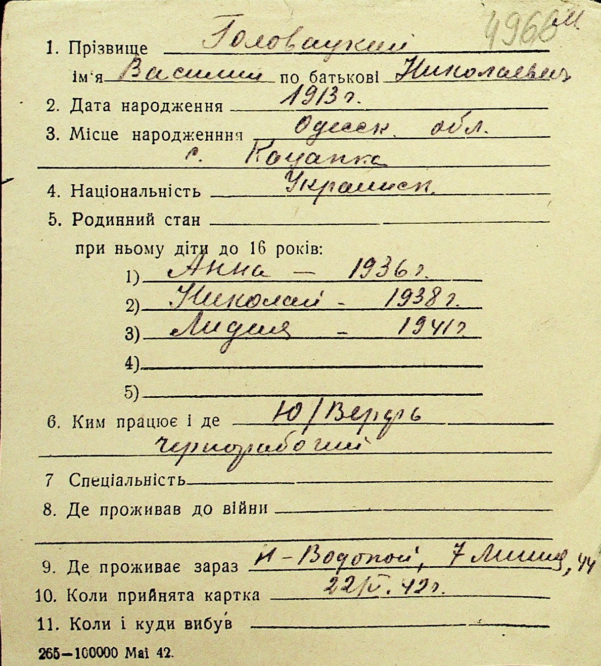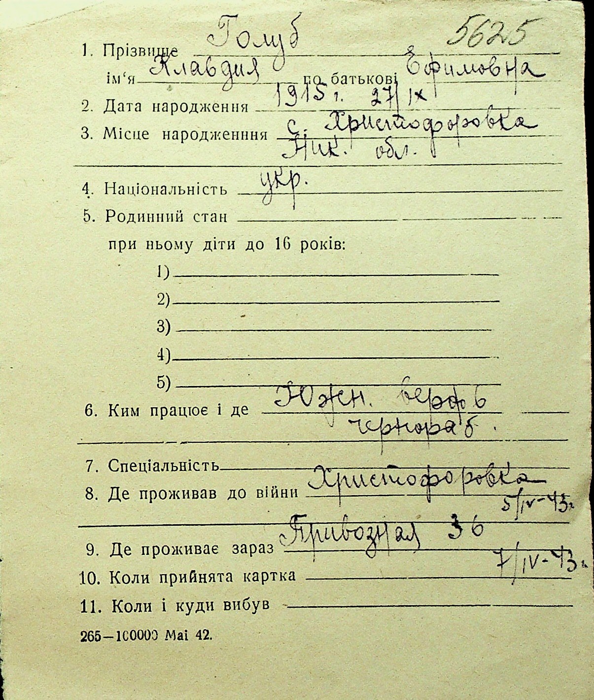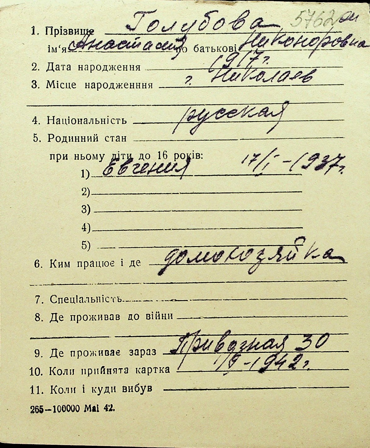 • • Перелік карток до фонду № Н-1016