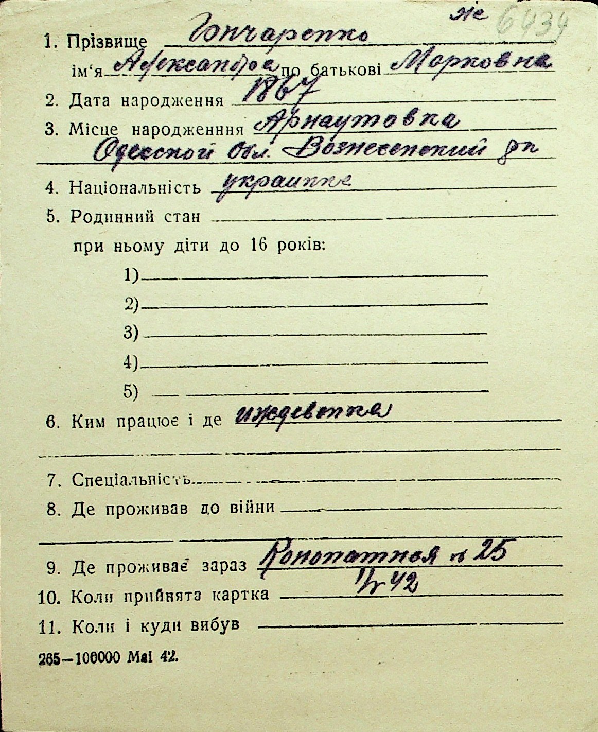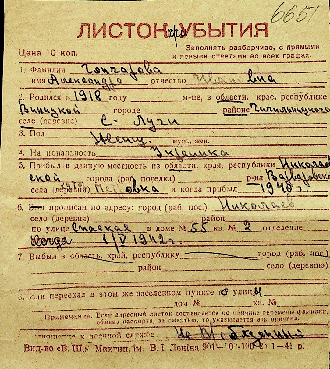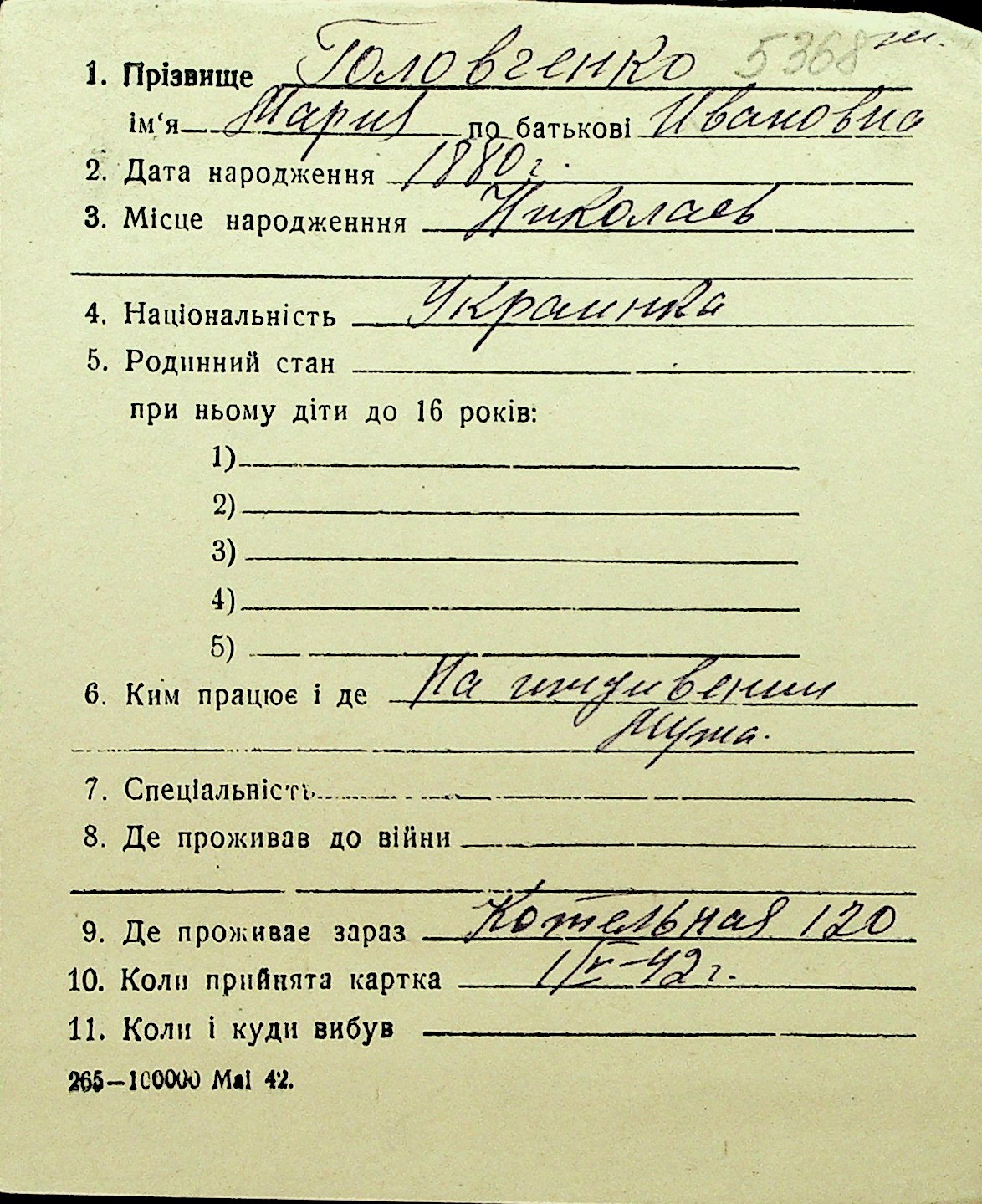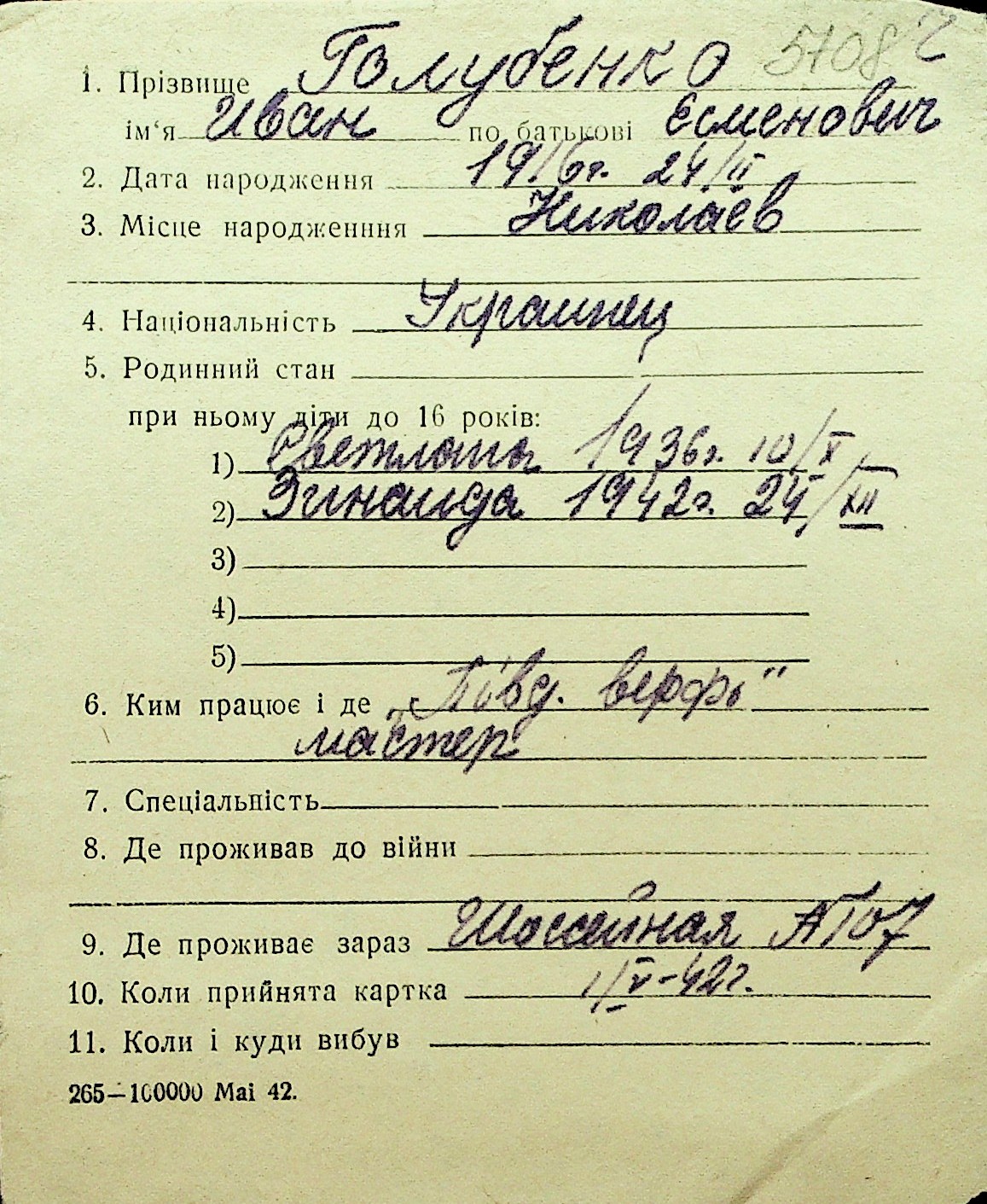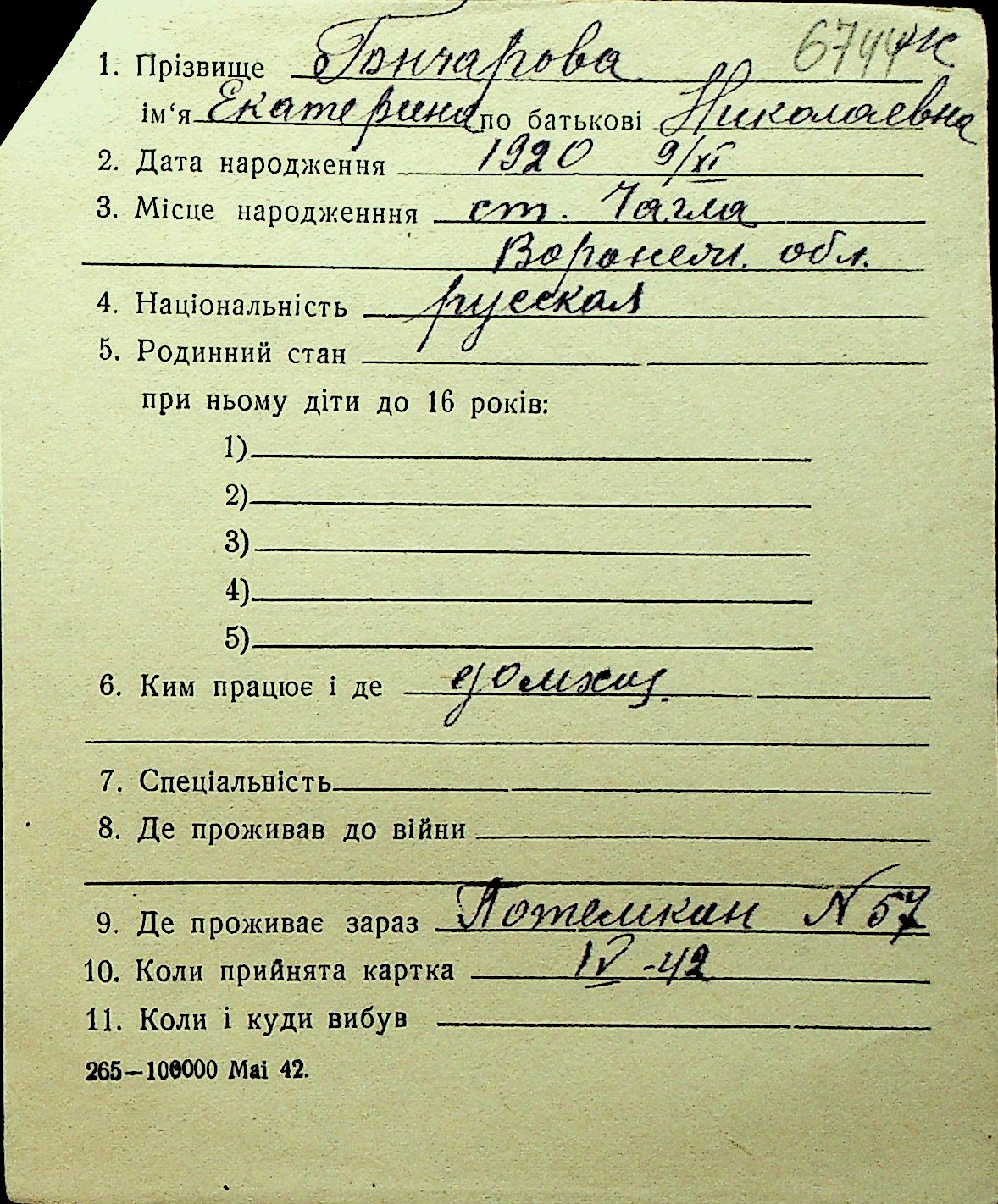 • • Перелік карток до фонду № Н-1016