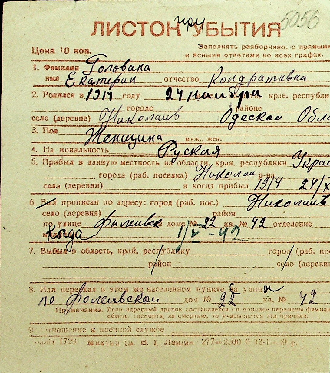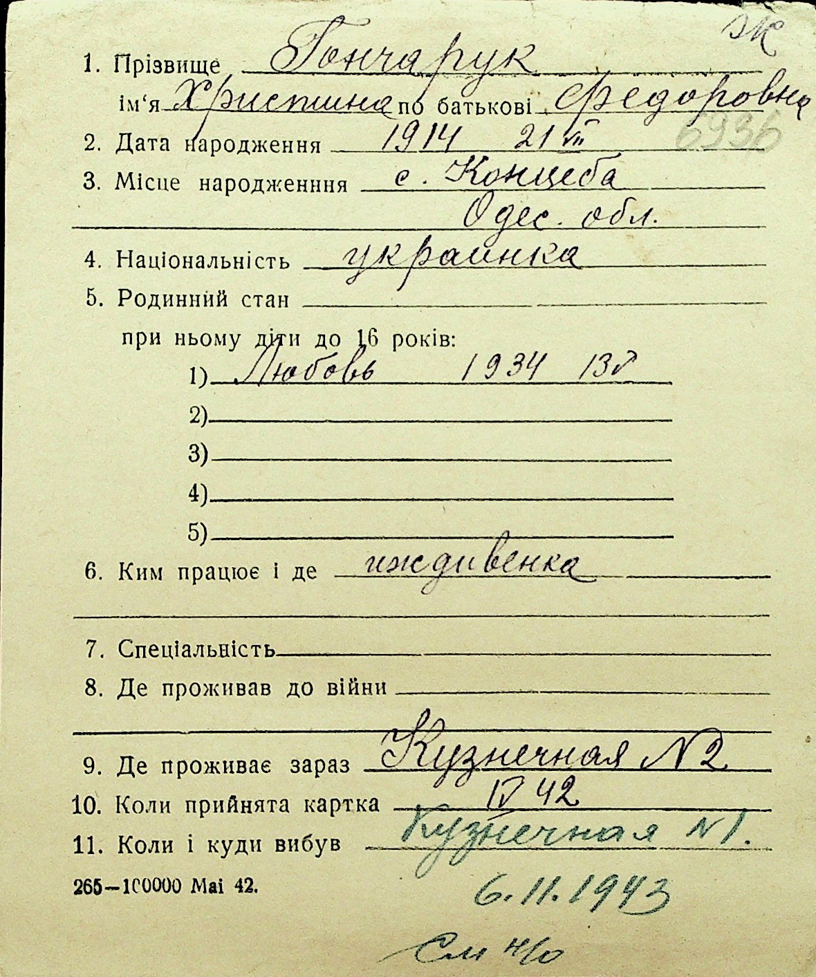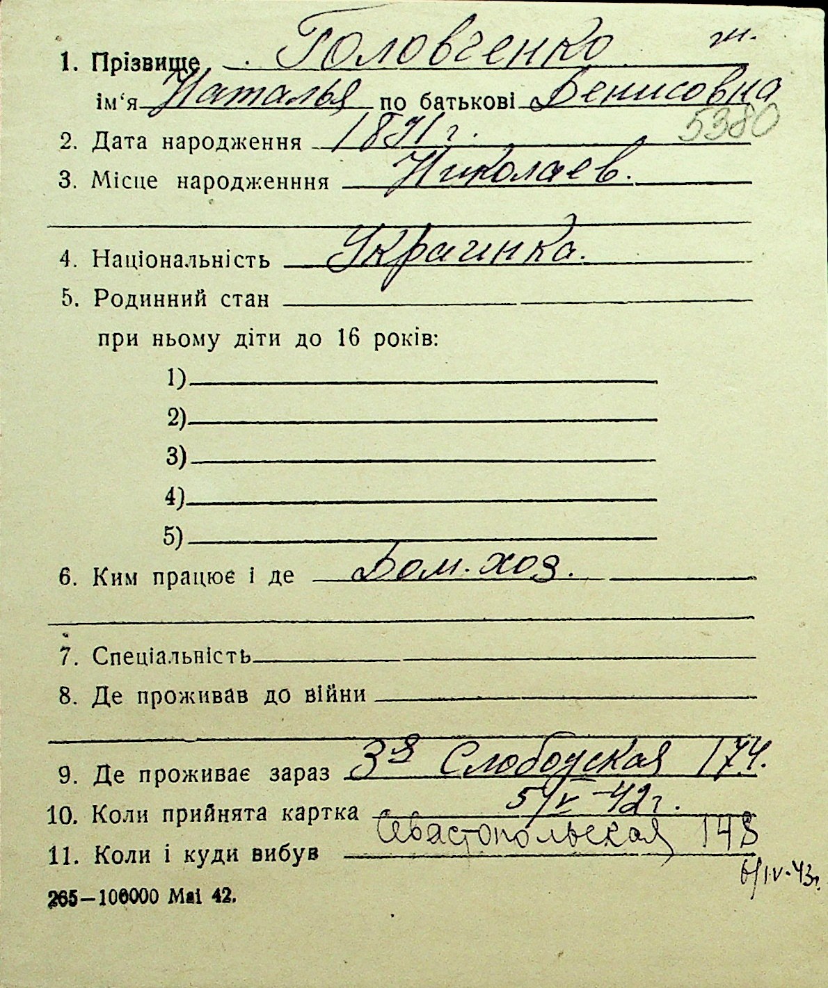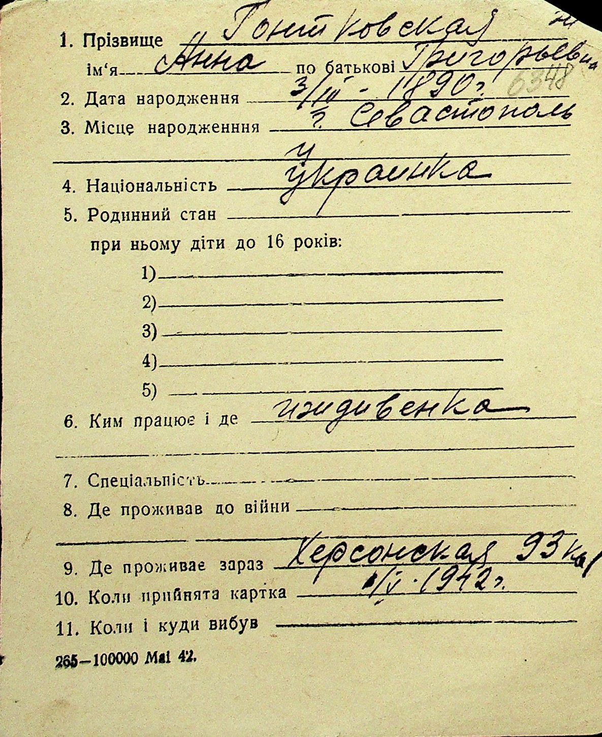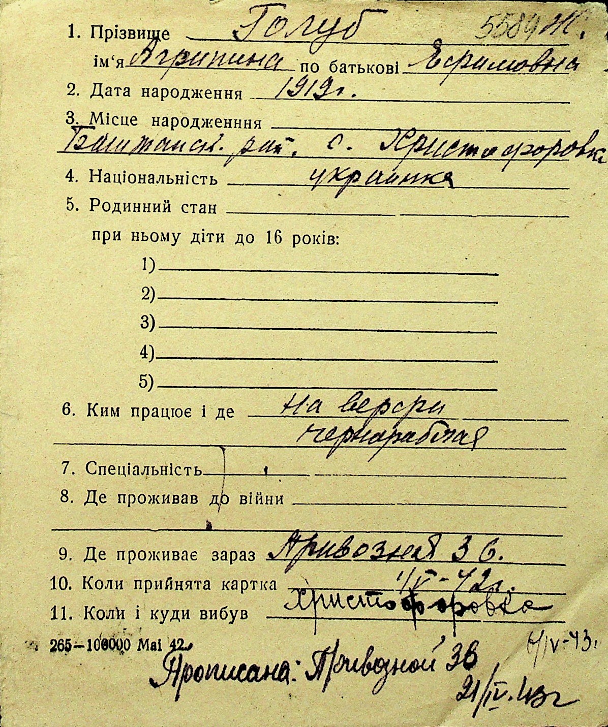 • • Перелік карток до фонду № Н-1016