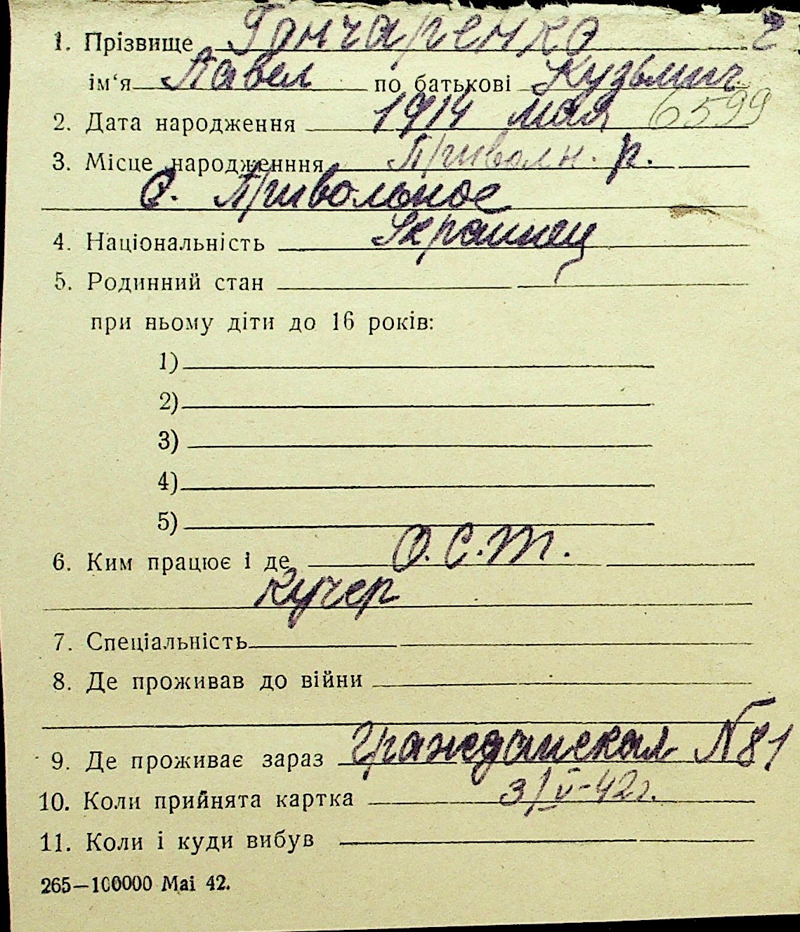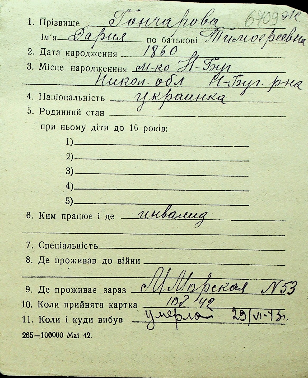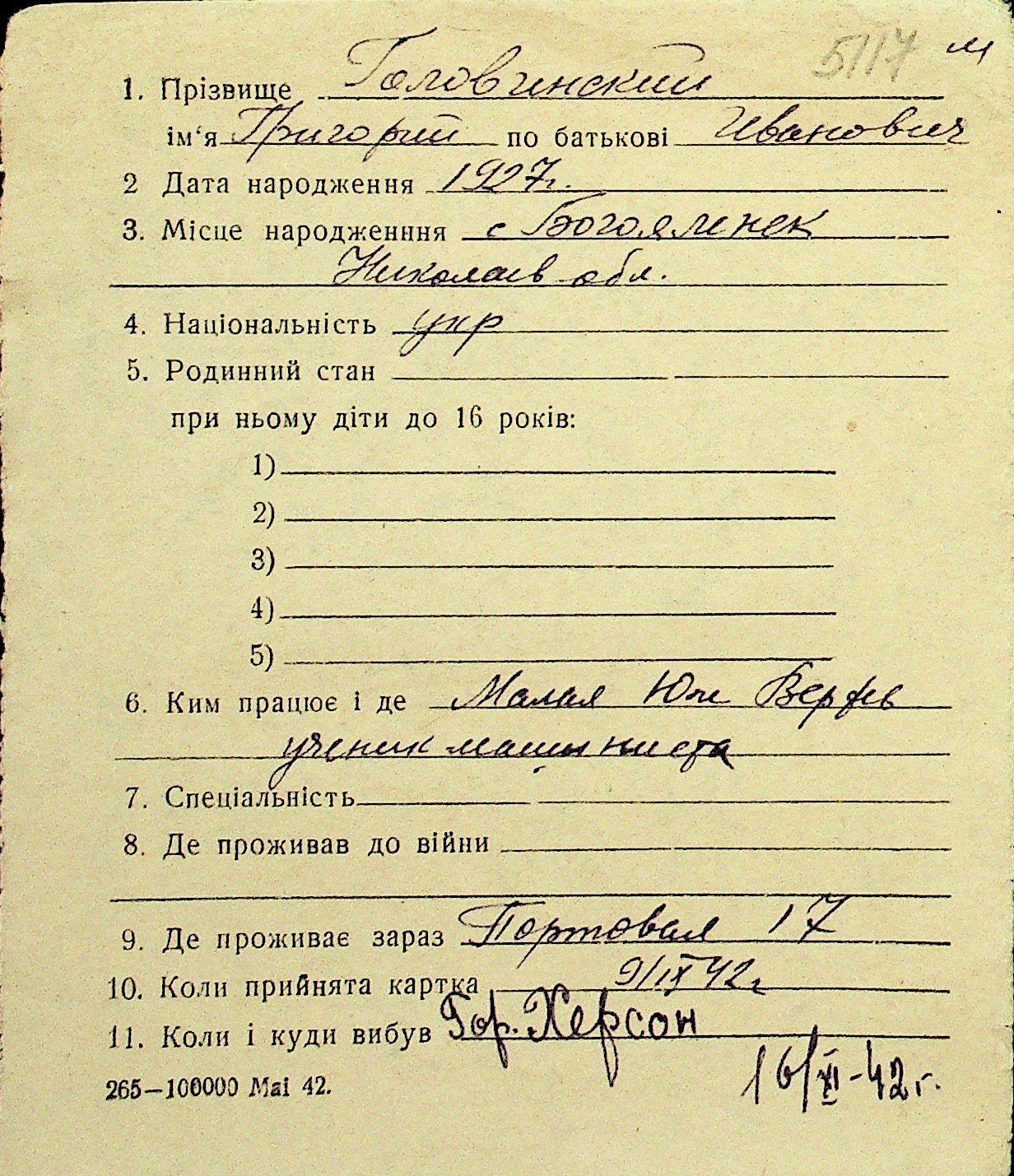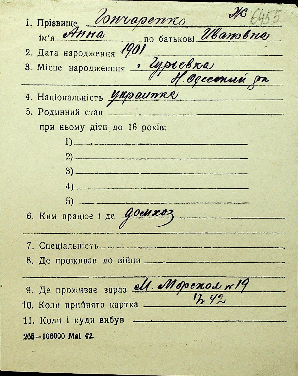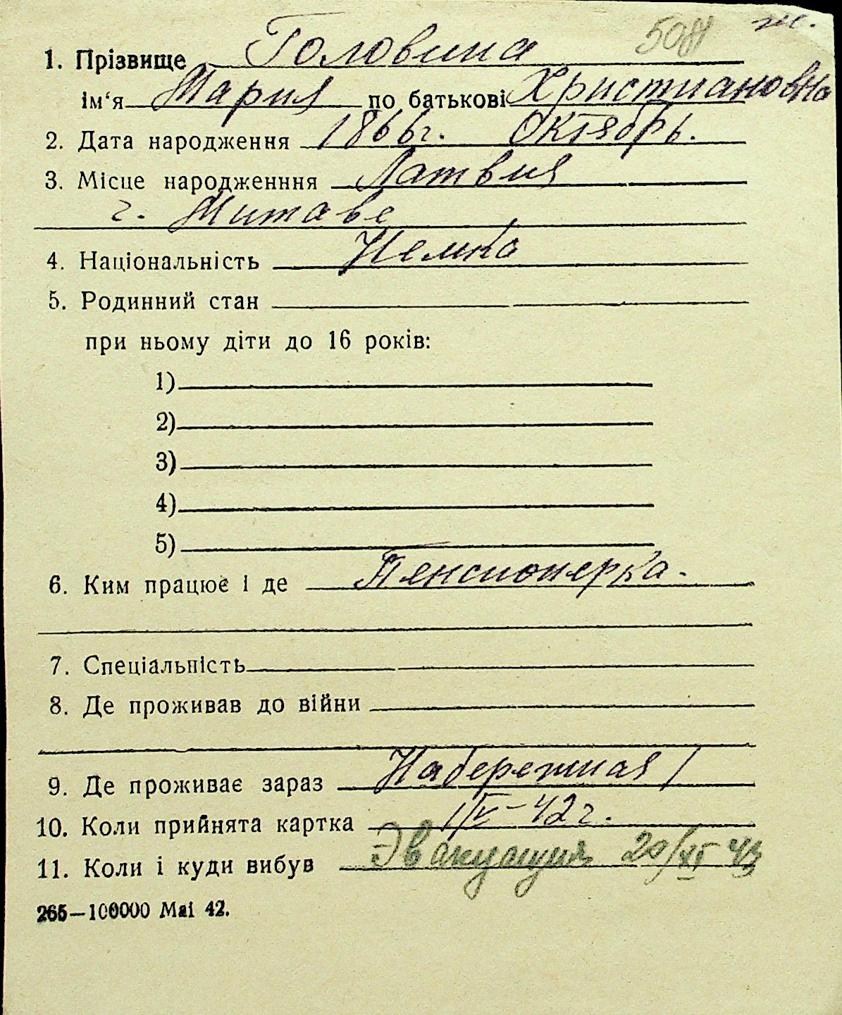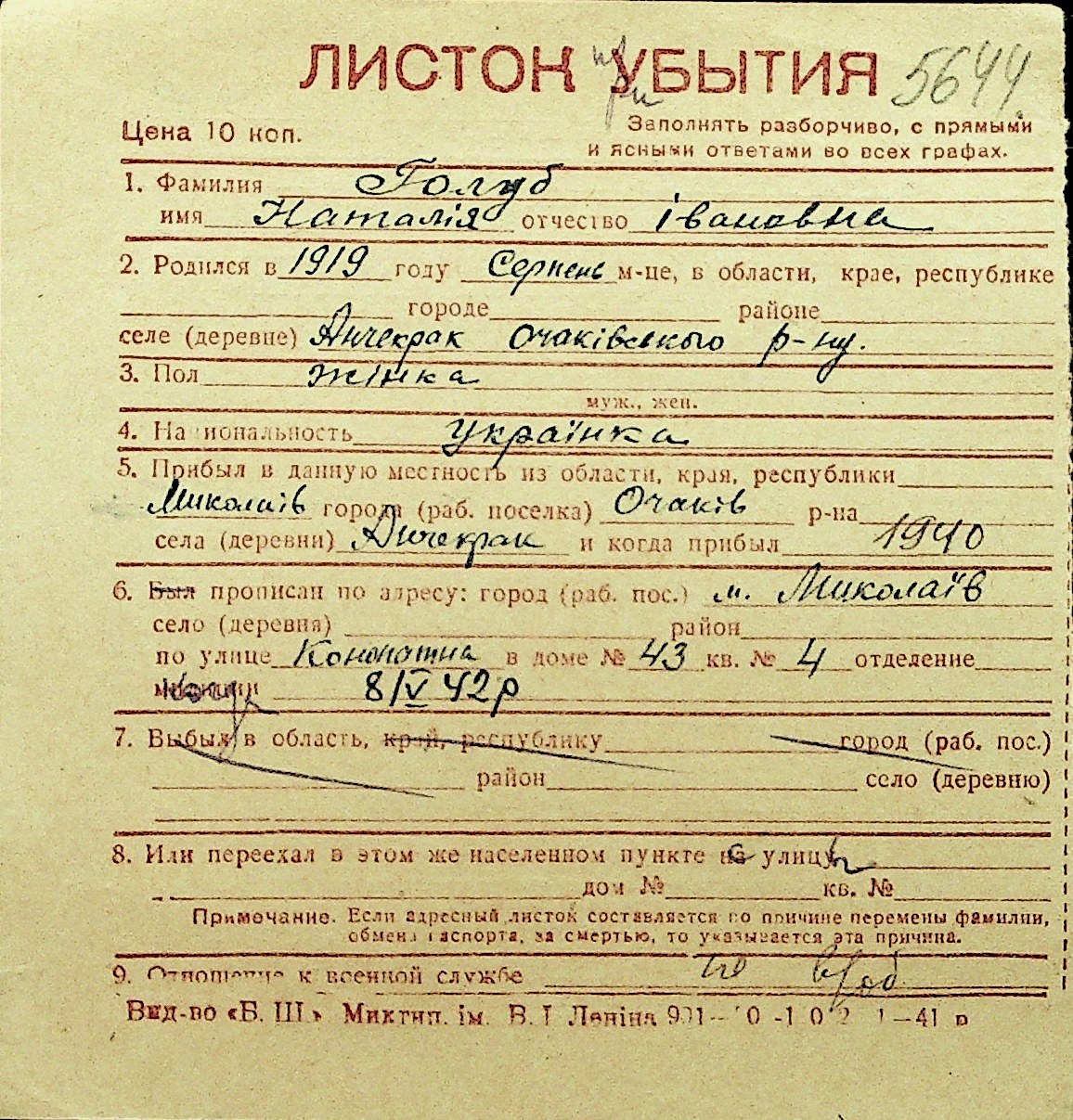 • • Перелік карток до фонду № Н-1016