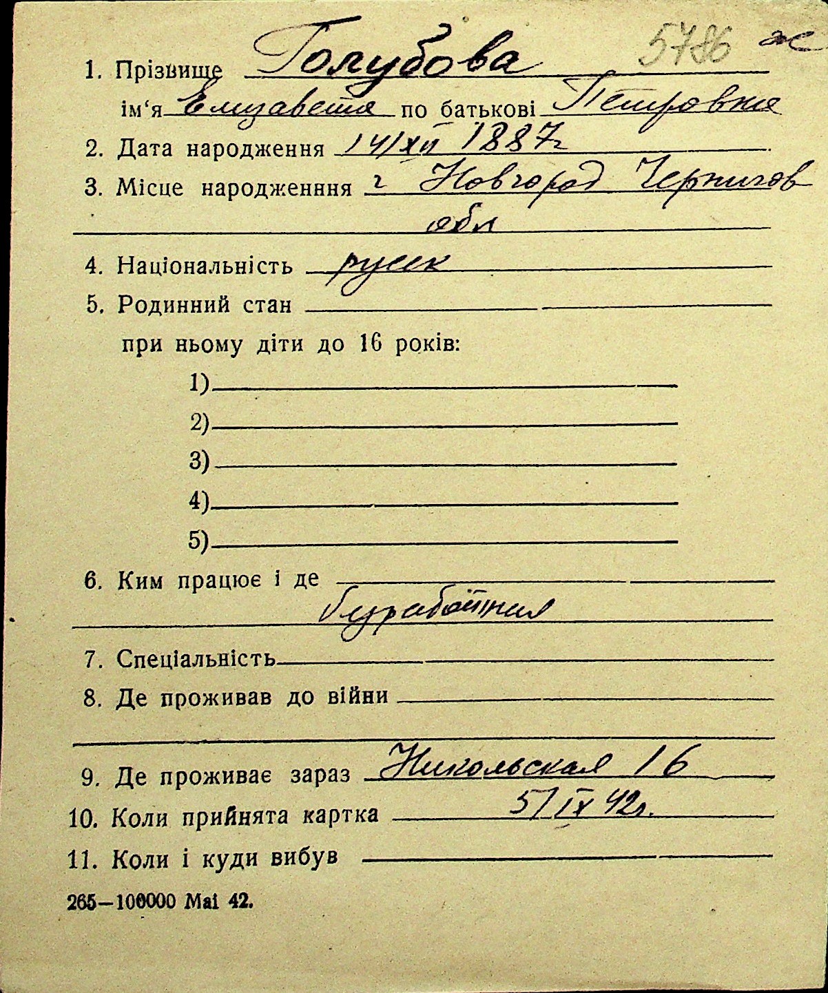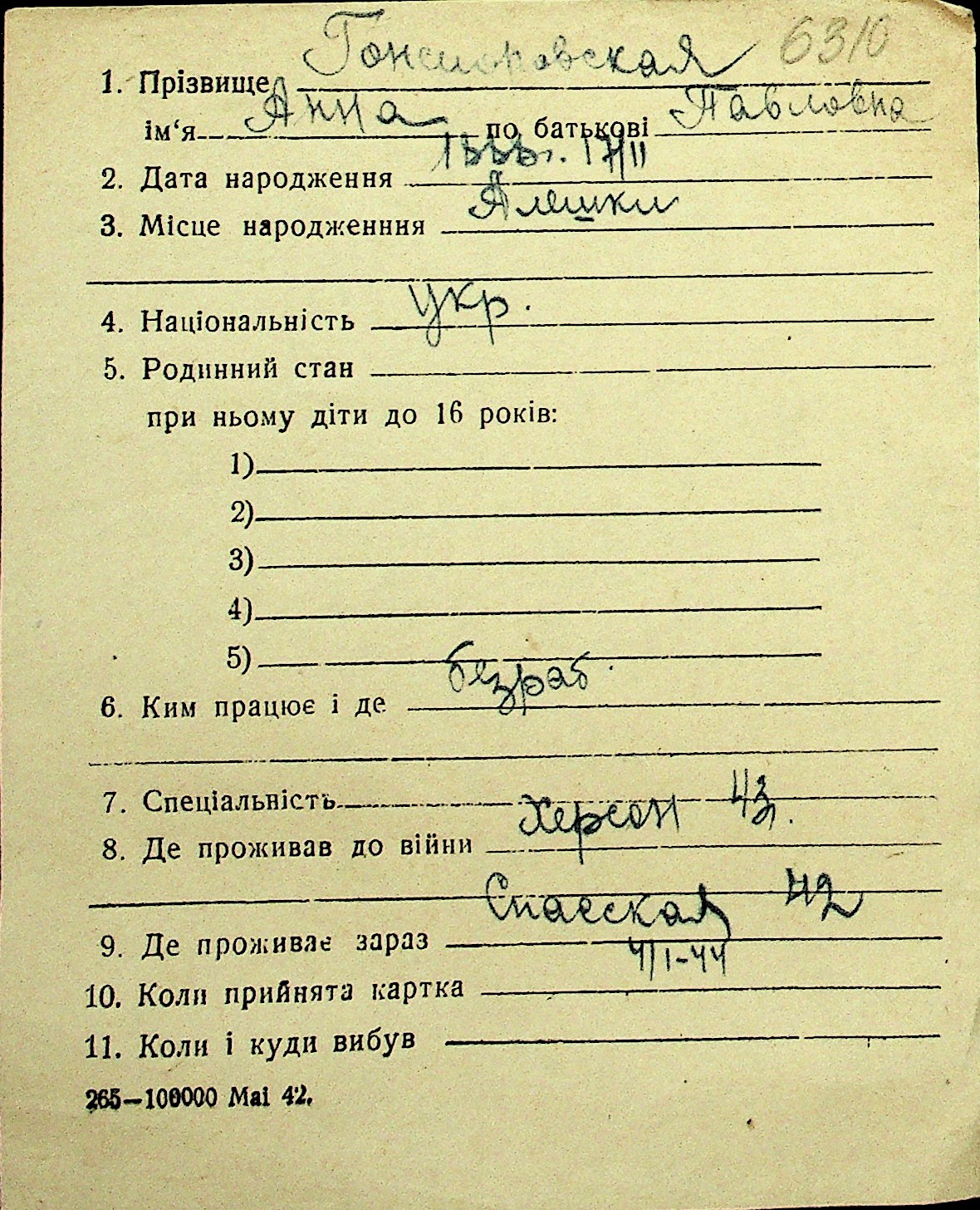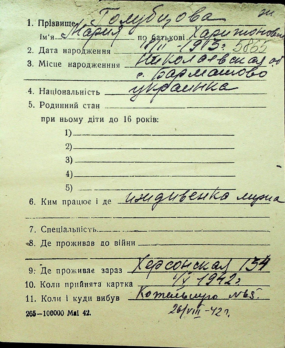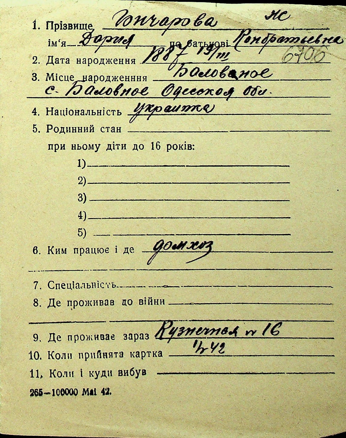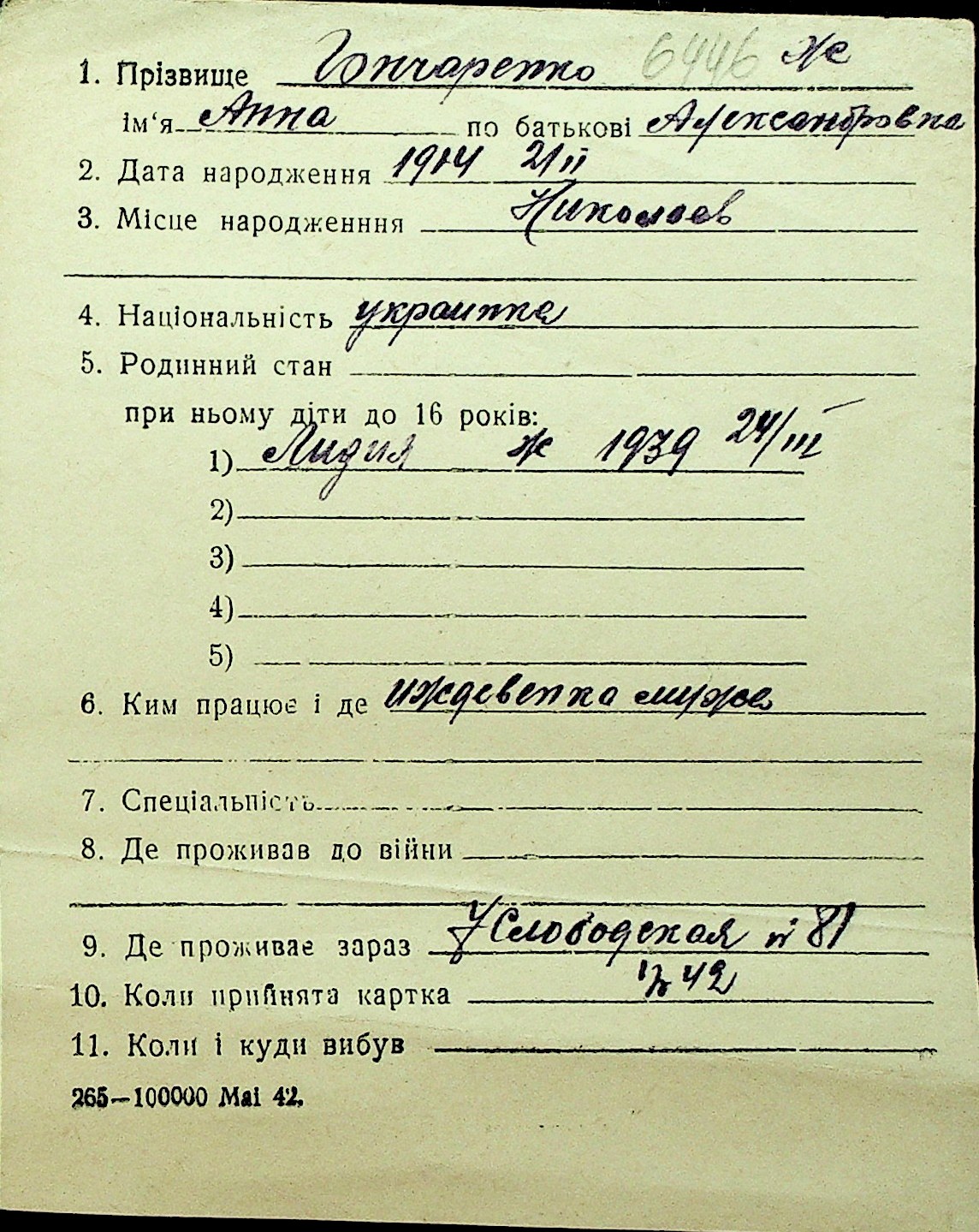 • • Перелік карток до фонду № Н-1016