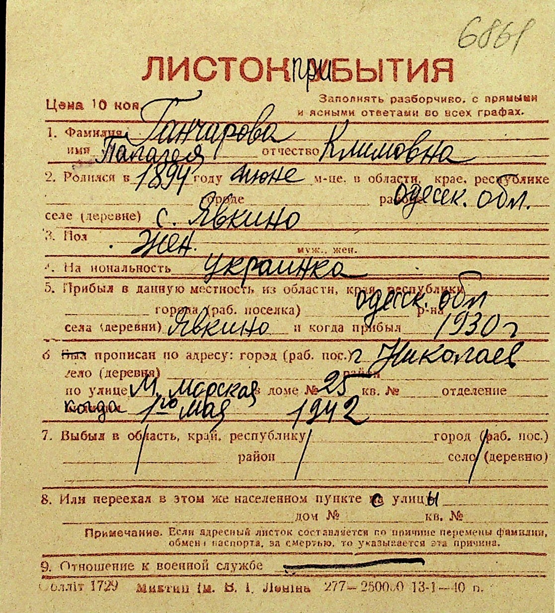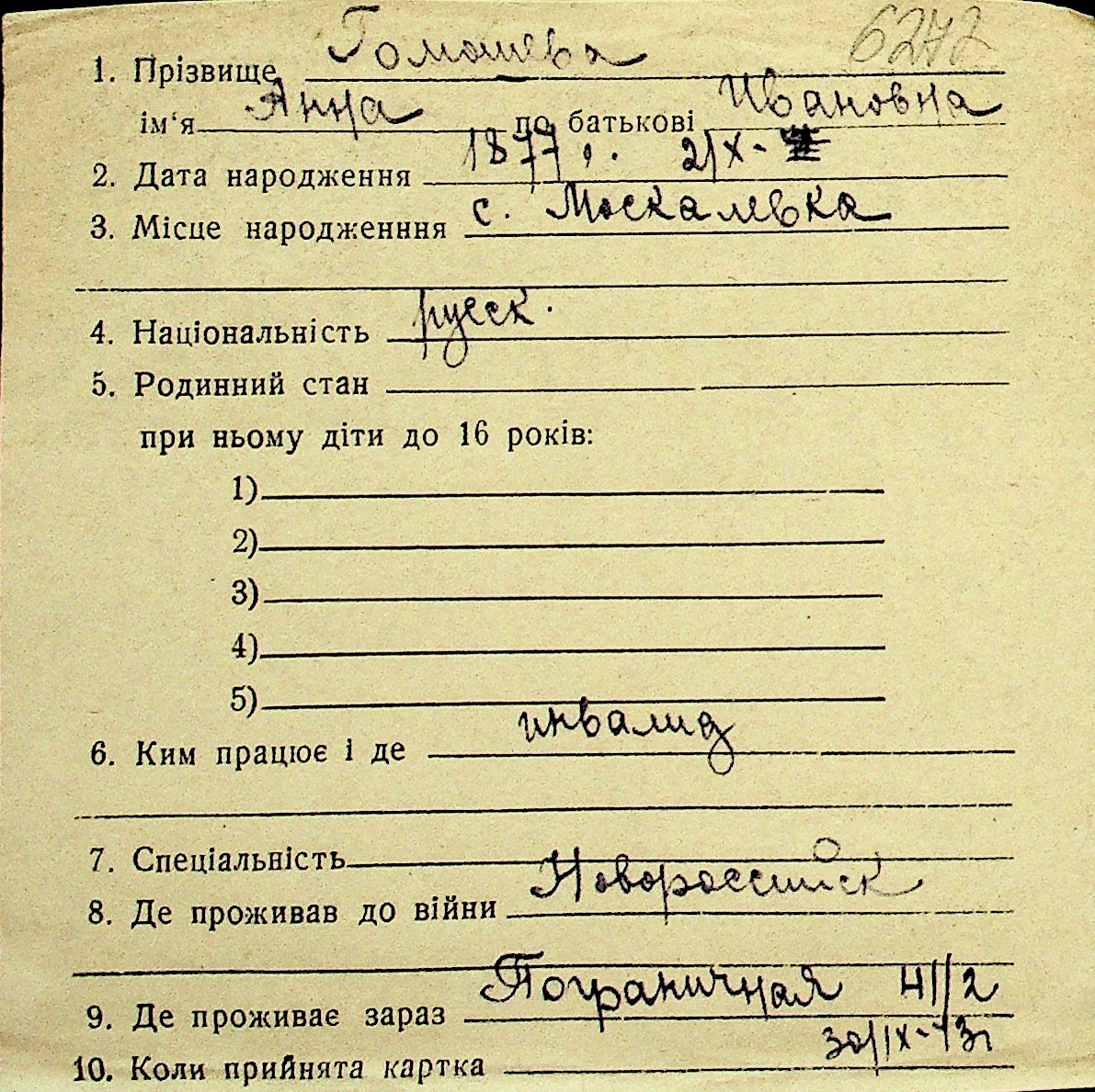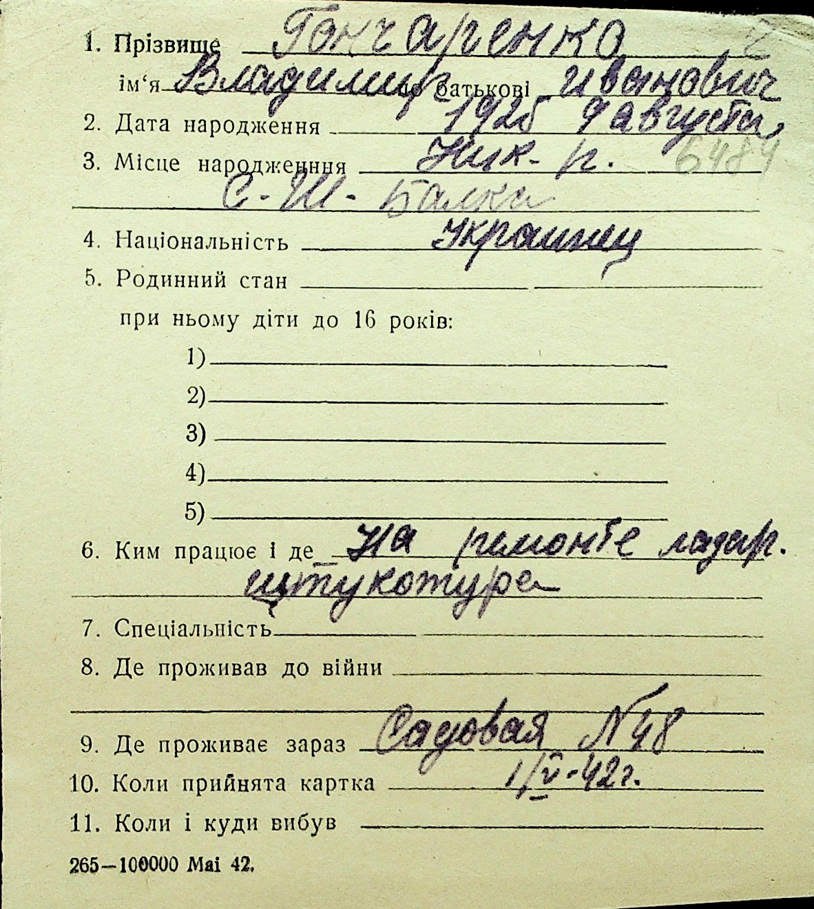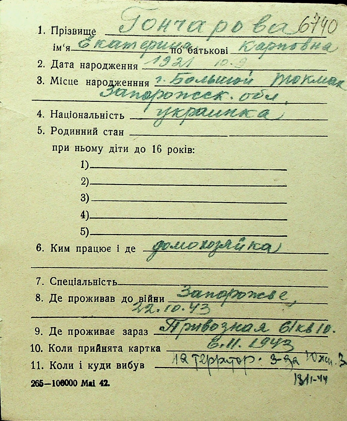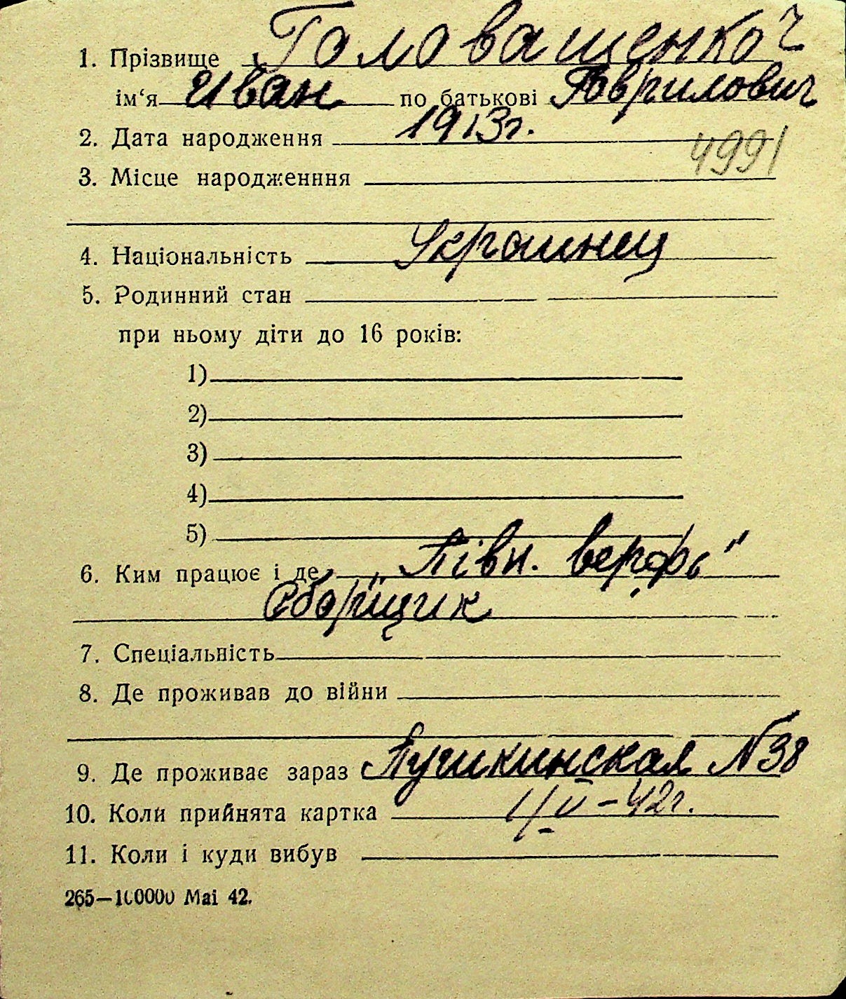 • • Перелік карток до фонду № Н-1016