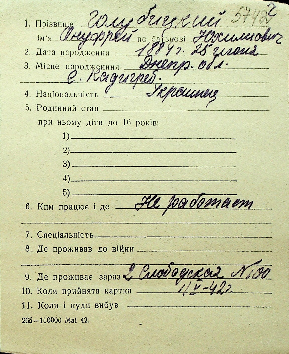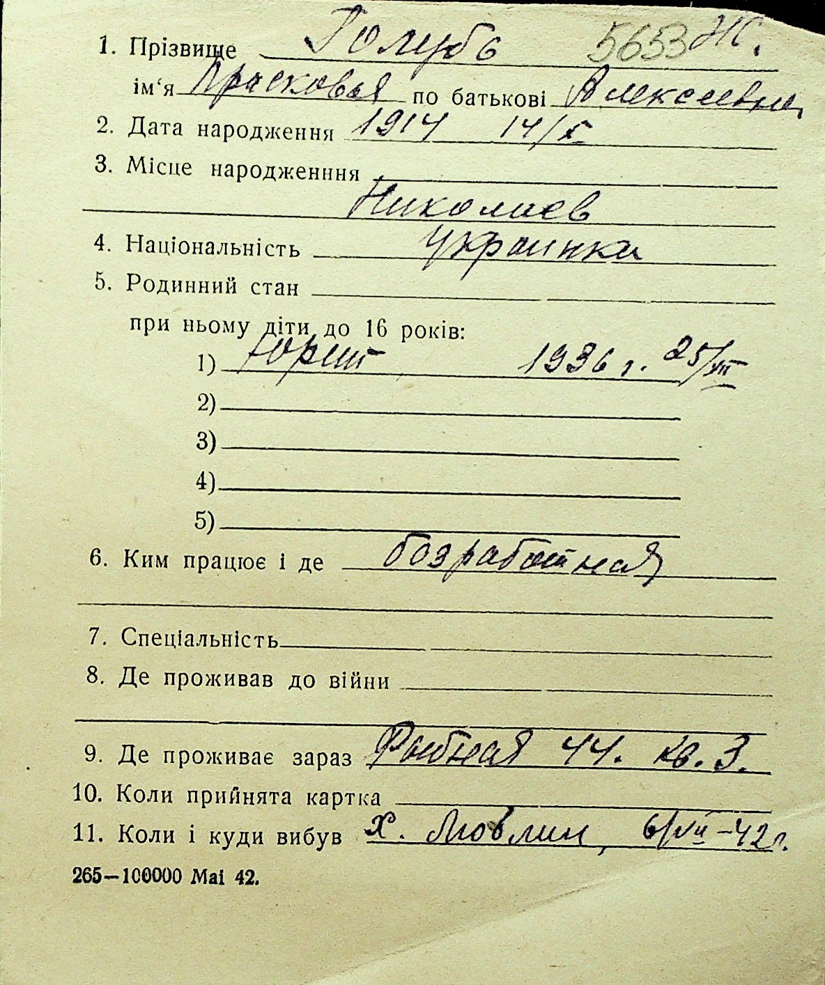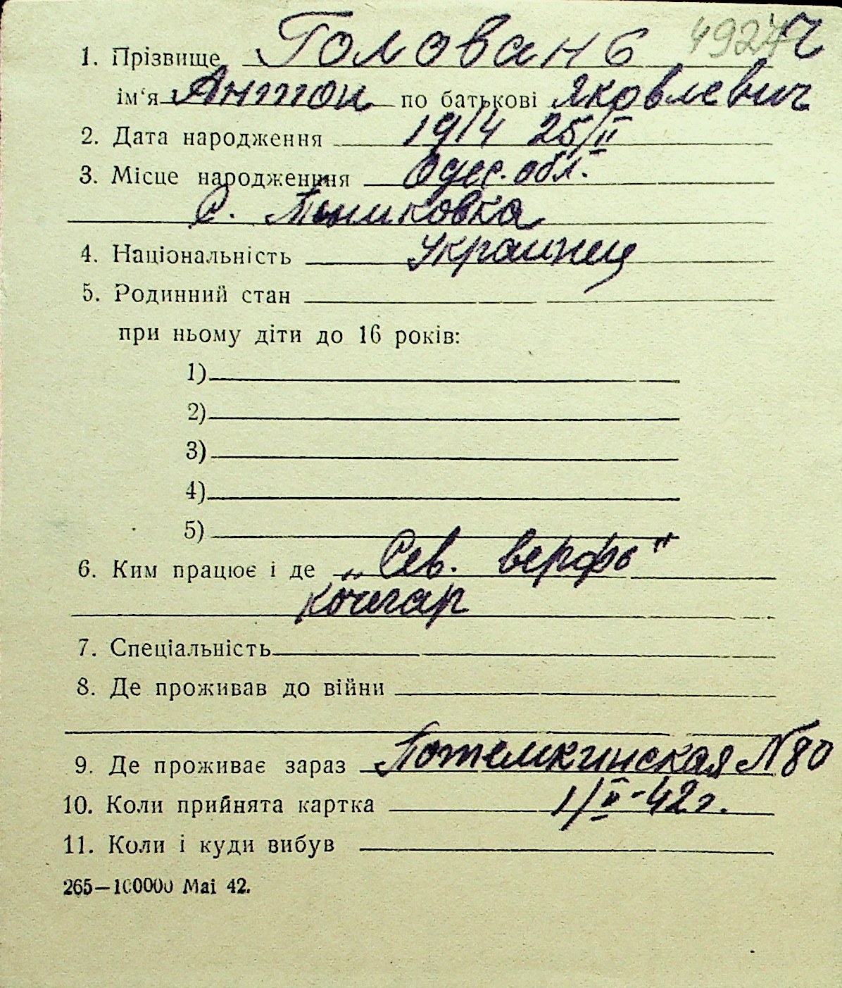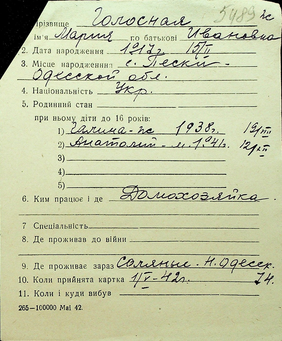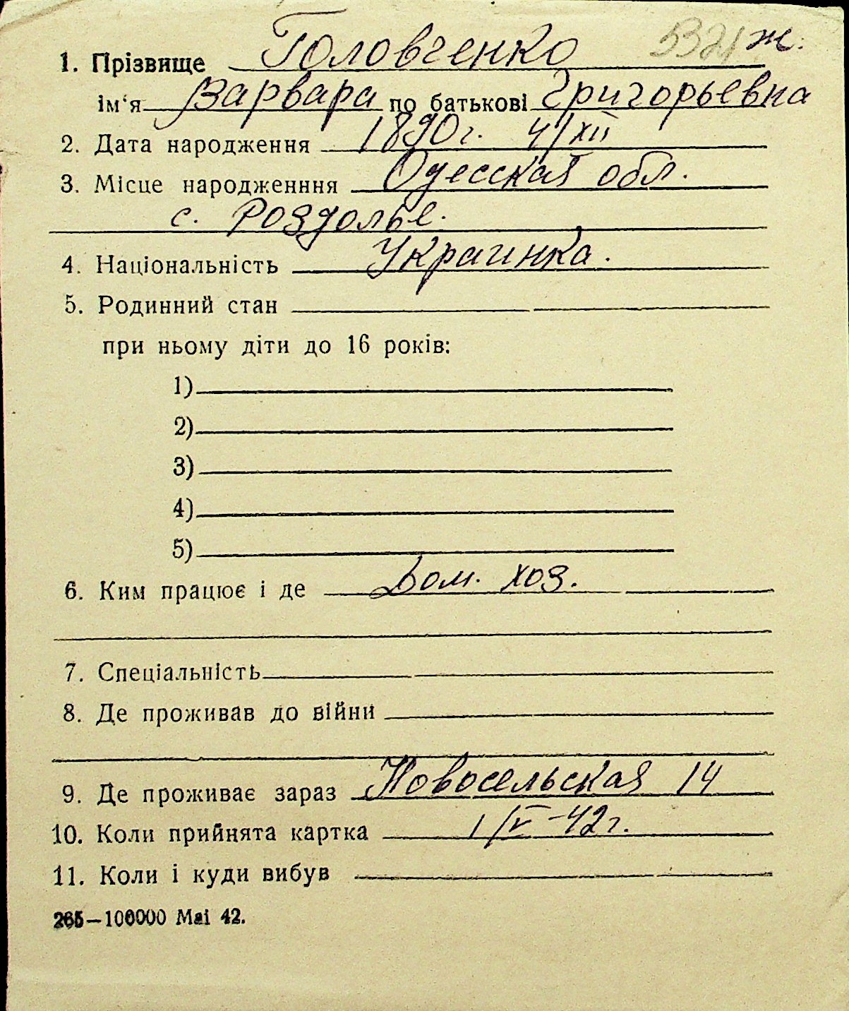• • Перелік карток до фонду № Н-1016
