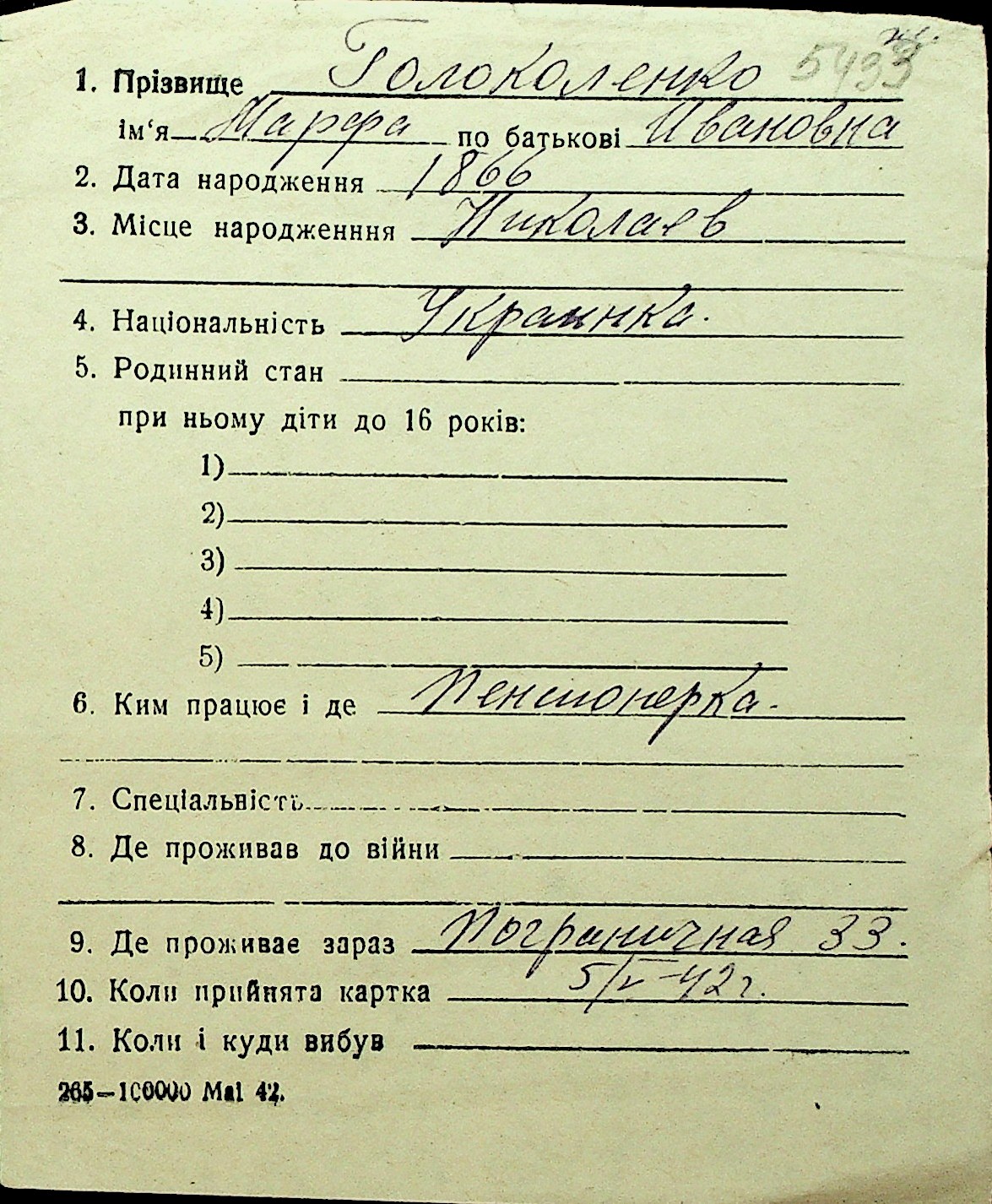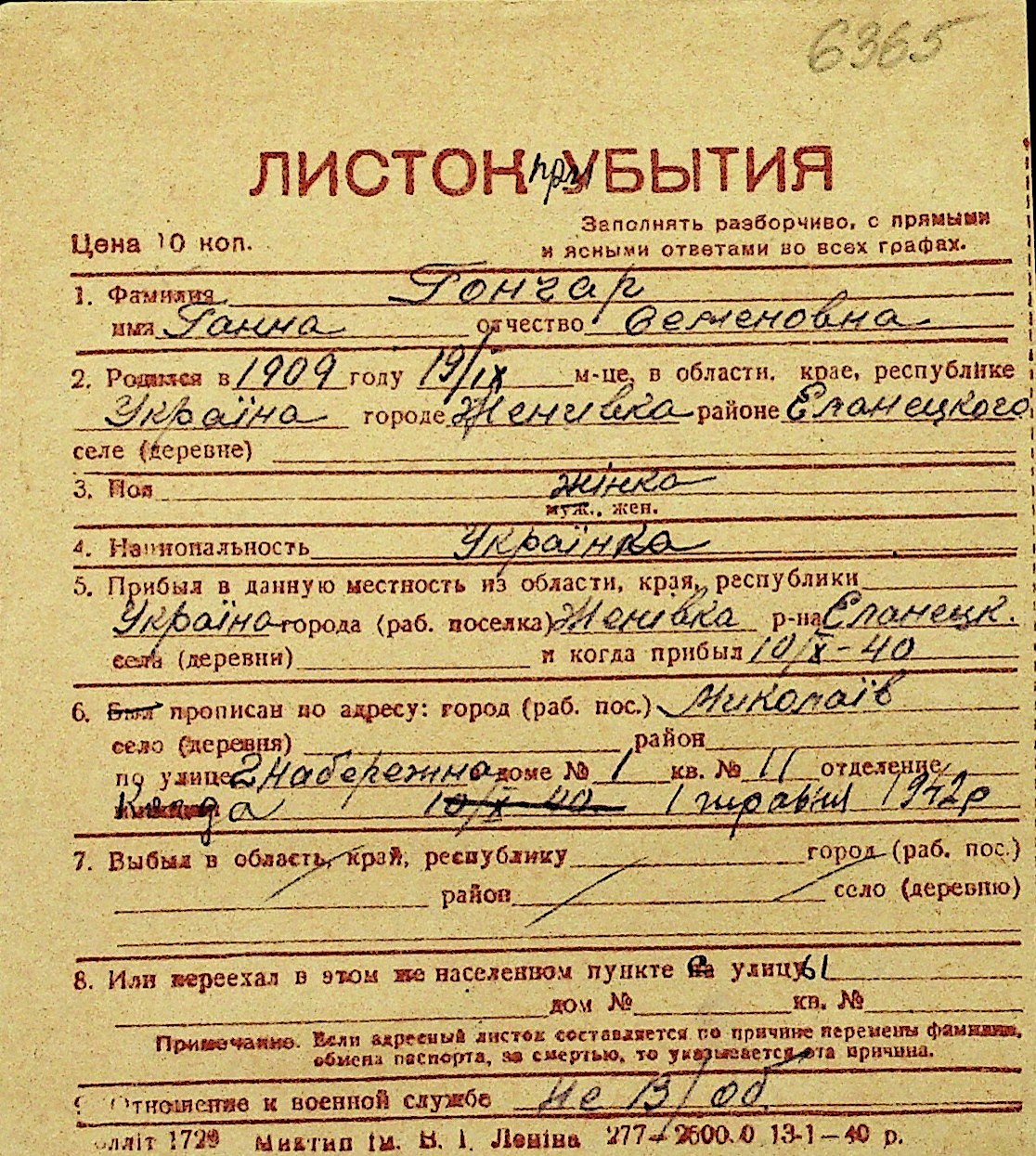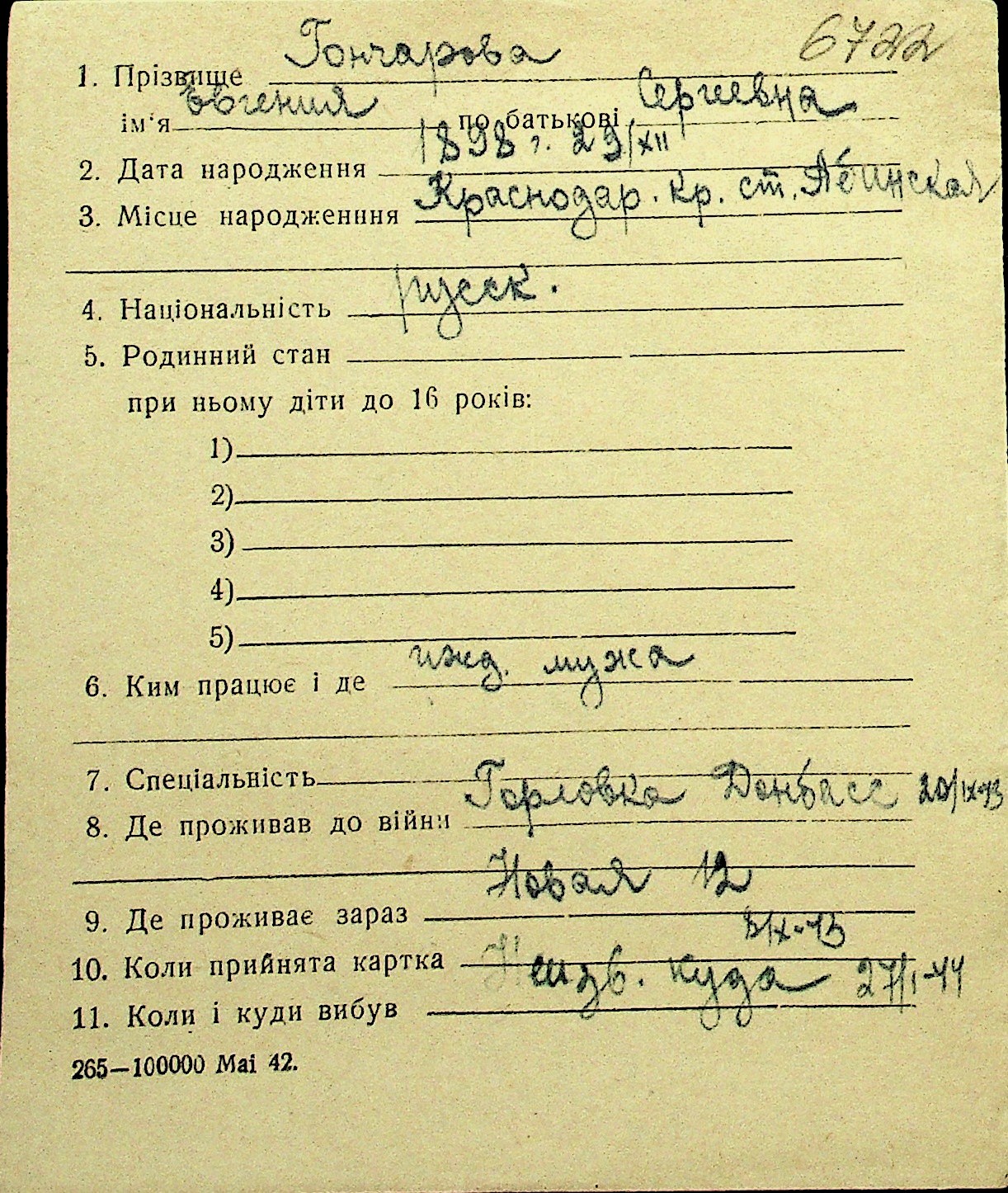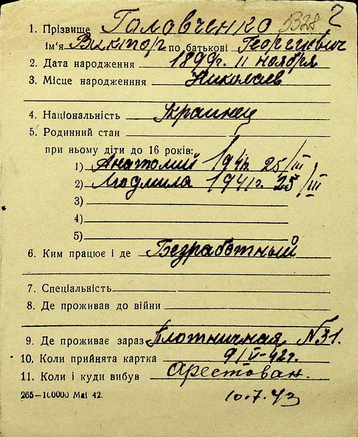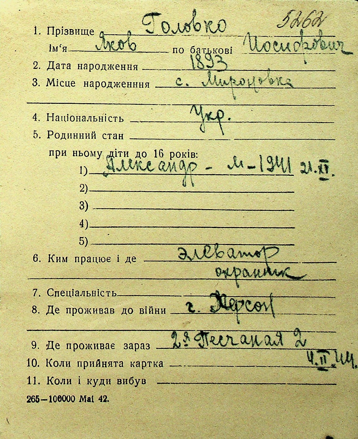 • • Перелік карток до фонду № Н-1016