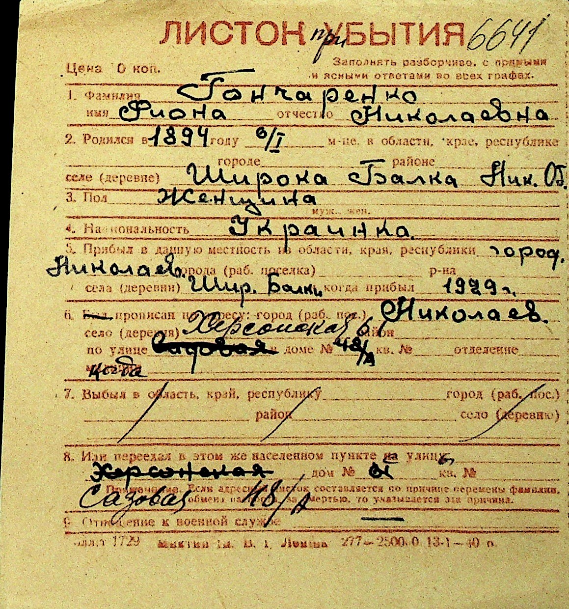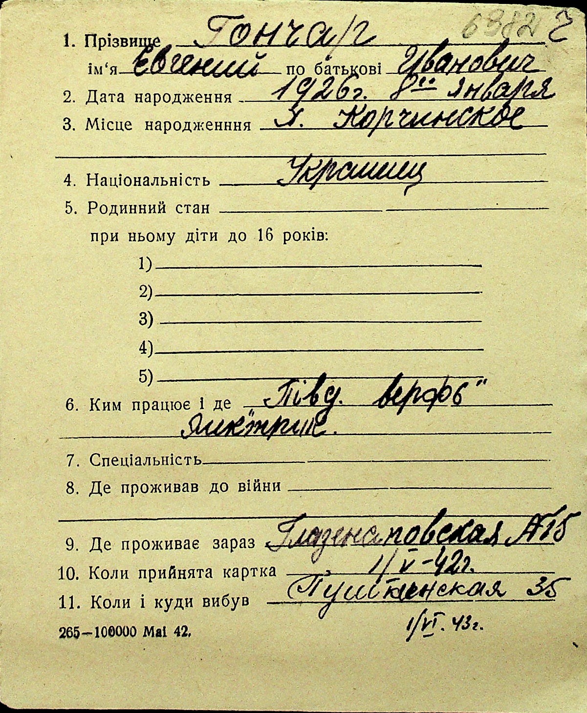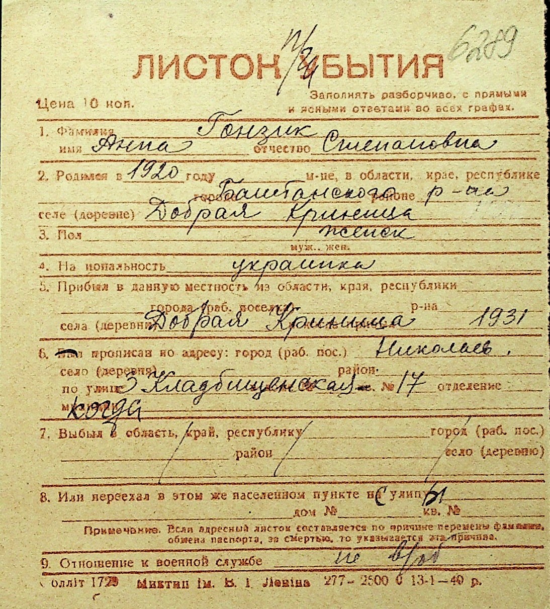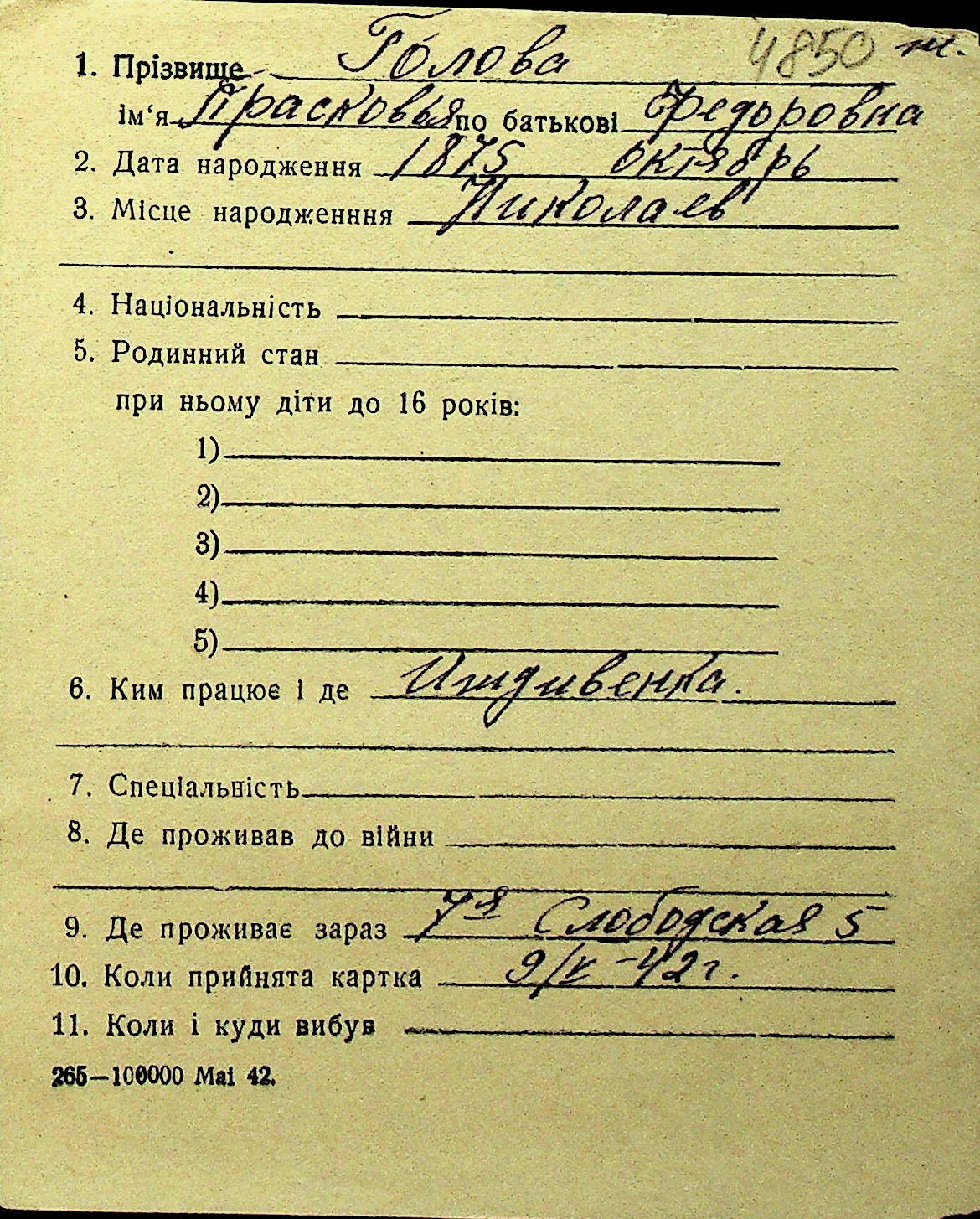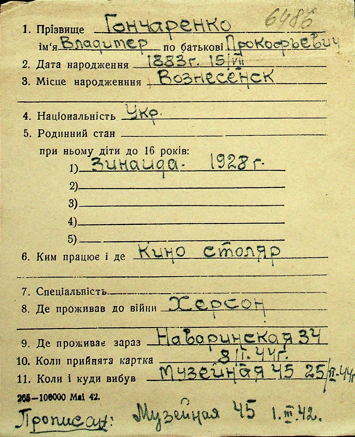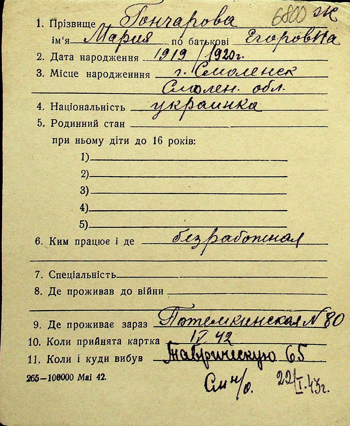 • • Перелік карток до фонду № Н-1016