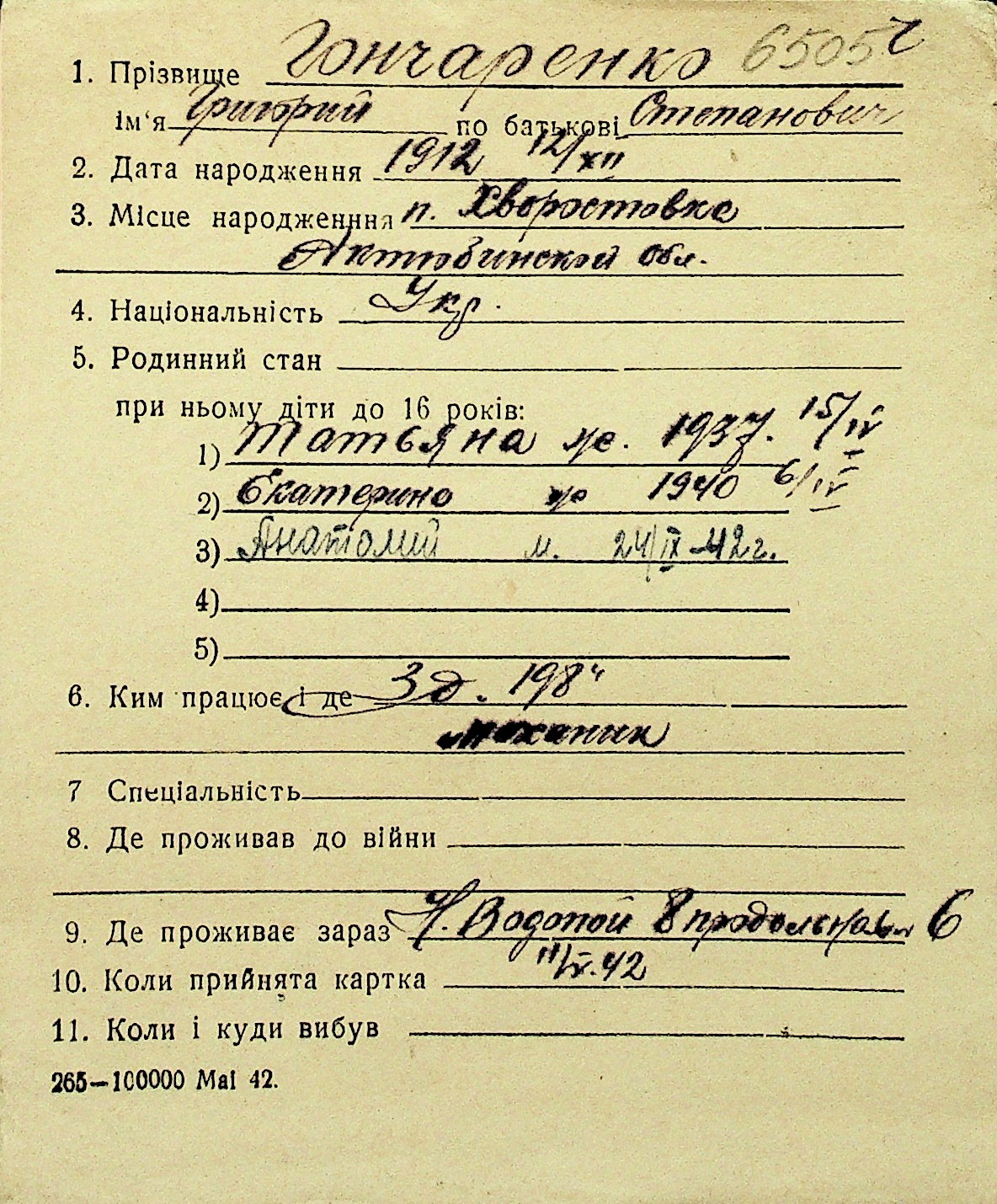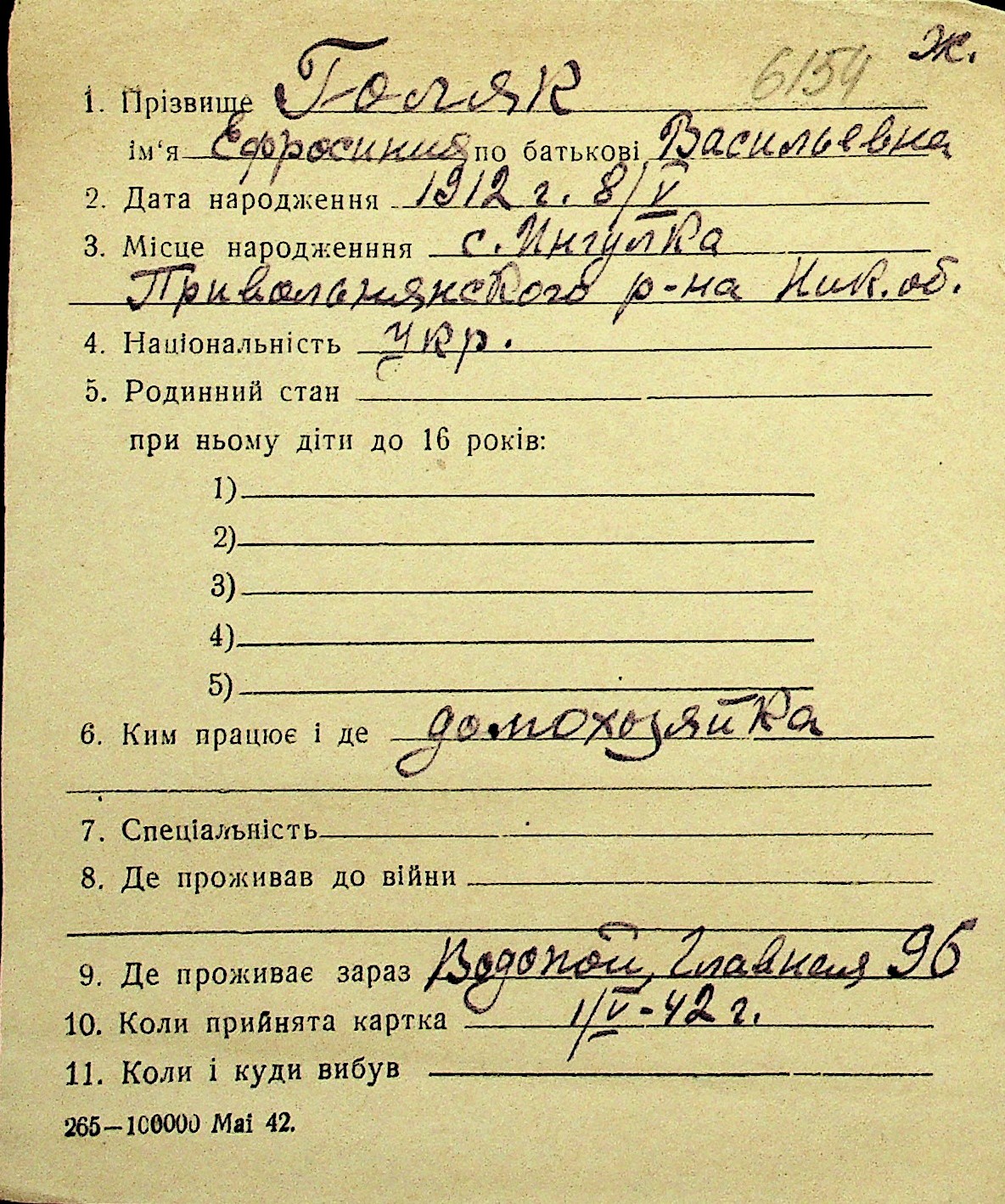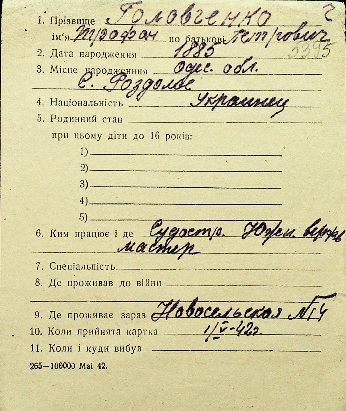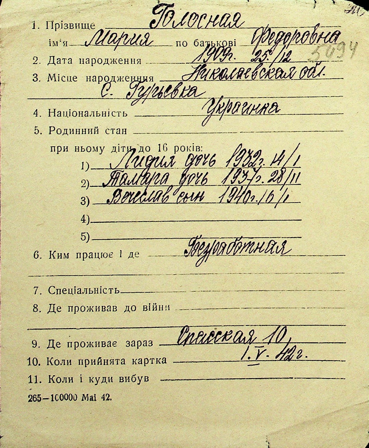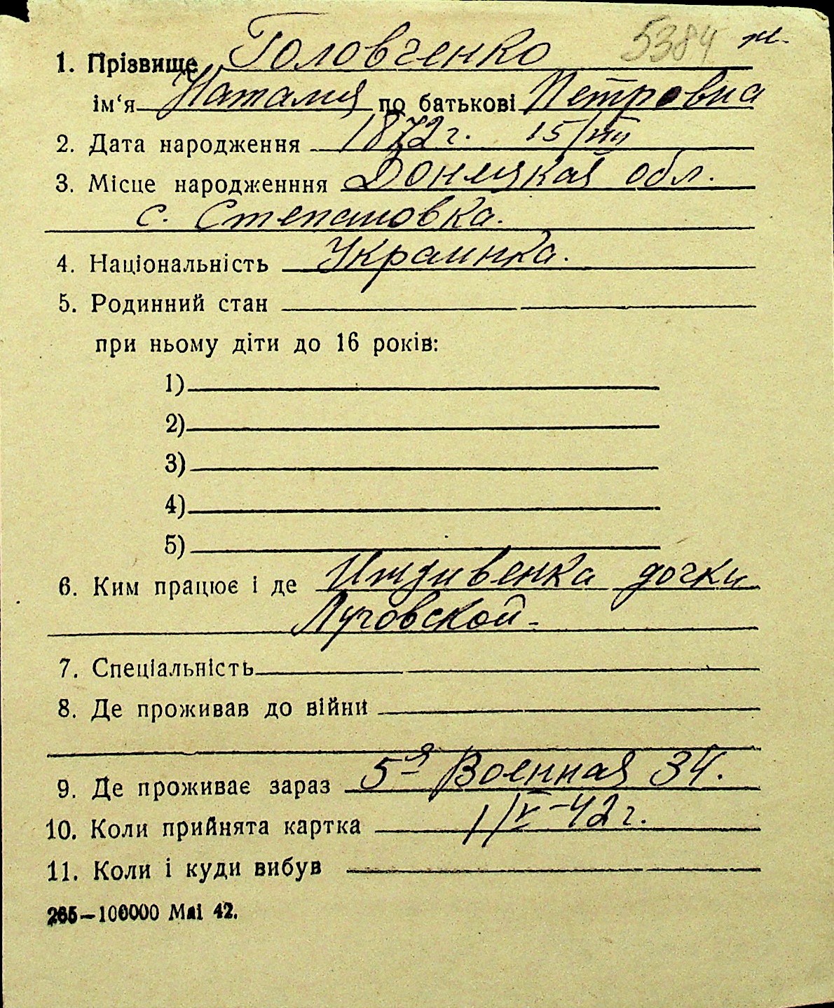 • • Перелік карток до фонду № Н-1016