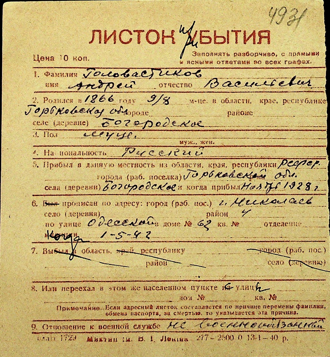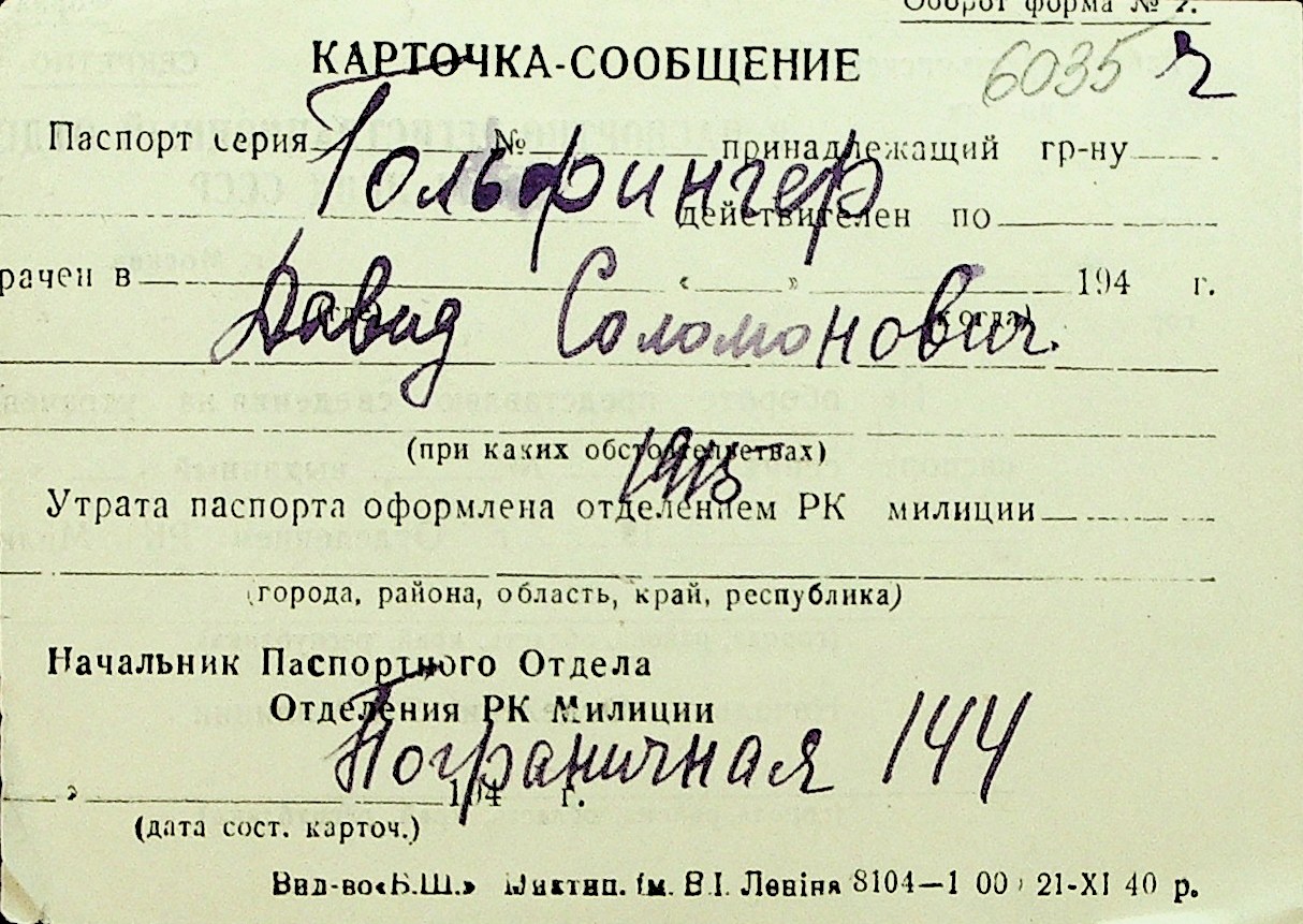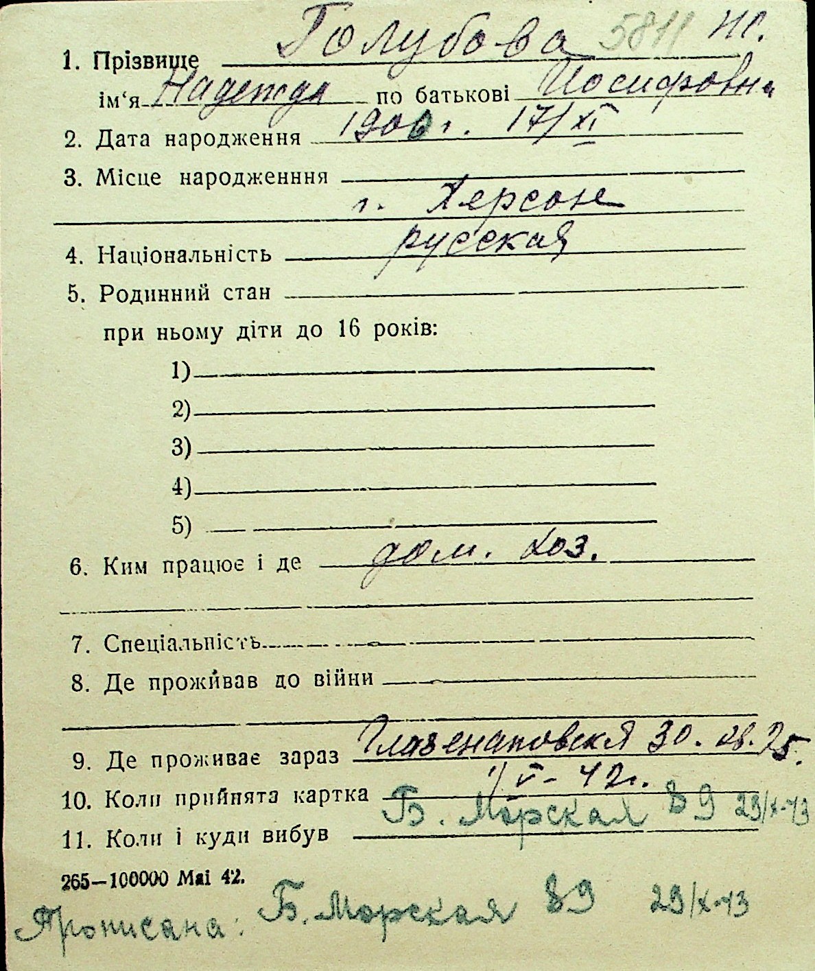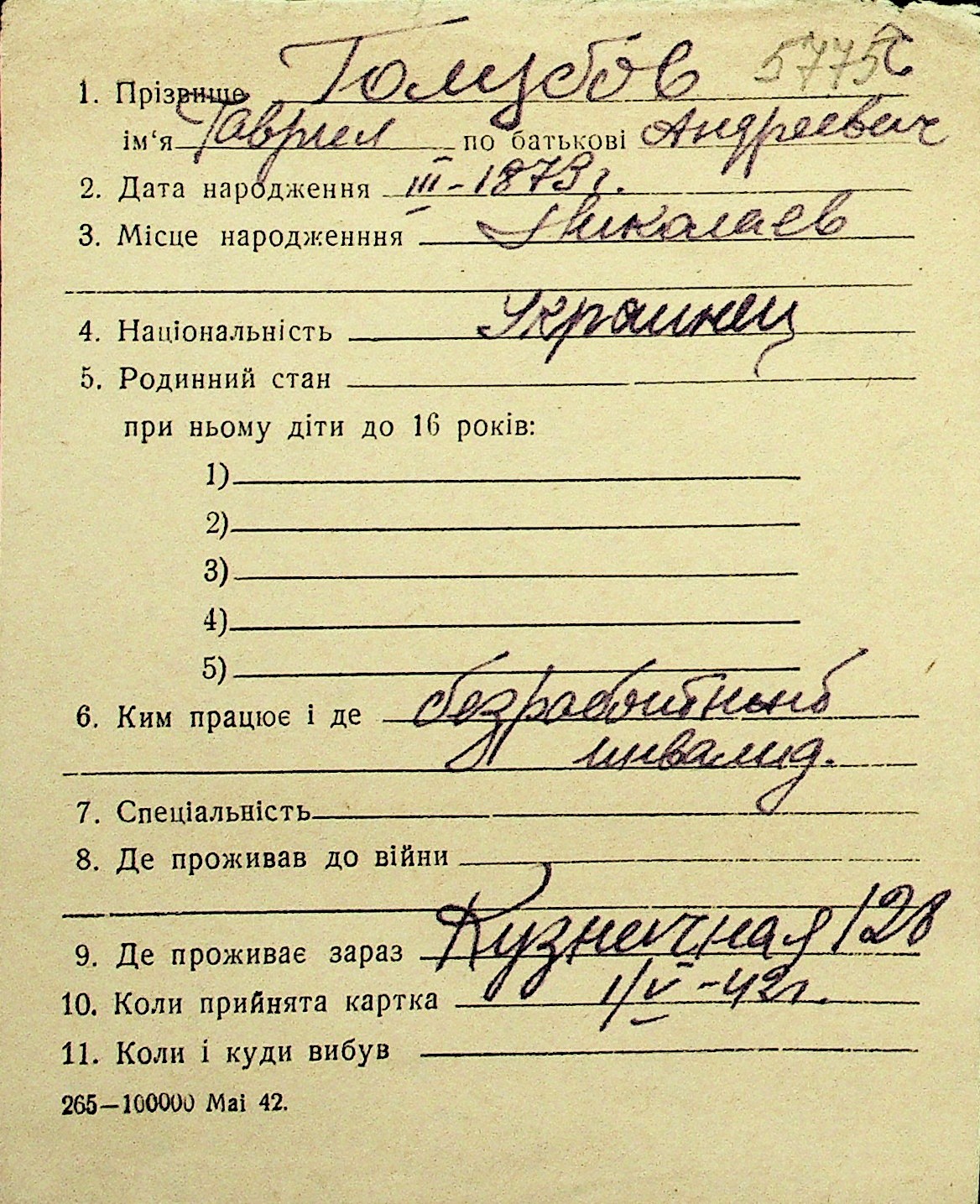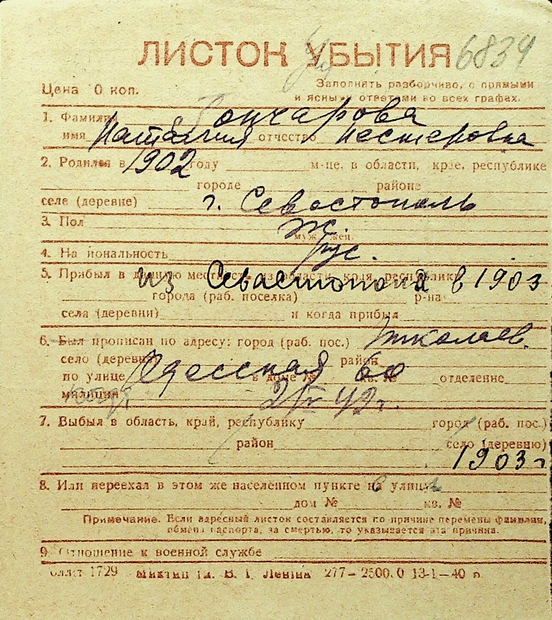 • • Перелік карток до фонду № Н-1016